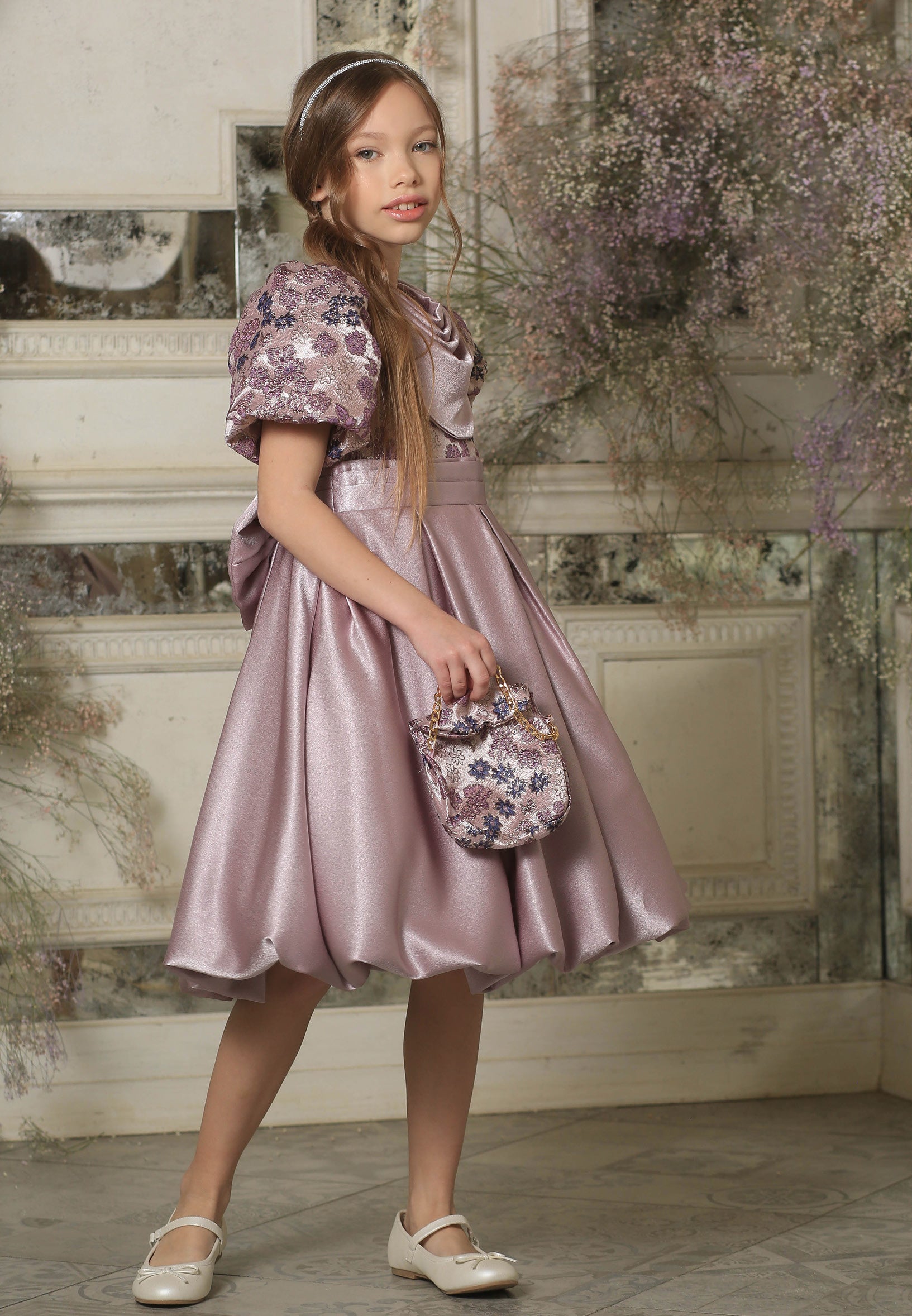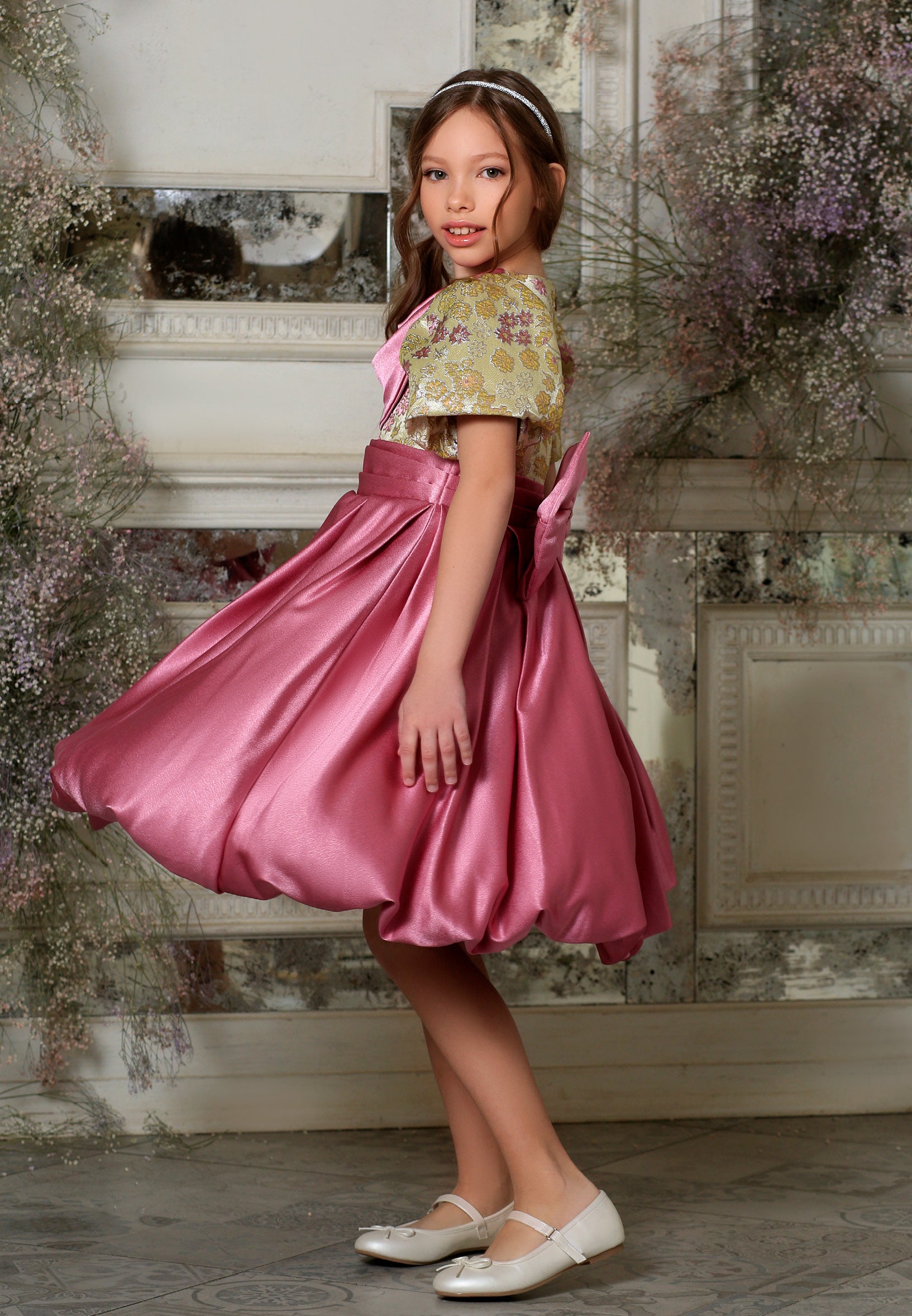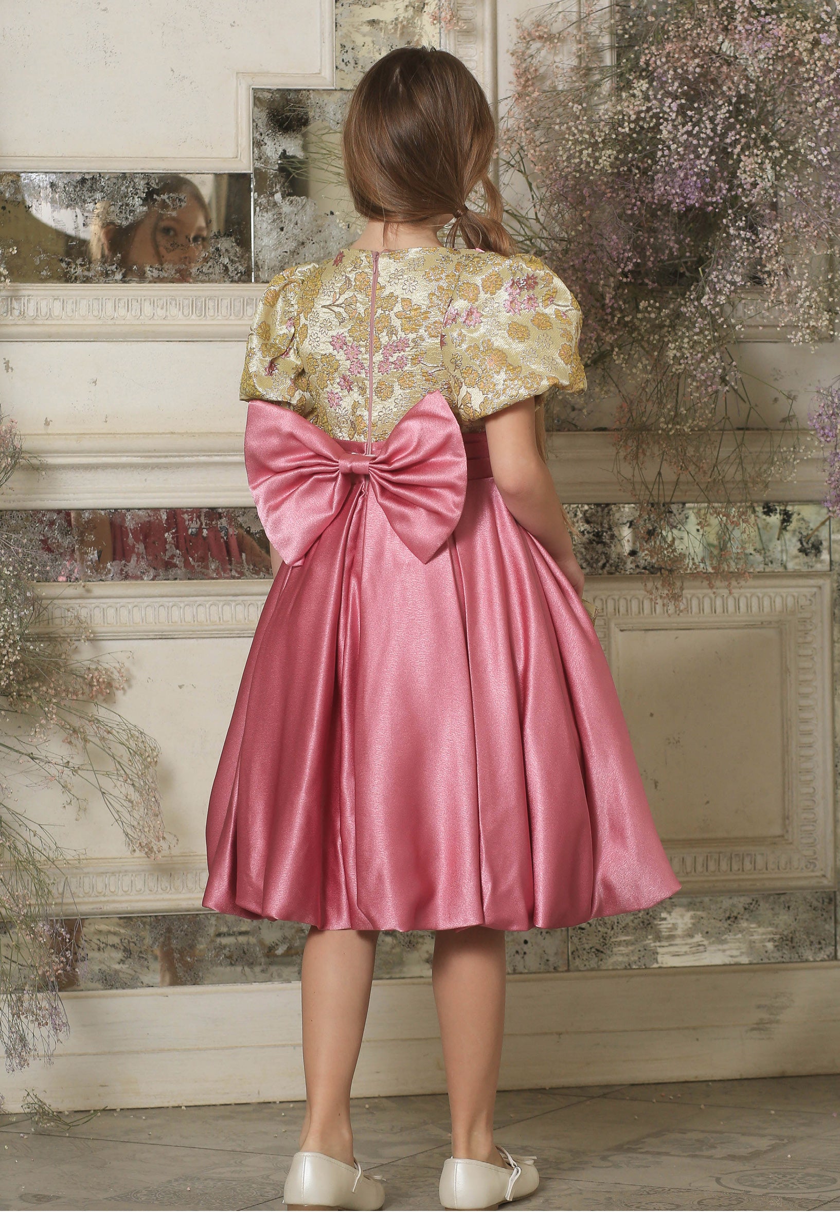 Baby Girl Short Sleeve Velours Patterned A - Line 4 - 8 Ages Special Occasion Dress pxn23yka002306 Features