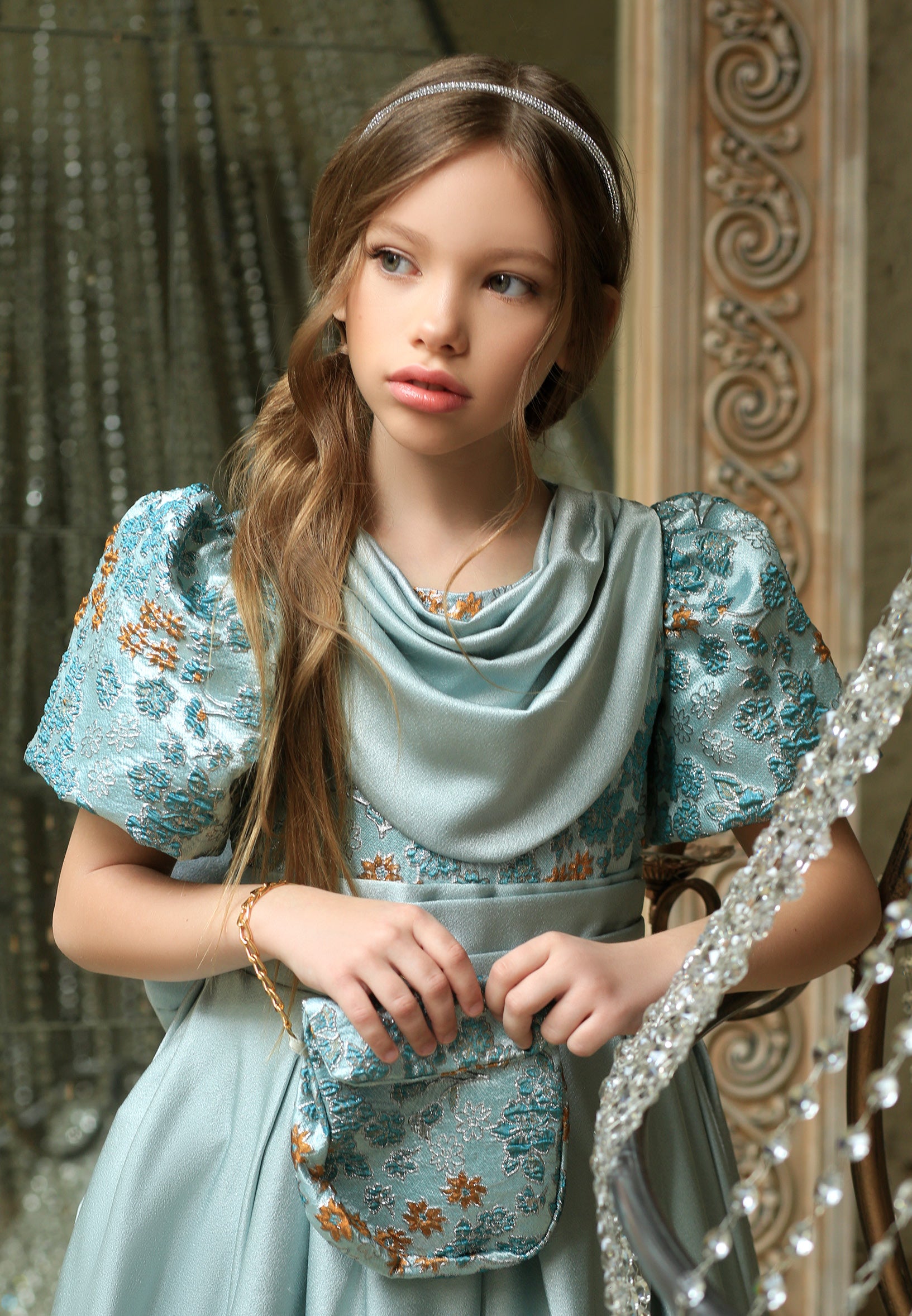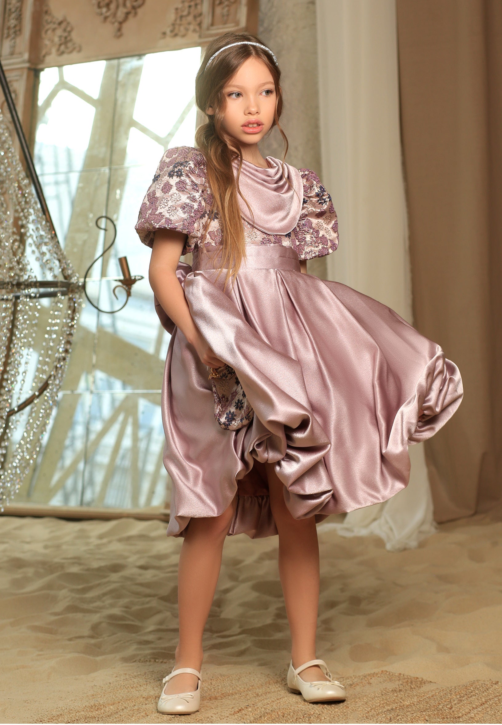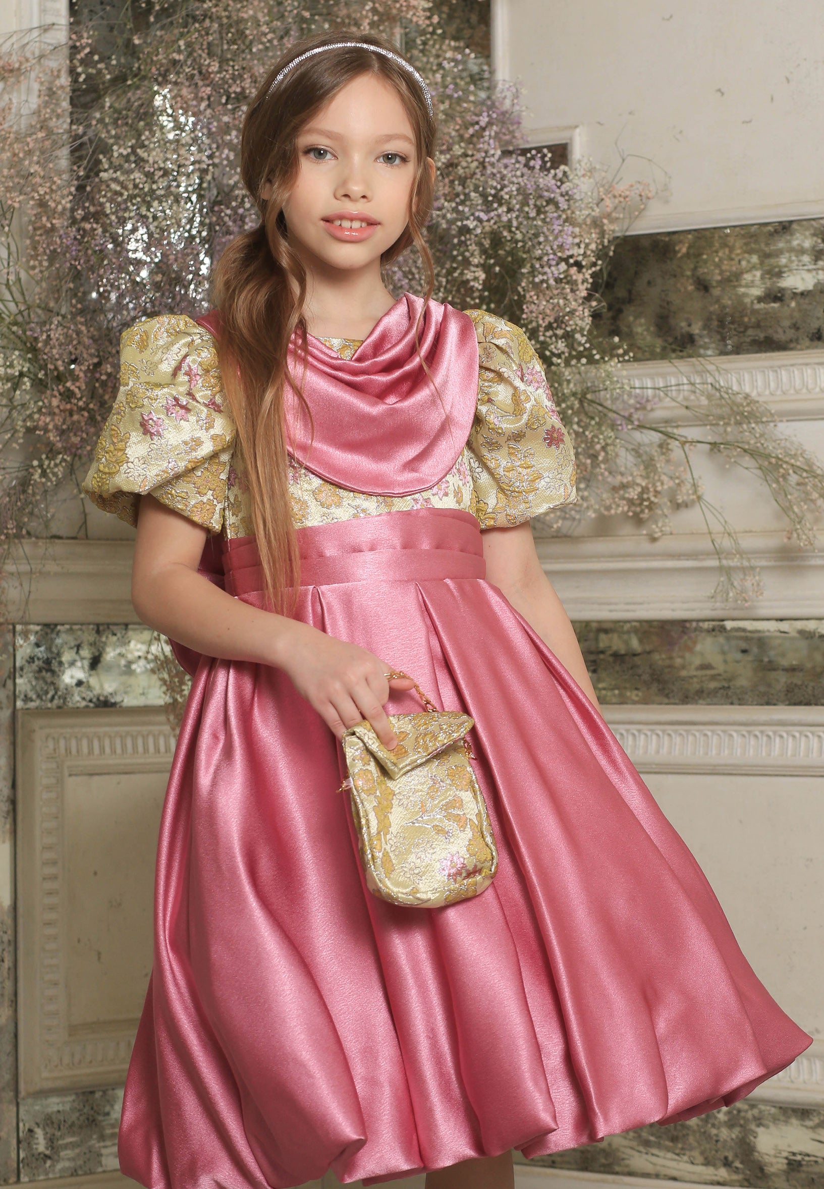 Baby Girl Short Sleeve Velours Patterned A - Line 4 - 8 Ages Special Occasion Dress pxn23yka002306 Features