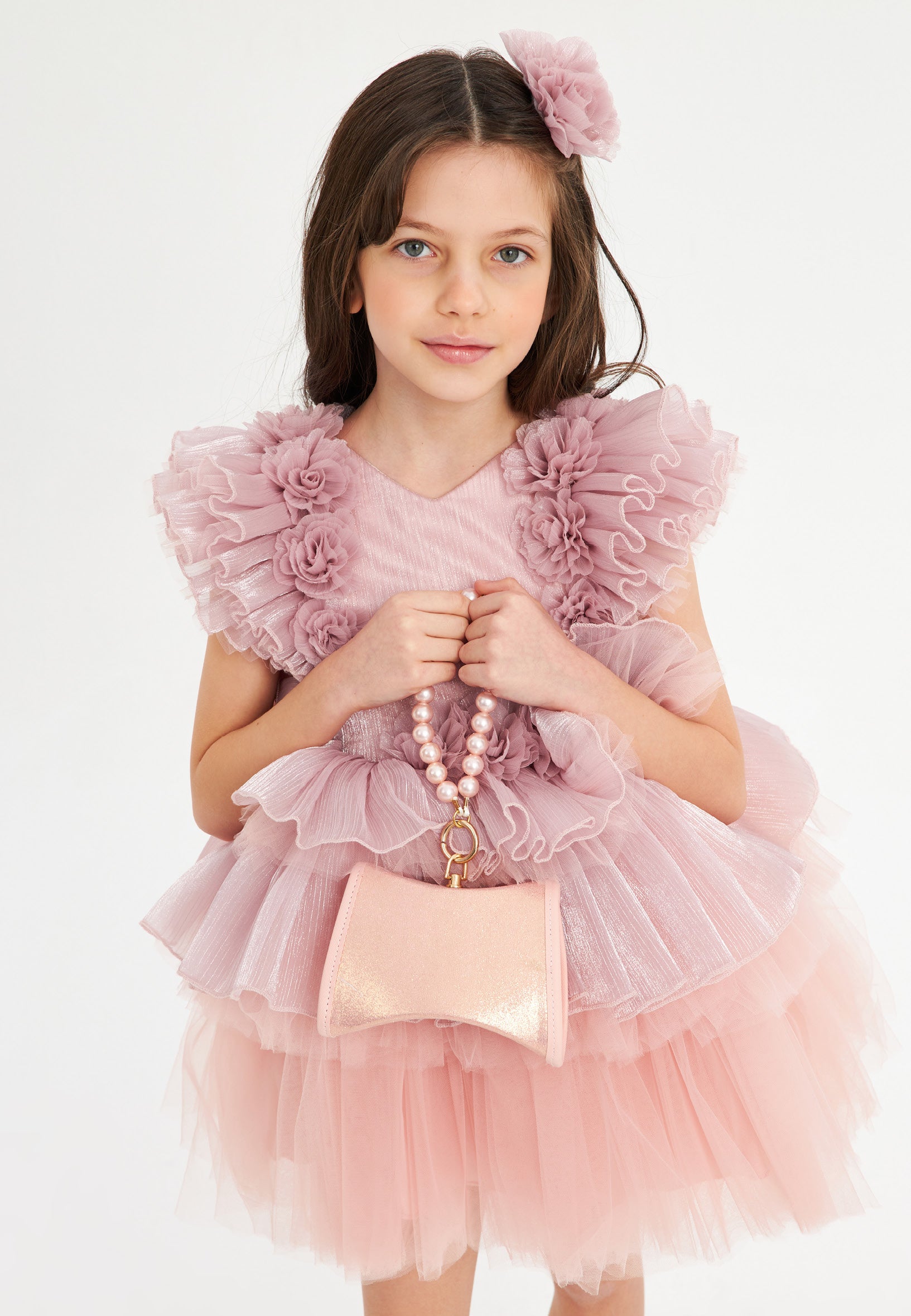 Baby Girl Sleeveless Tulle Solid Color A - Line 3 - 7 Ages Special Occasion Dress pgr7004 Features