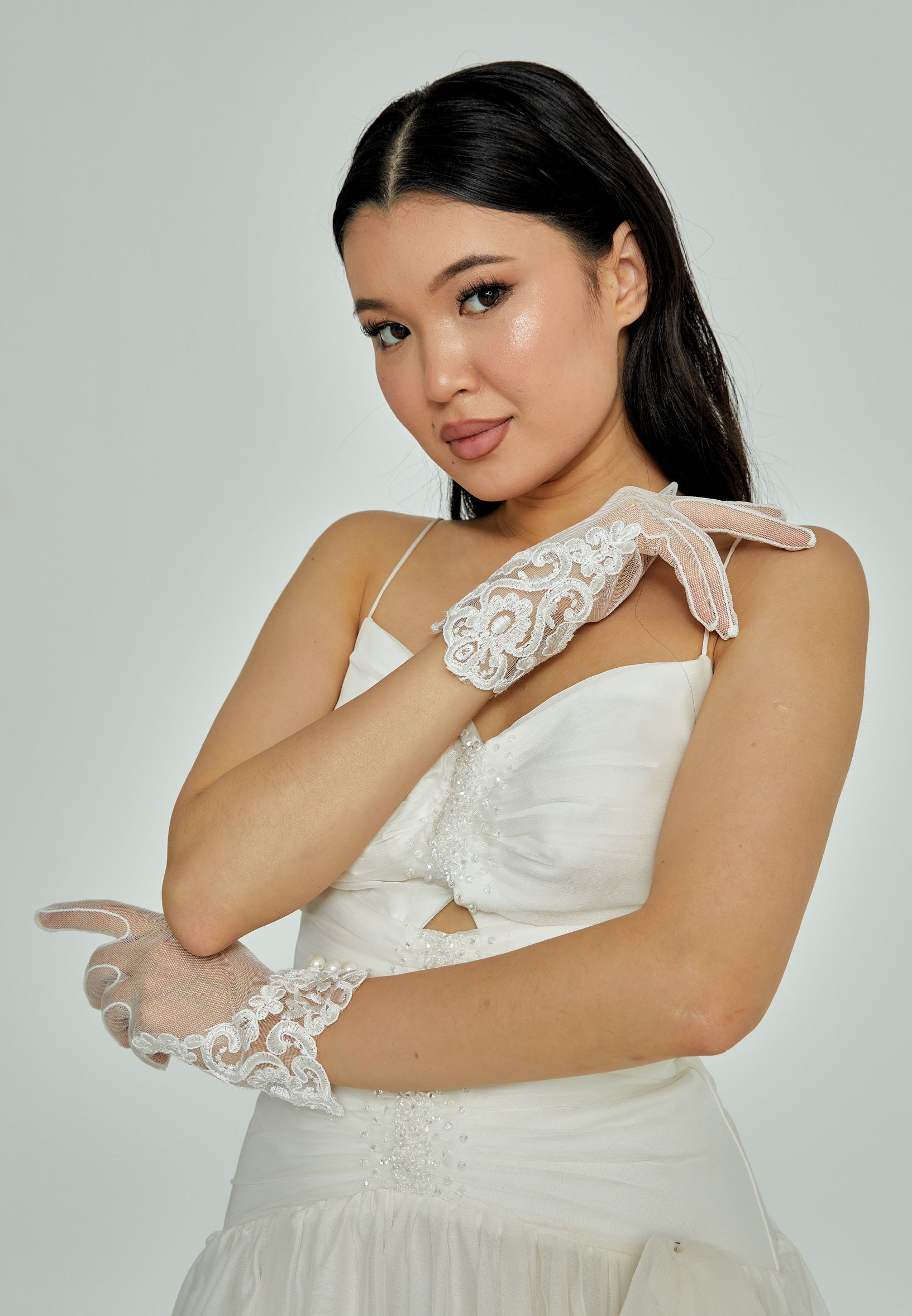 Lacy Tulle Bridal Gloves abbeld12044 Features