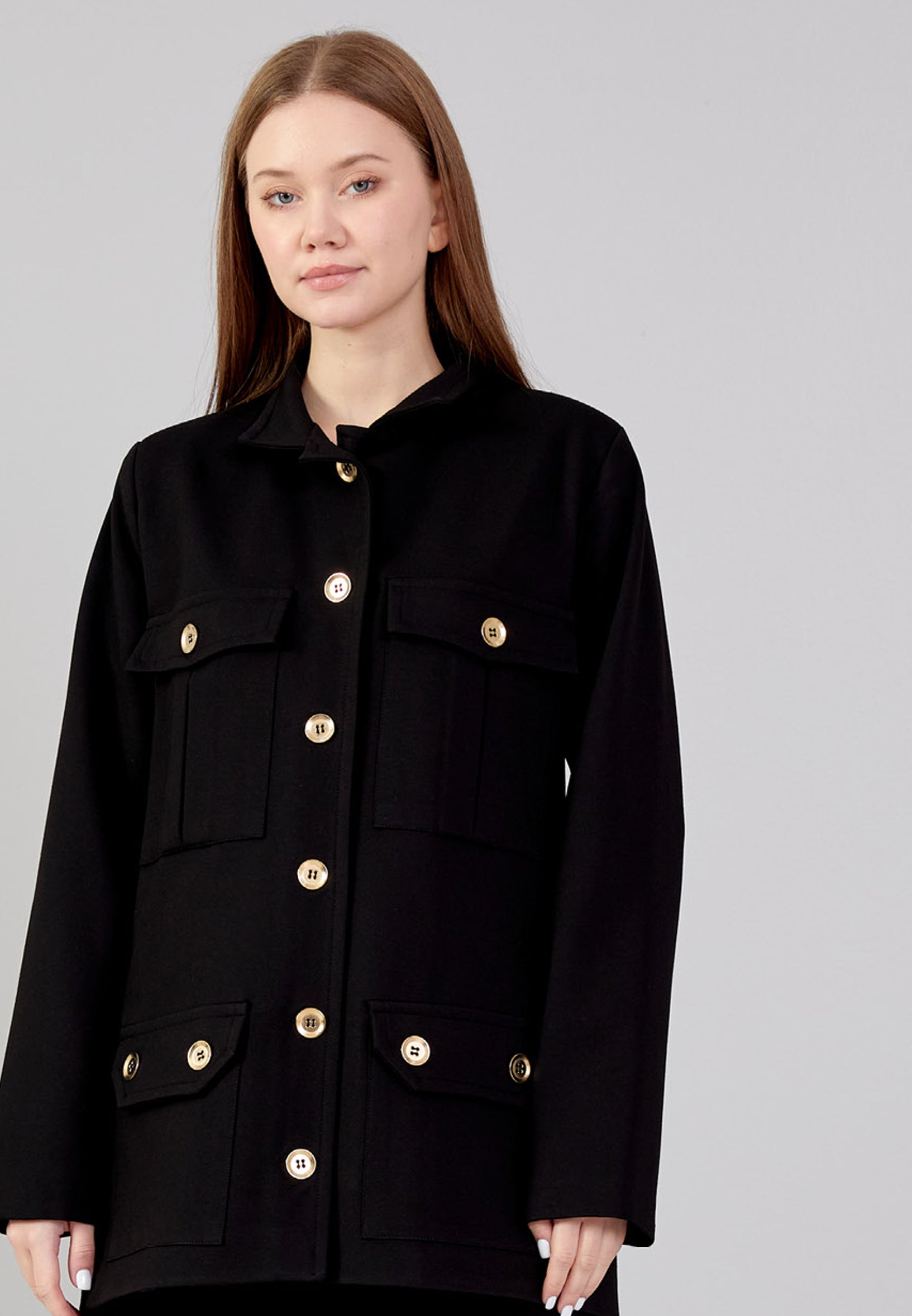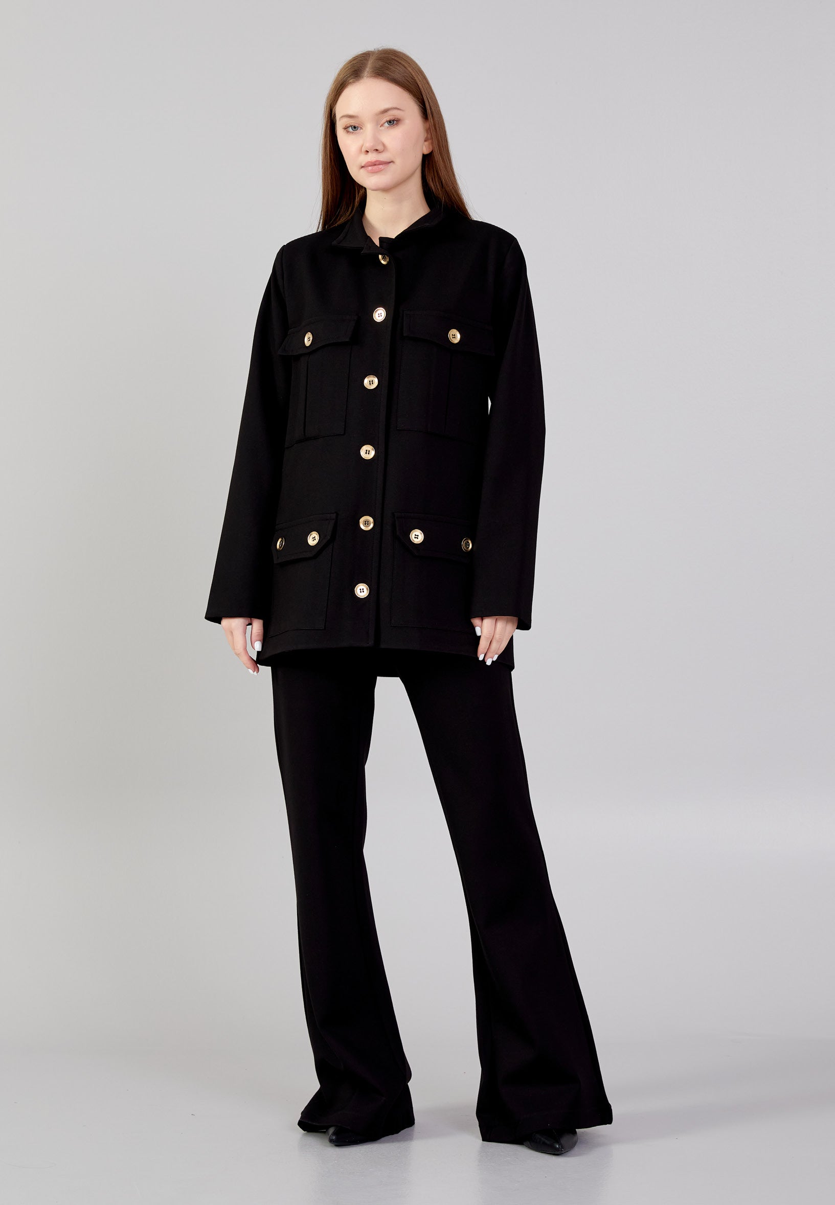 Long Sleeve Crepe Solid Color Regular Jacket noz24k40076 Features