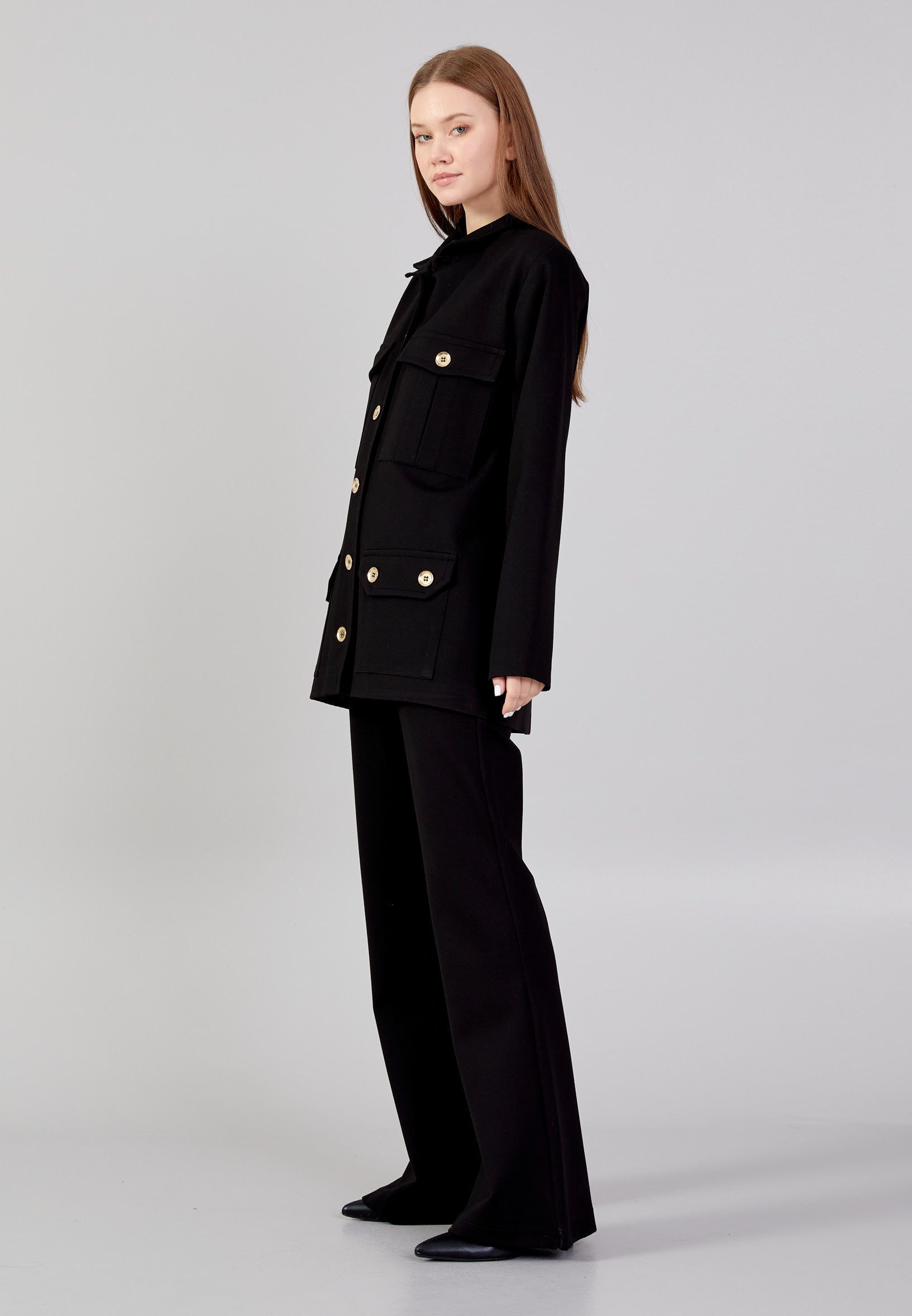 Long Sleeve Crepe Solid Color Regular Jacket noz24k40076