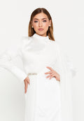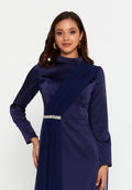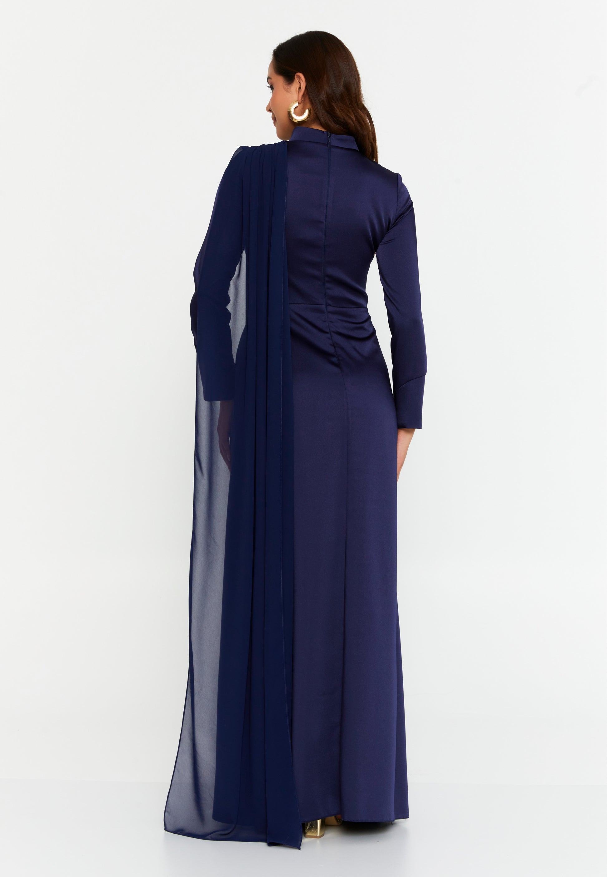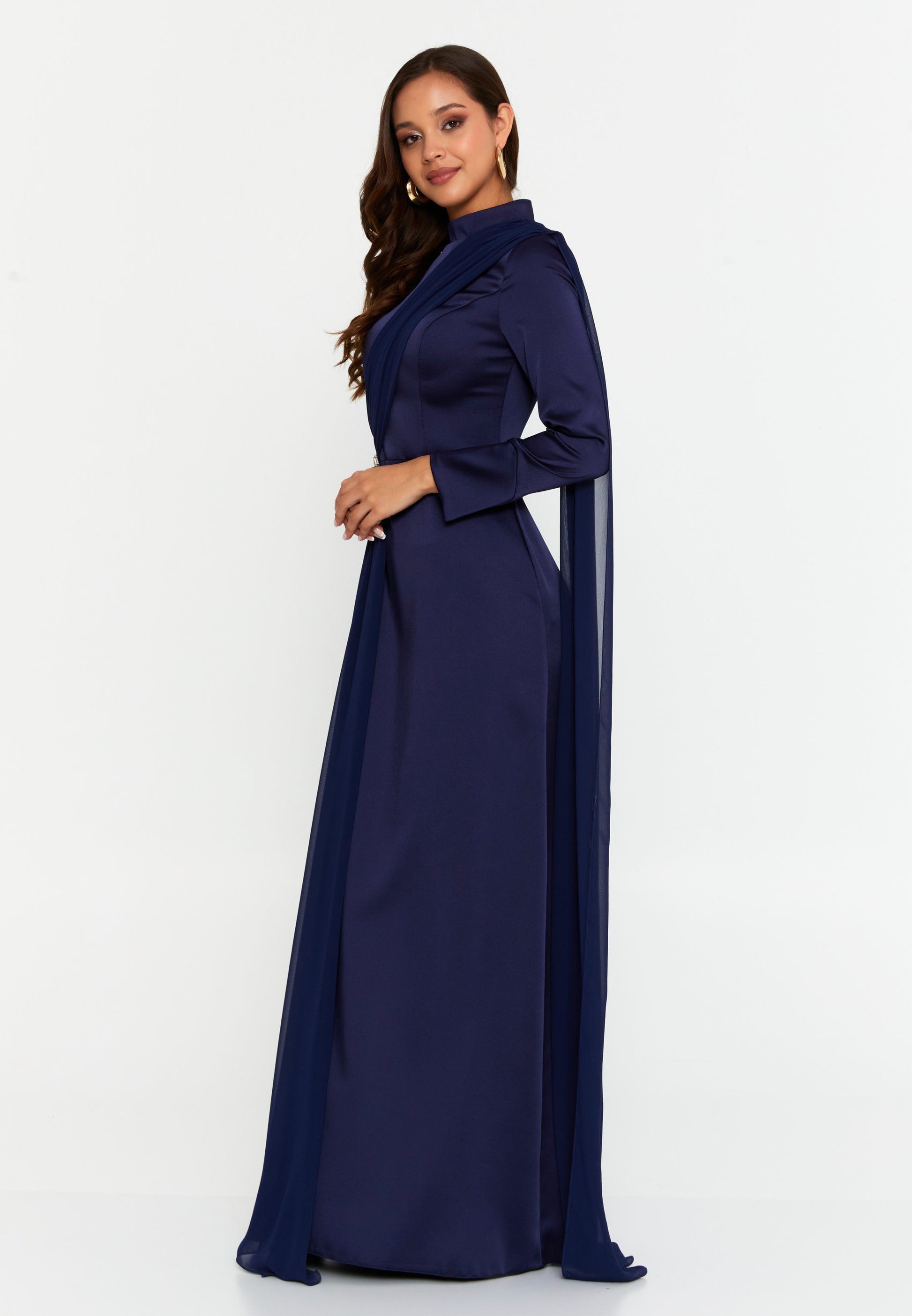 Long Sleeve Maxi Satin Column Regular Wedding Guest Dress fvl7099
