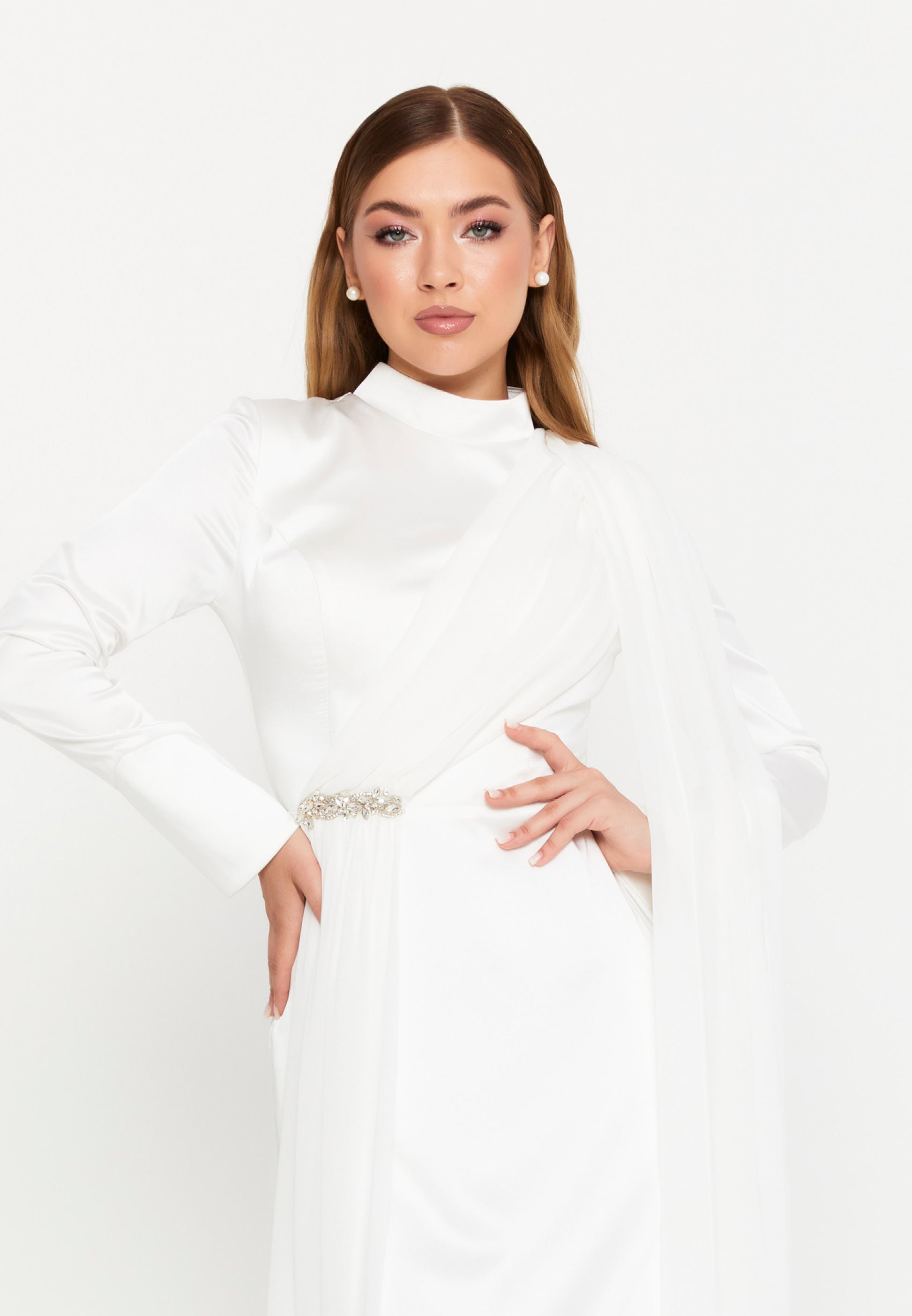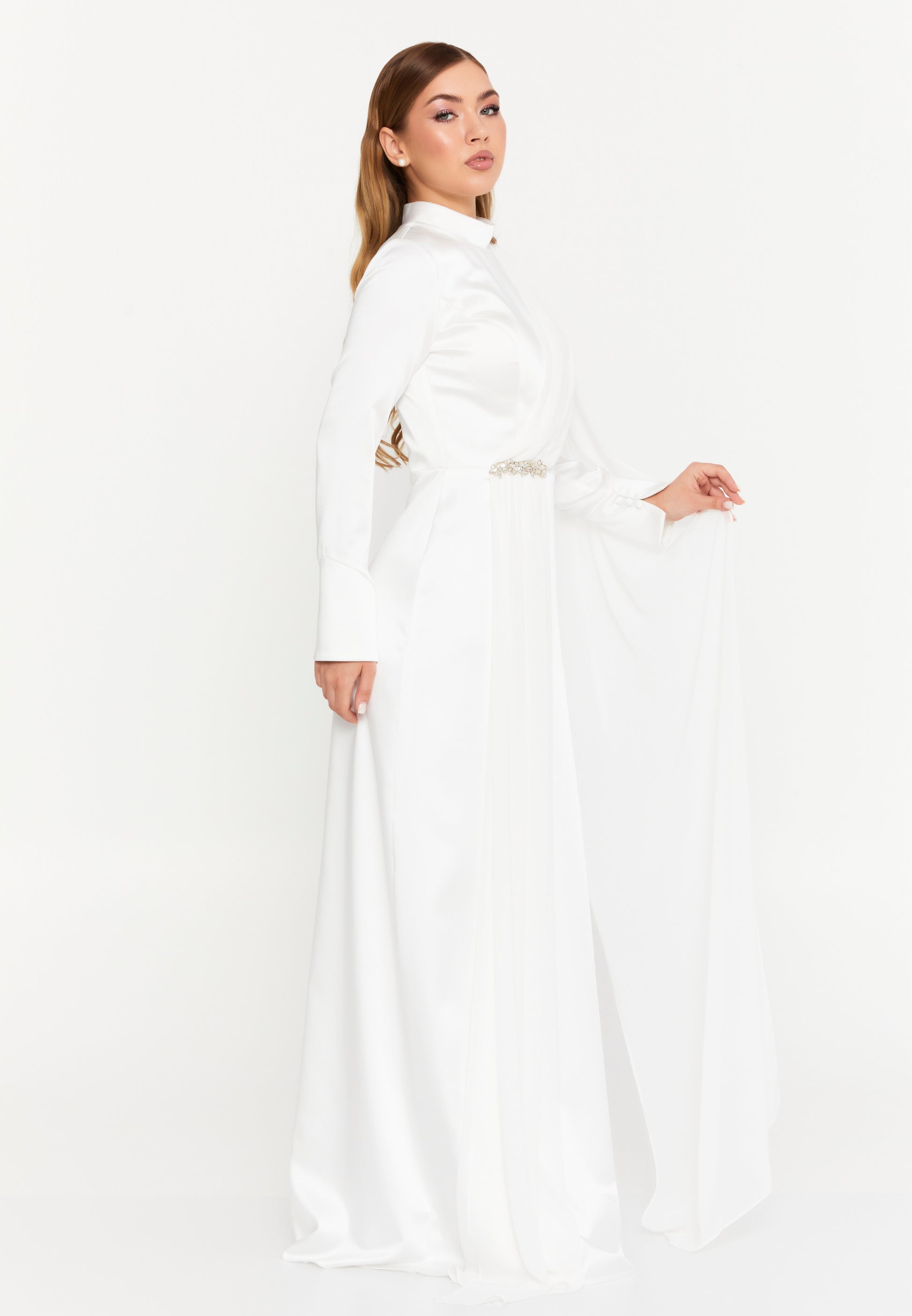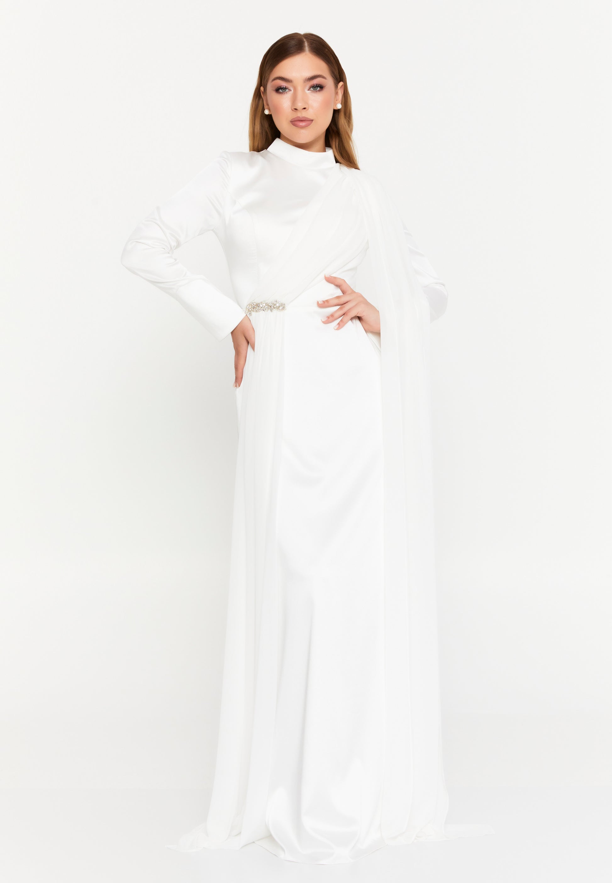 Long Sleeve Maxi Satin Column Regular Wedding Guest Dress fvl7099 Features