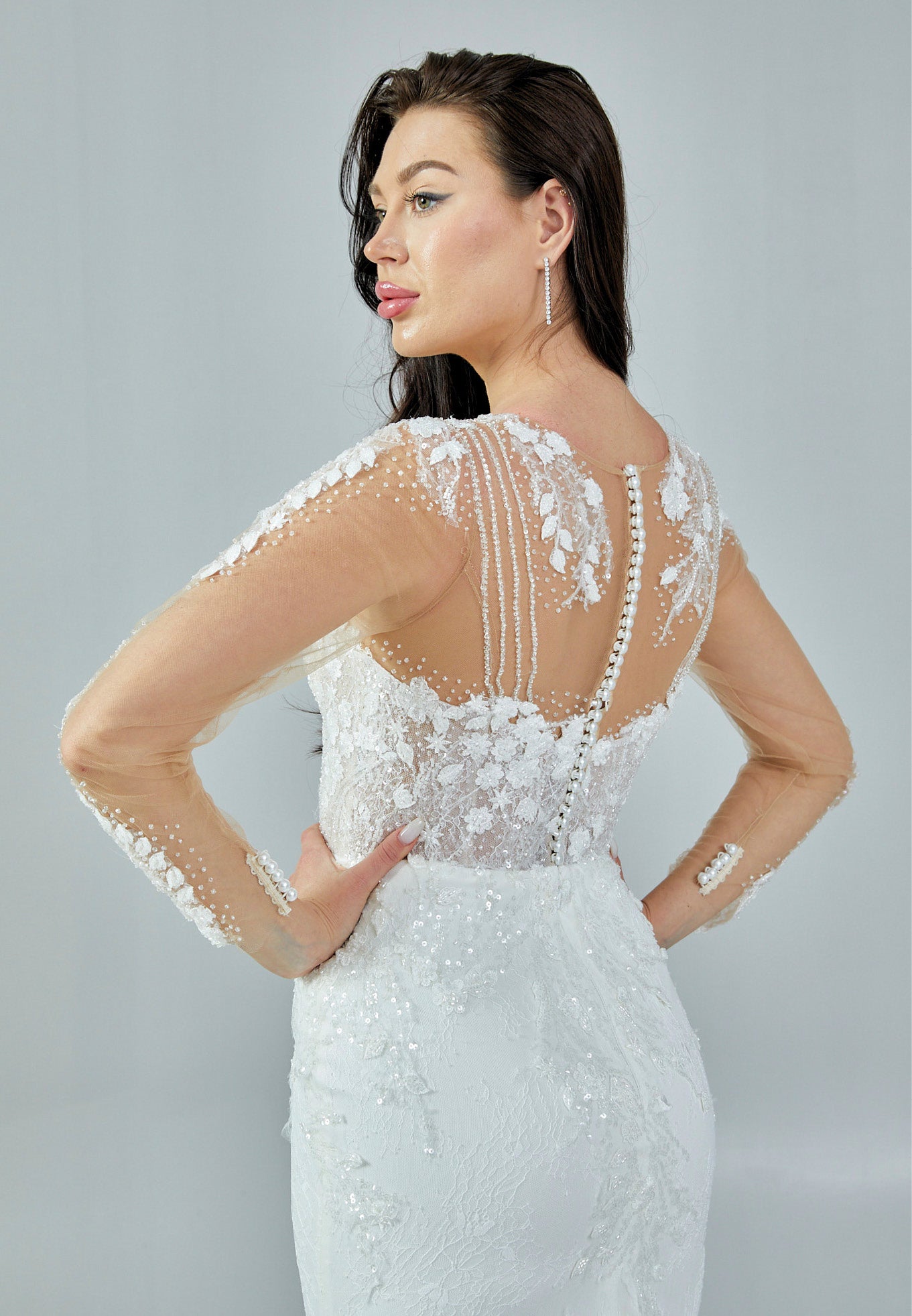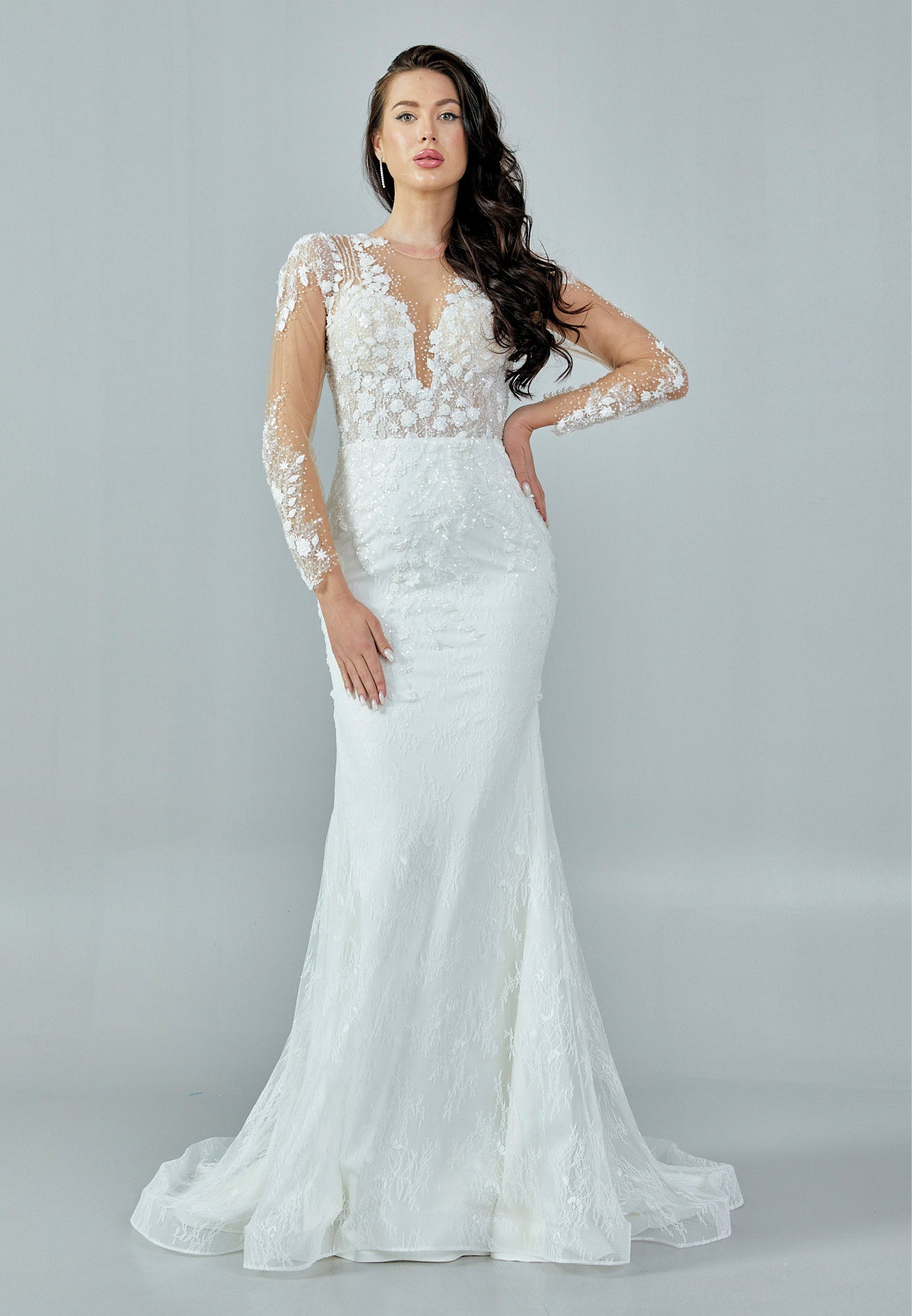 Long Sleeve Maxi Tulle Regular Wedding Dress jnr3075