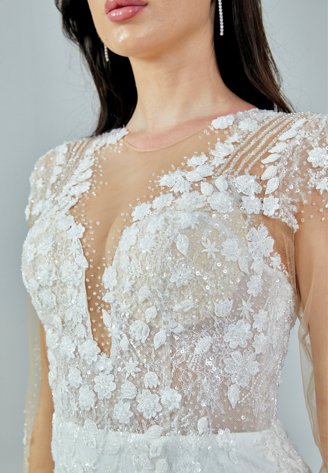 Long Sleeve Maxi Tulle Regular Wedding Dress jnr3075 Features