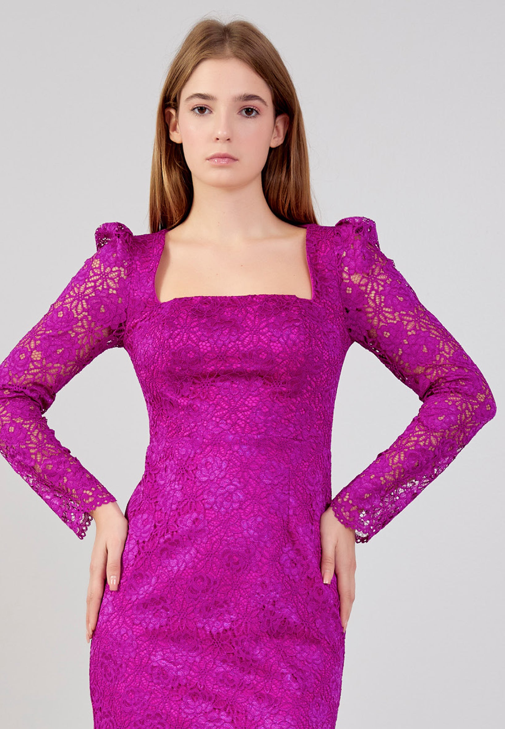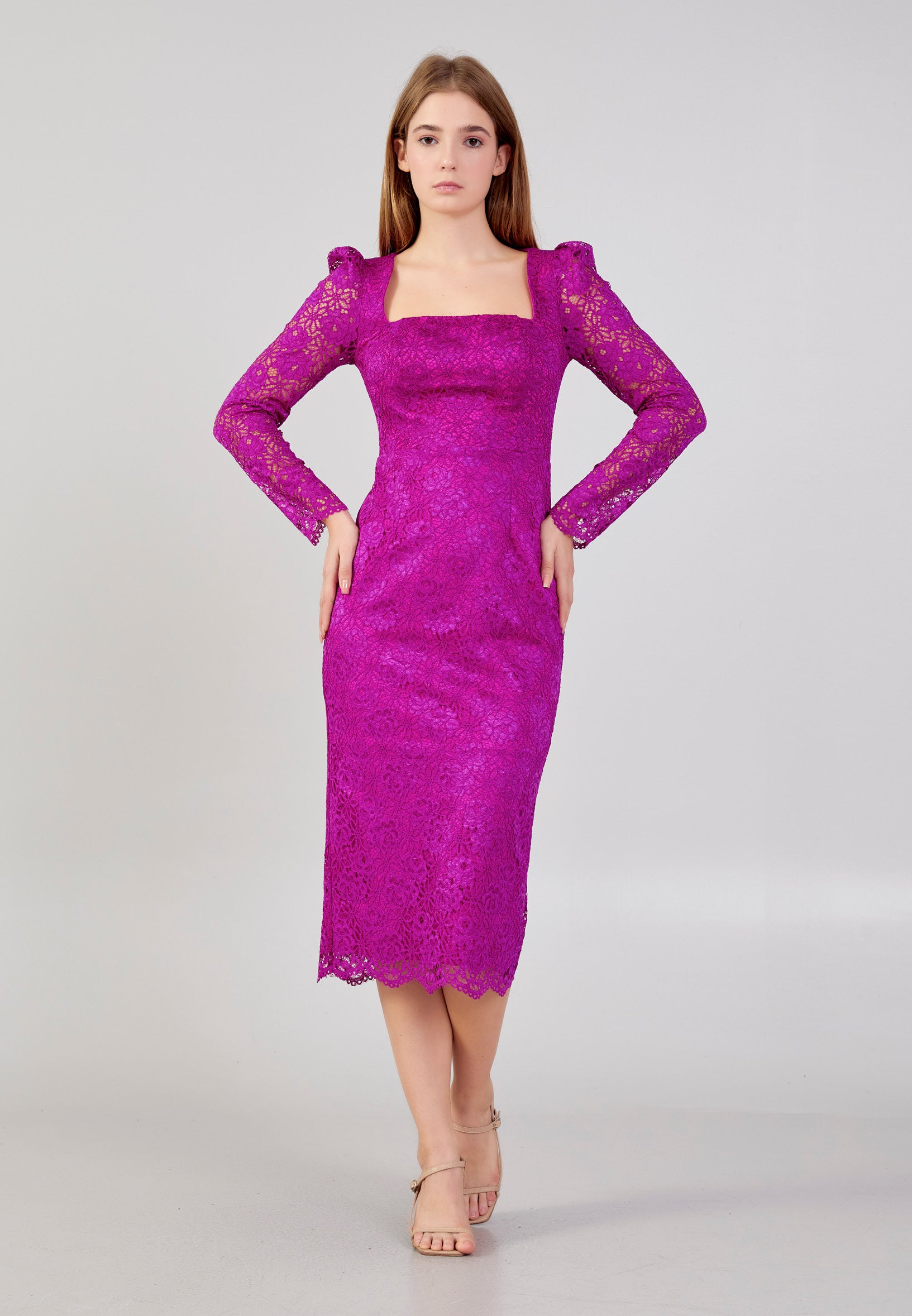 Long Sleeve Midi Lace Column Regular Evening Dress zff1059 Features