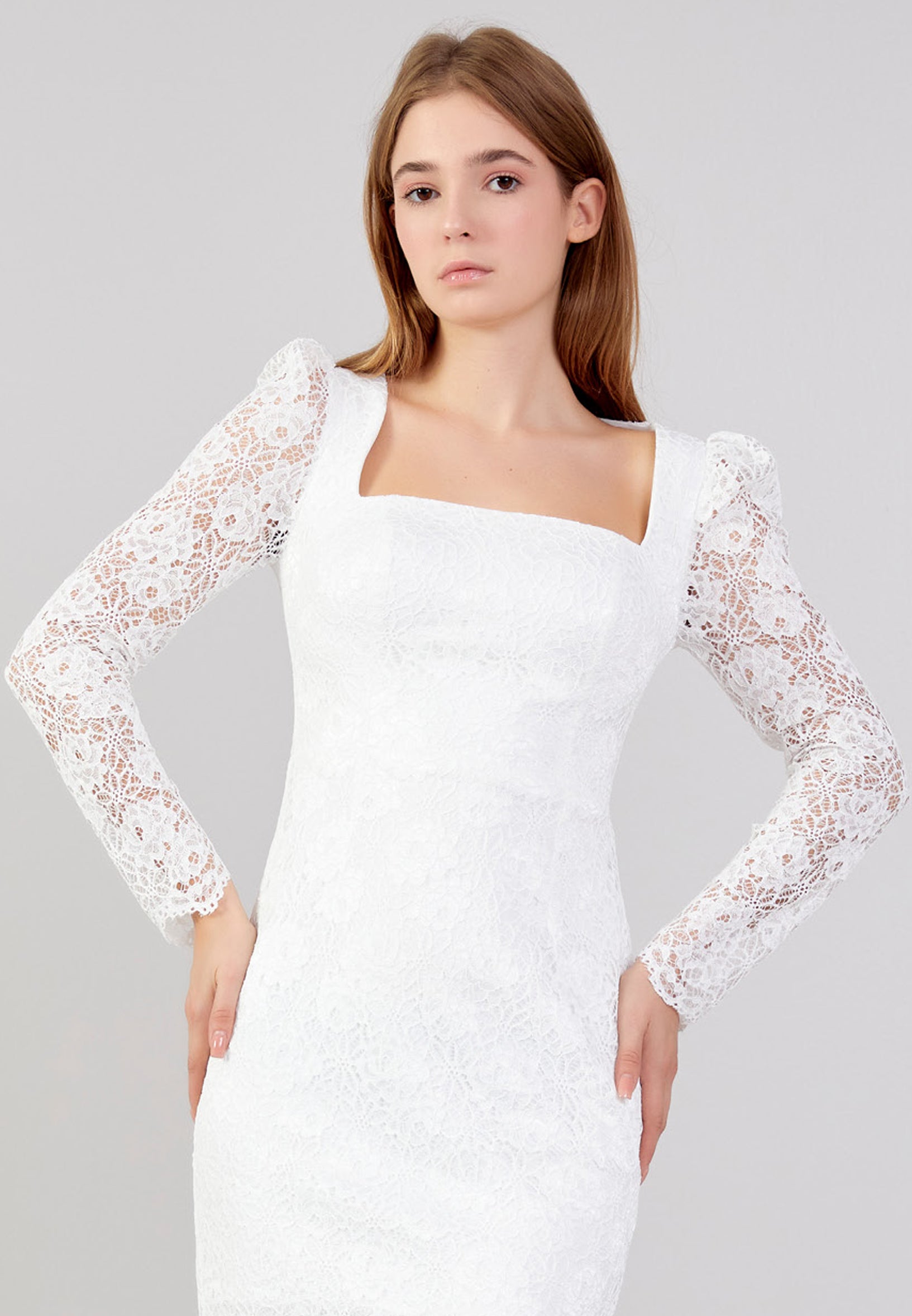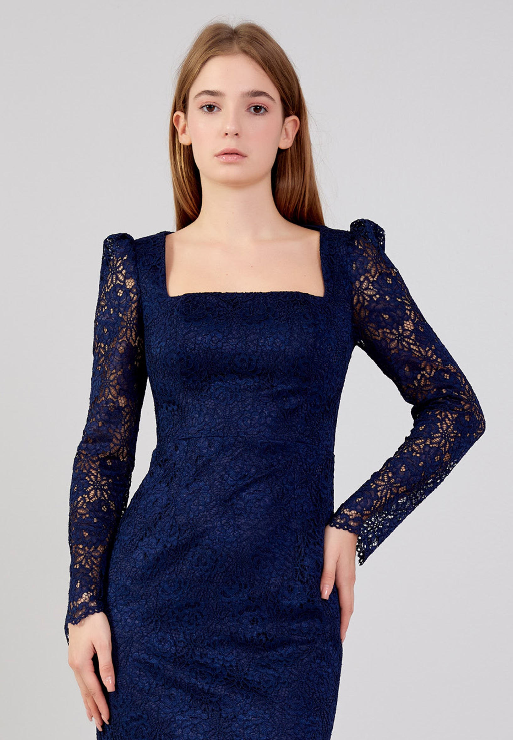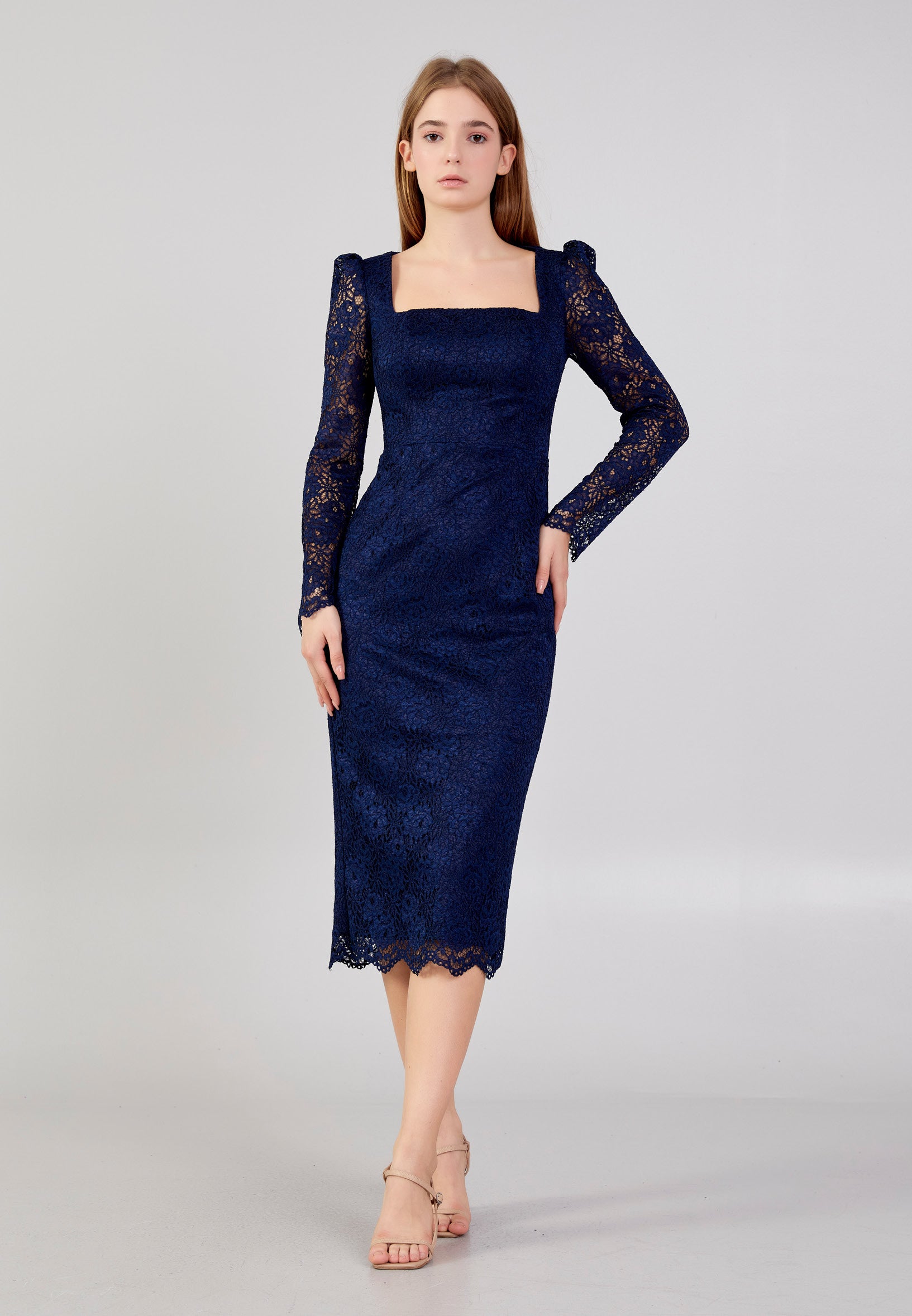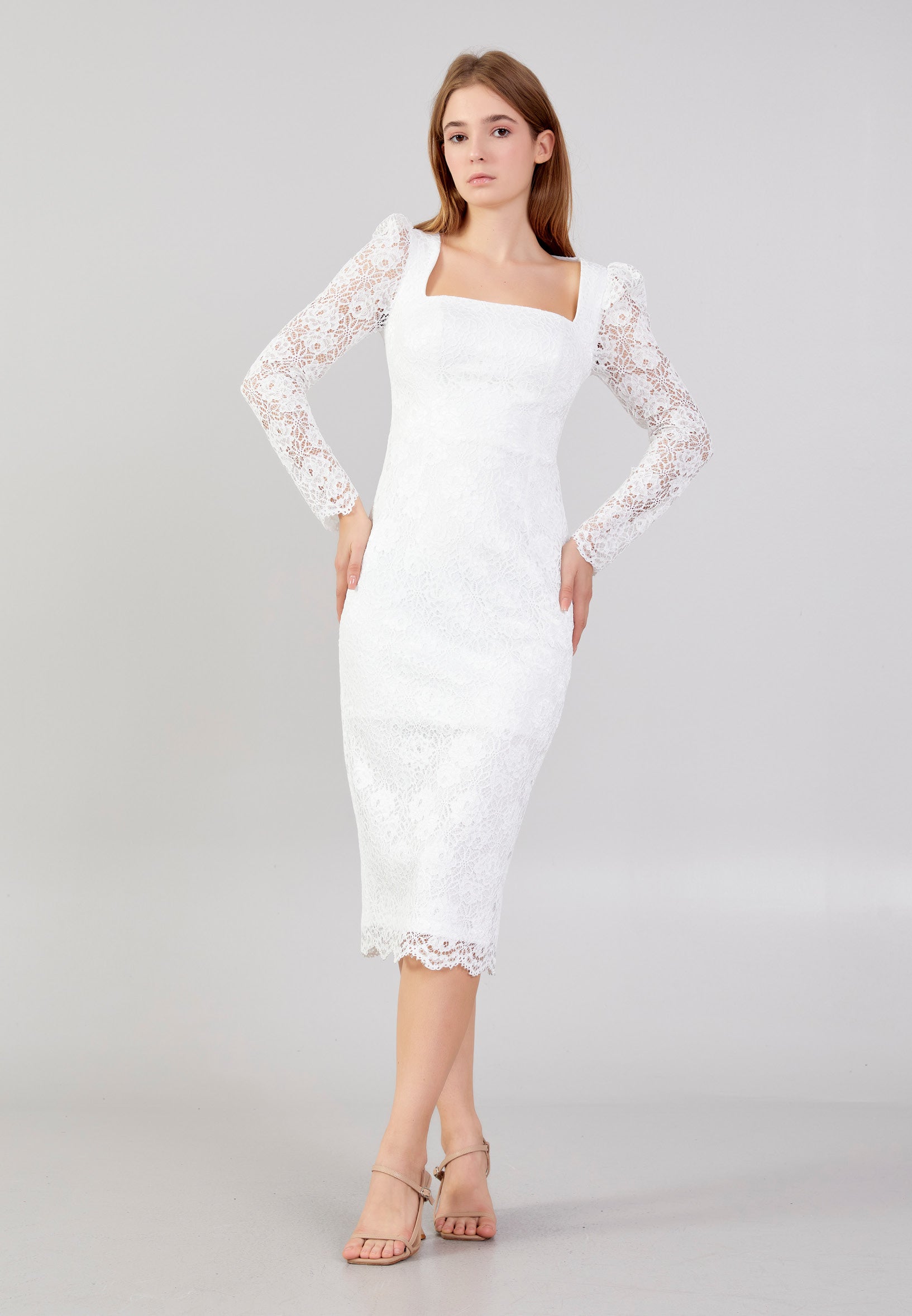 Long Sleeve Midi Lace Column Regular Evening Dress zff1059