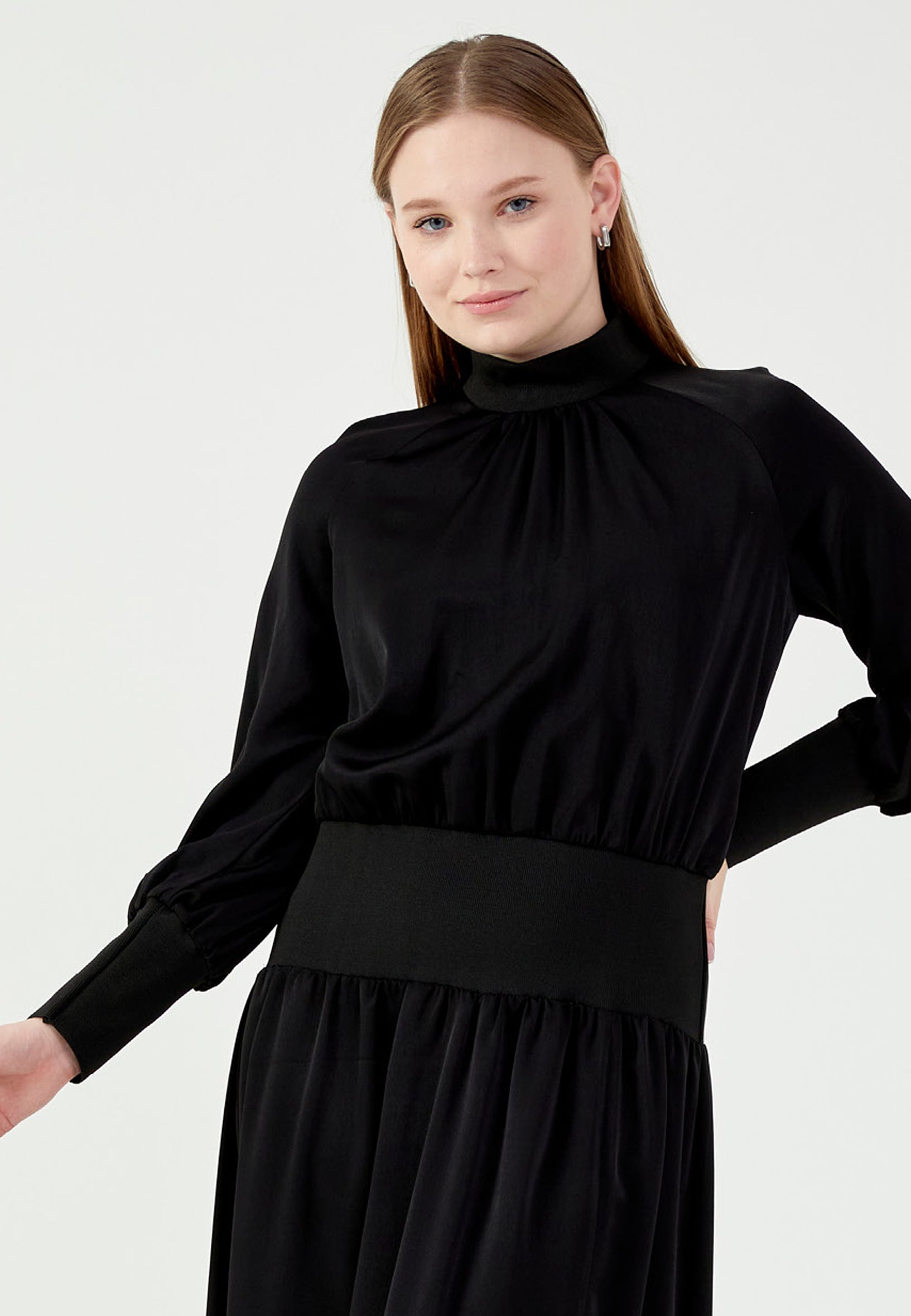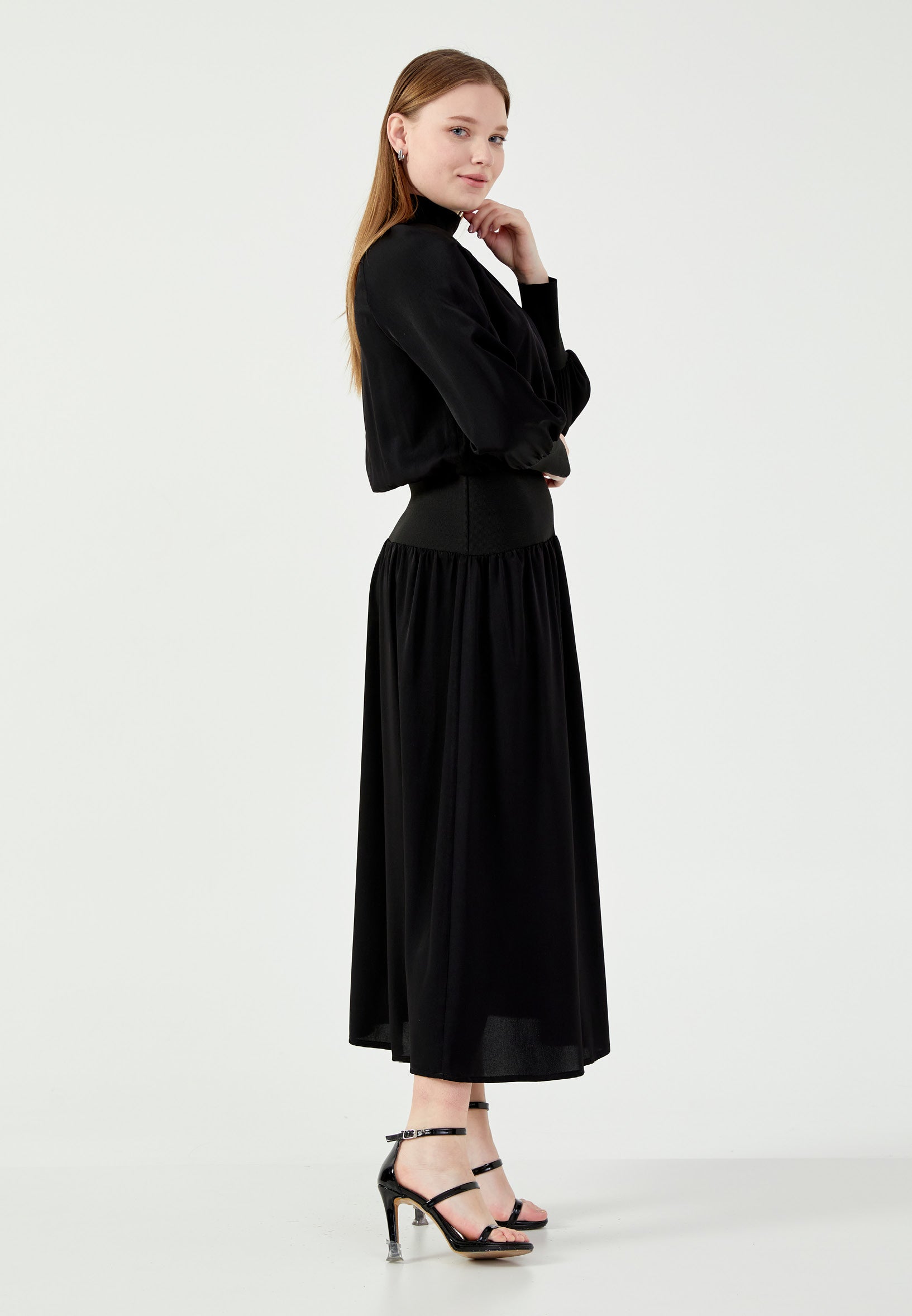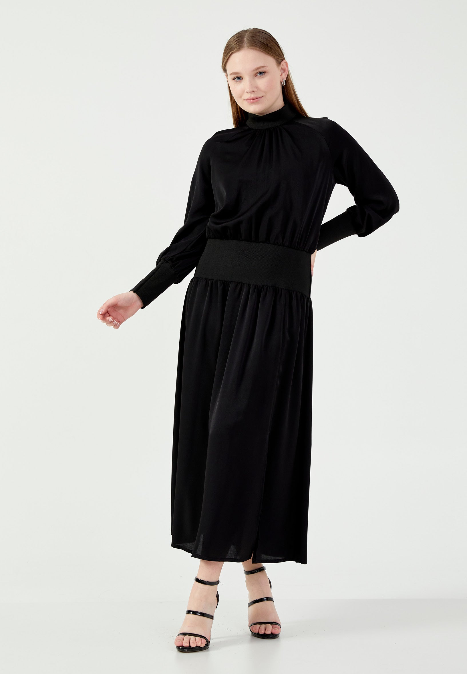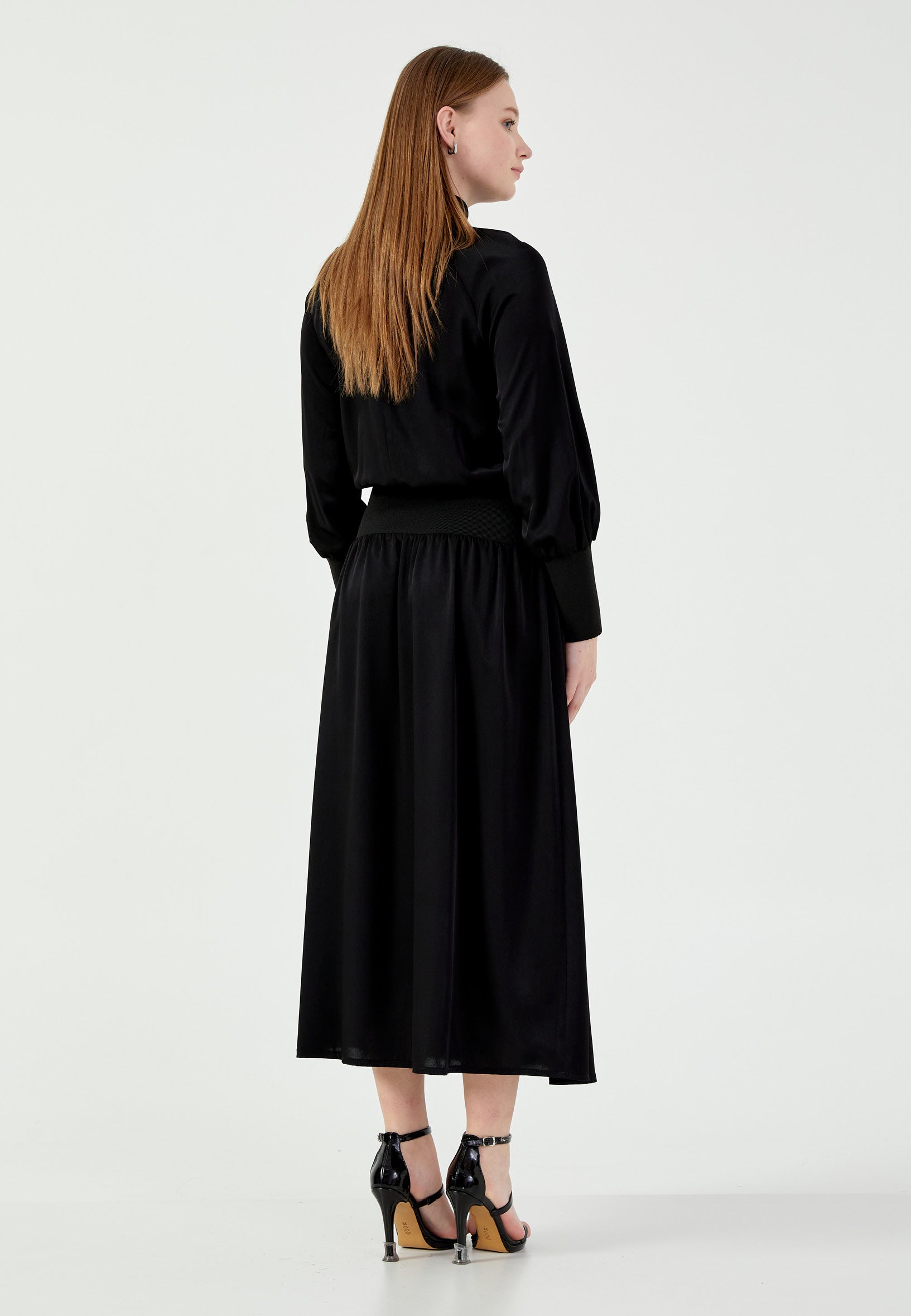 Long Sleeve Midi Satin Column Regular Casual Dress mrl1505 Features