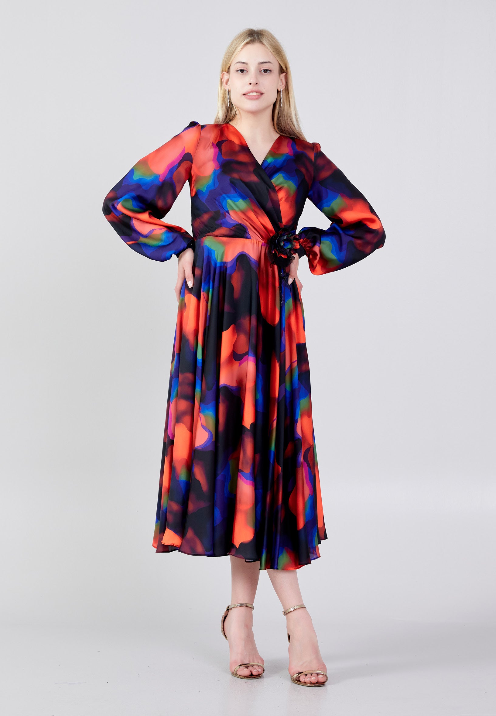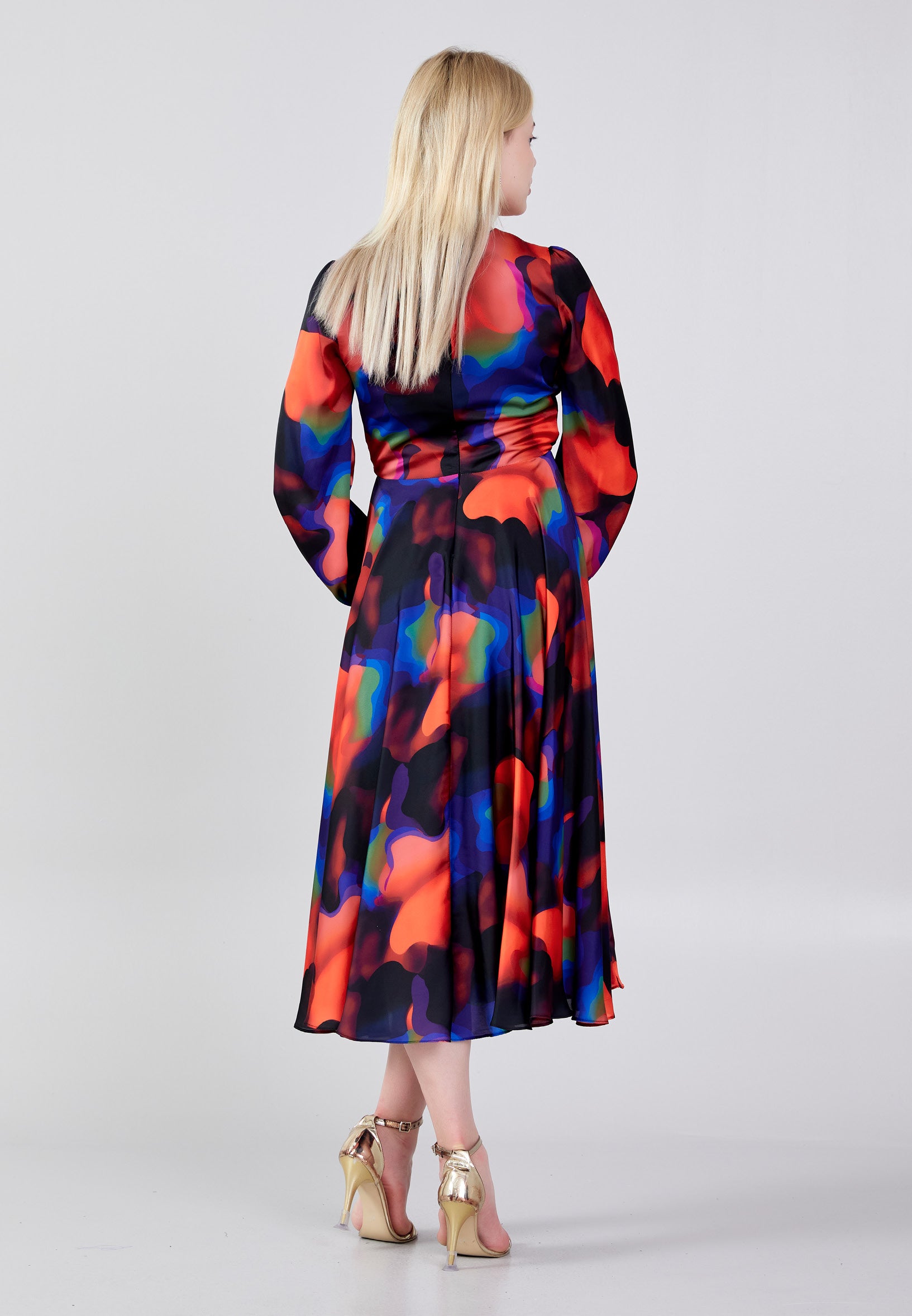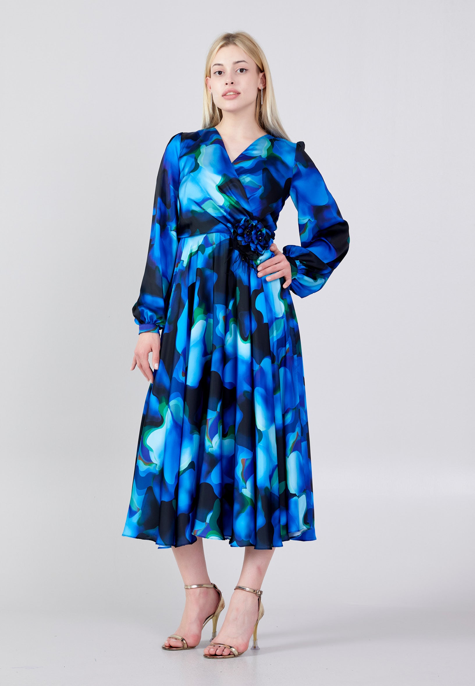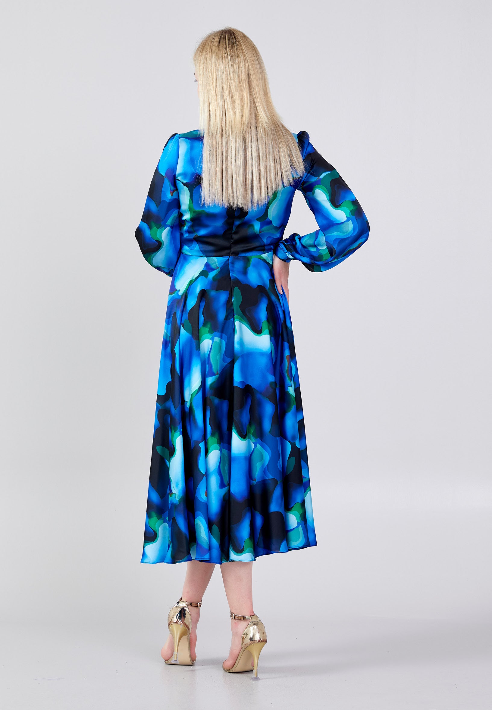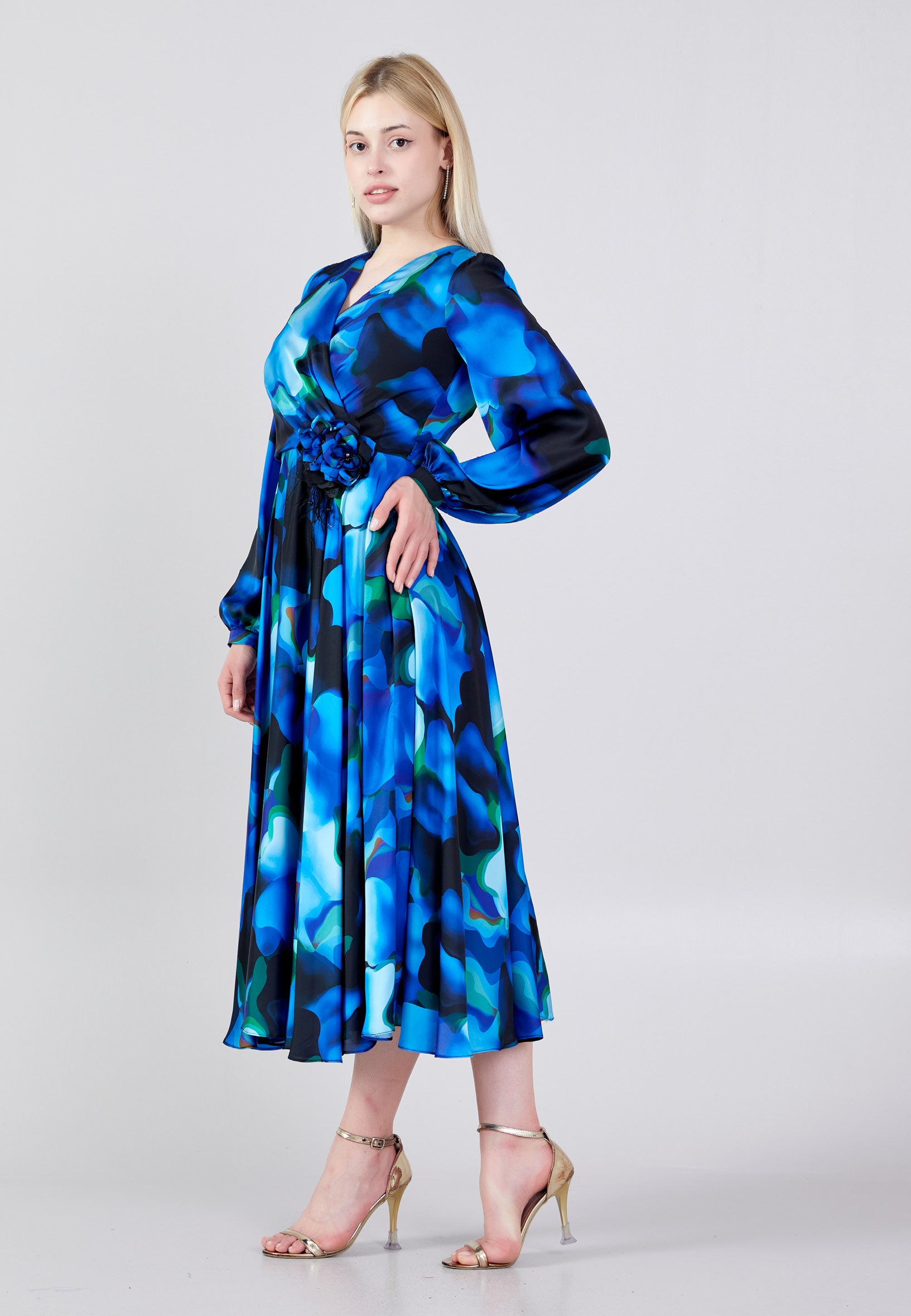 Long Sleeve Midi Satin Column Regular Evening Dress see7918