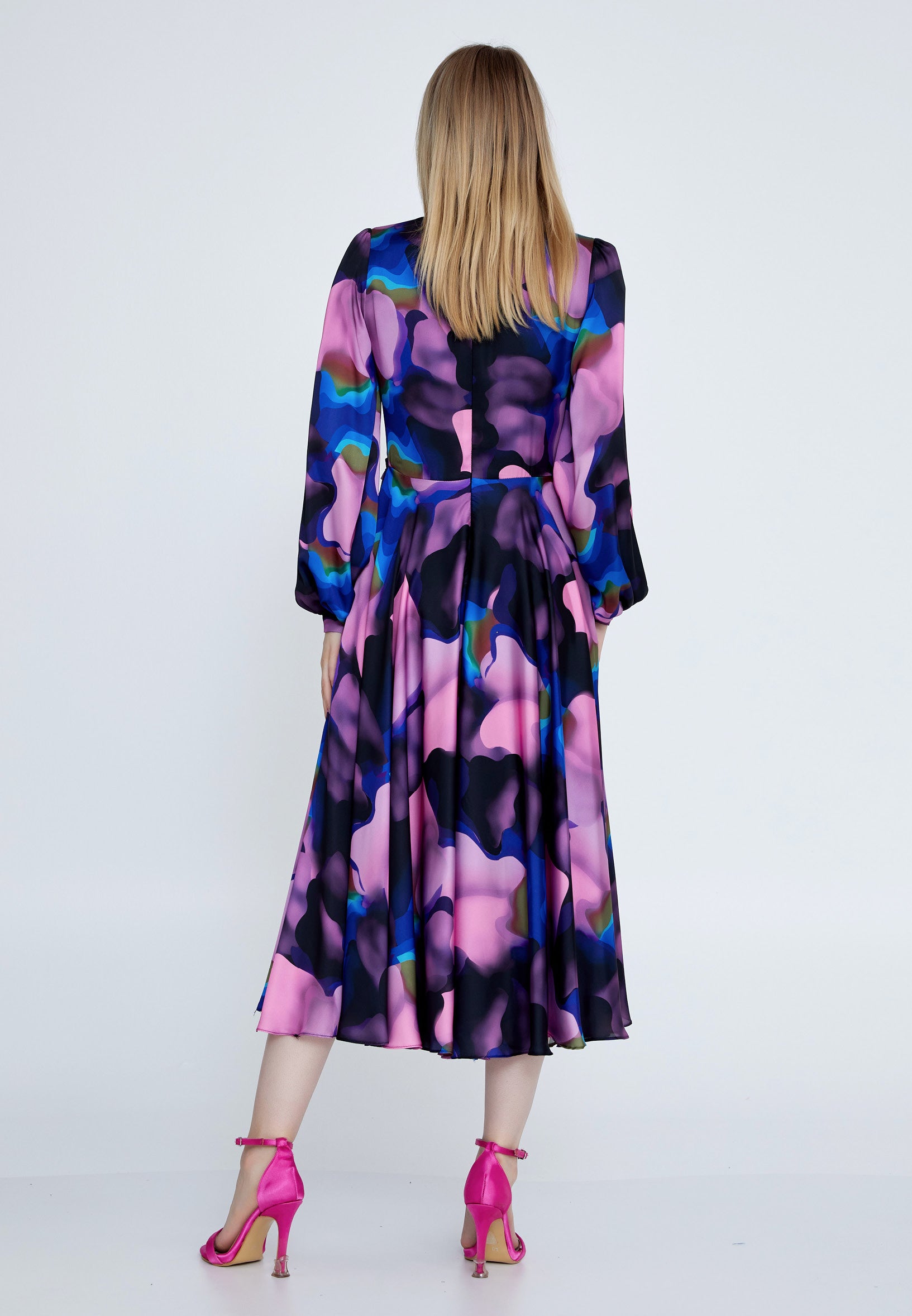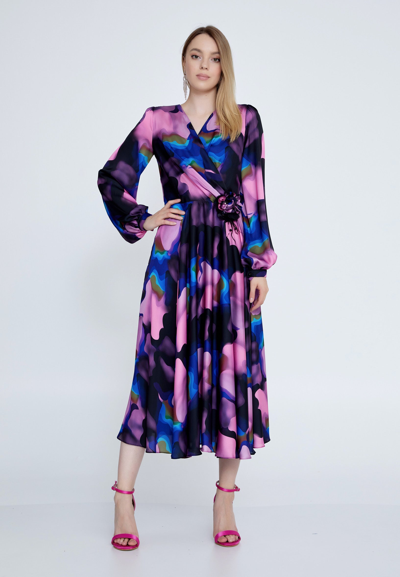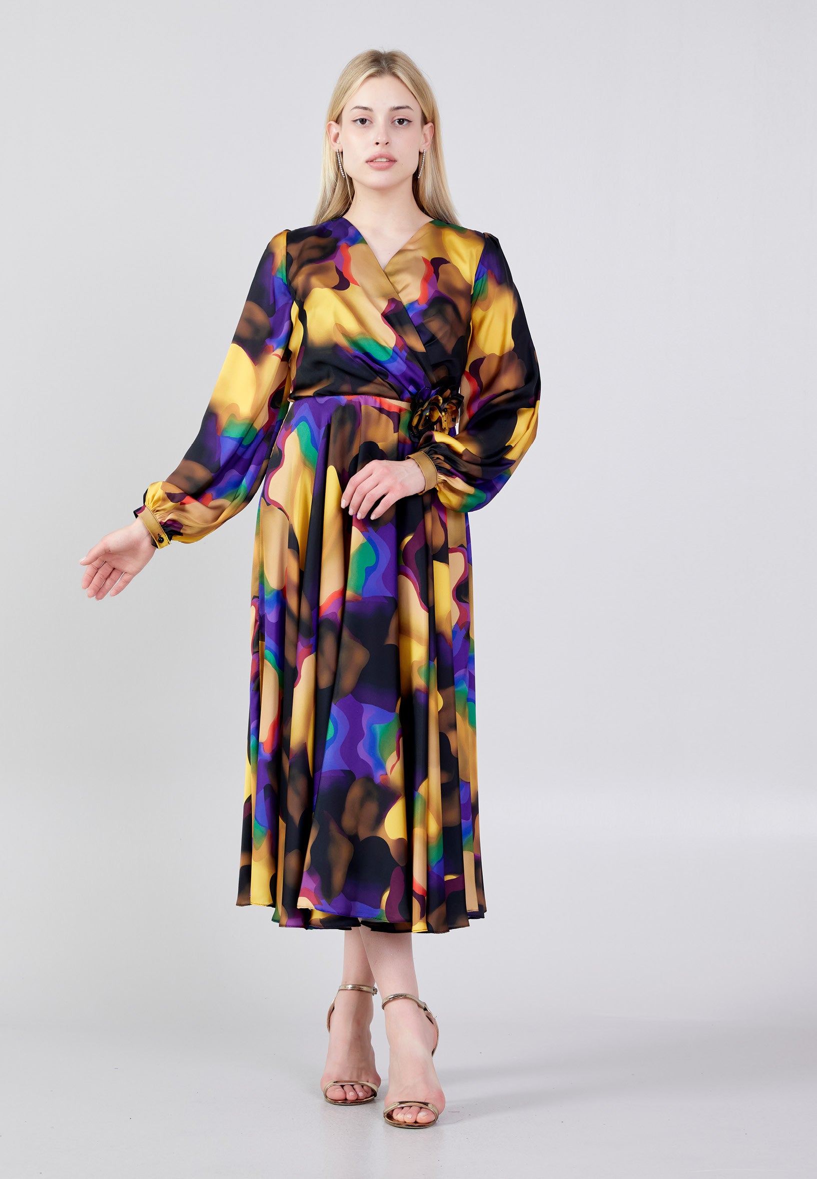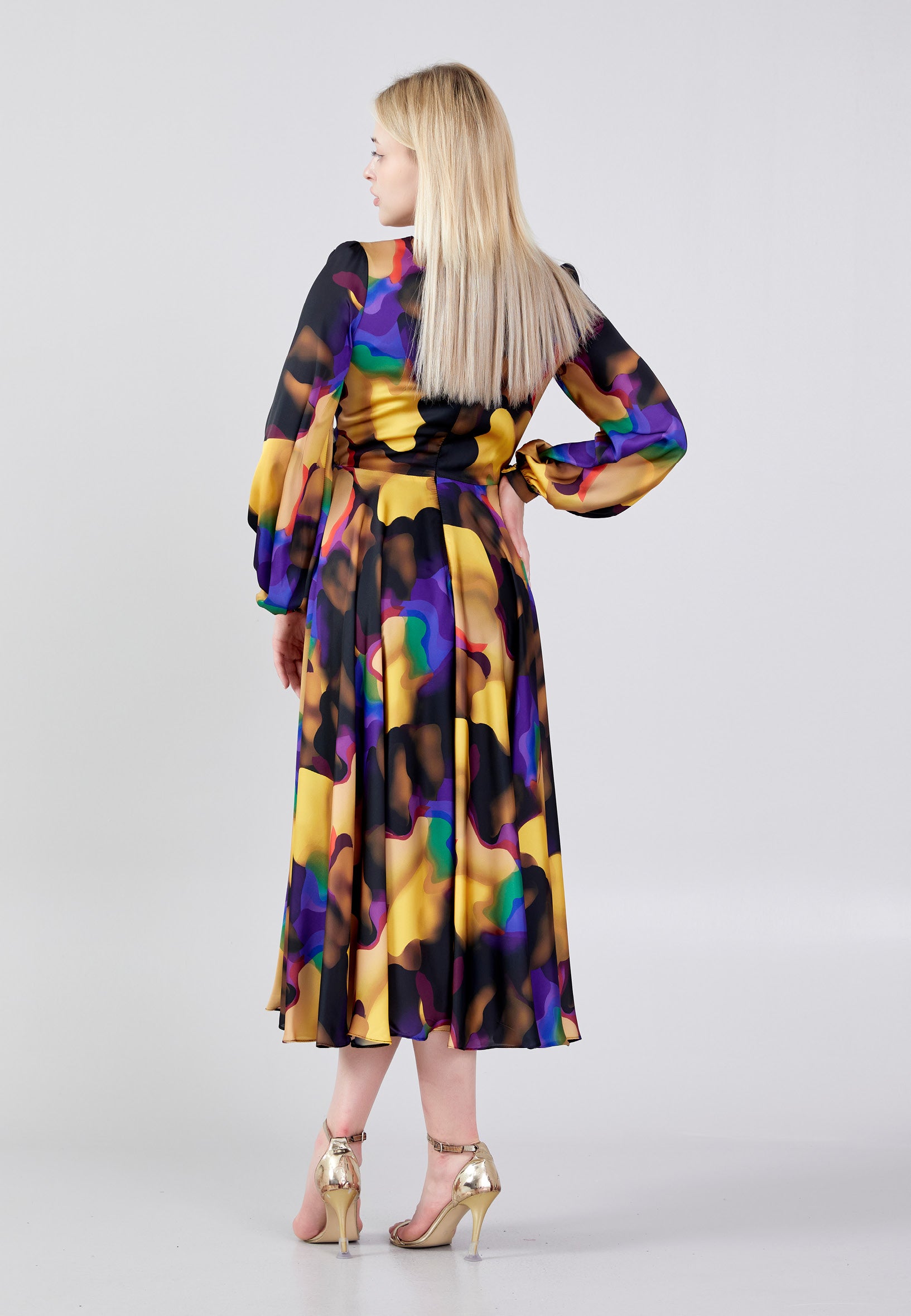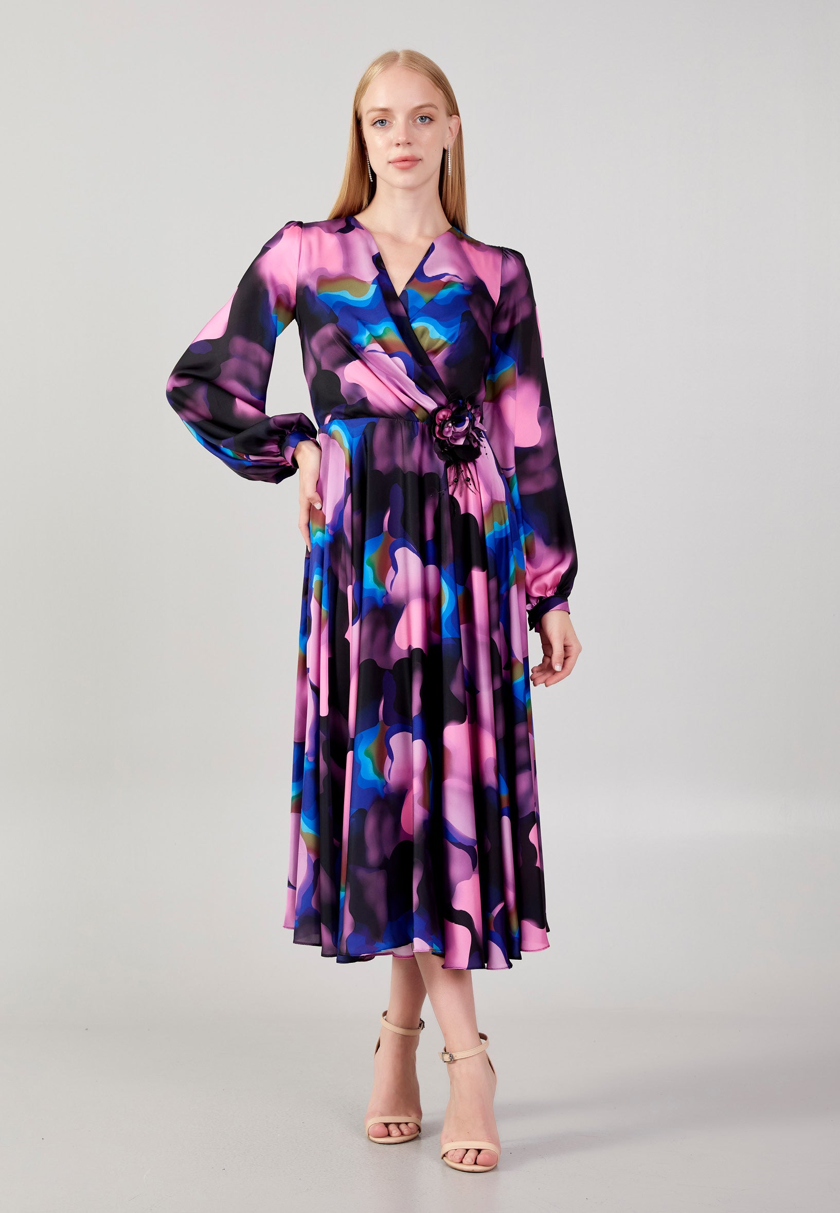 Long Sleeve Midi Satin Column Regular Evening Dress see7918