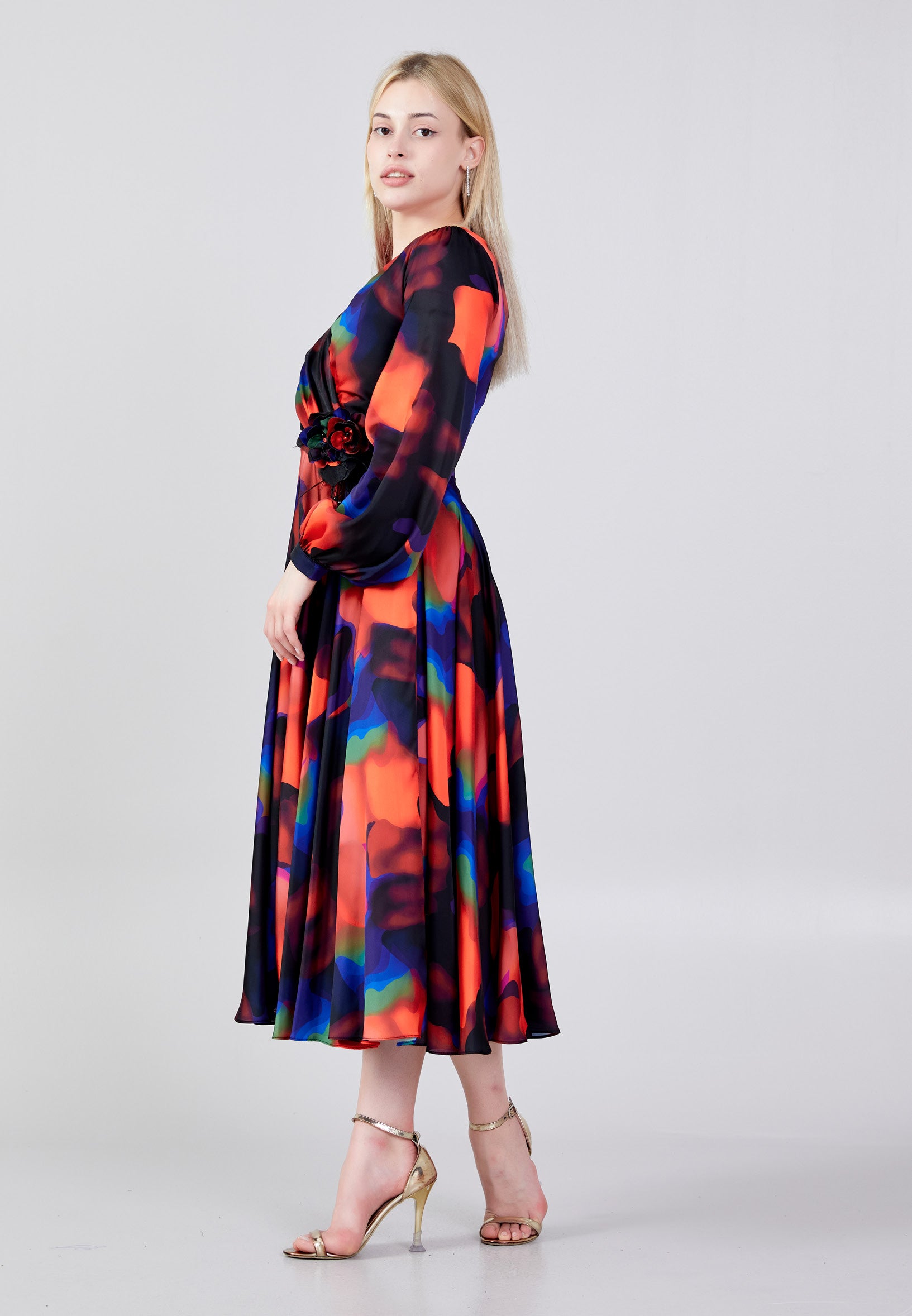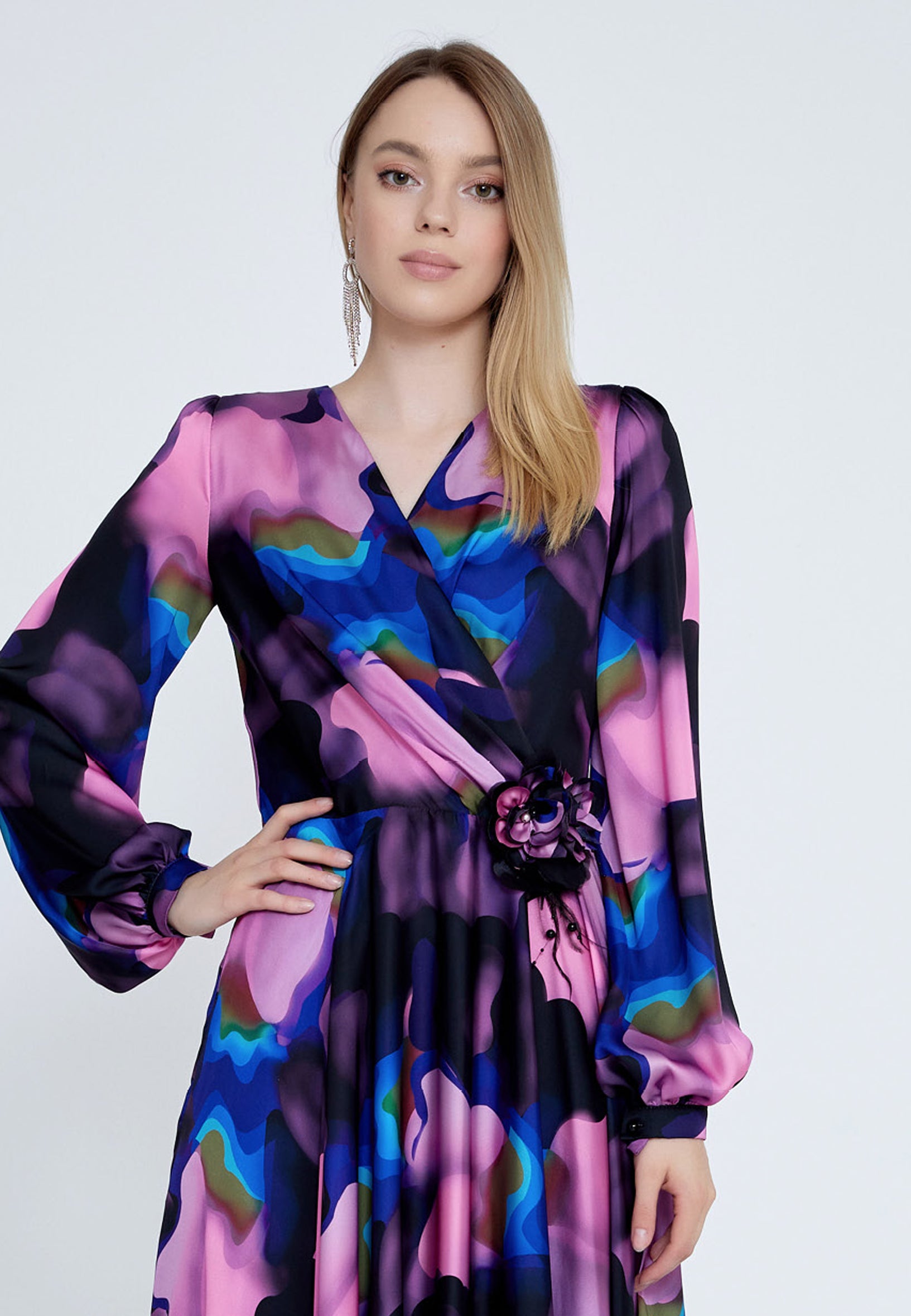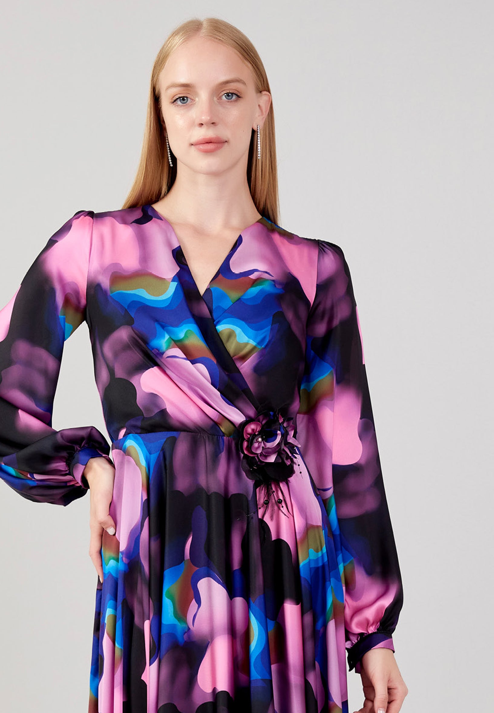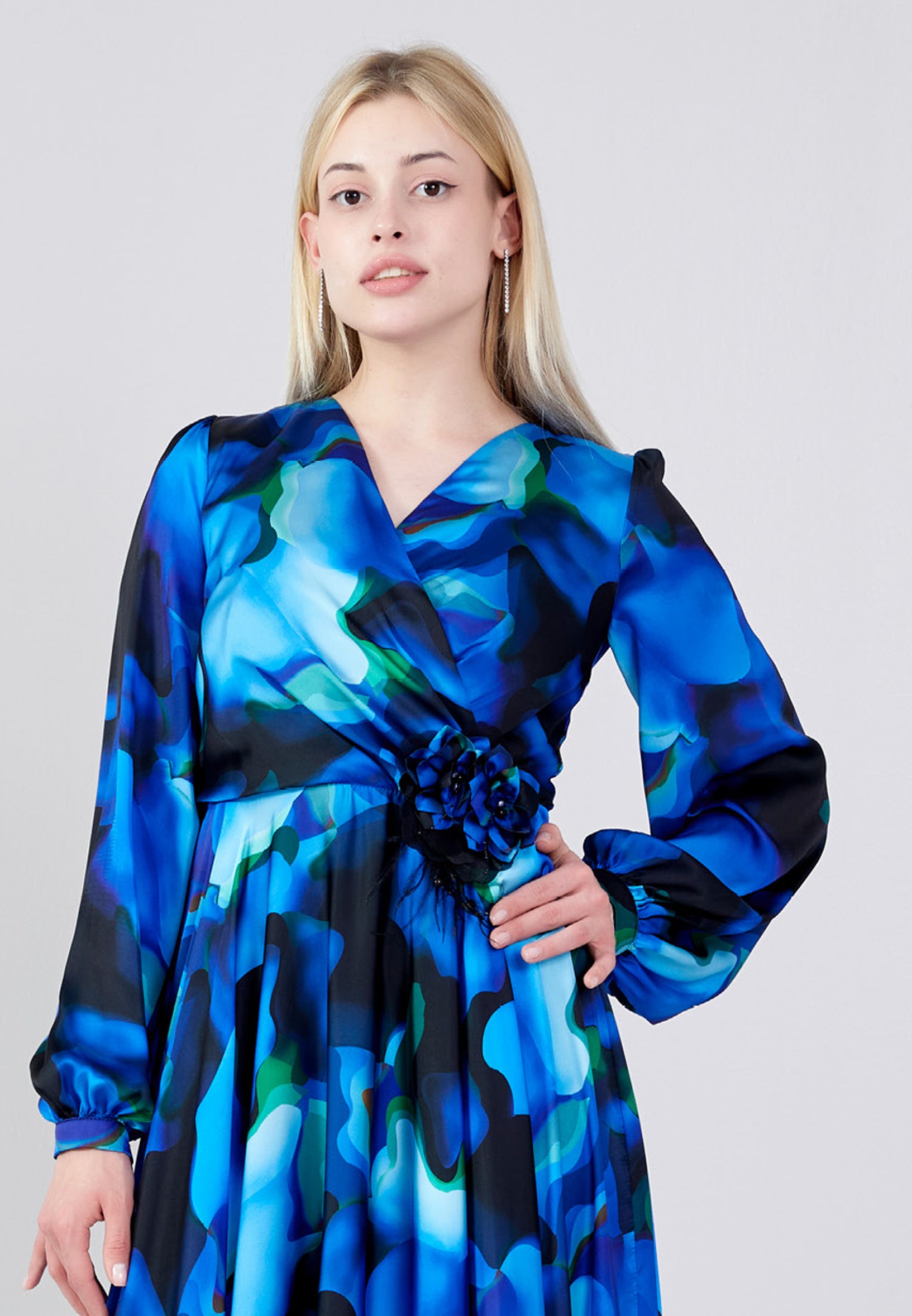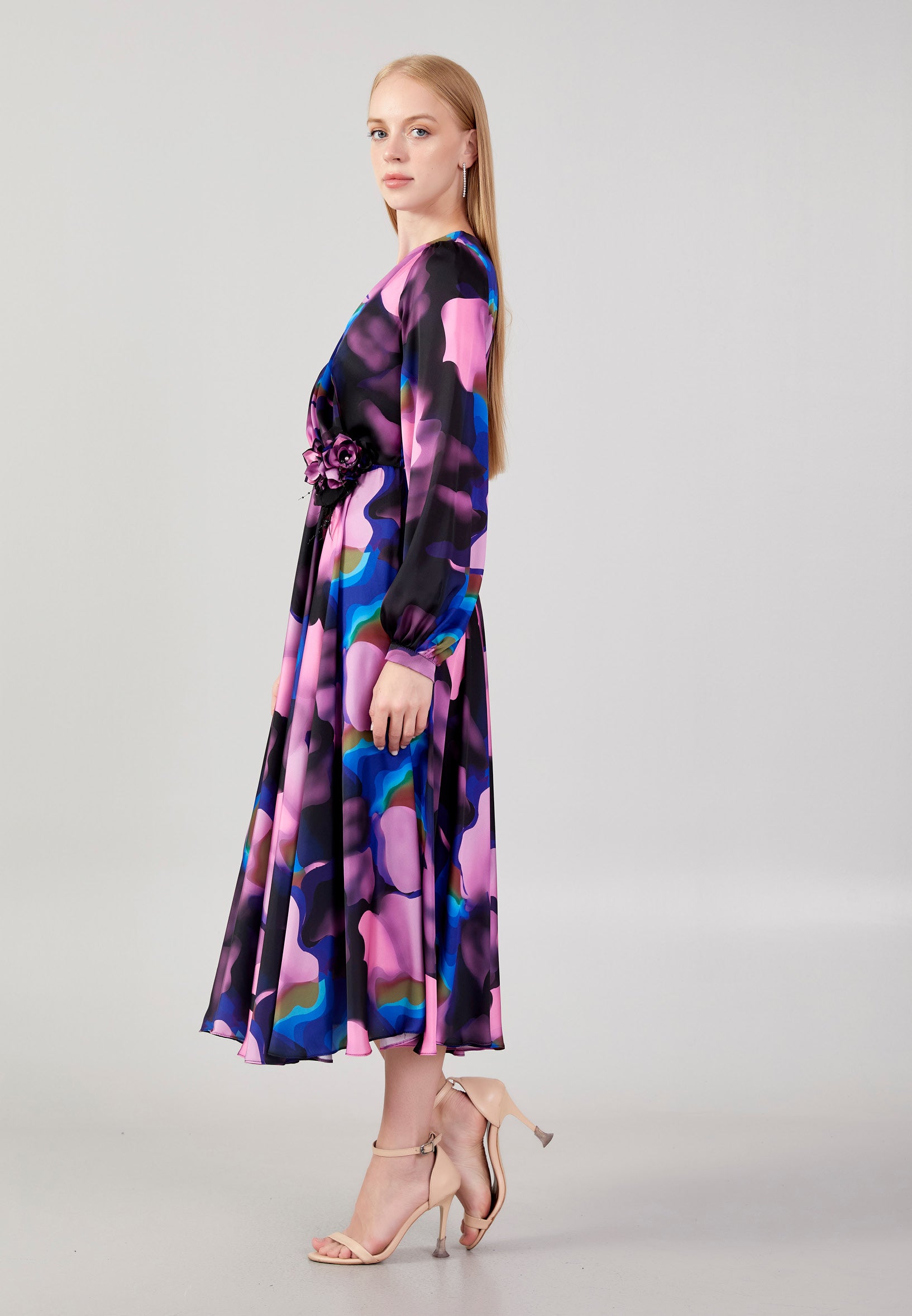 Long Sleeve Midi Satin Column Regular Evening Dress see7918 Features