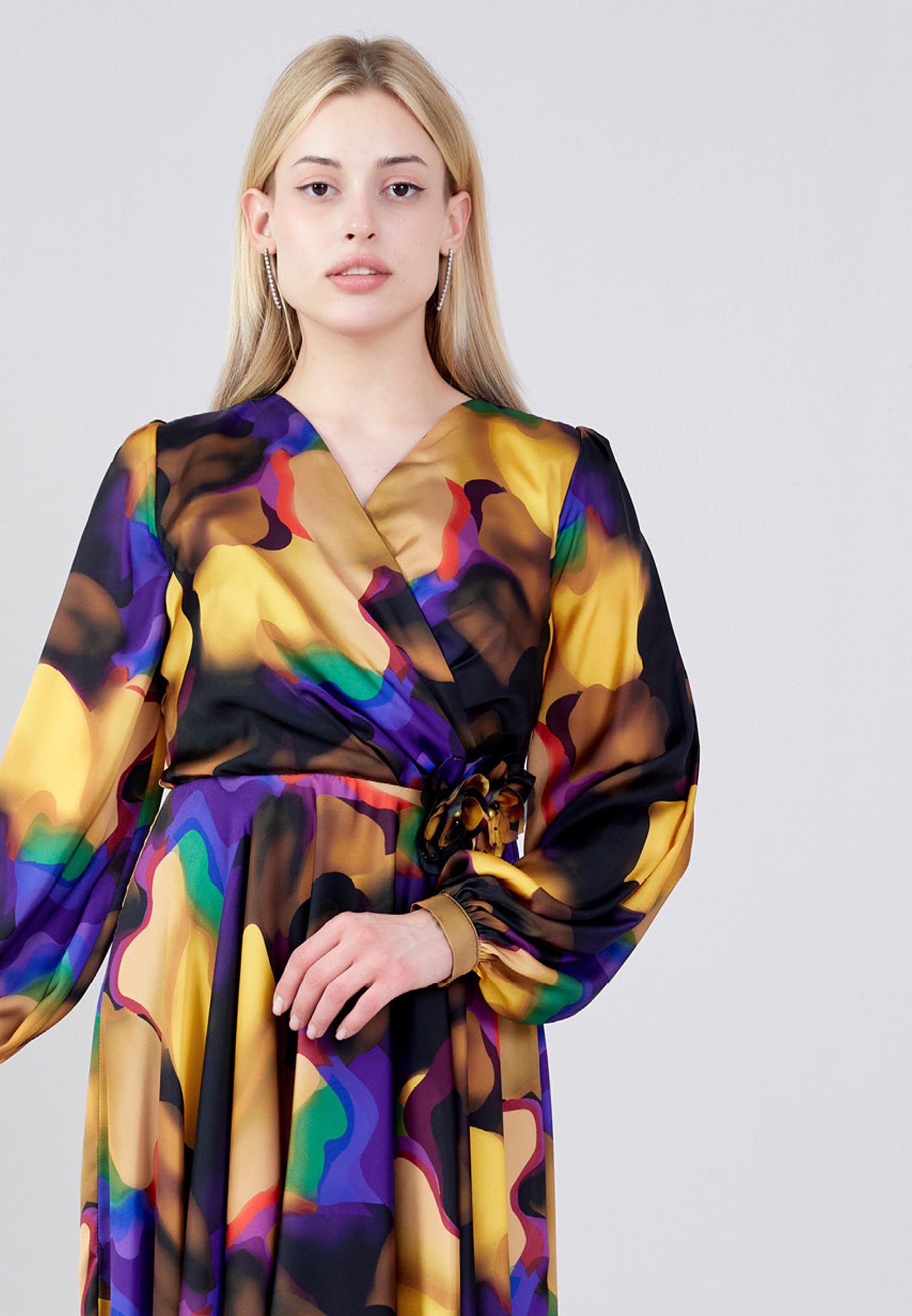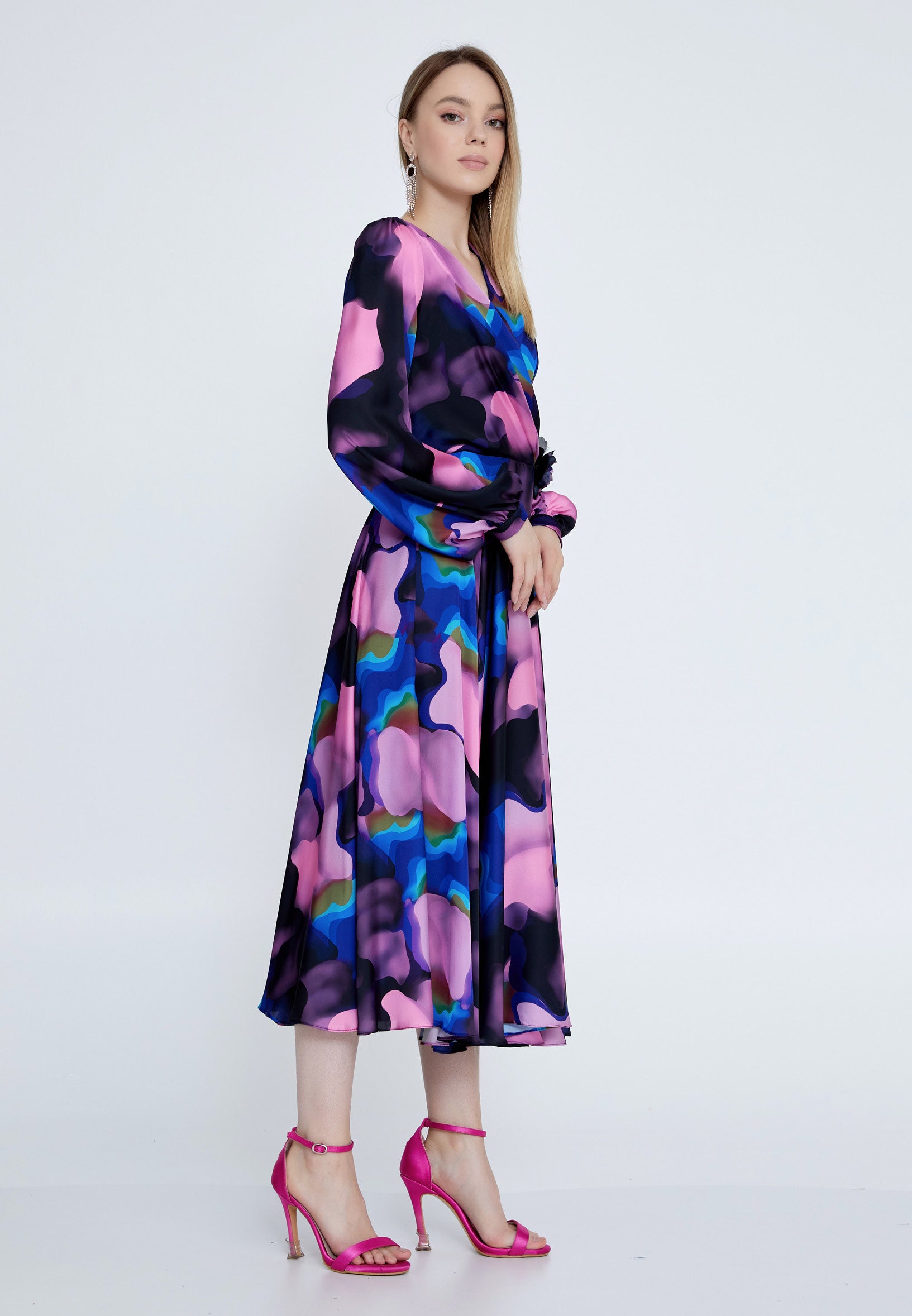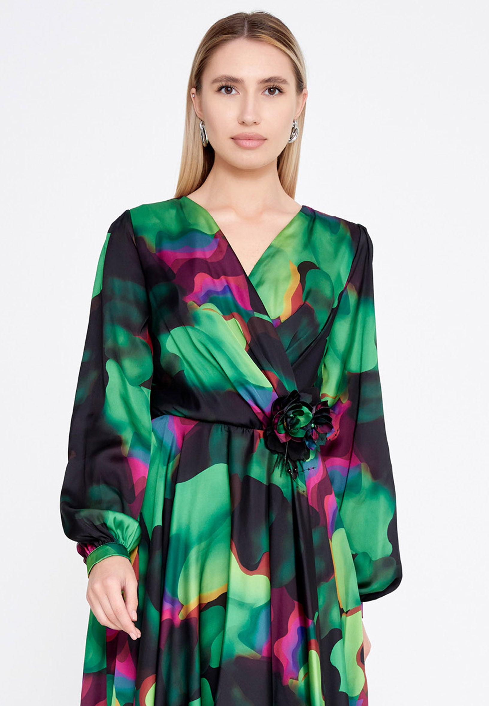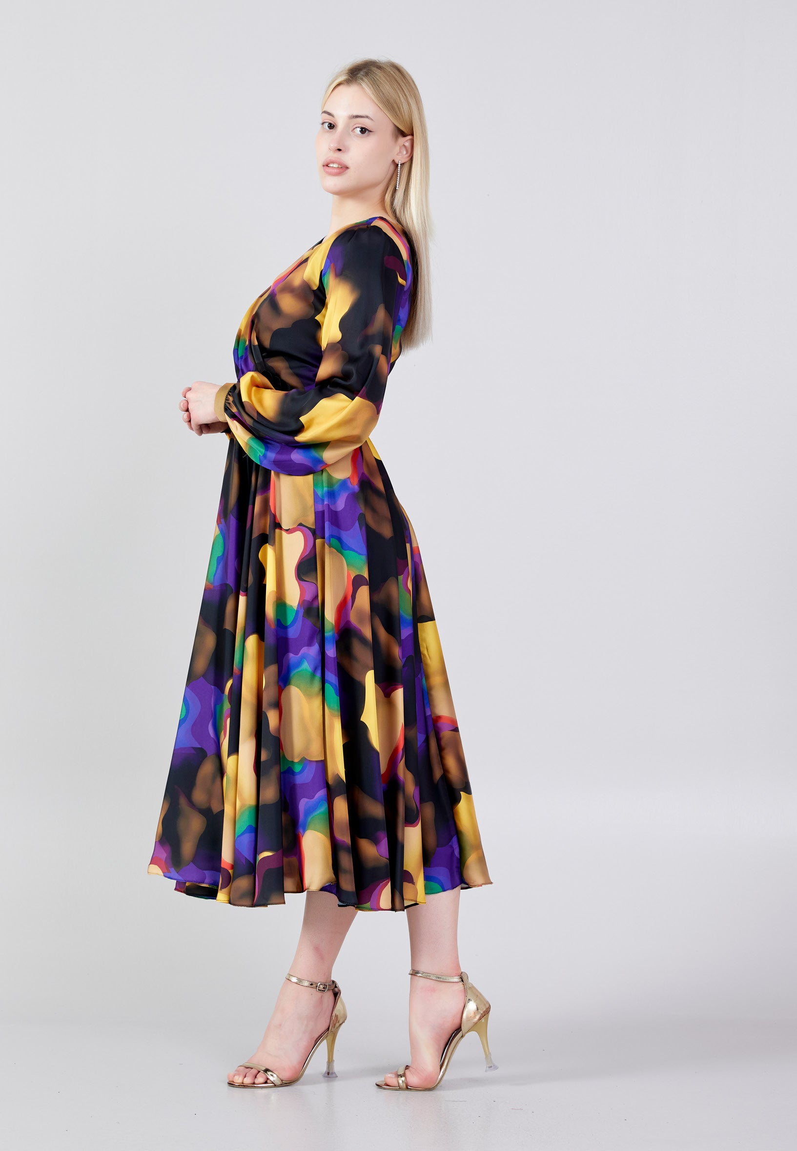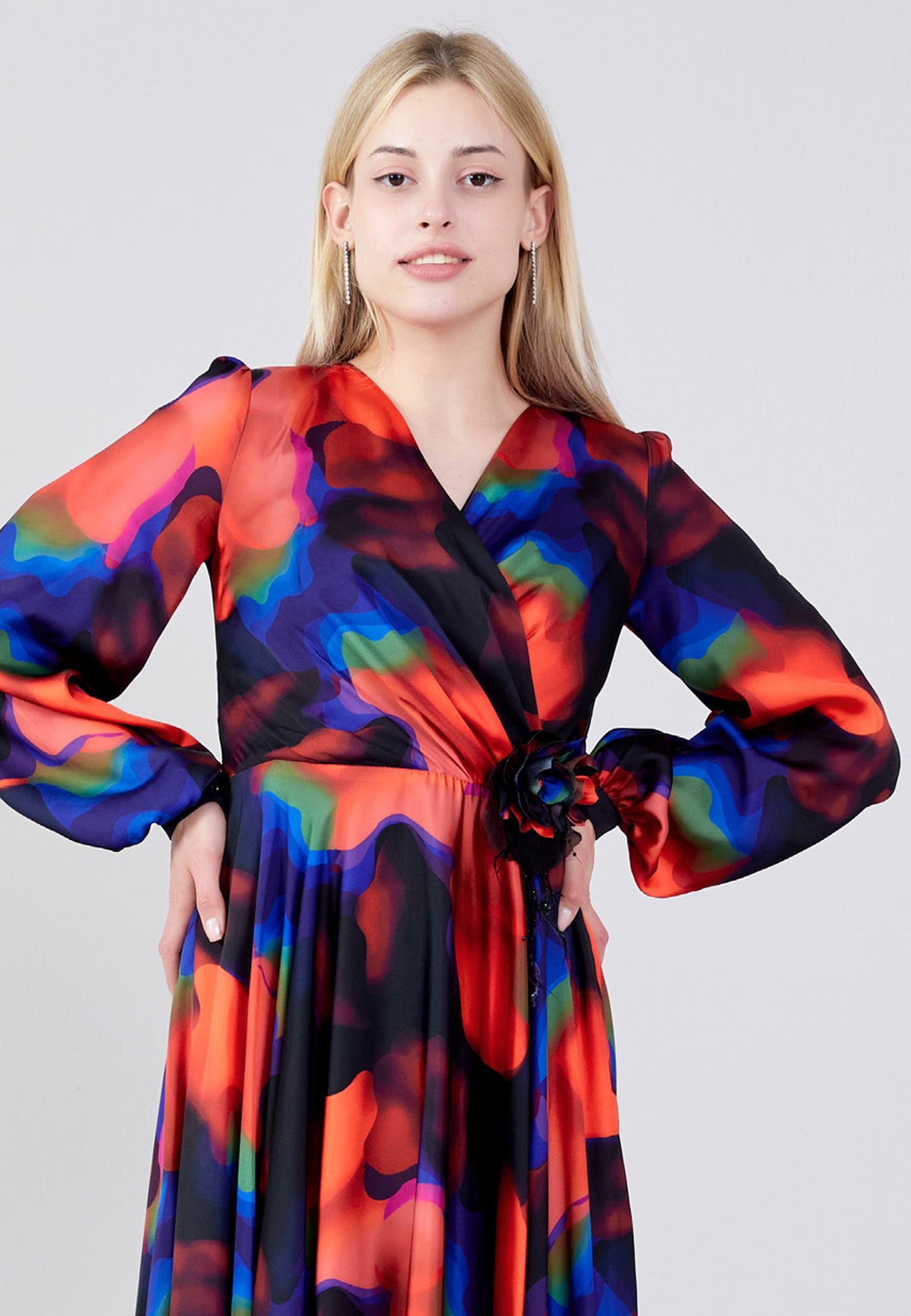 Long Sleeve Midi Satin Column Regular Evening Dress see7918 Features