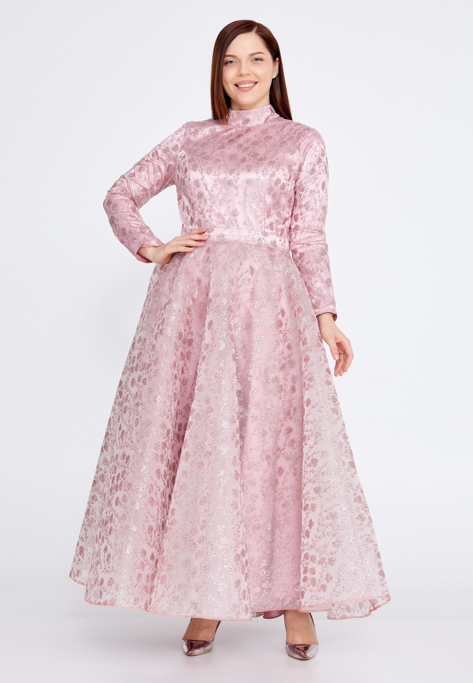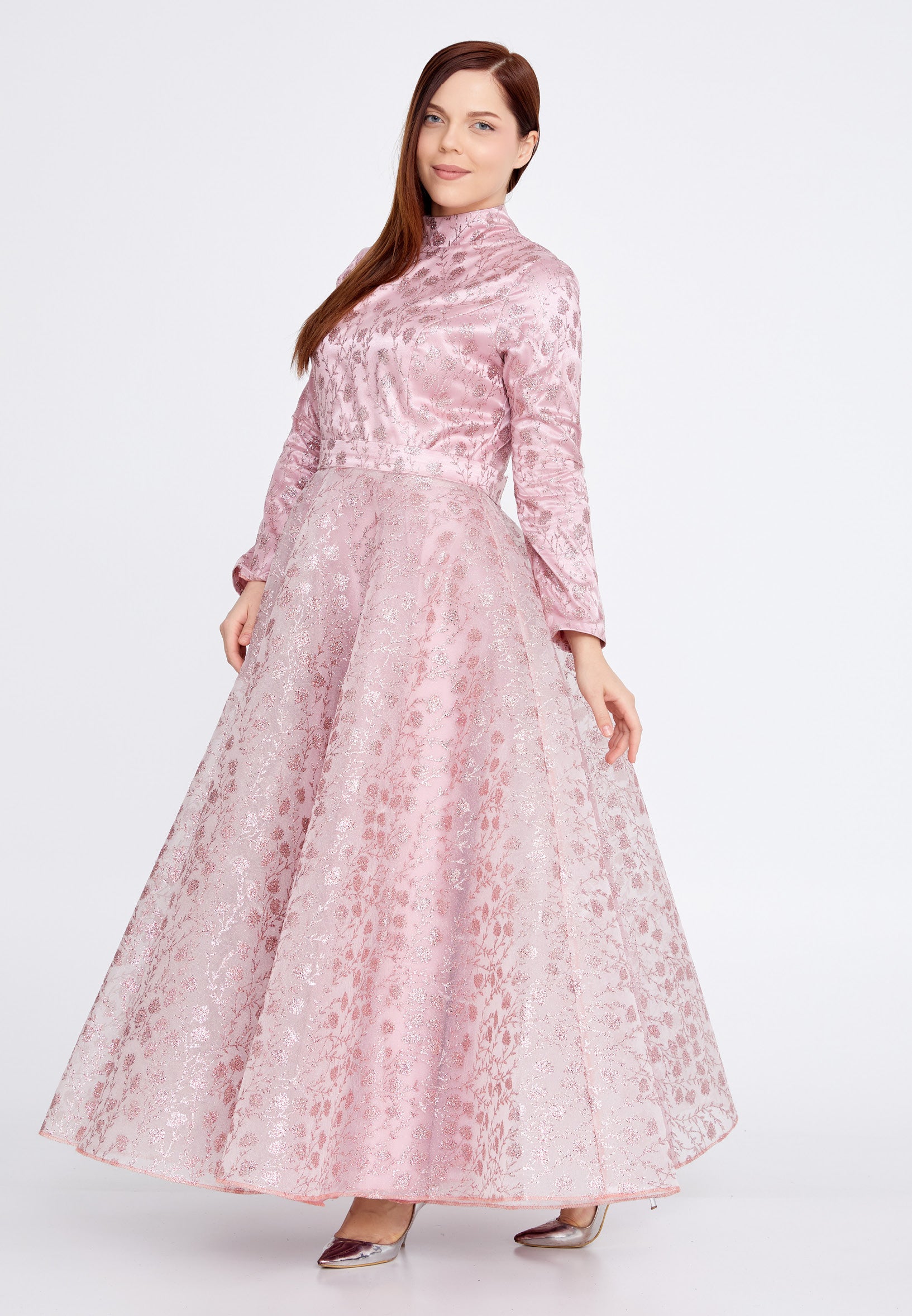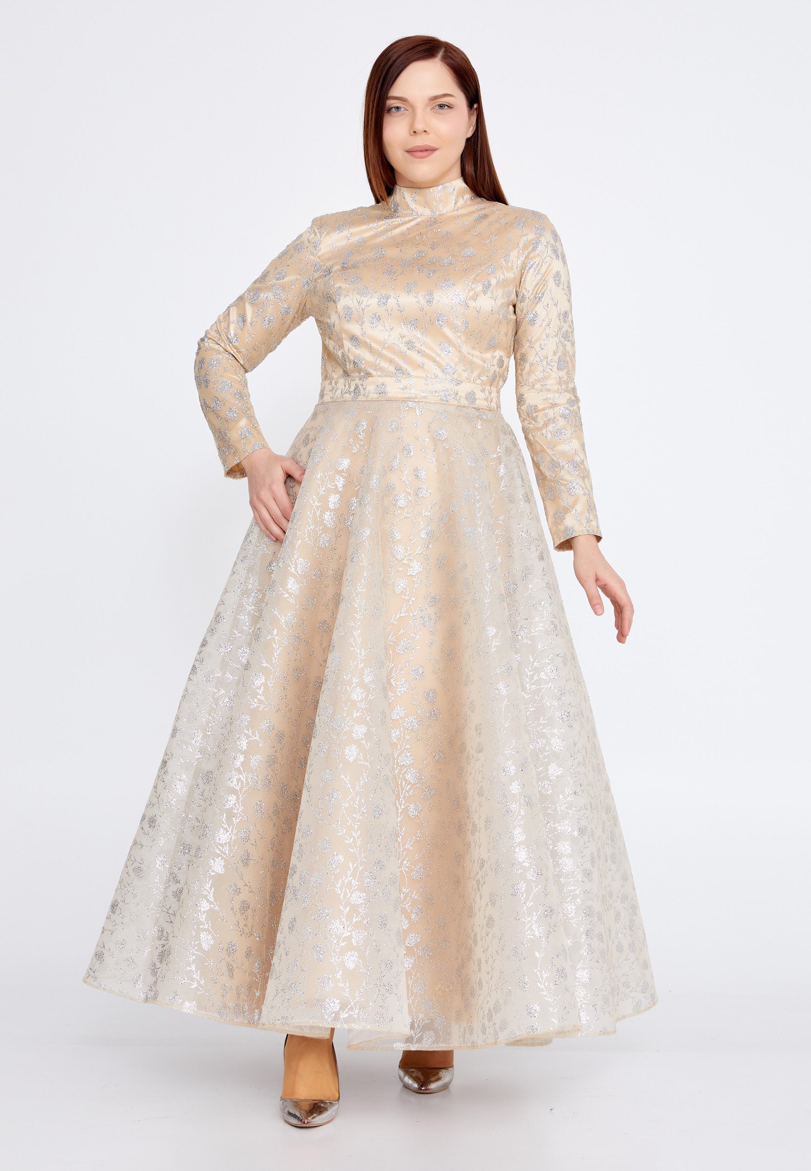 Long Sleeve Midi Tulle A - Line Plus Size Prom Dress gzk7017-1 Features
