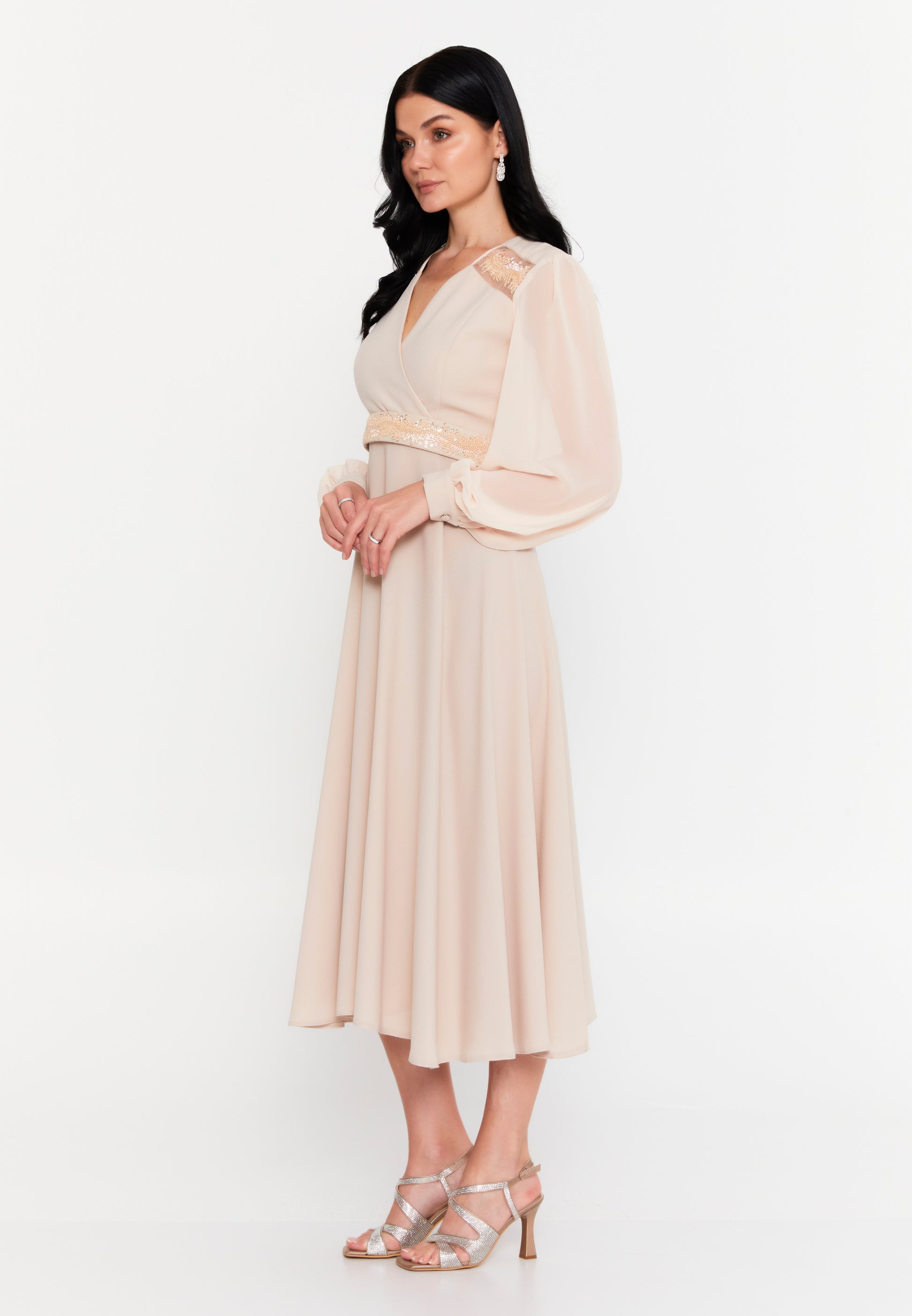 Long Sleeve Midi Viscose Column Regular Casual Dress ris25203 Features