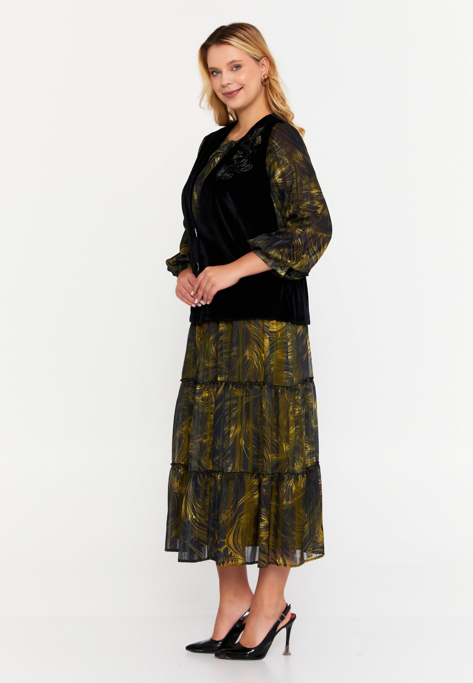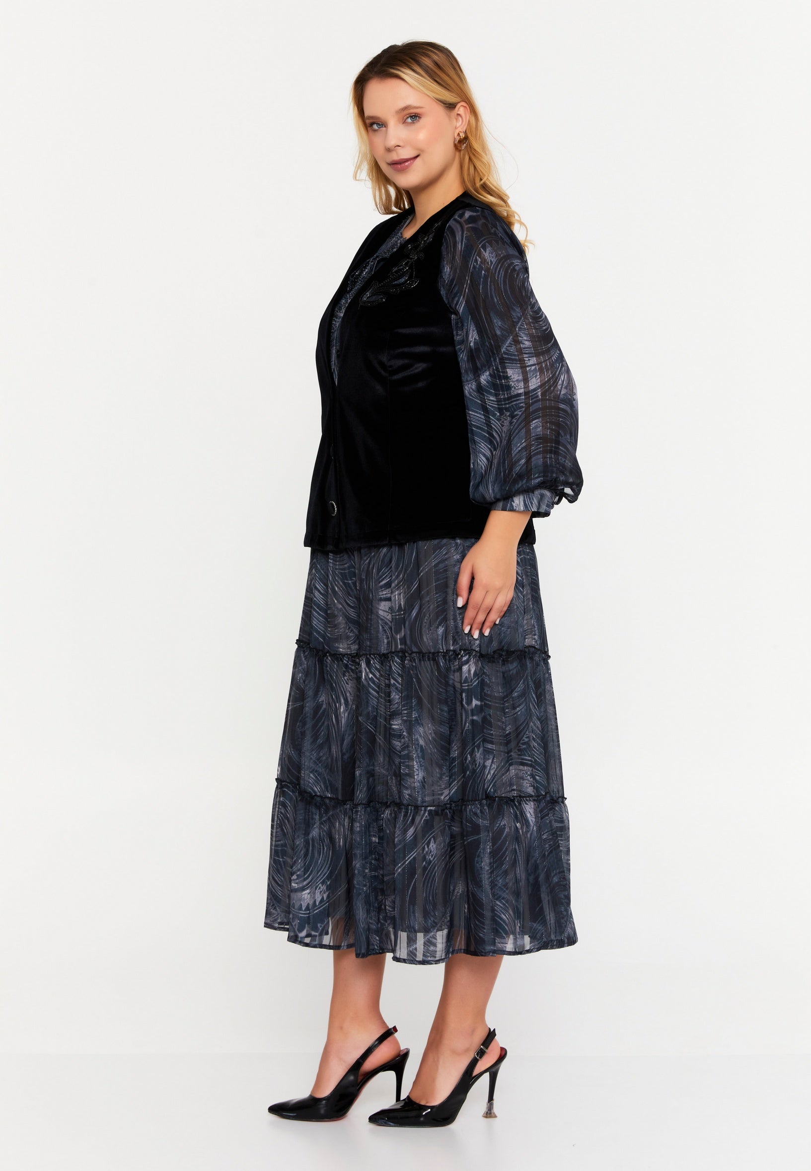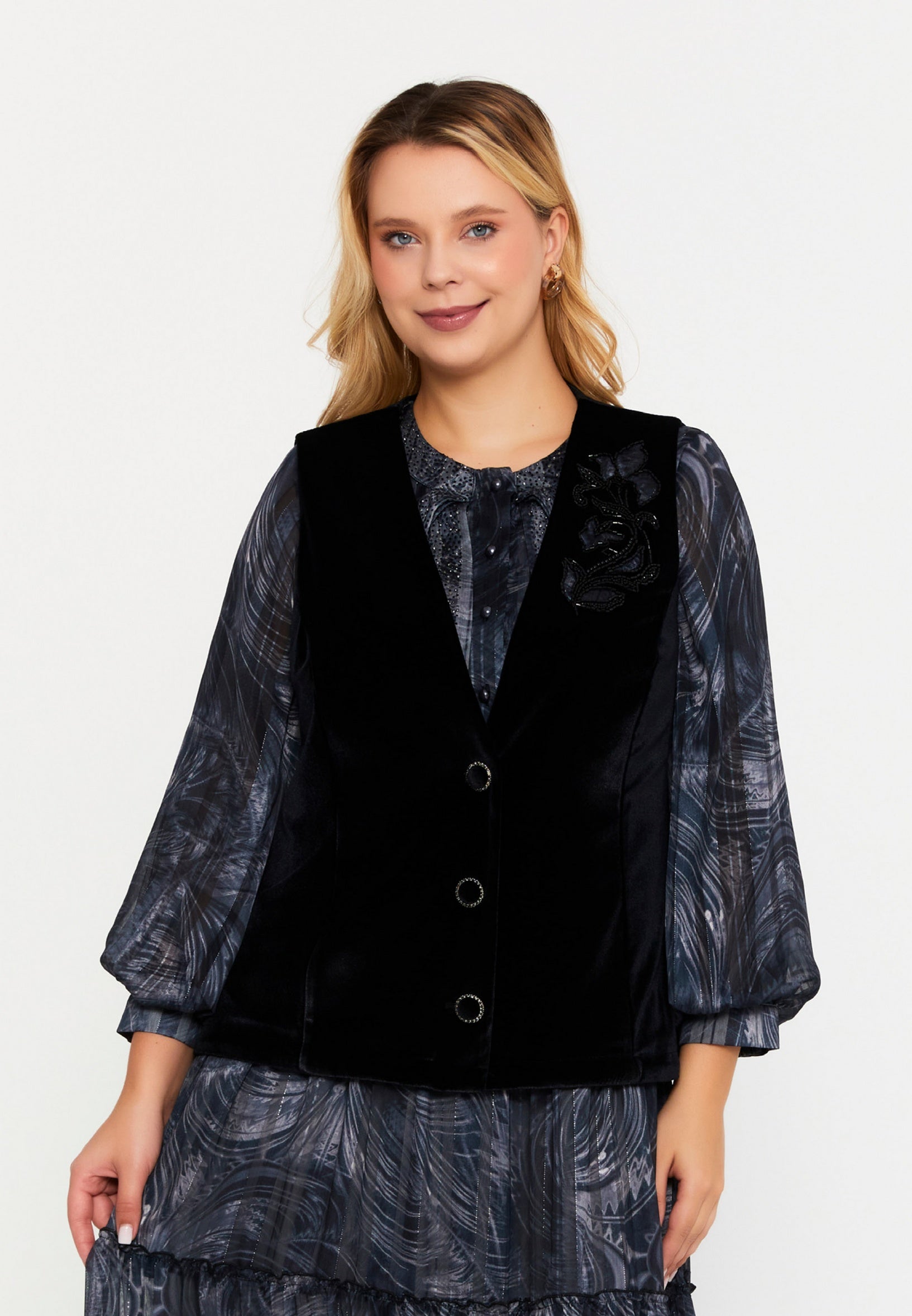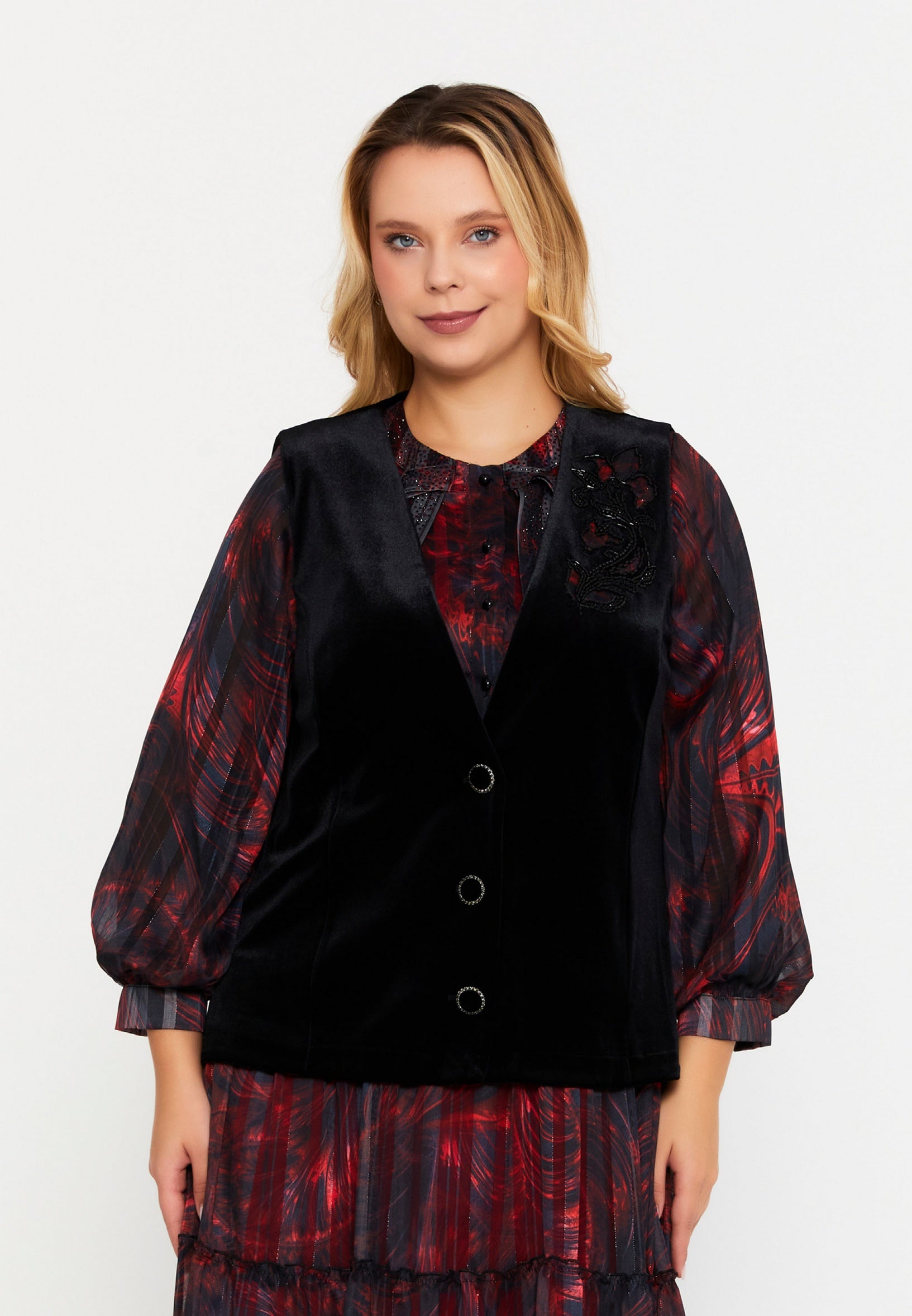 Long Sleeve Velvet Floral Plus Size Two-Piece Outfit gmz87-7916 Features