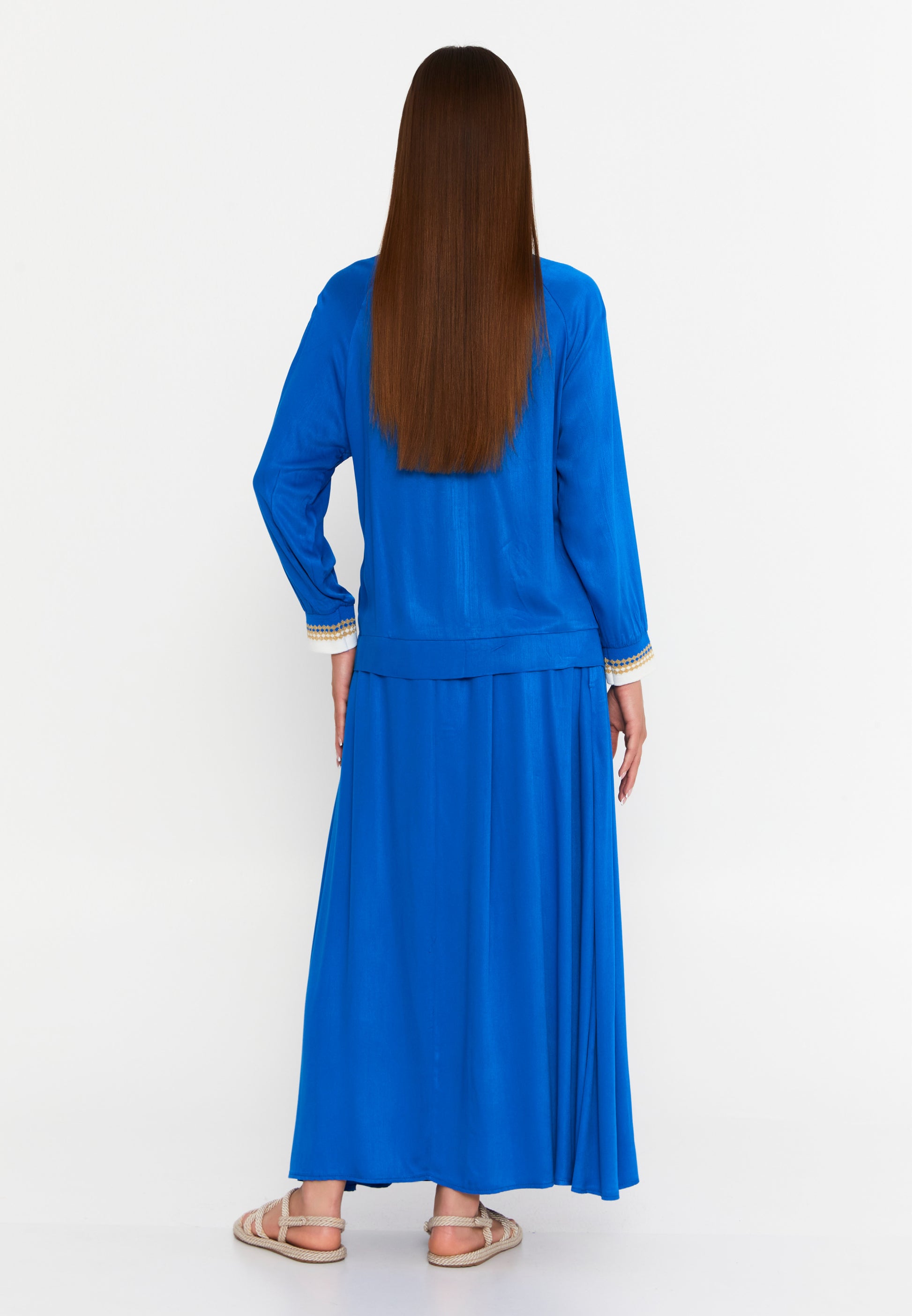 Long Sleeve Viscose Solid Color Regular Two-Piece Outfit msn3329 Features