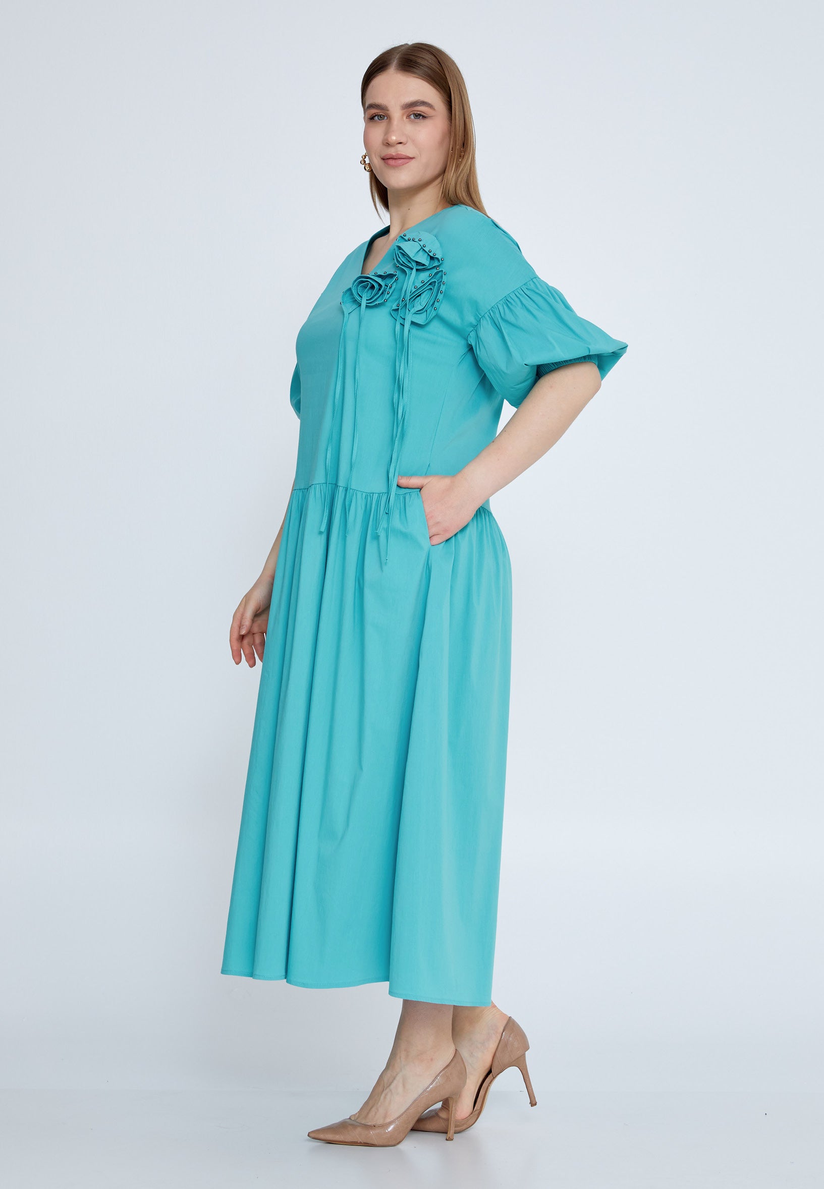 Mid-Length Midi Polyester Column Plus Size Casual Dress tss7674 Features