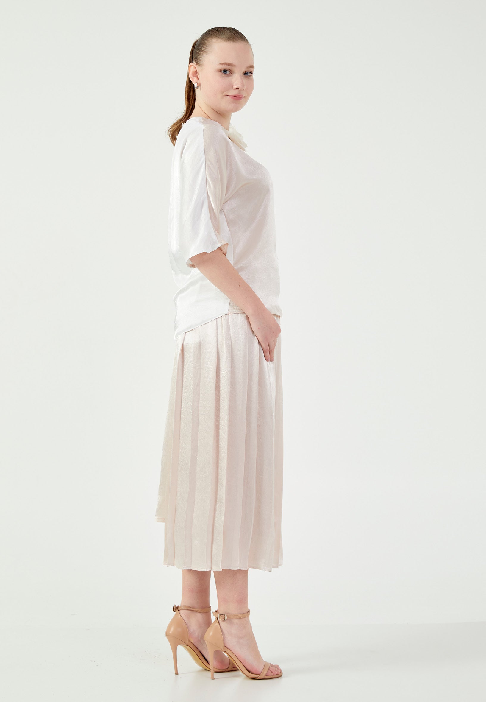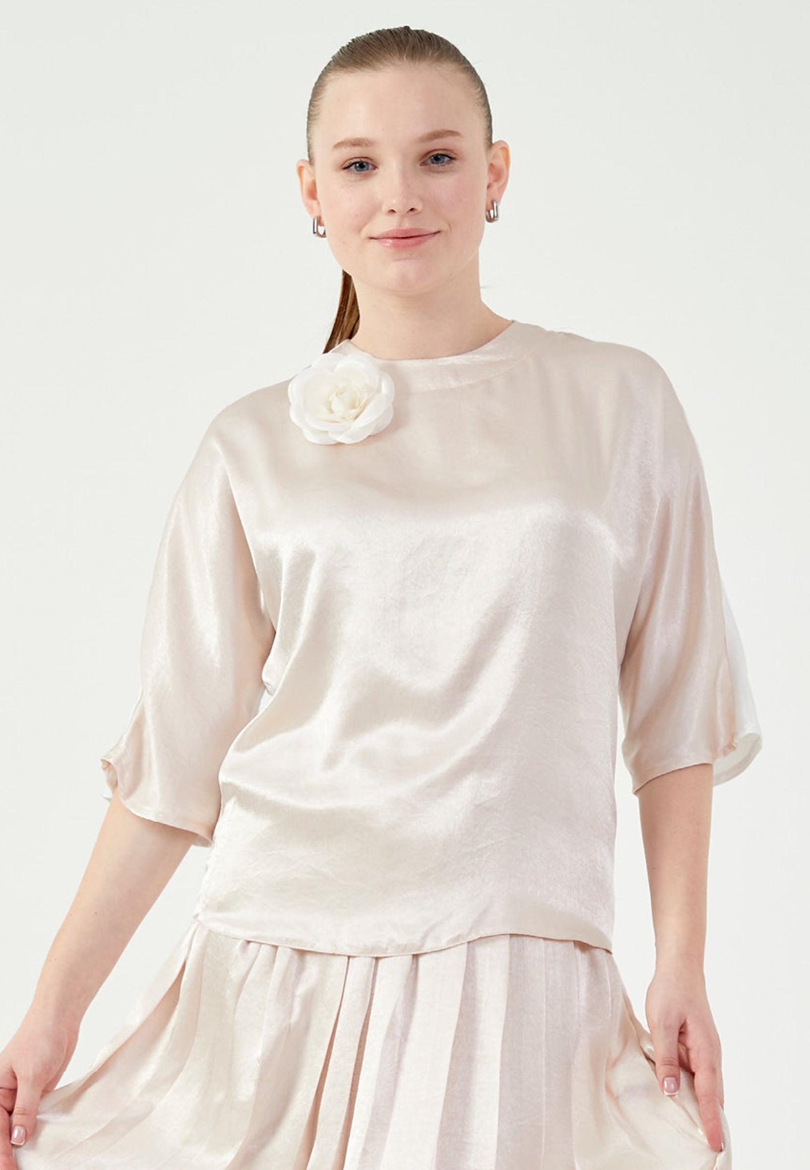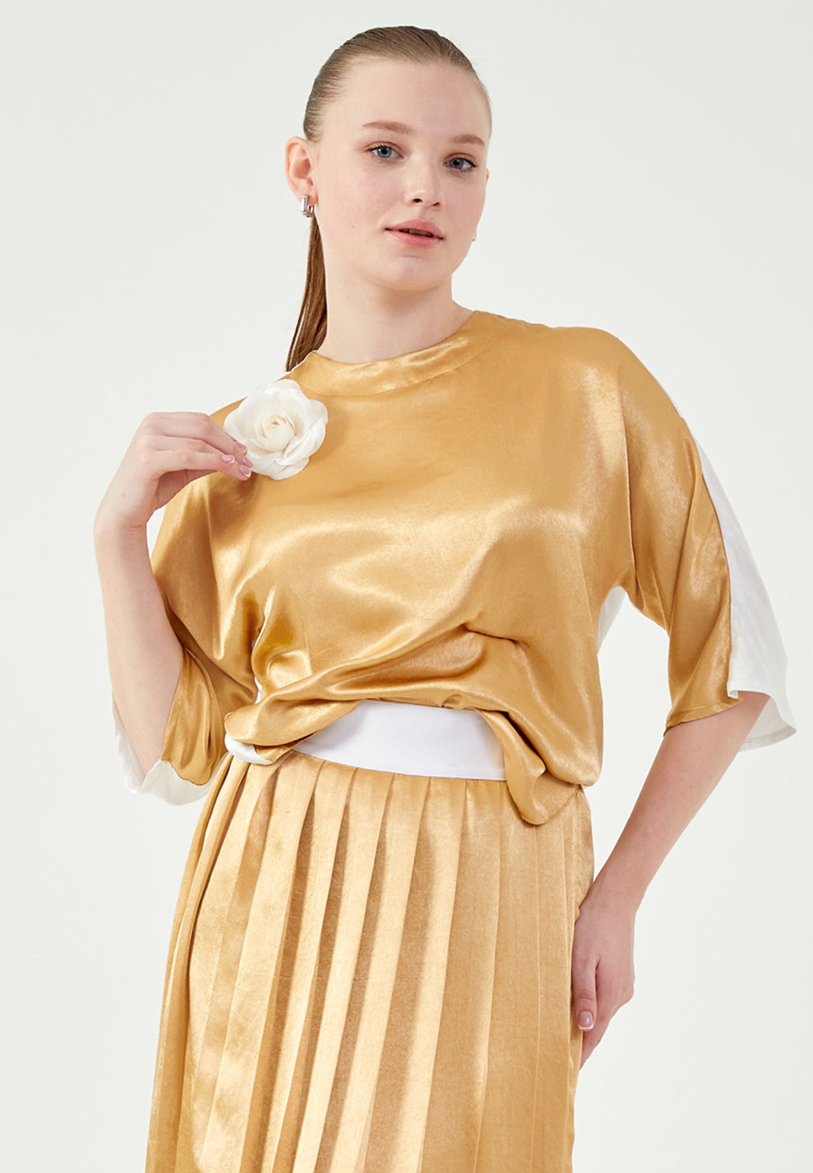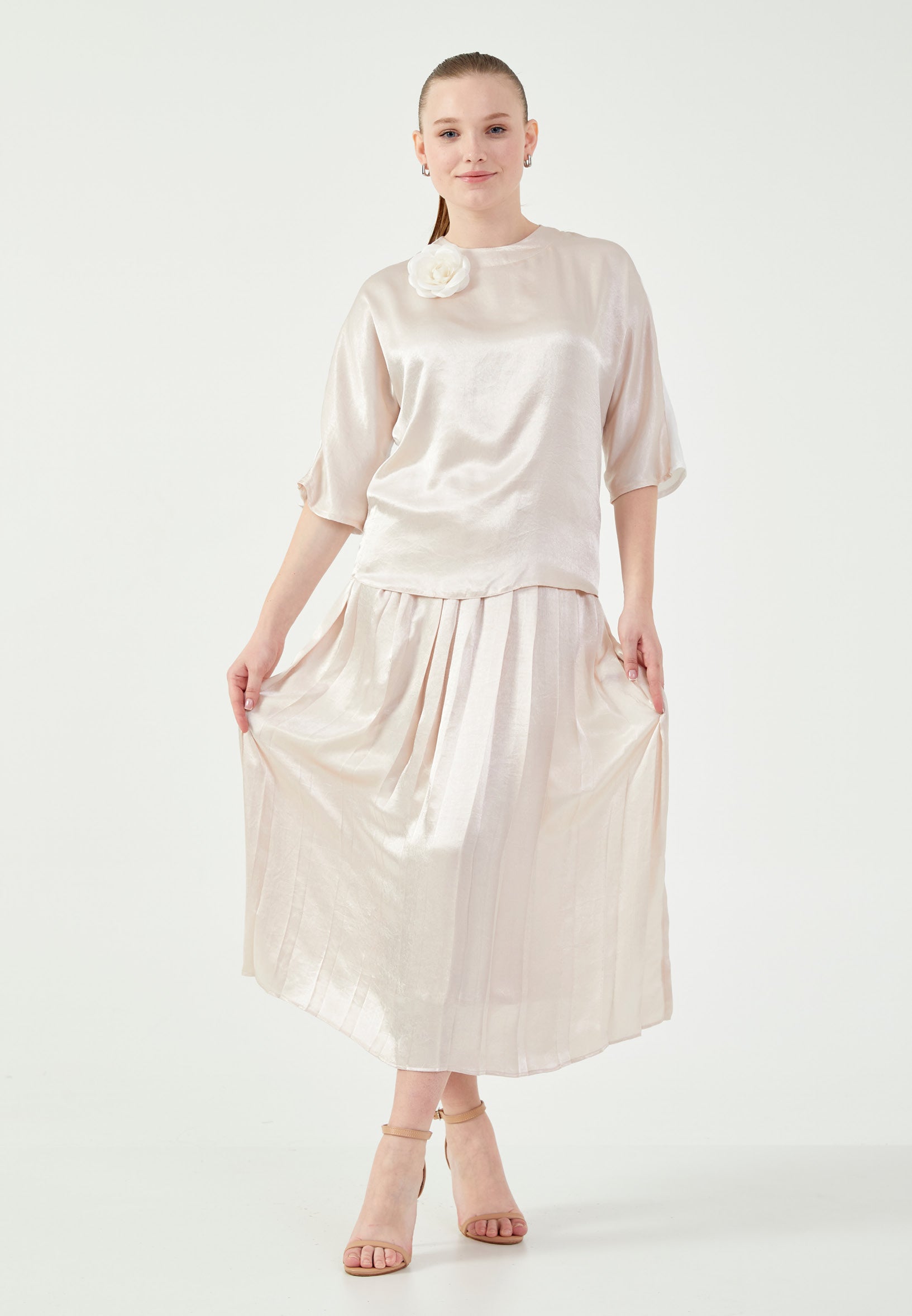 Mid-Length Satin Solid Color Regular Two-Piece Outfit mrl444 Features