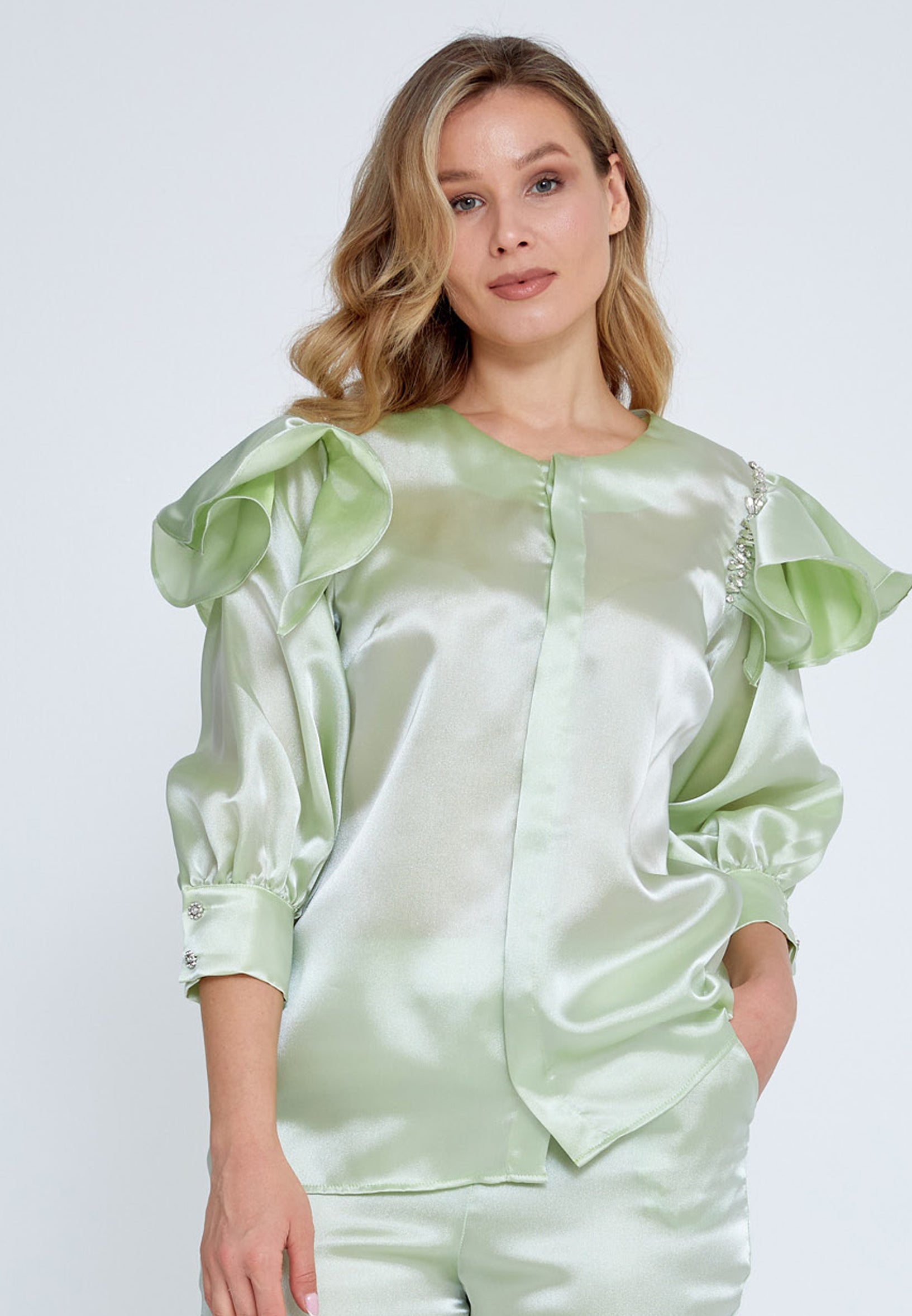 Included:Blouse, pants