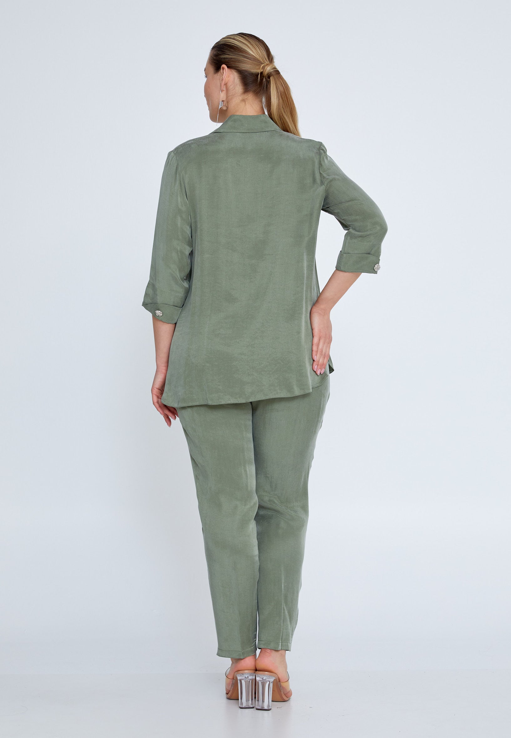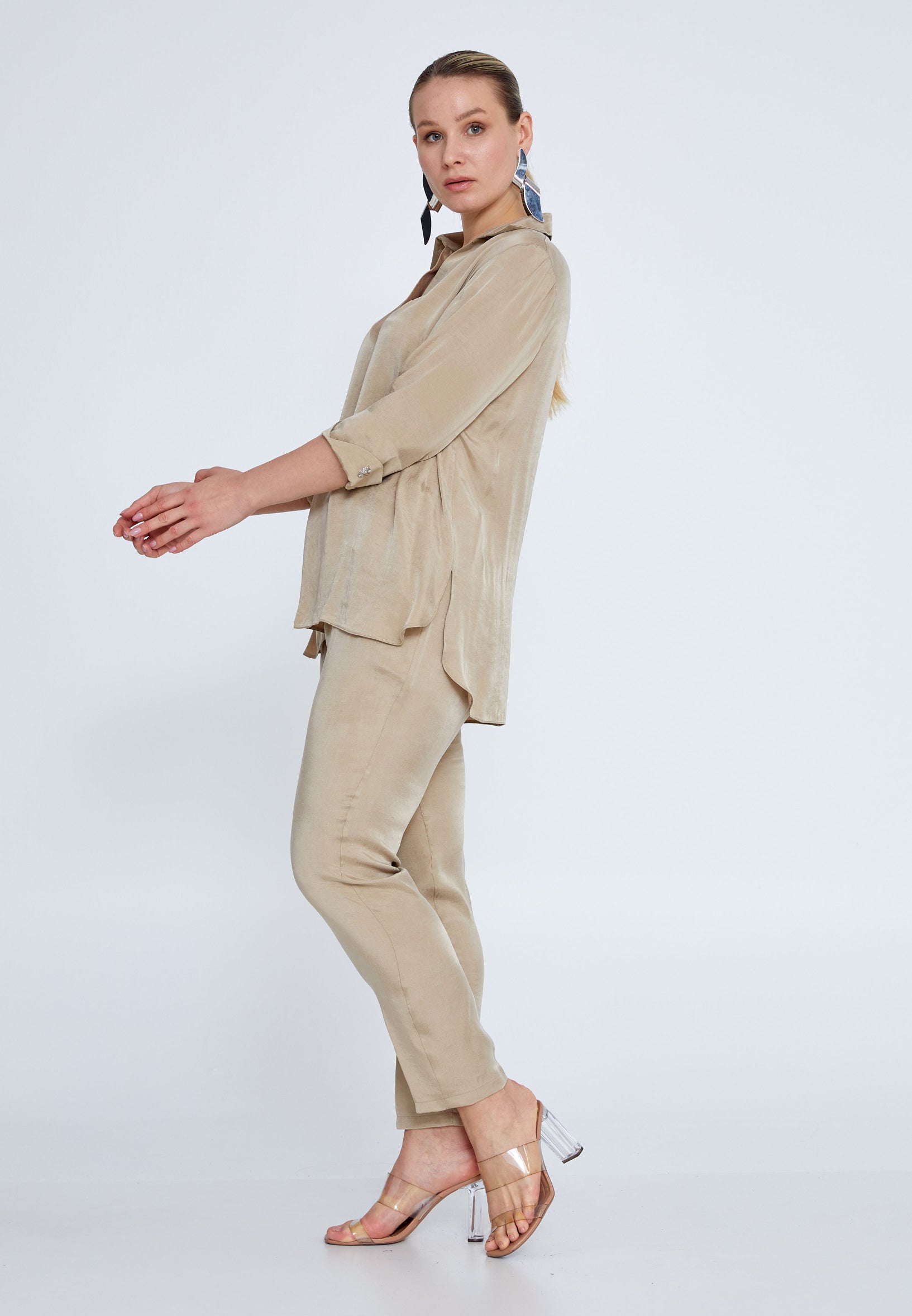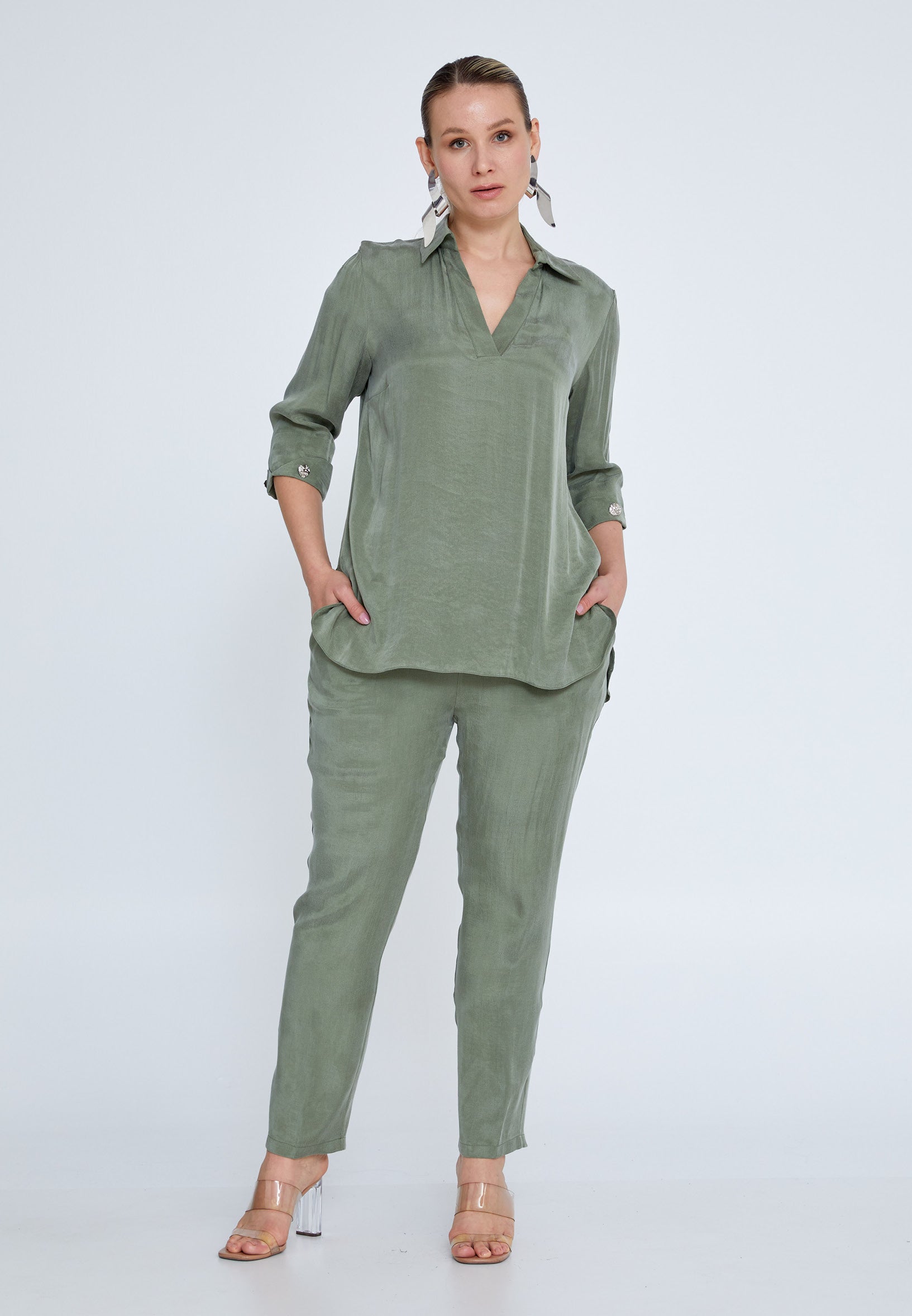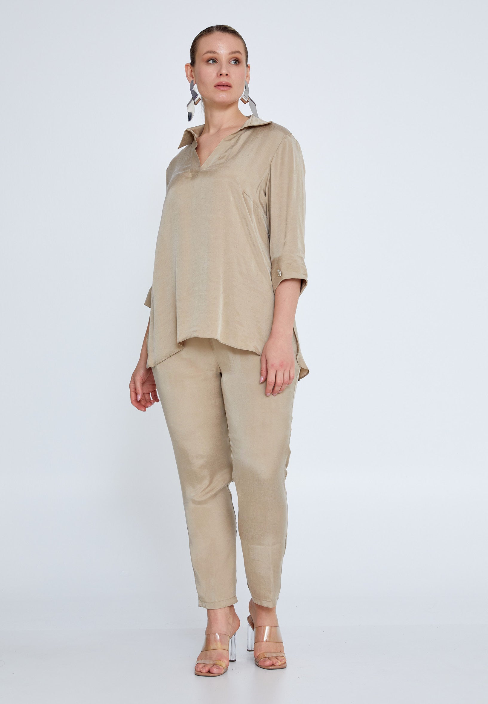 Mid-Length Viscose Solid Color Plus Size Two-Piece Outfit gem24y17680 Features