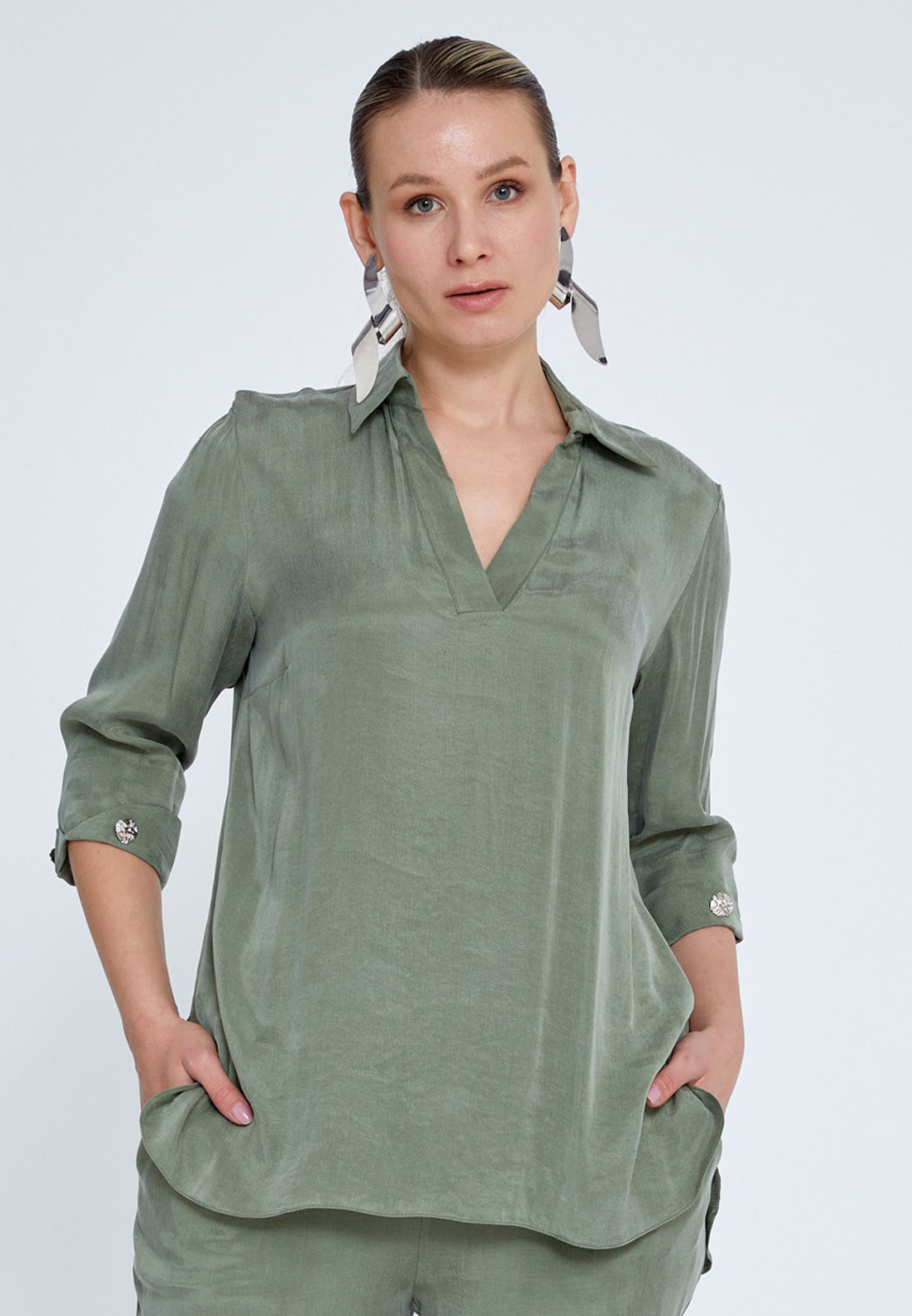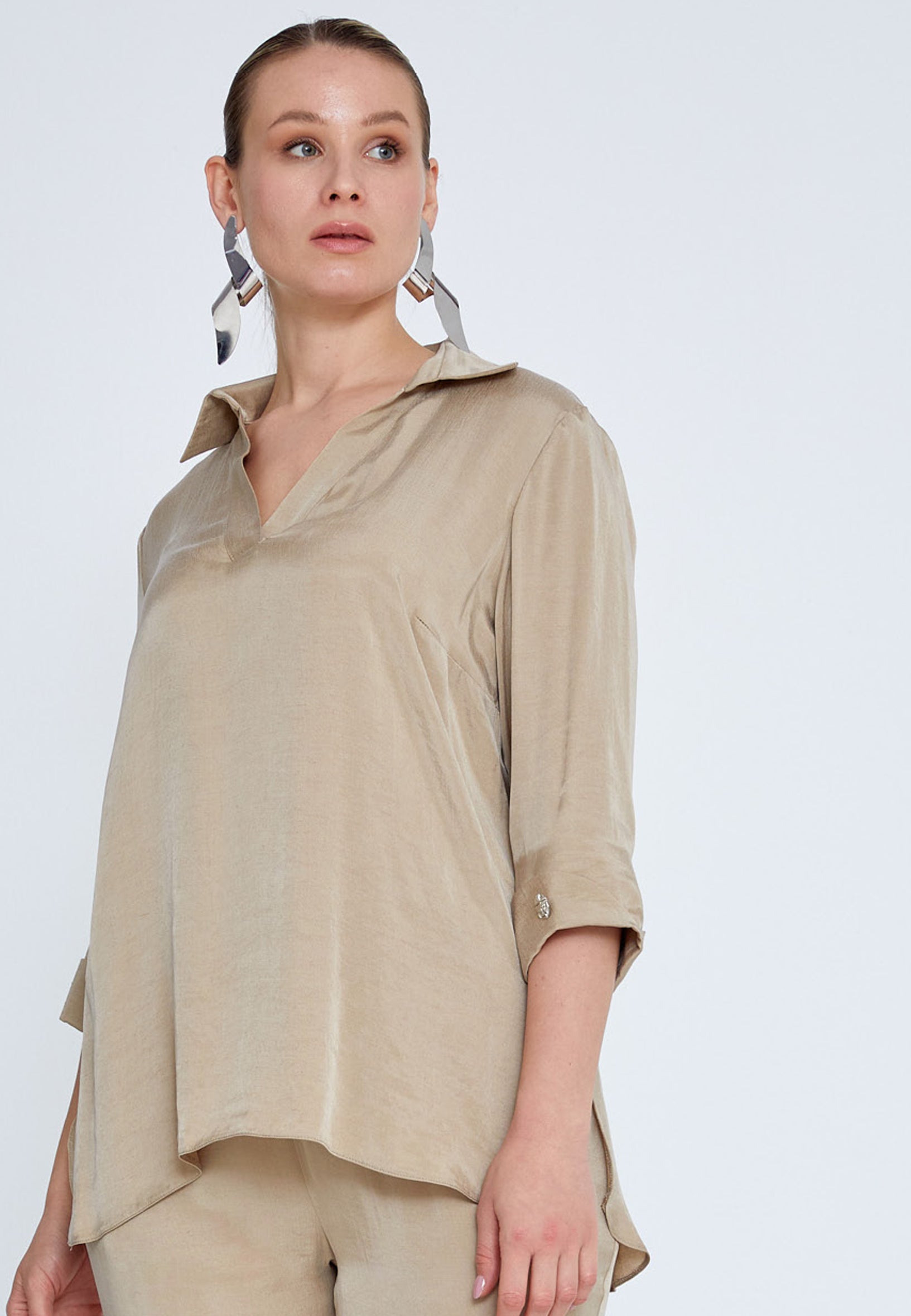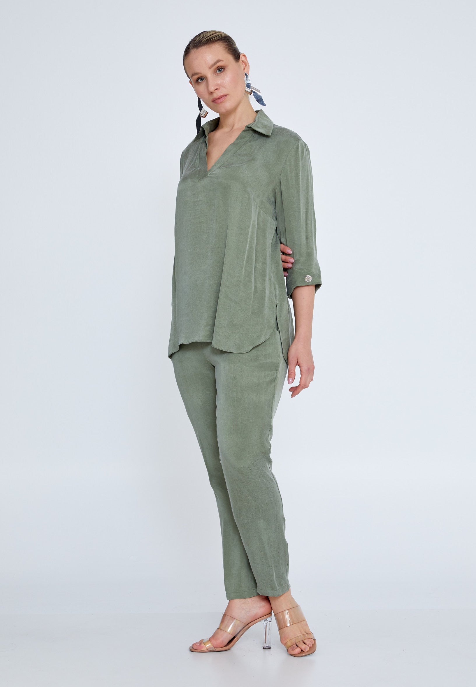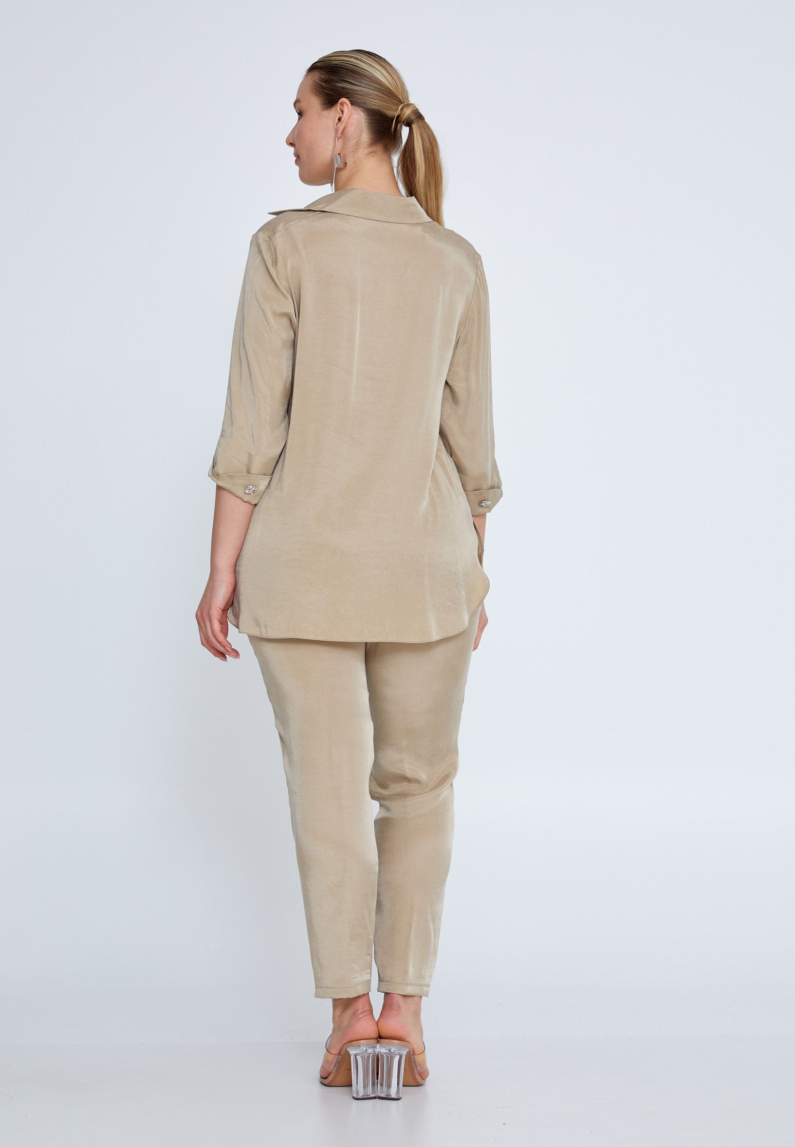 Mid-Length Viscose Solid Color Plus Size Two-Piece Outfit gem24y17680 Features