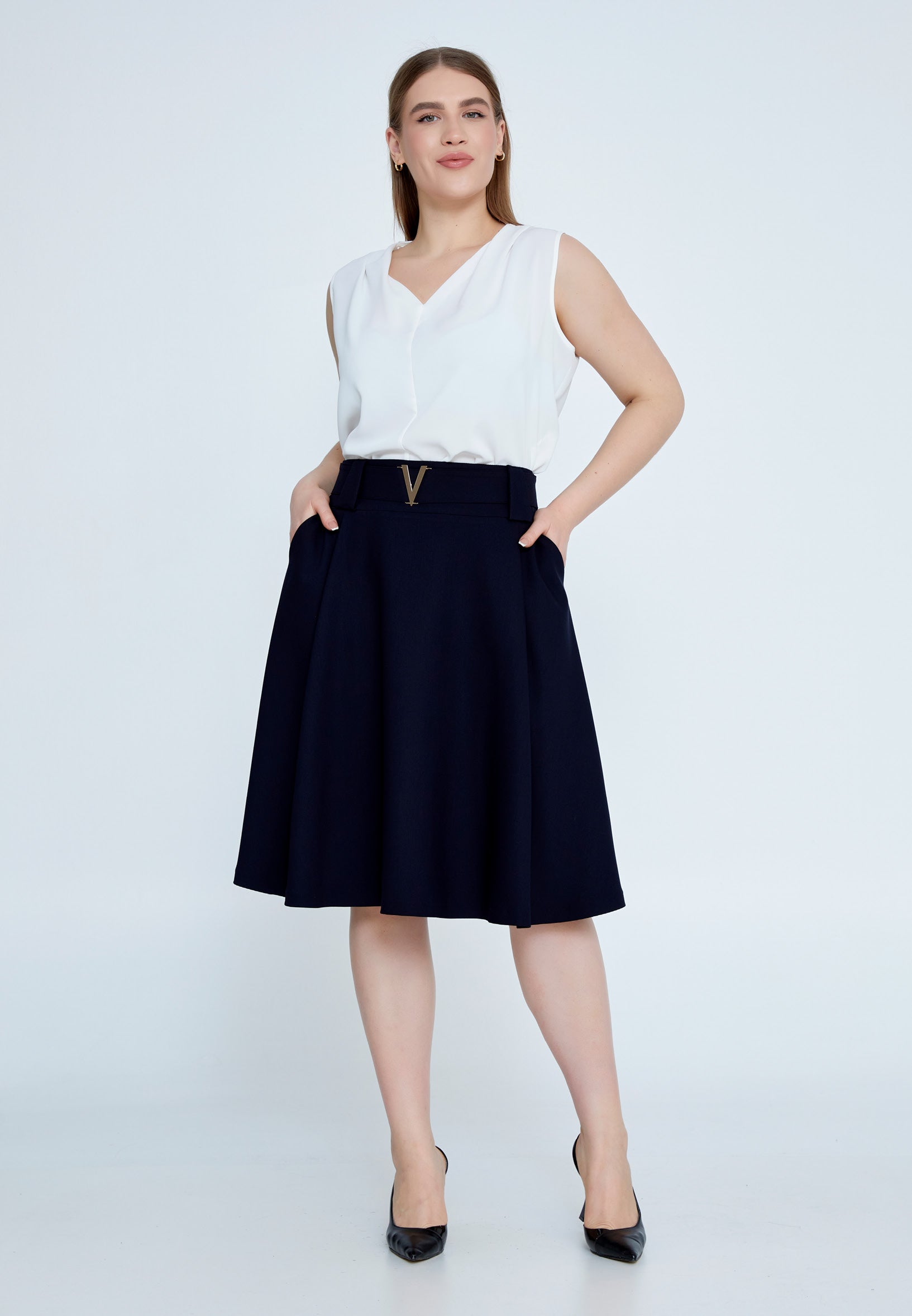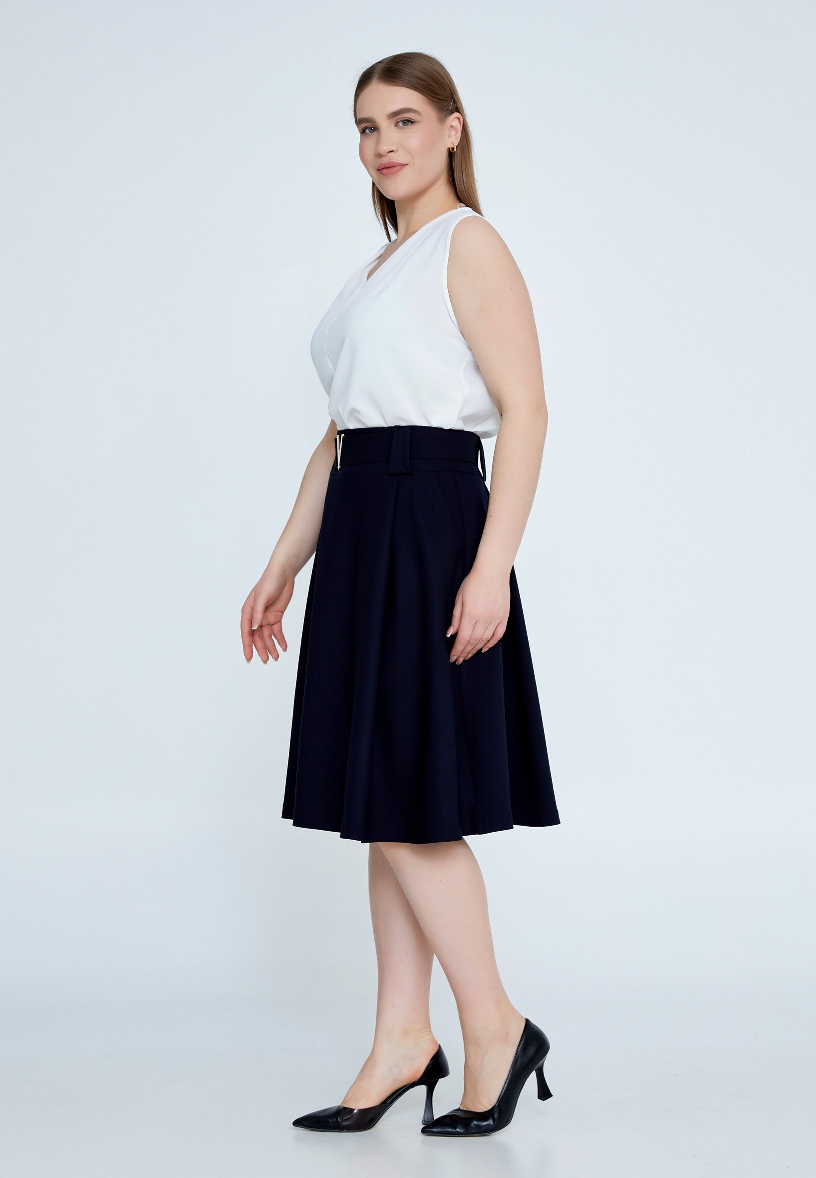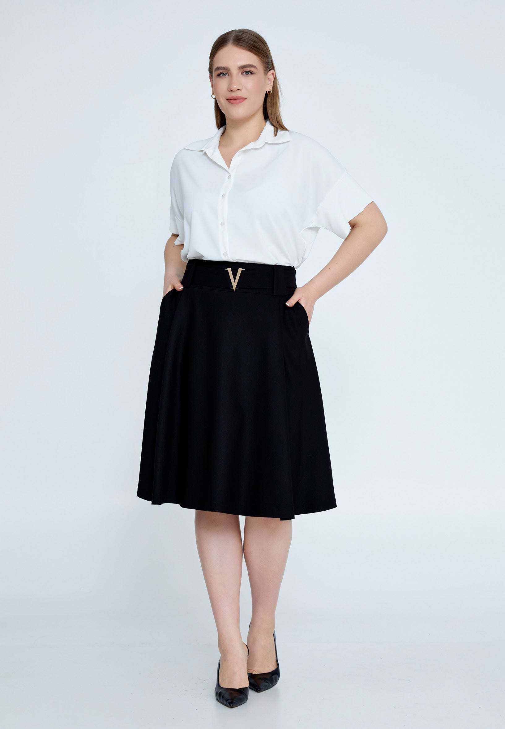 Midi Solid Color Plus Size Skirt car8084-1 Features