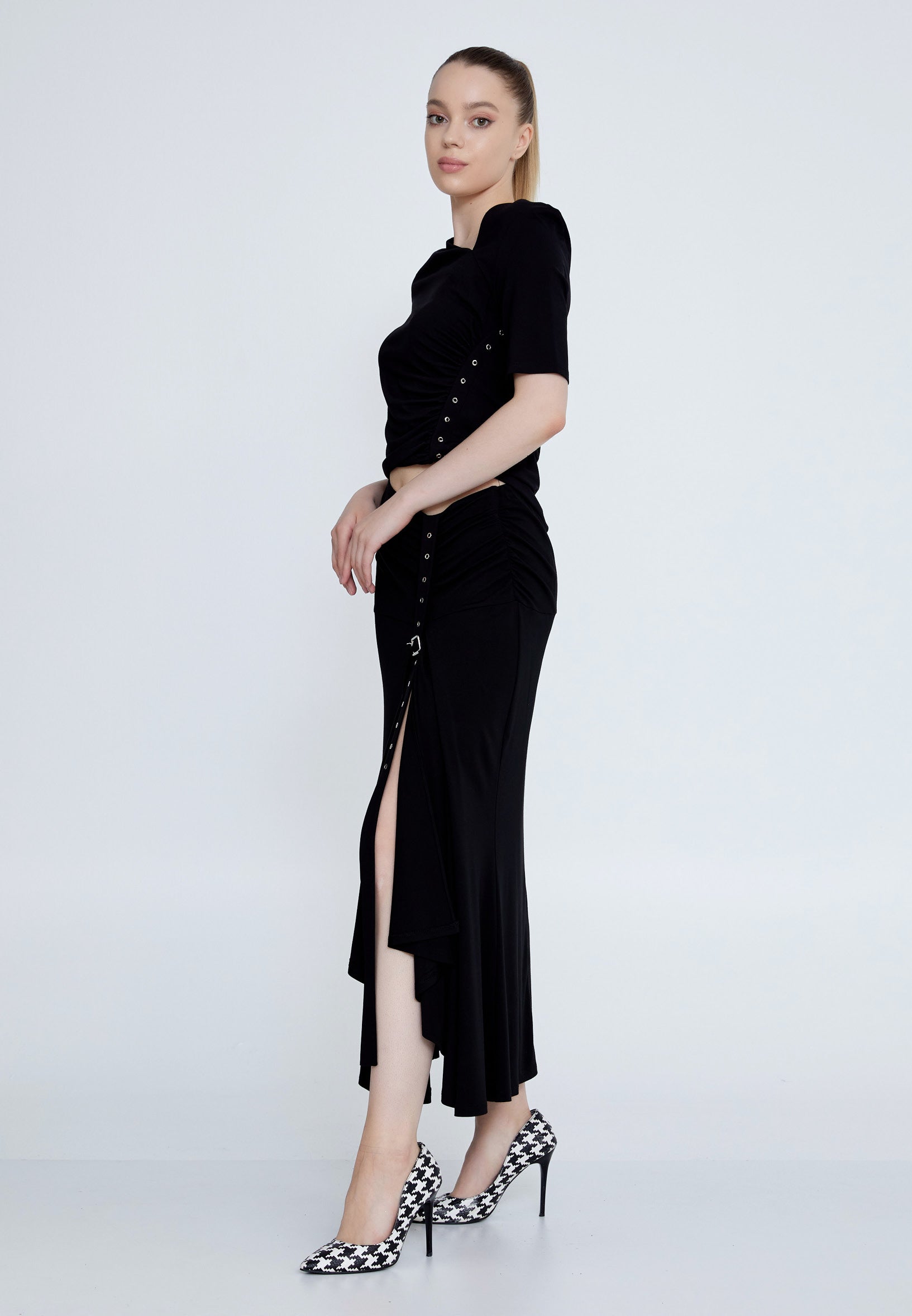 Midi Solid Color Regular Skirt ber24y3111 Features