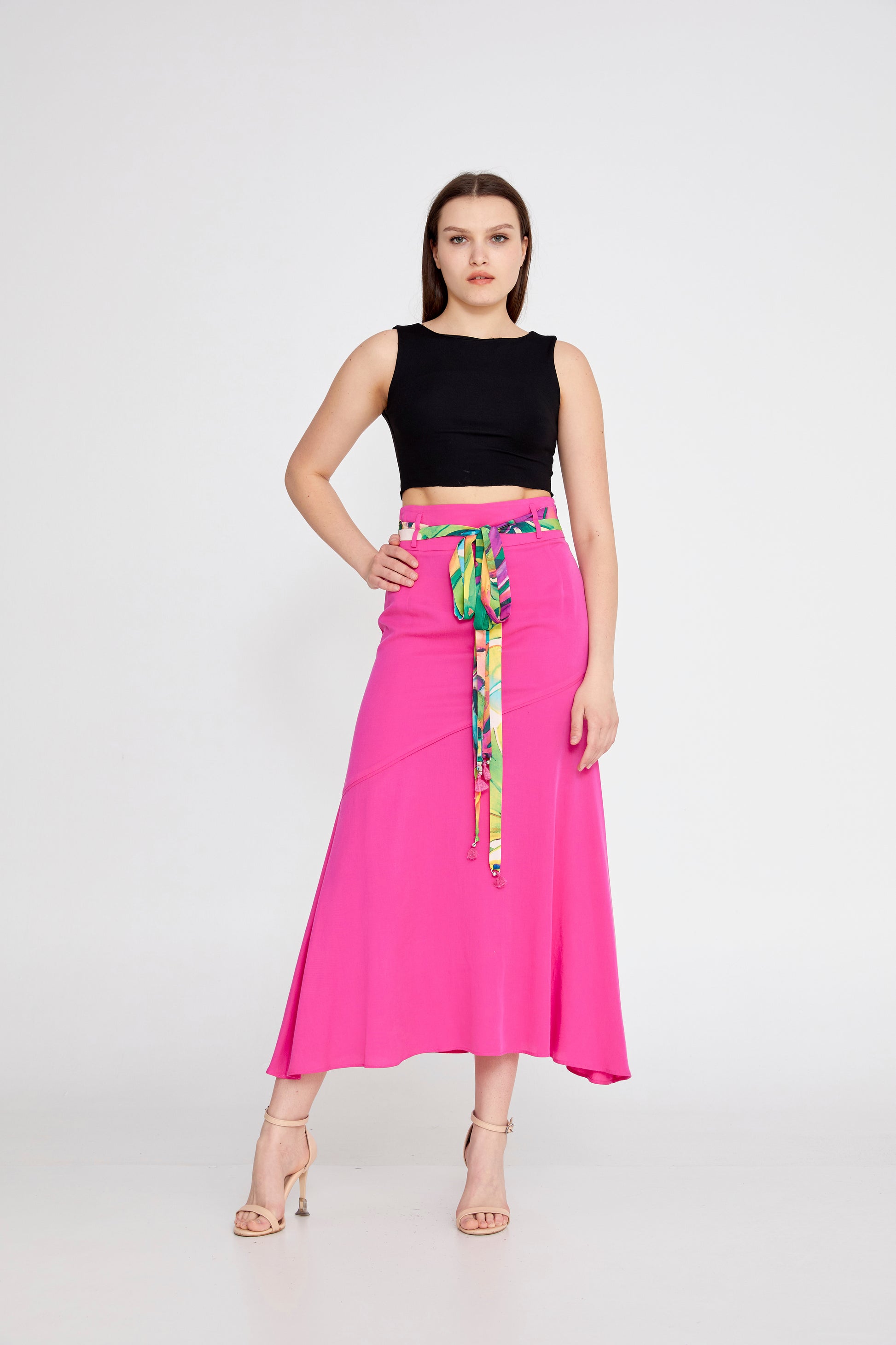 Midi Solid Color Regular Skirt huk23y03l039 Features
