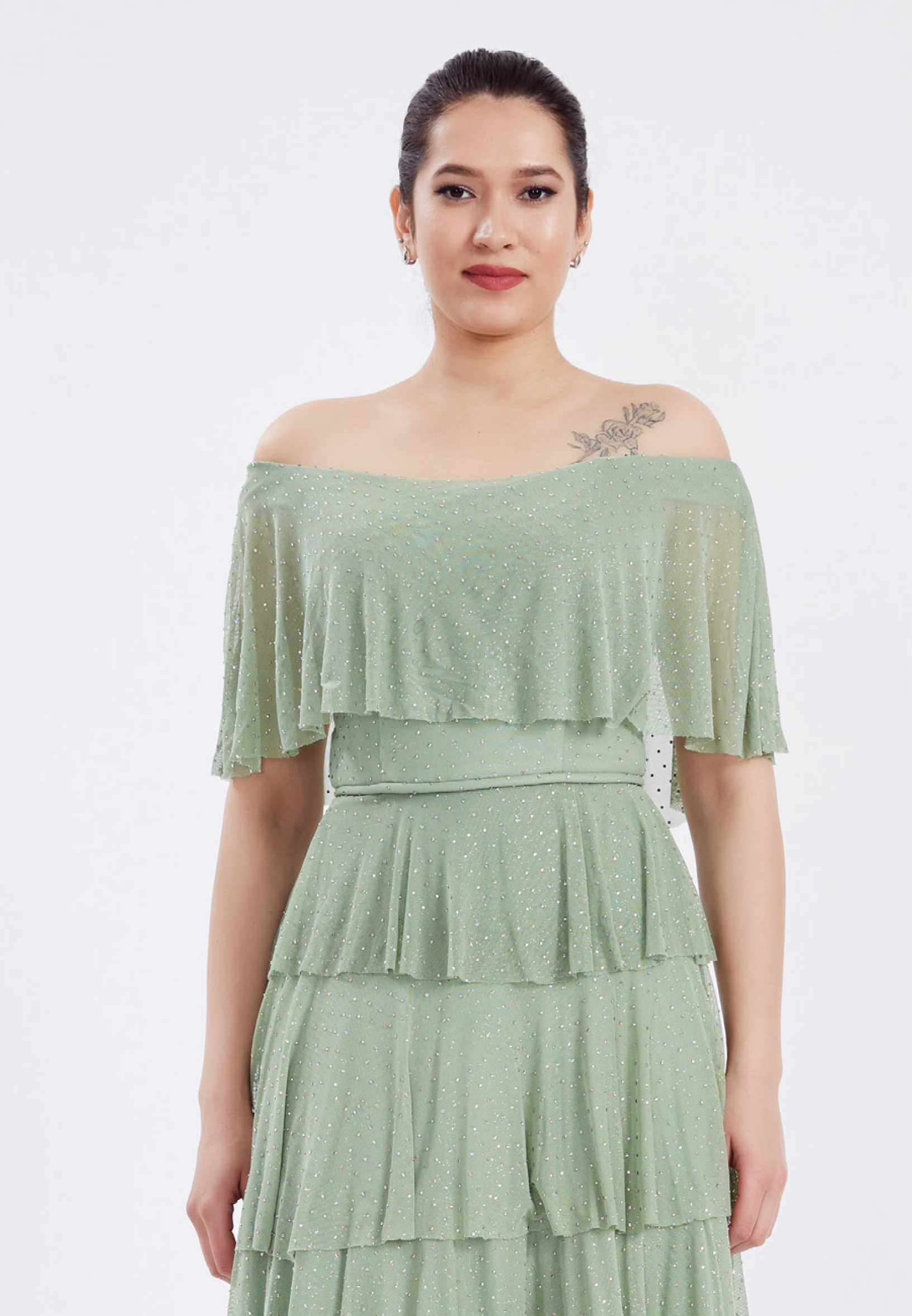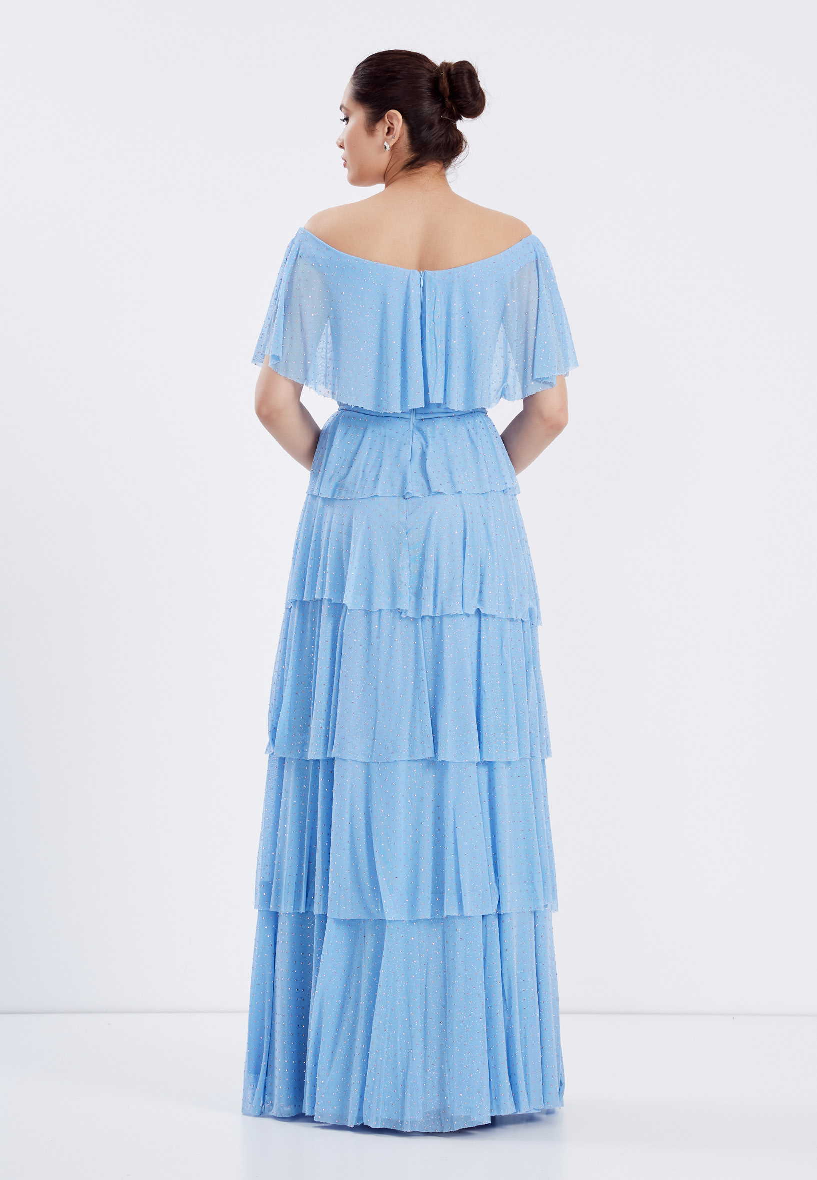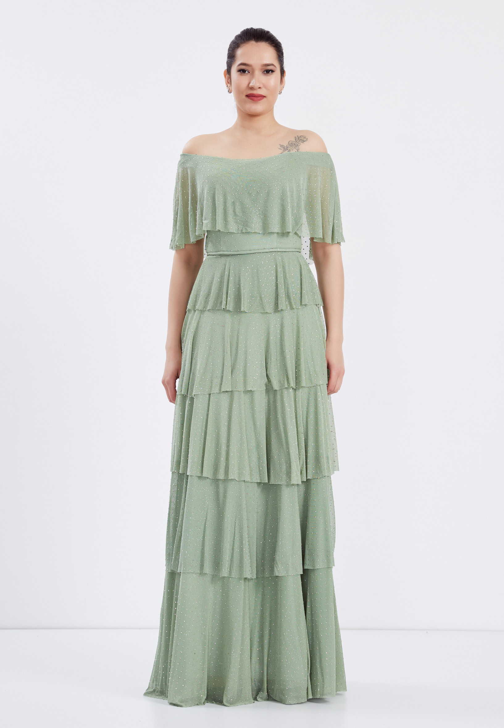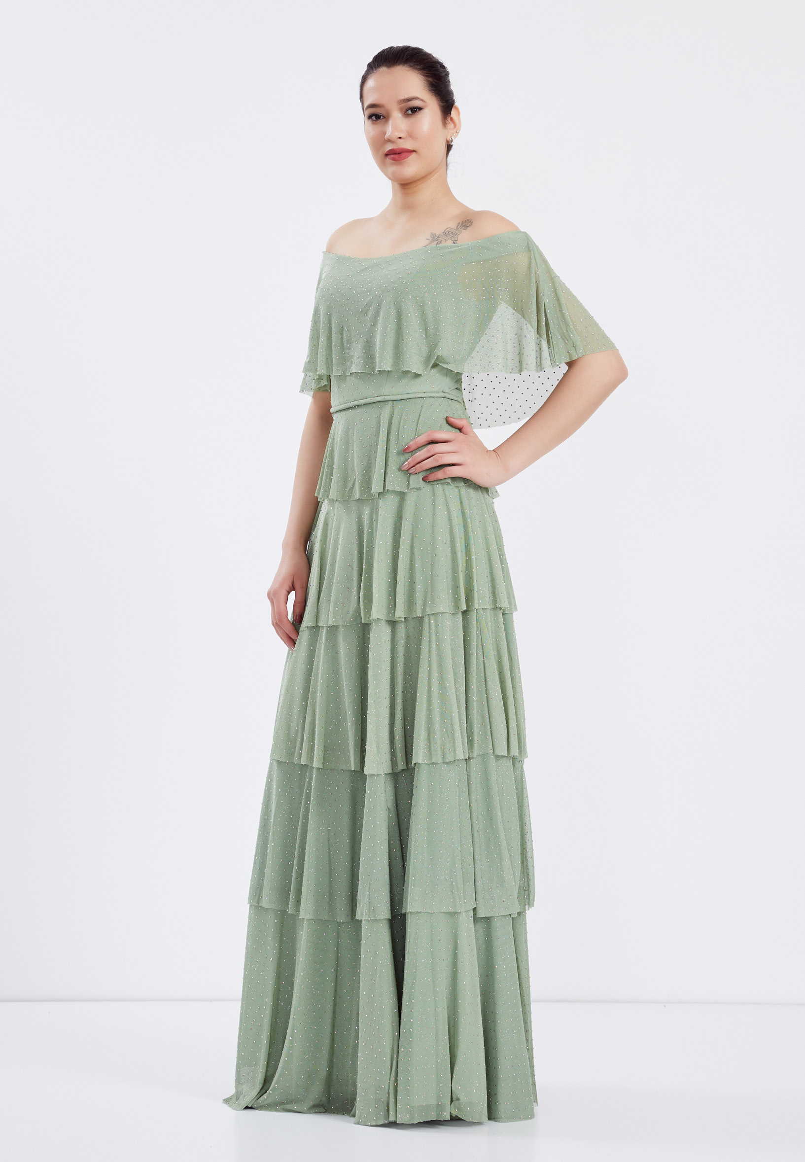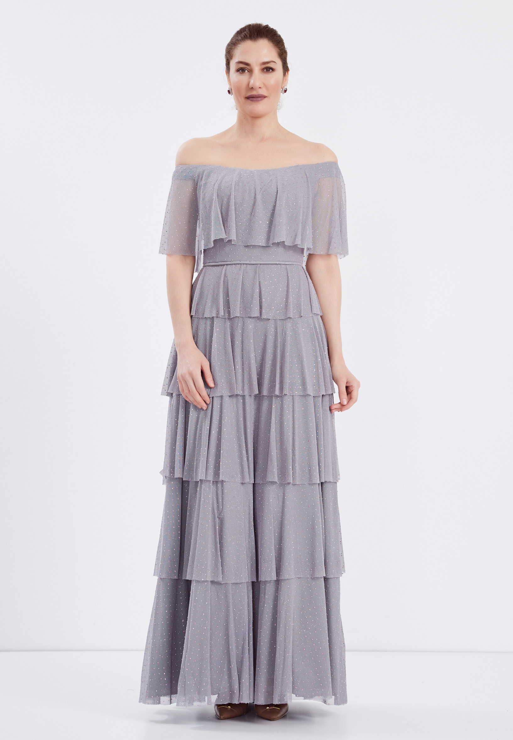 Off Shoulder Maxi Chiffon Column Regular Wedding Guest Dress frc6370