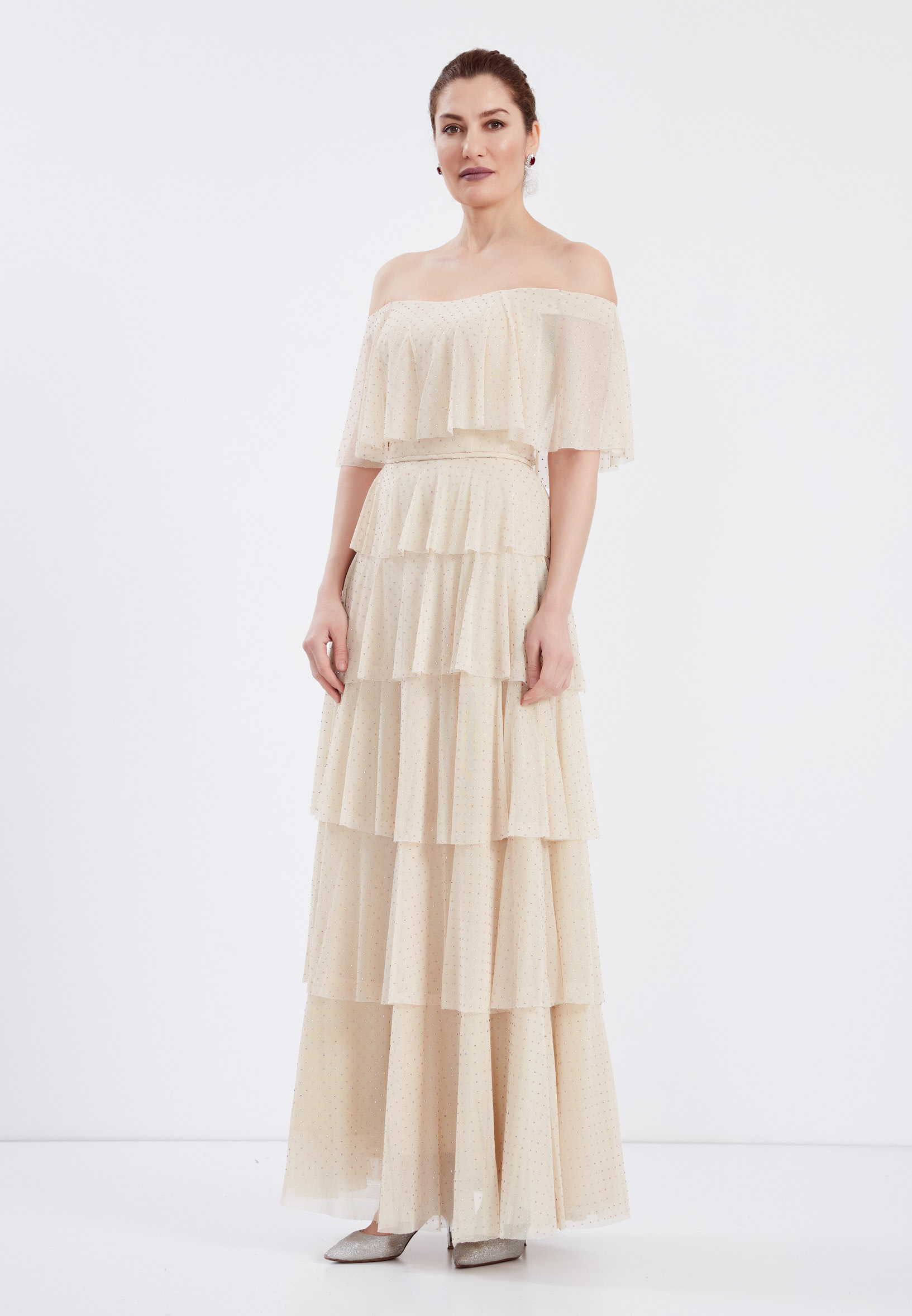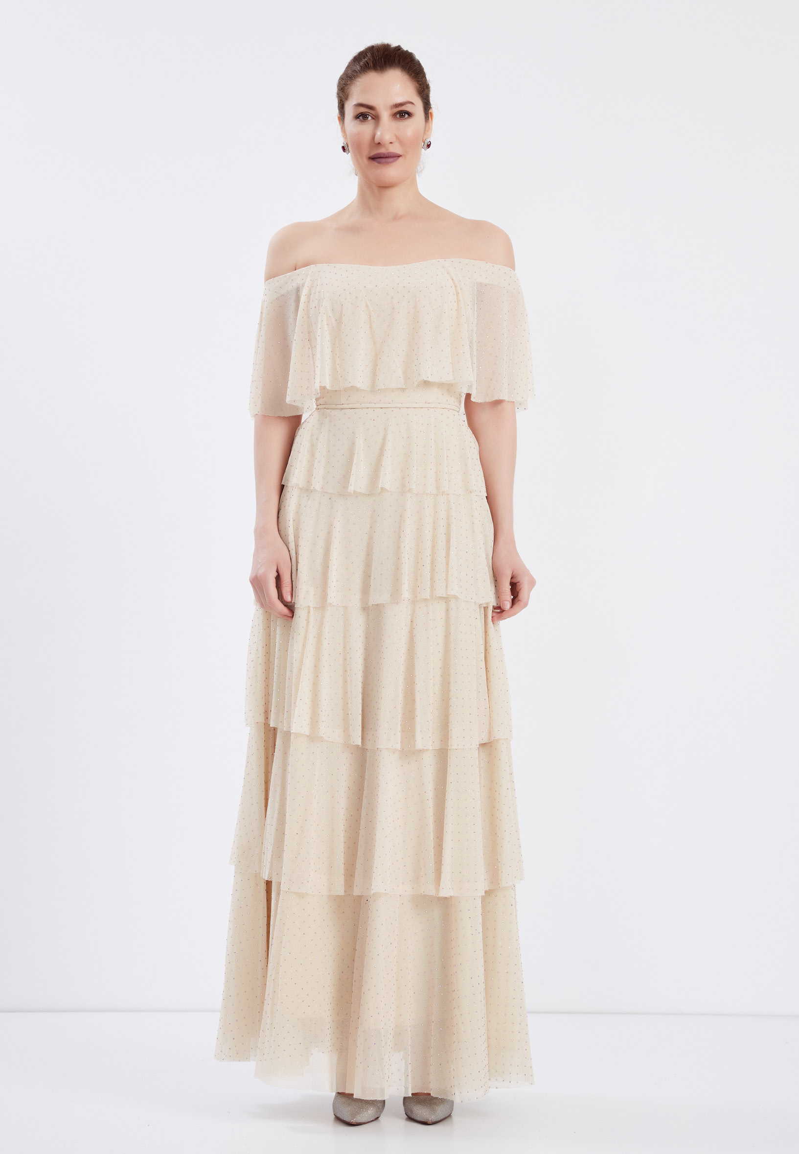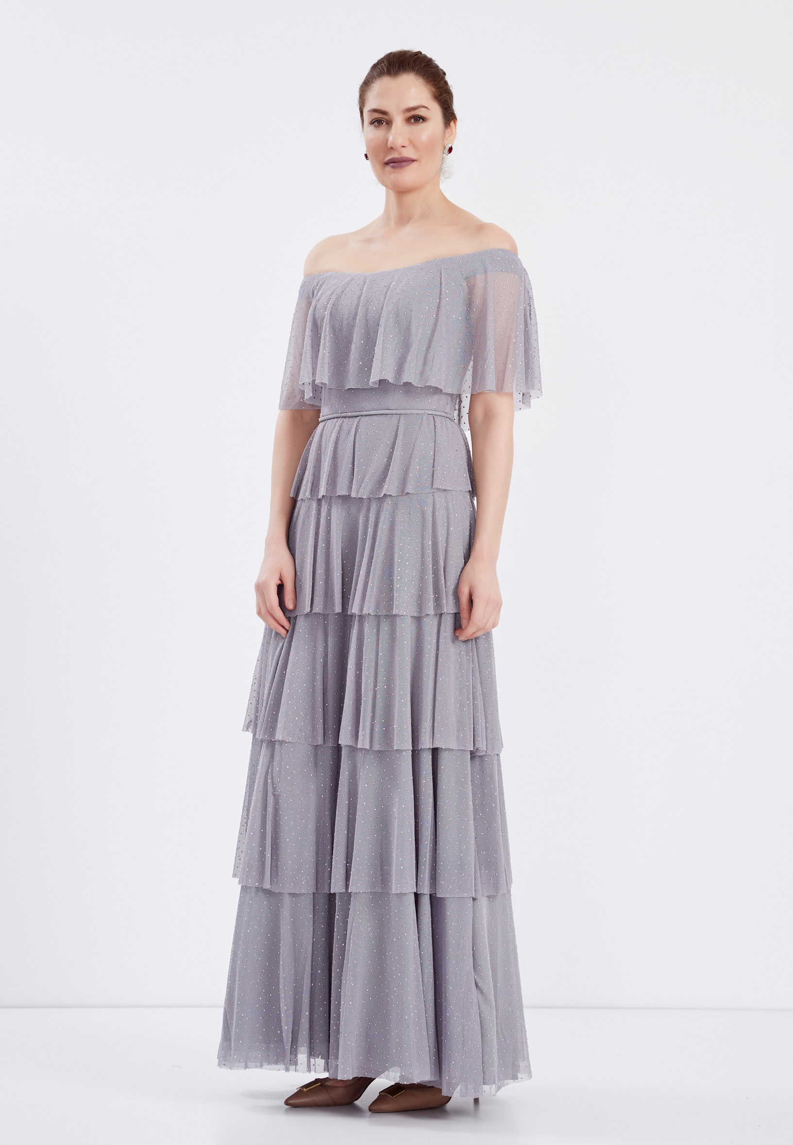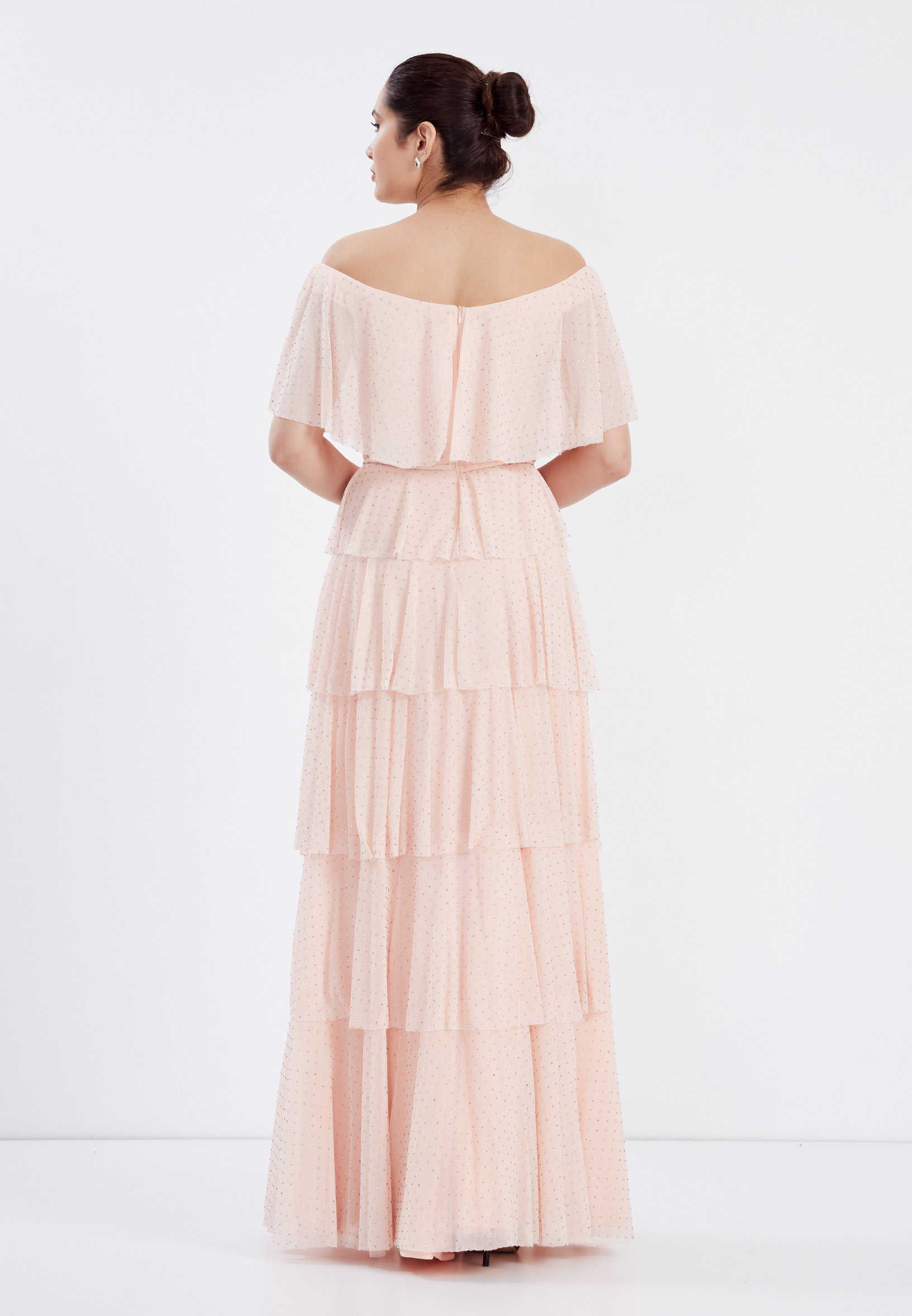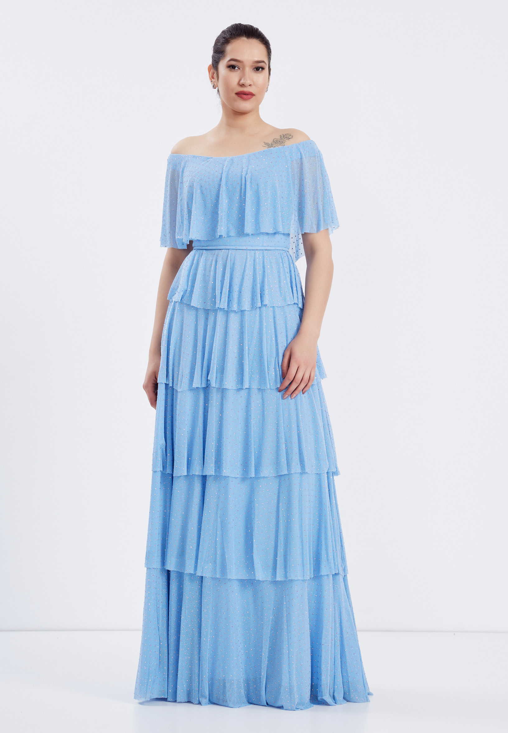 Off Shoulder Maxi Chiffon Column Regular Wedding Guest Dress frc6370 Features