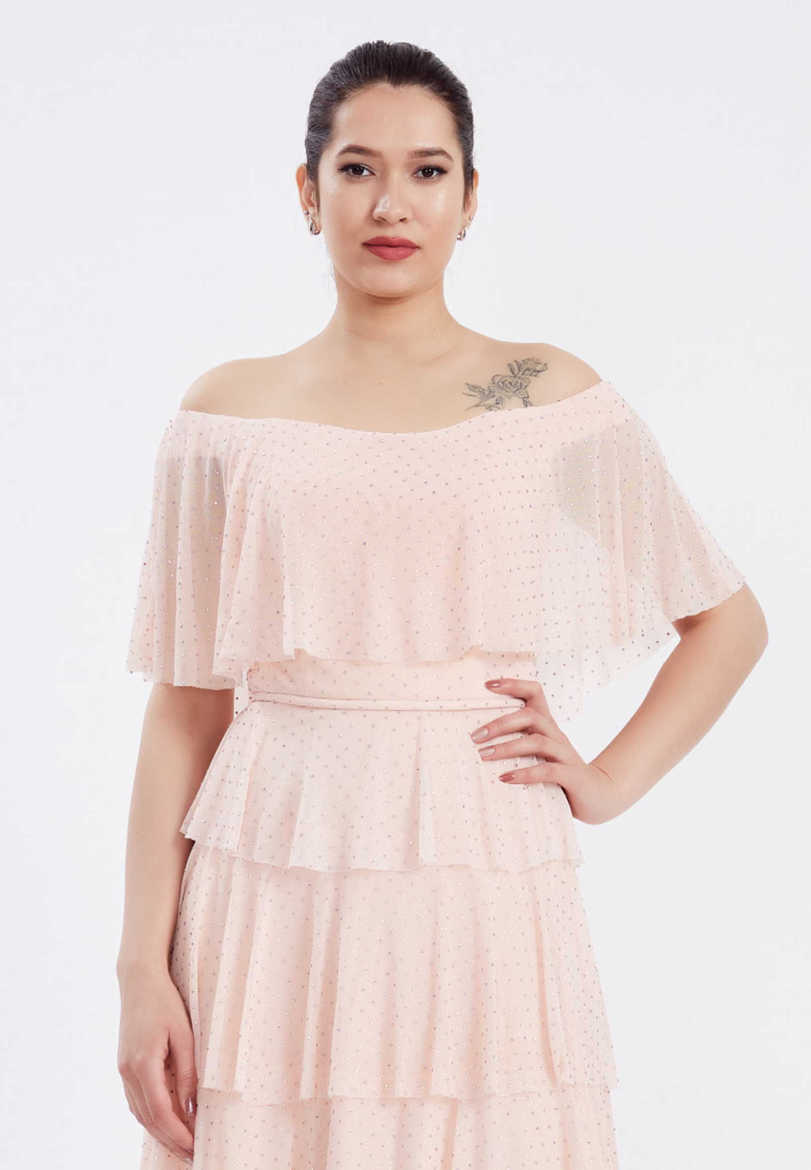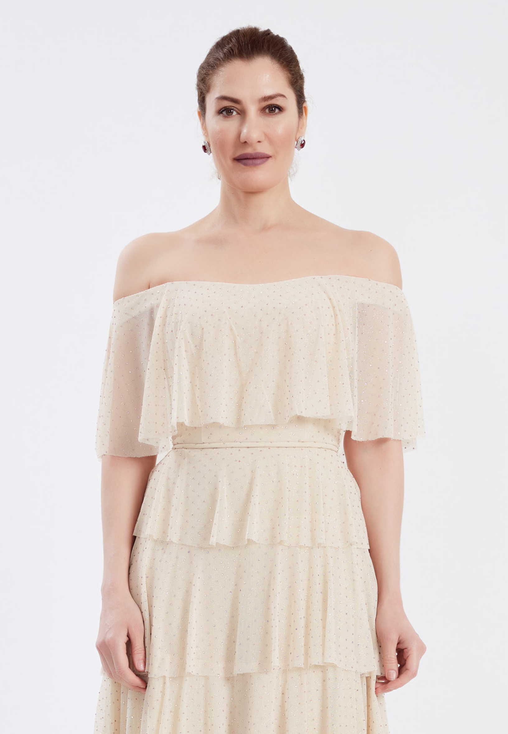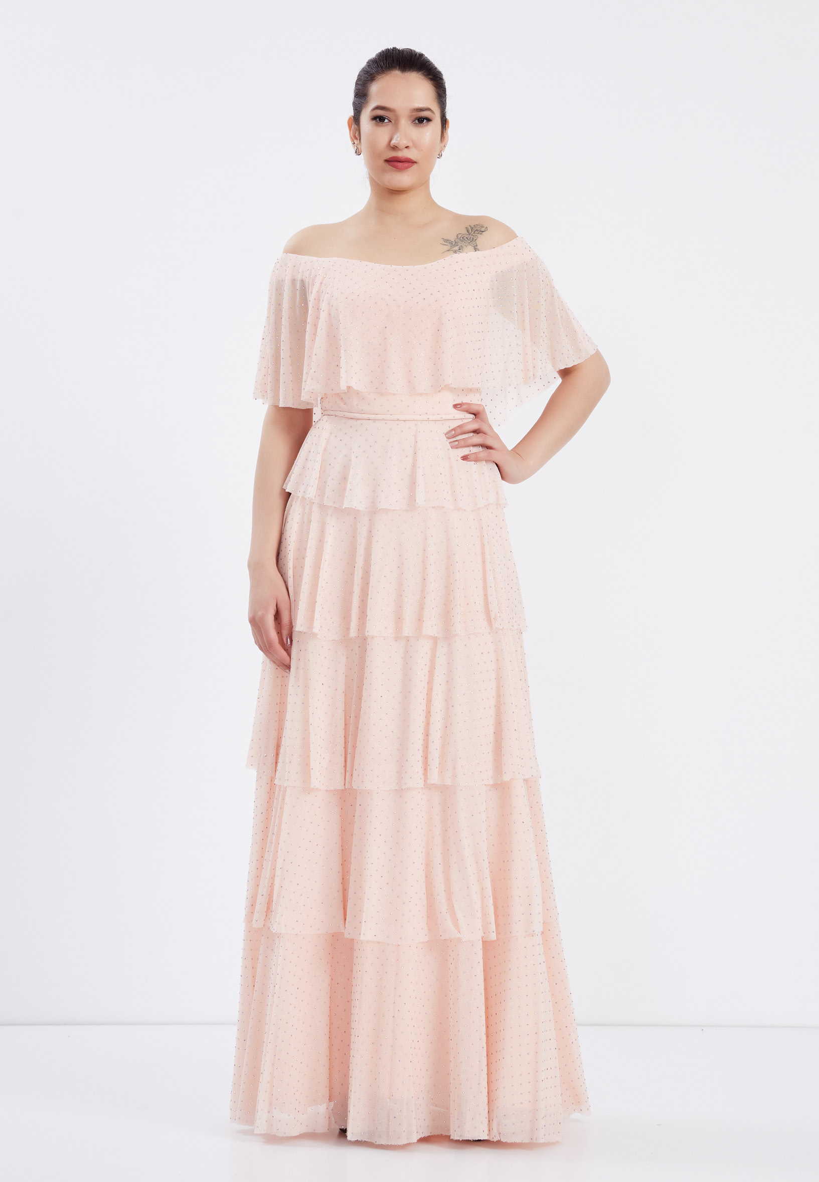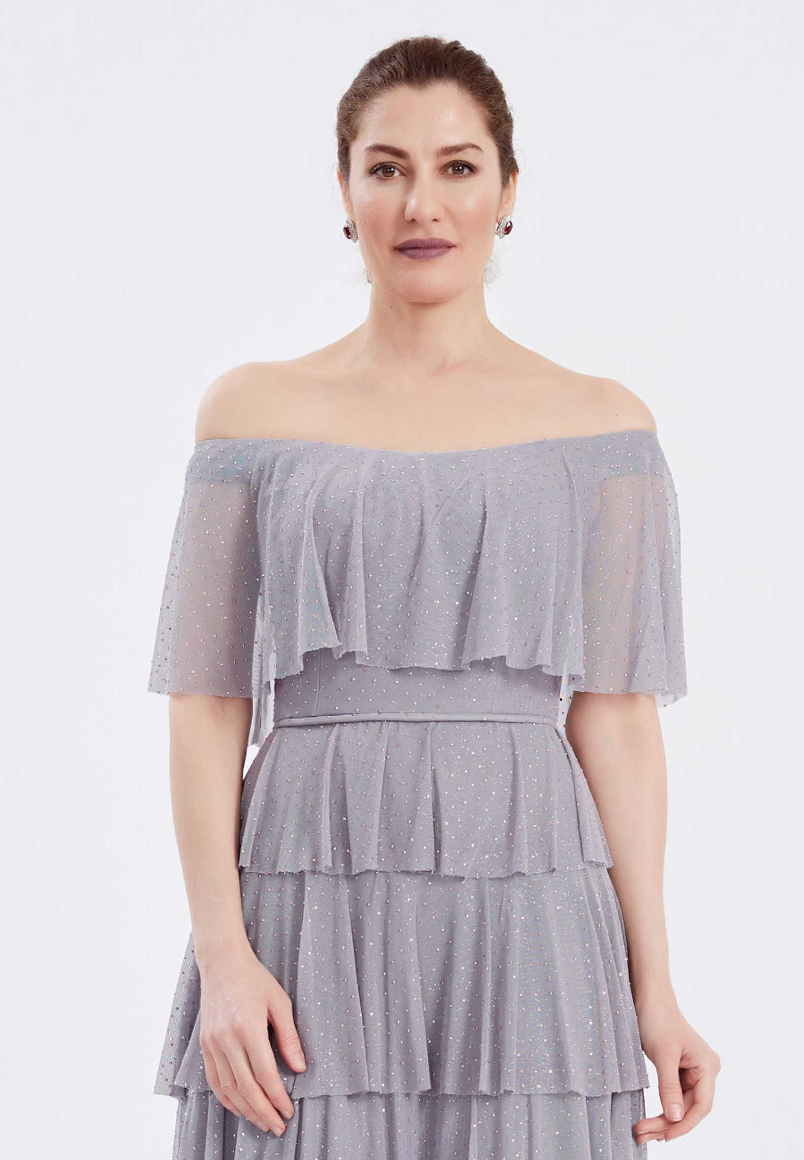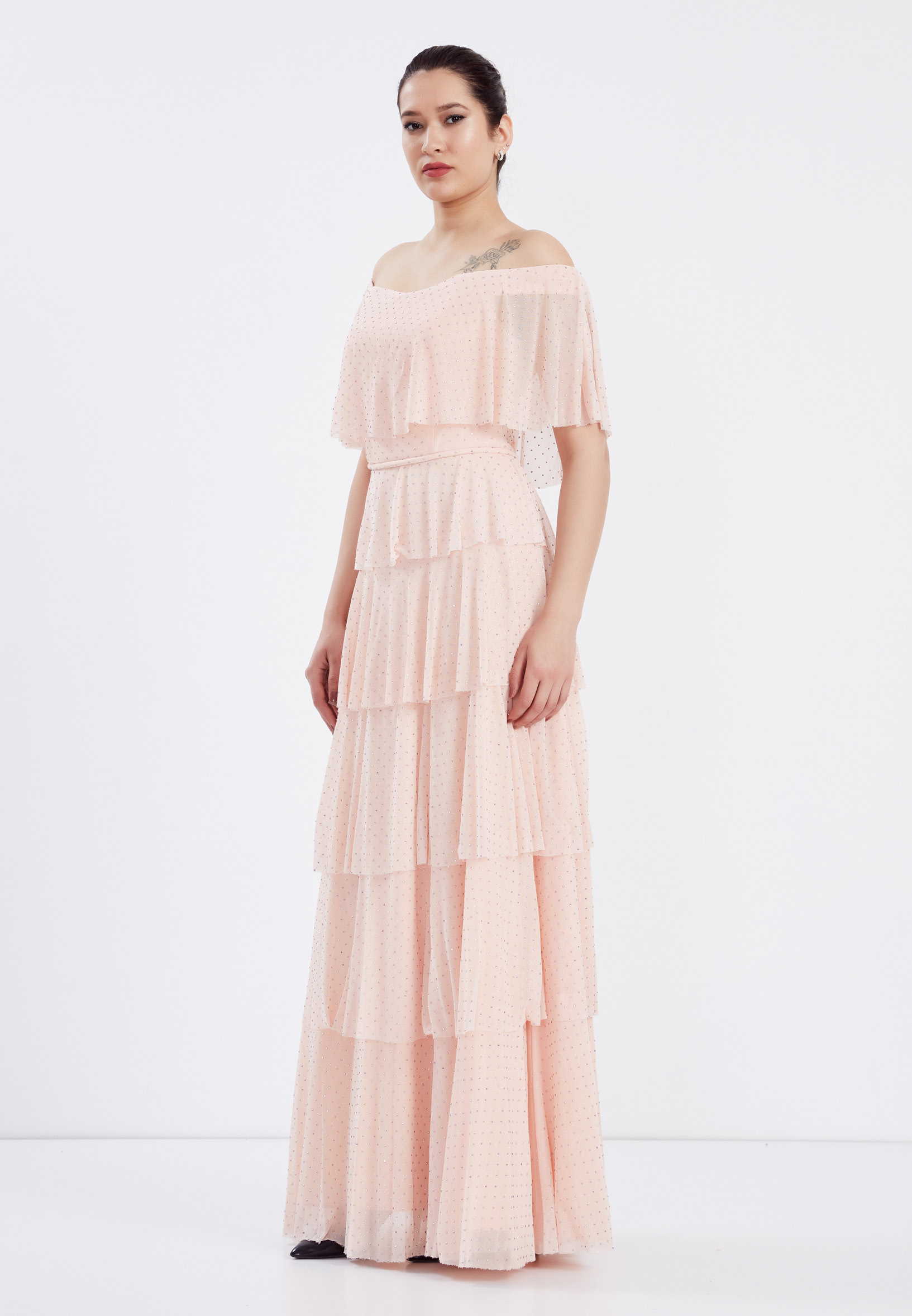 Off Shoulder Maxi Chiffon Column Regular Wedding Guest Dress frc6370 Features