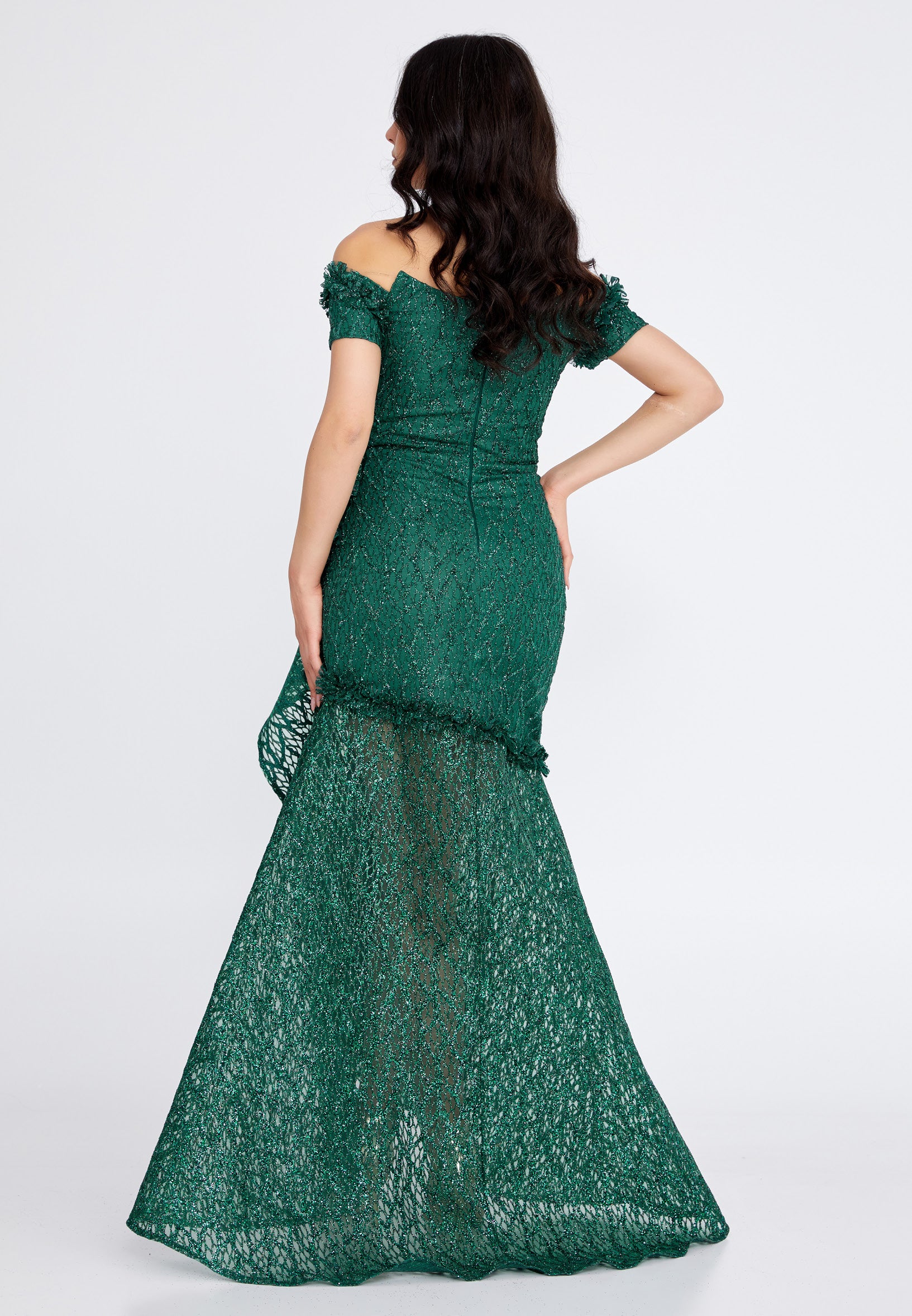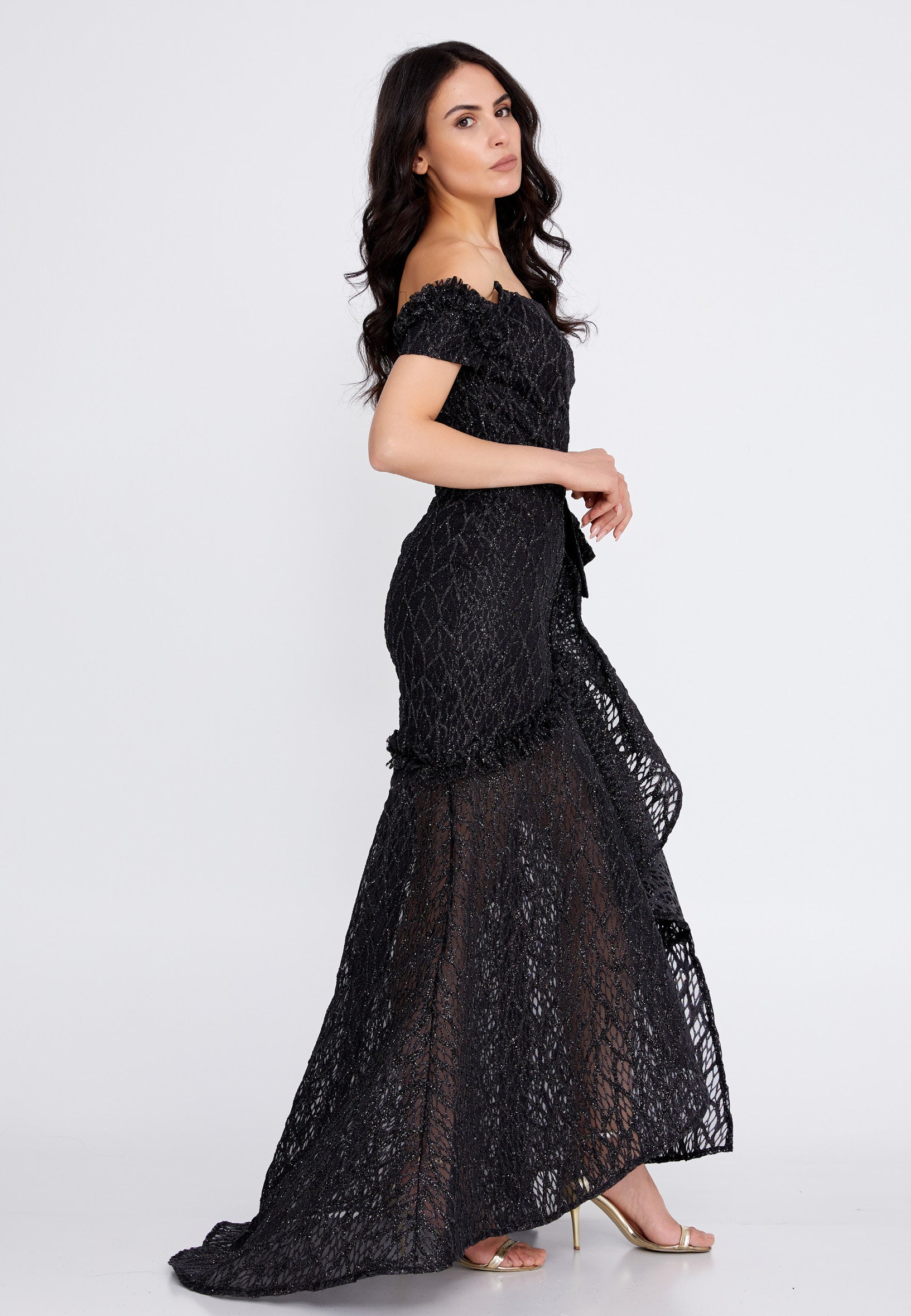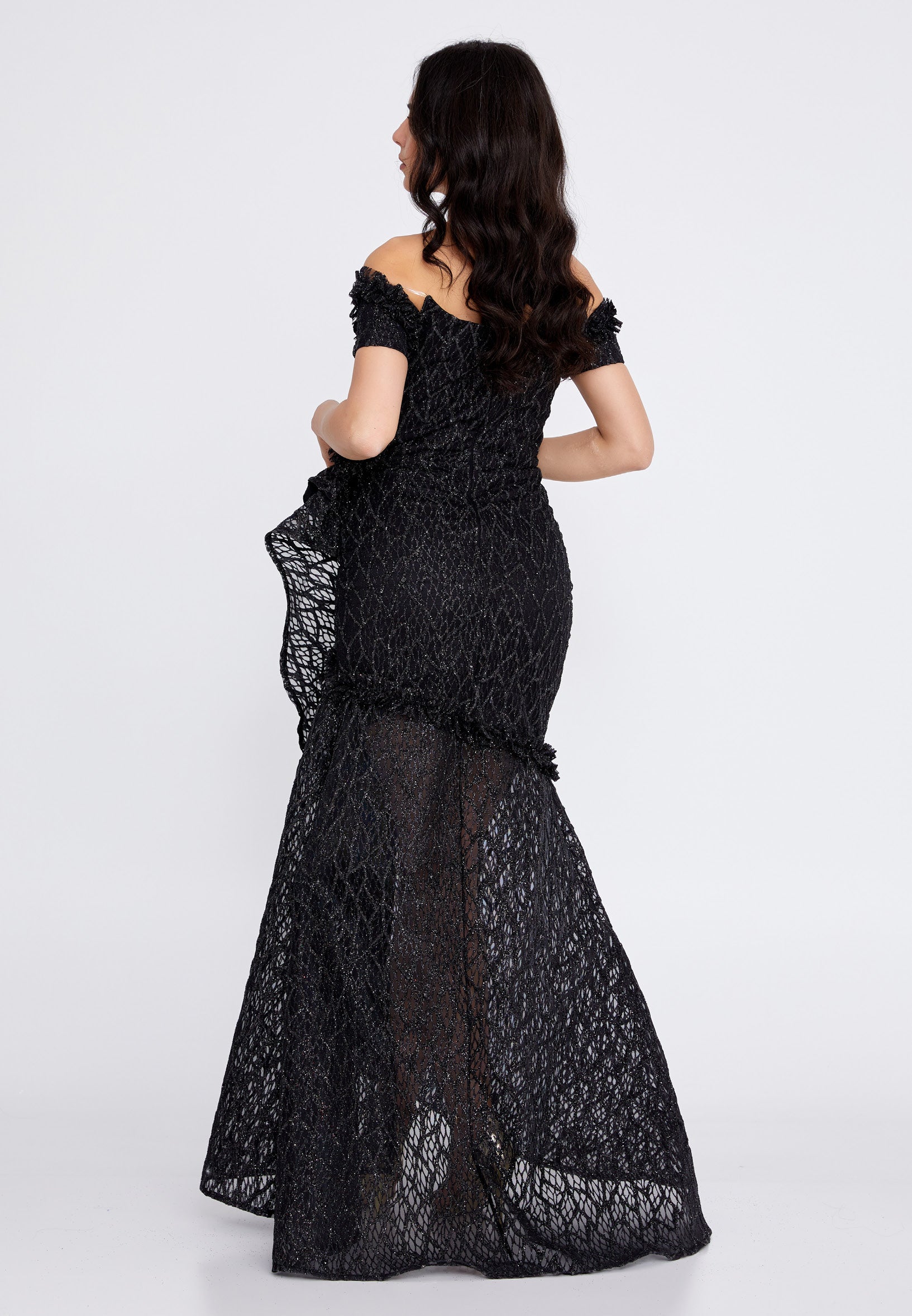 Off Shoulder Maxi Tulle Fit & Flare Regular Prom Dress rmn3157 Features