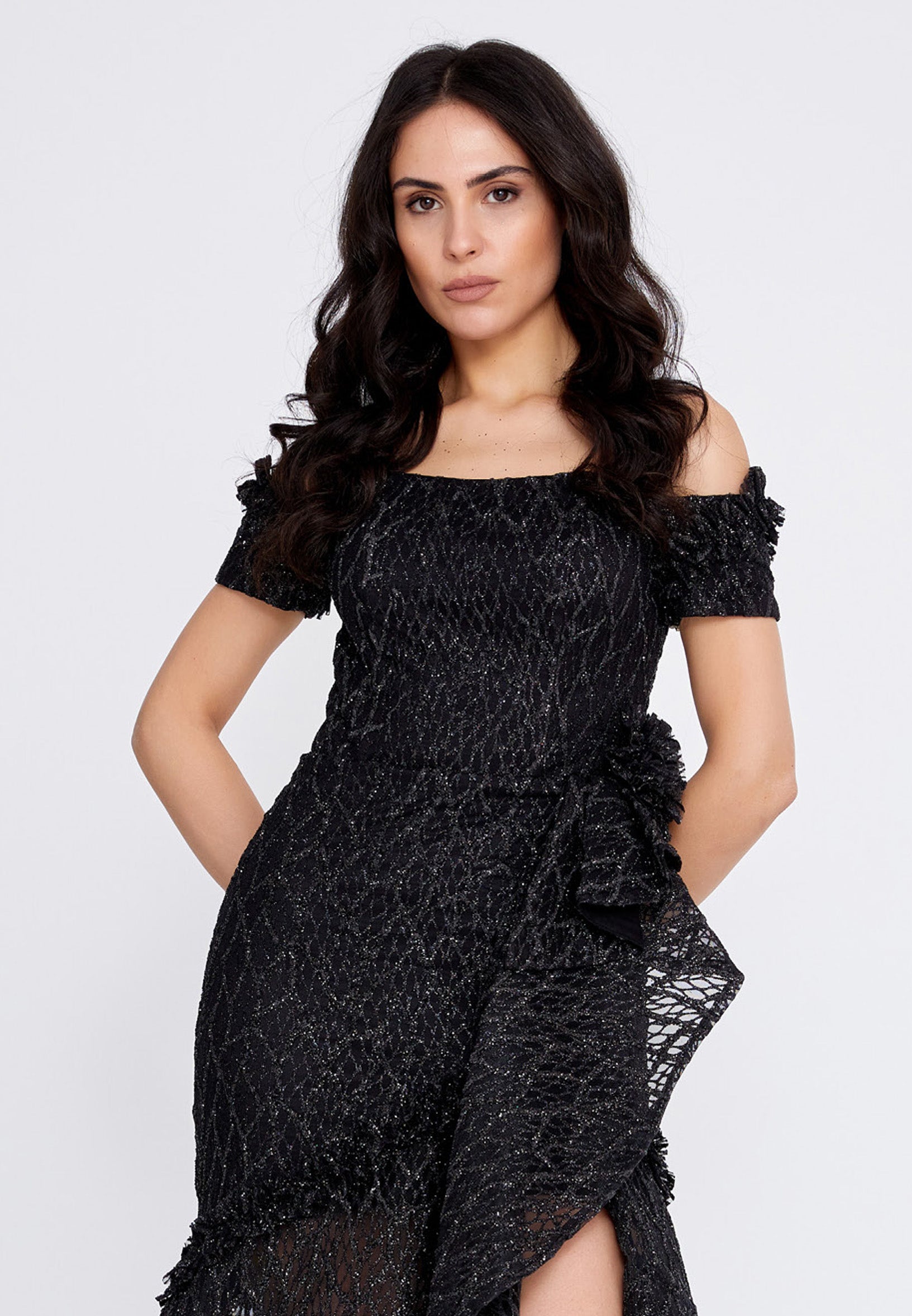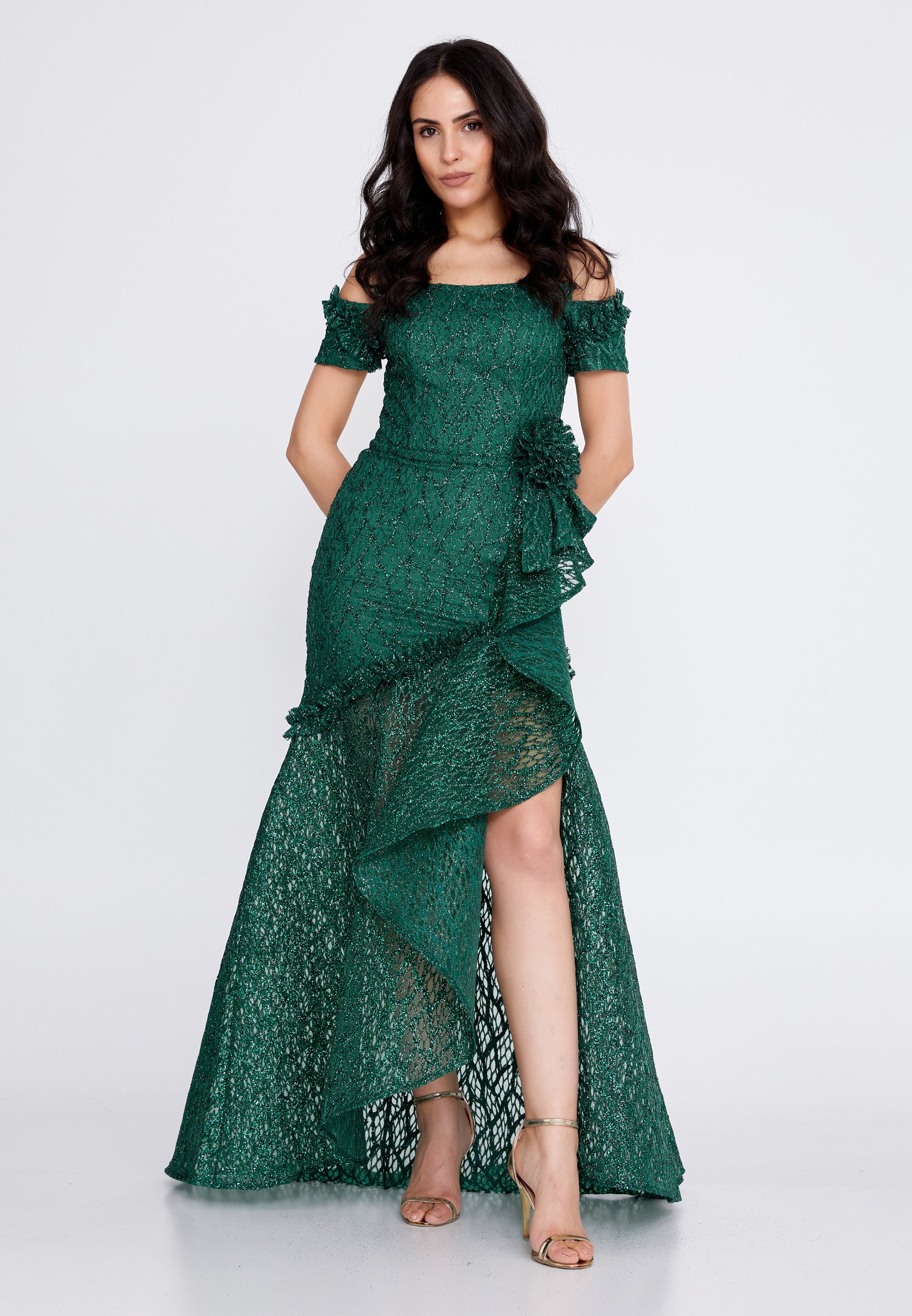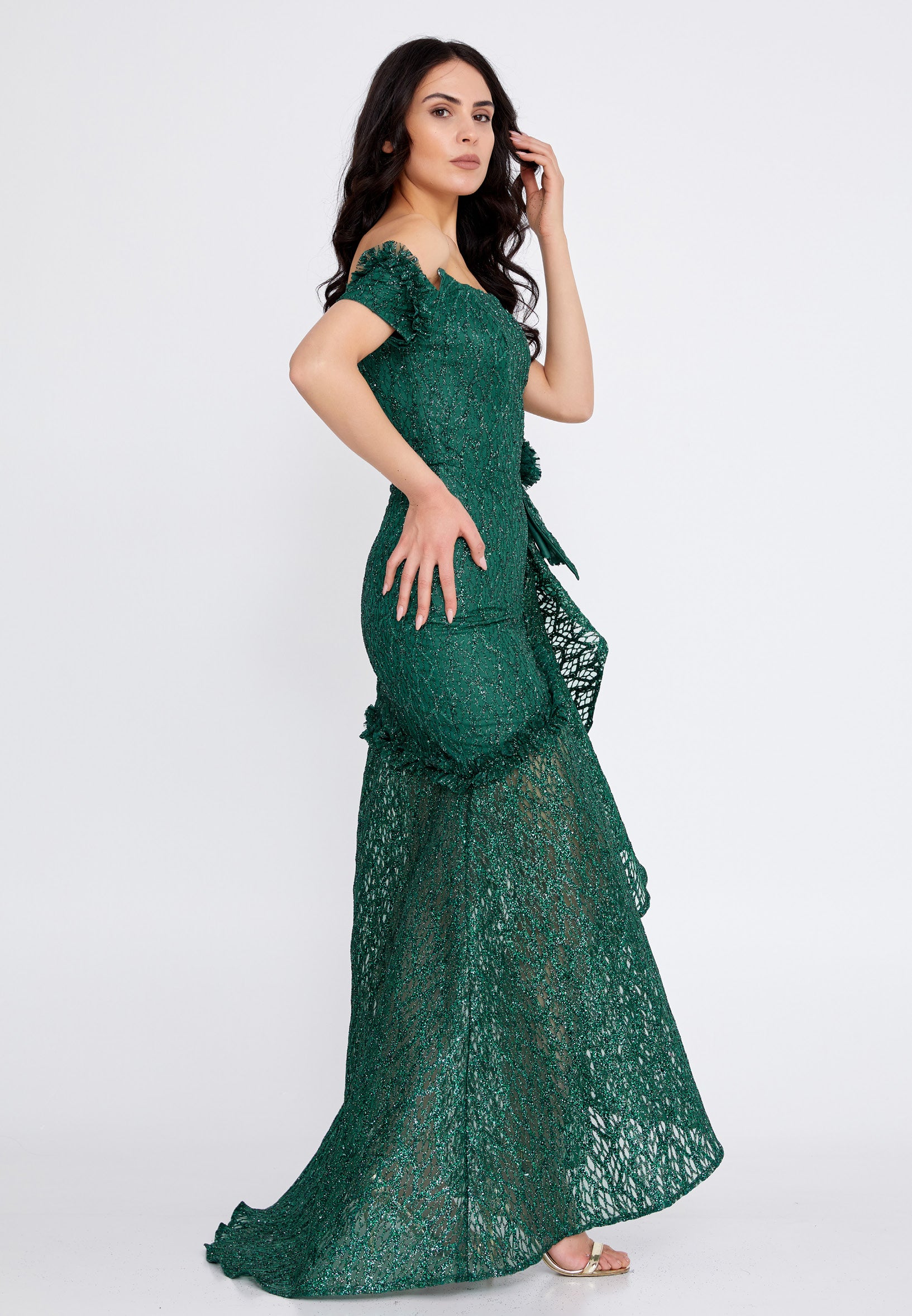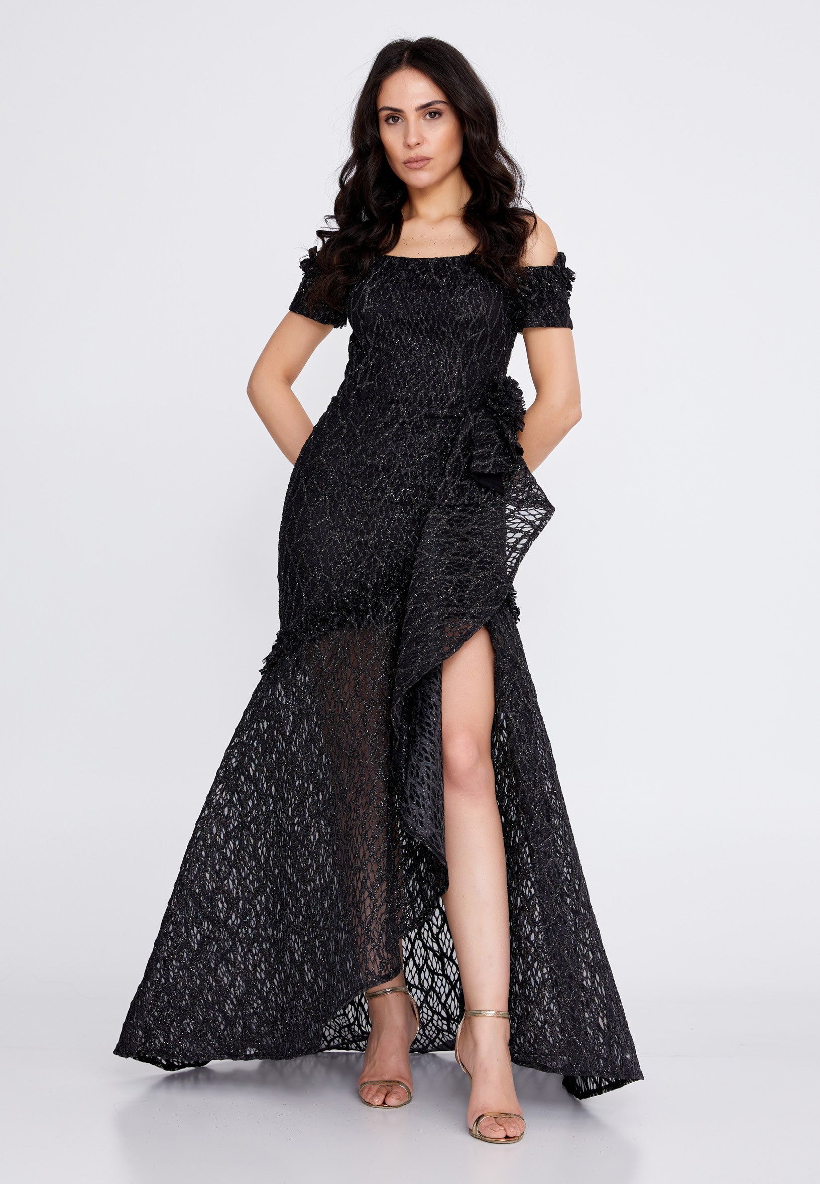 Off Shoulder Maxi Tulle Fit & Flare Regular Prom Dress rmn3157 Features