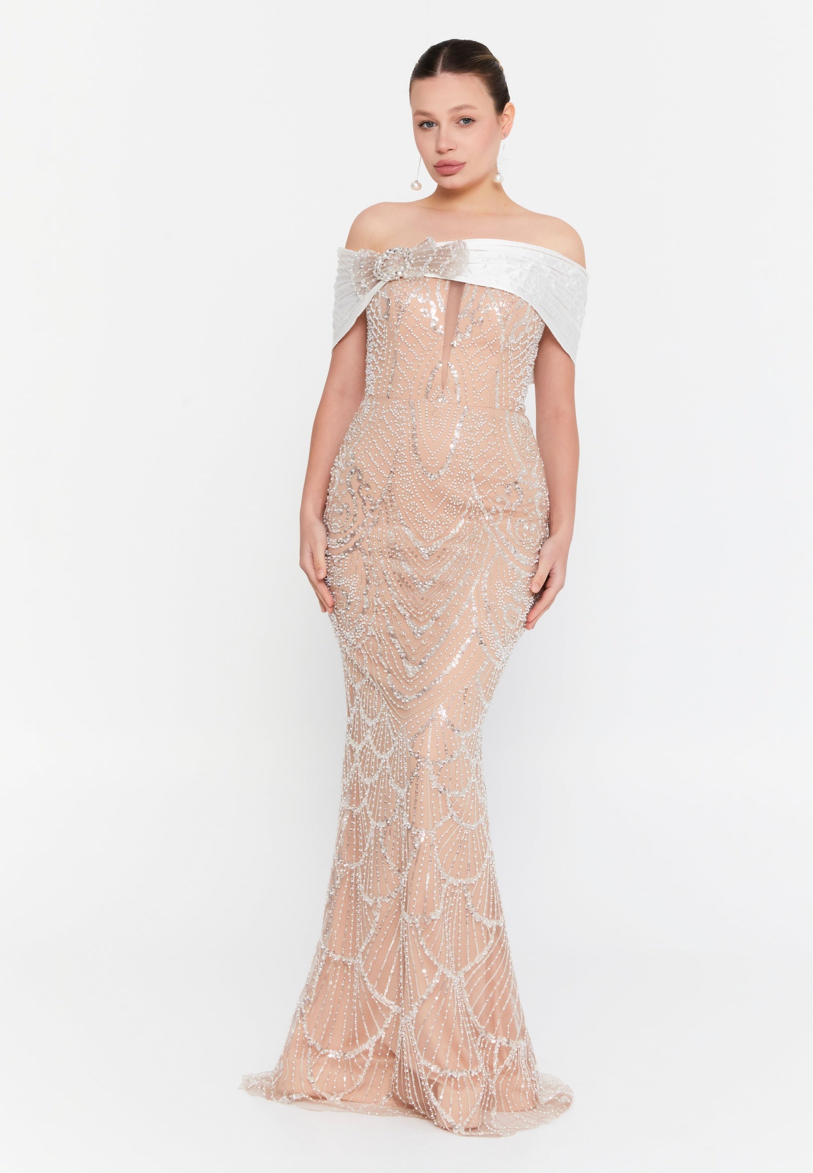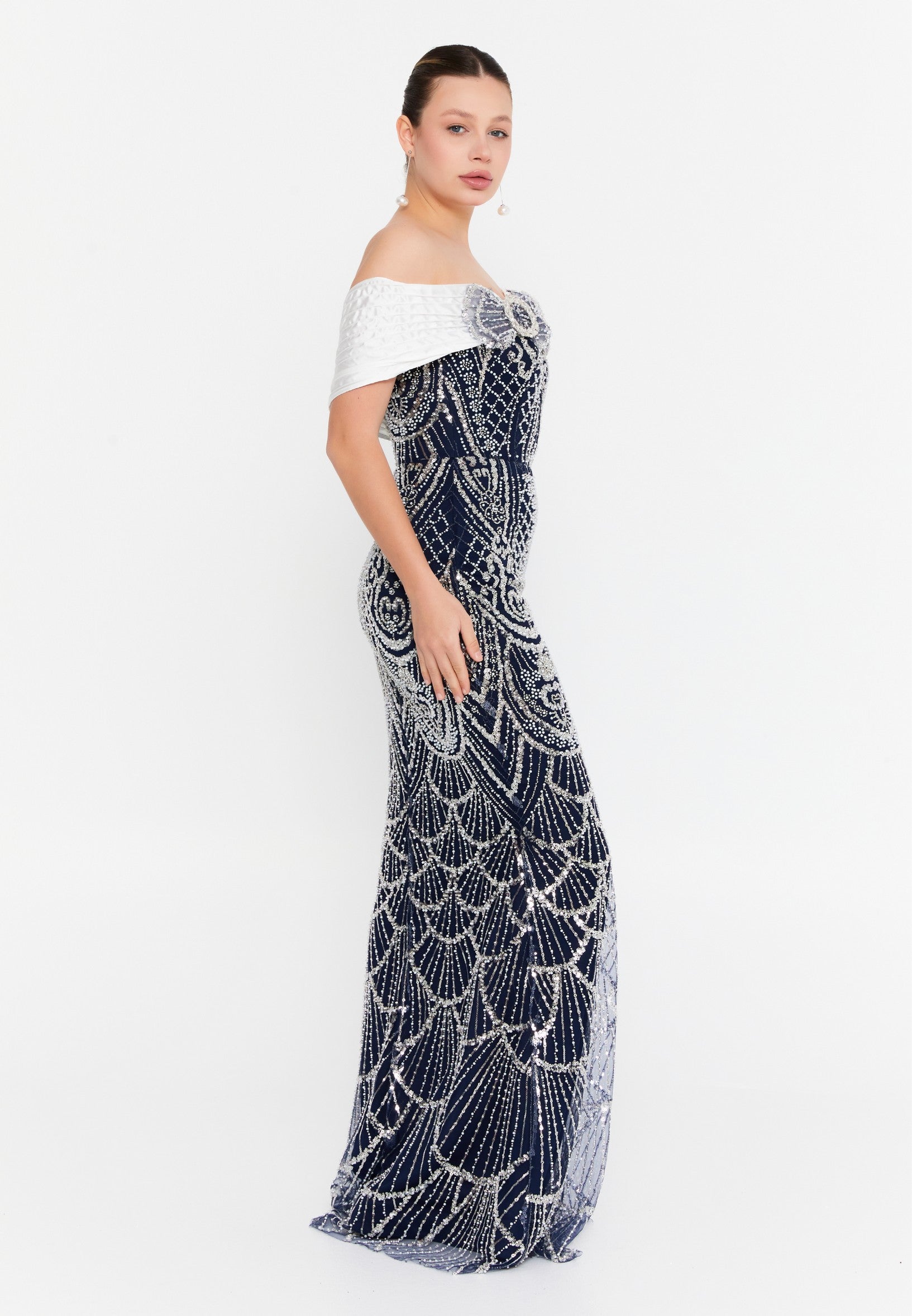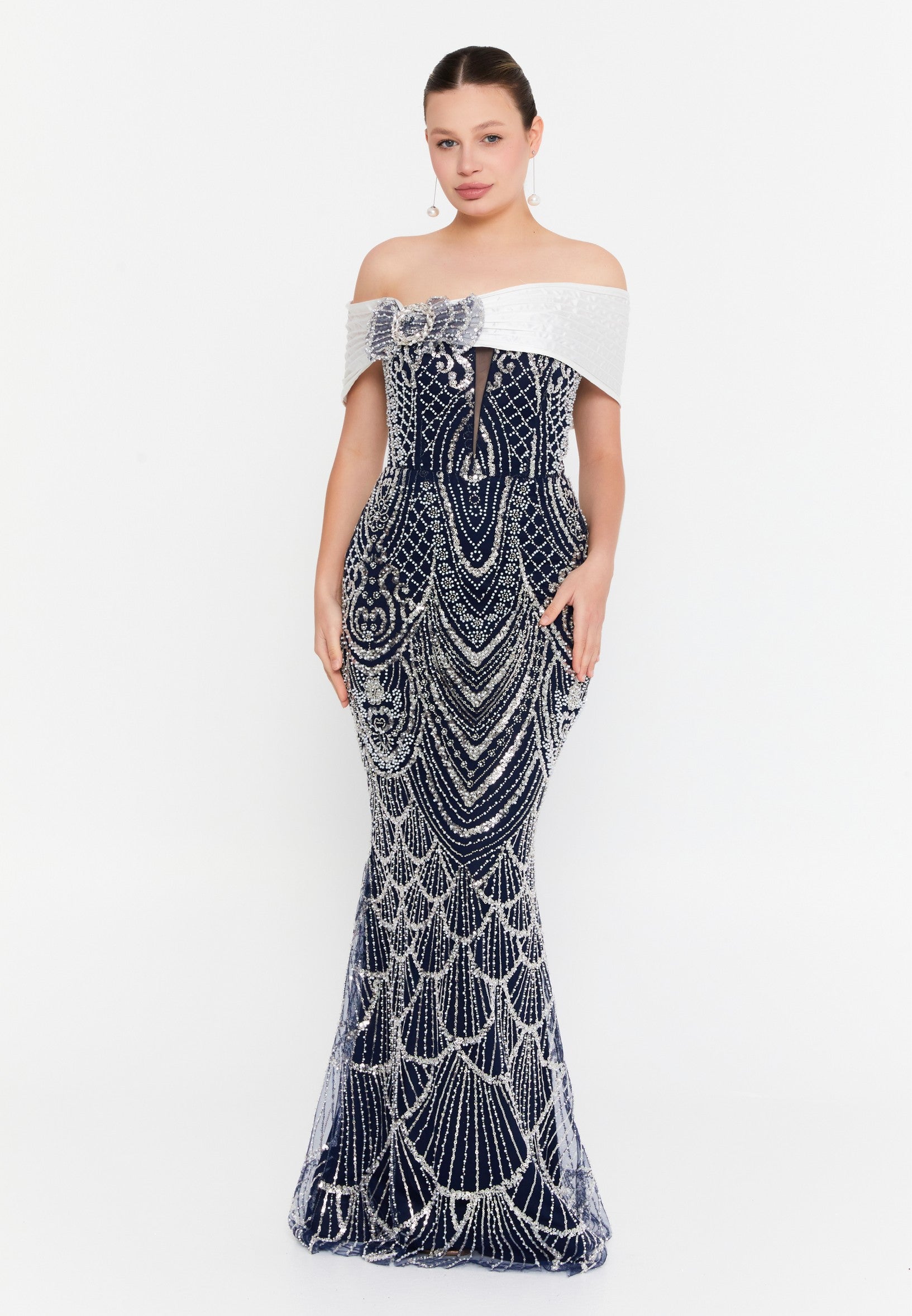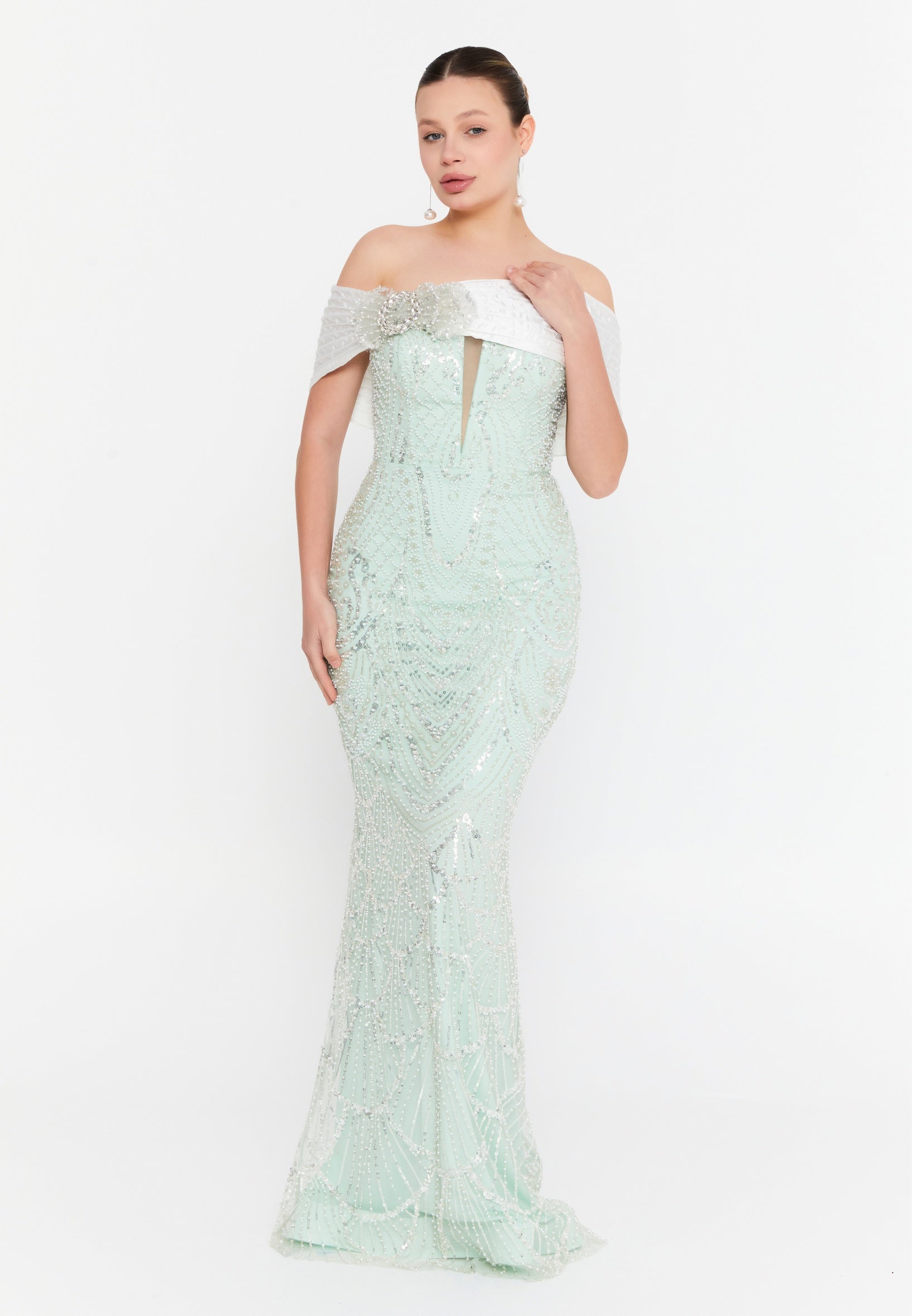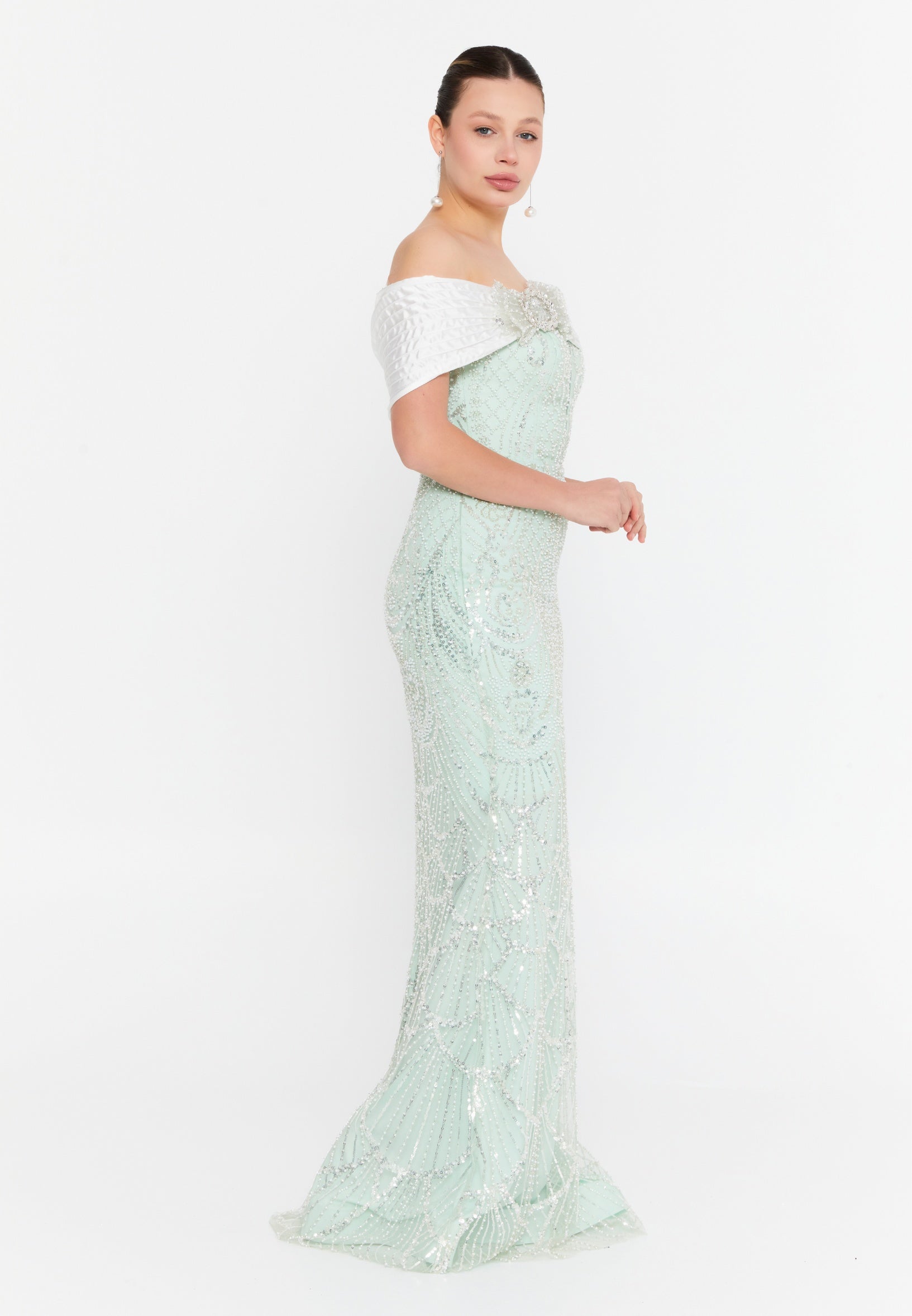 Off Shoulder Maxi Tulle Mermaid Regular Wedding Guest Dress lns3877