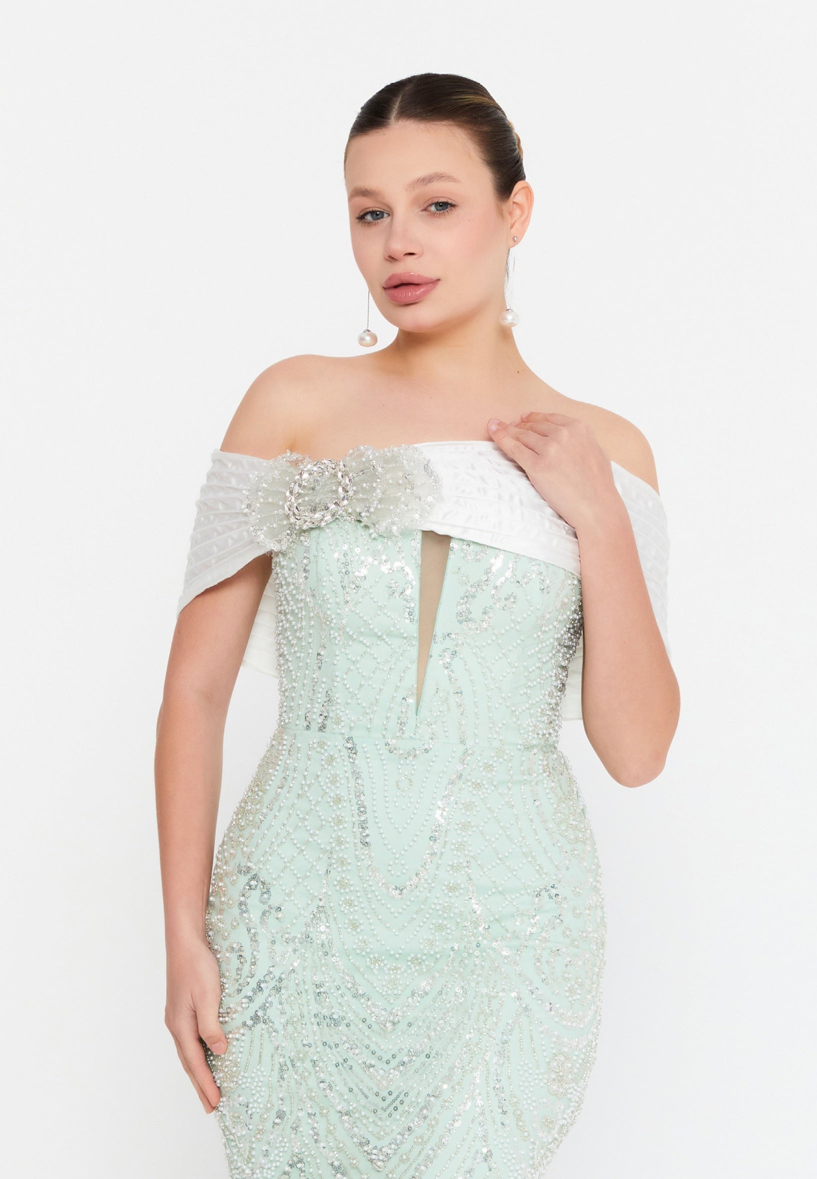 Off Shoulder Maxi Tulle Mermaid Regular Wedding Guest Dress lns3877 Features