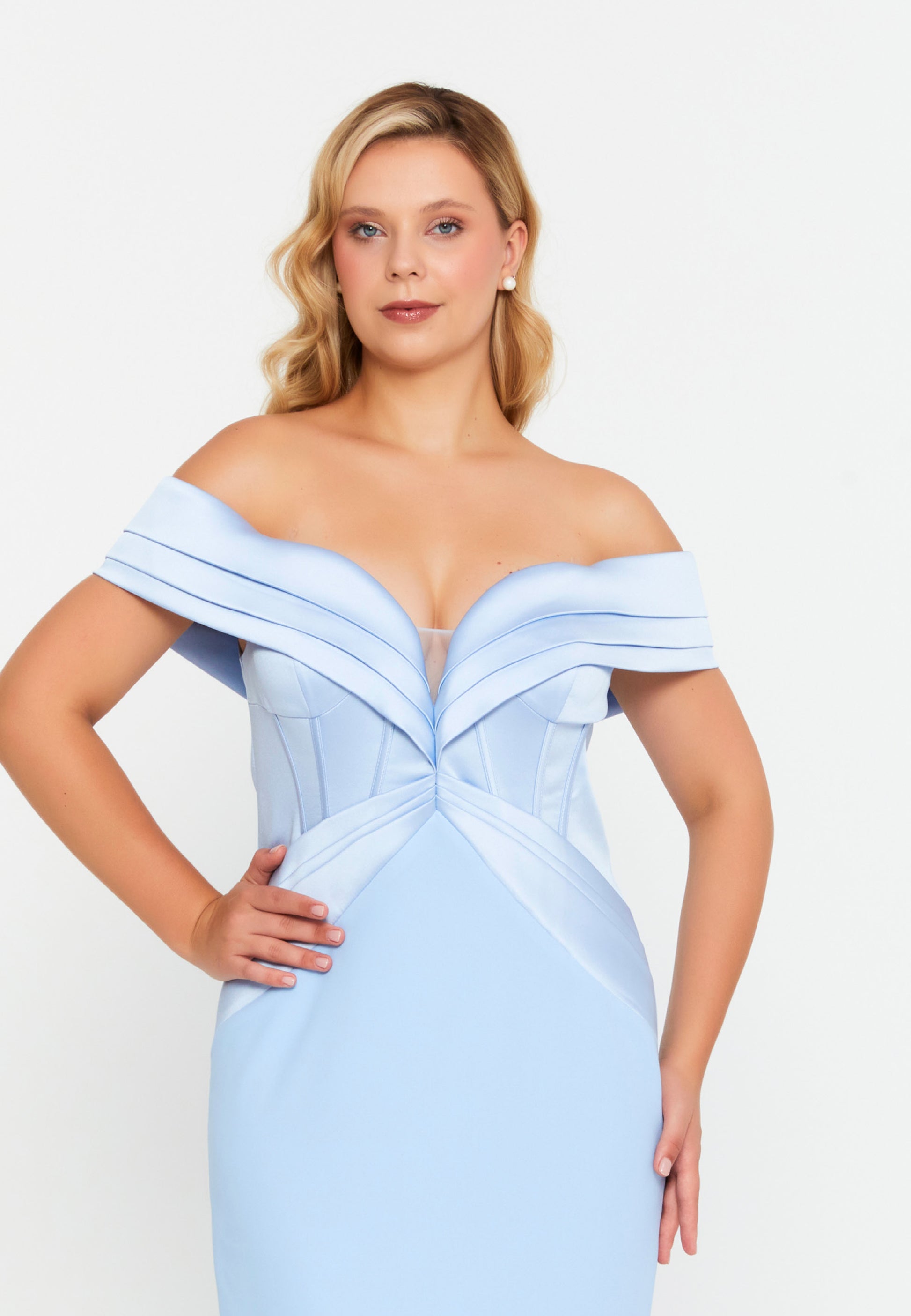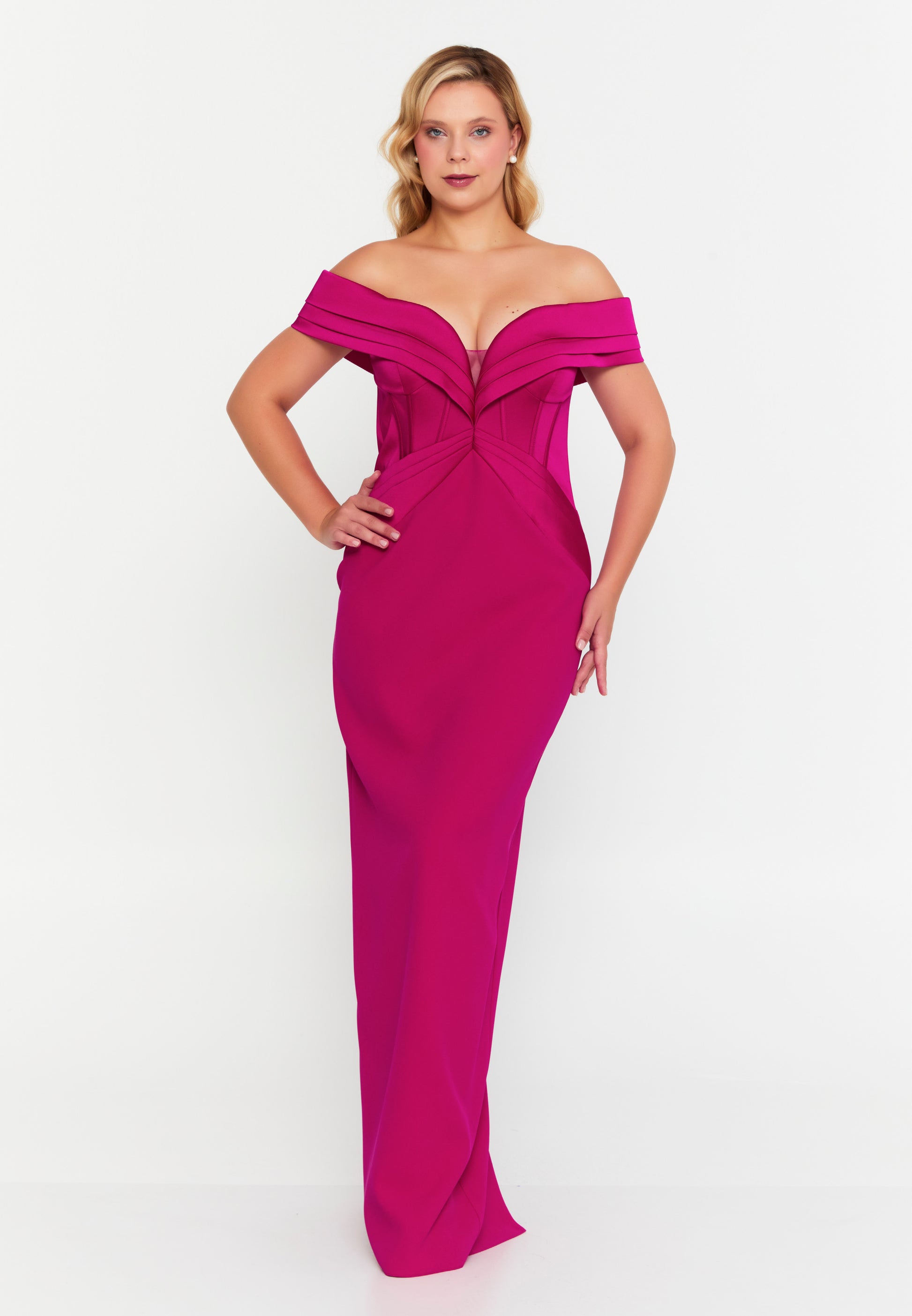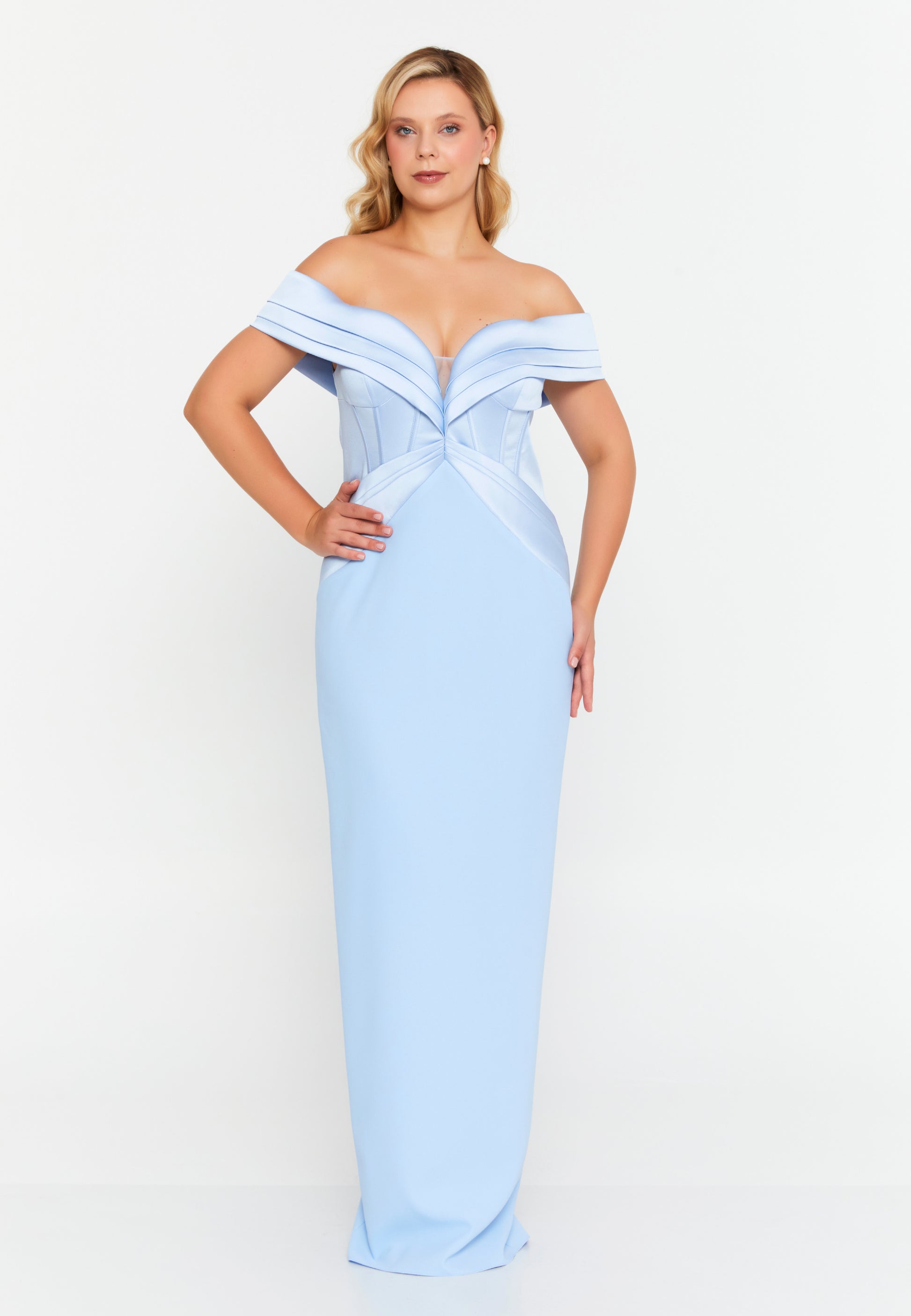 Off Shoulder Maxi Viscose Column Plus Size Evening Dress aal8016-1 Features