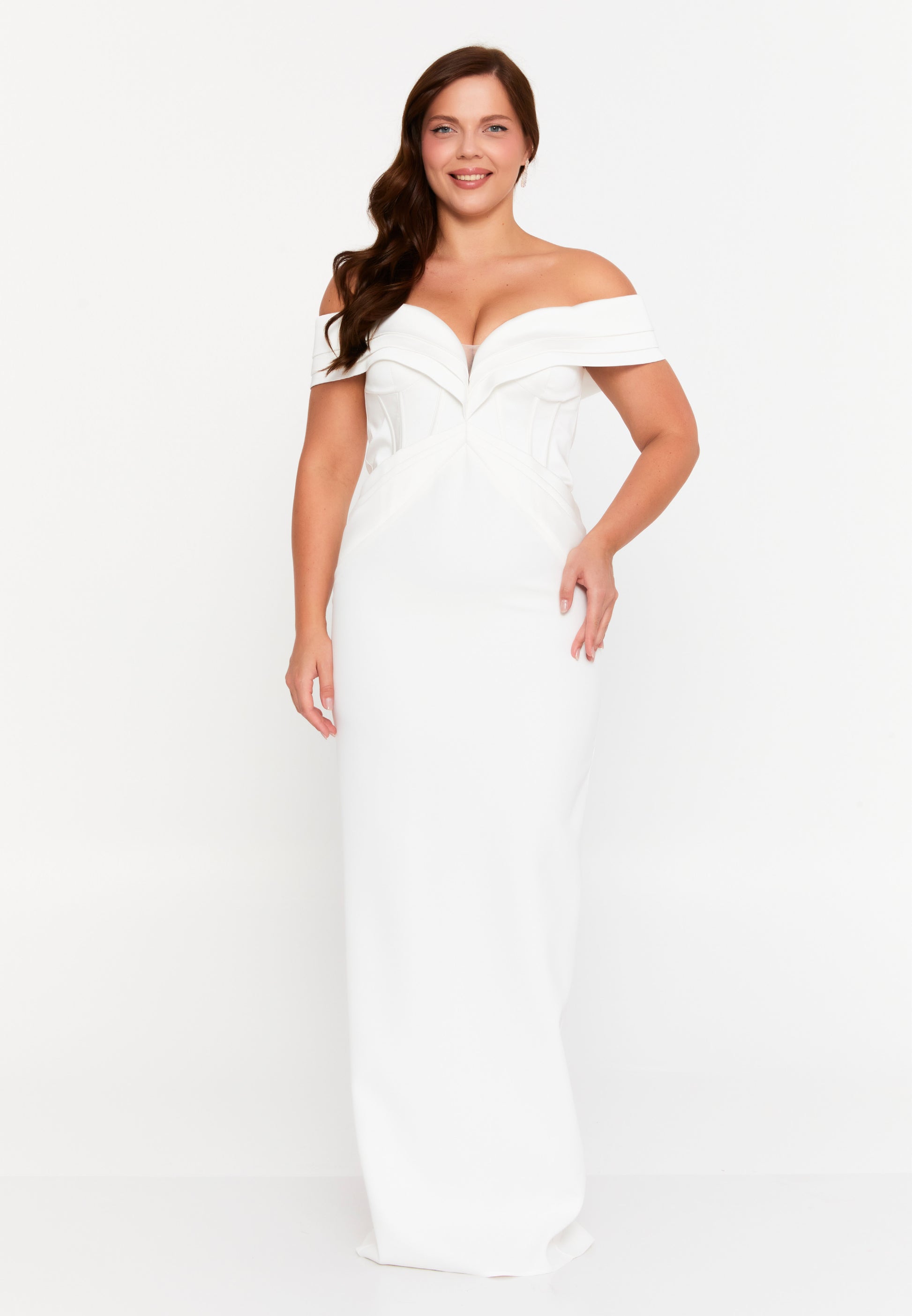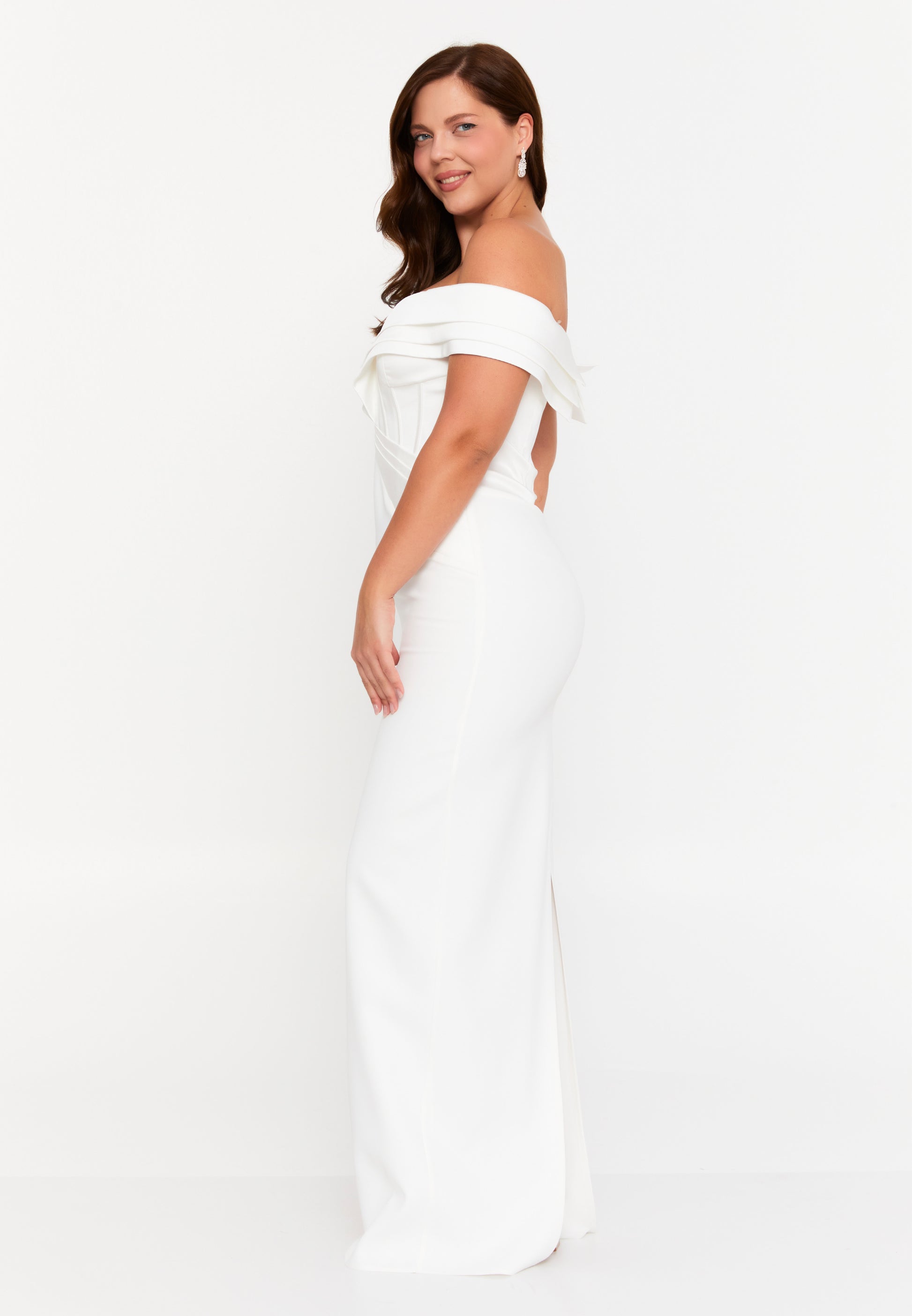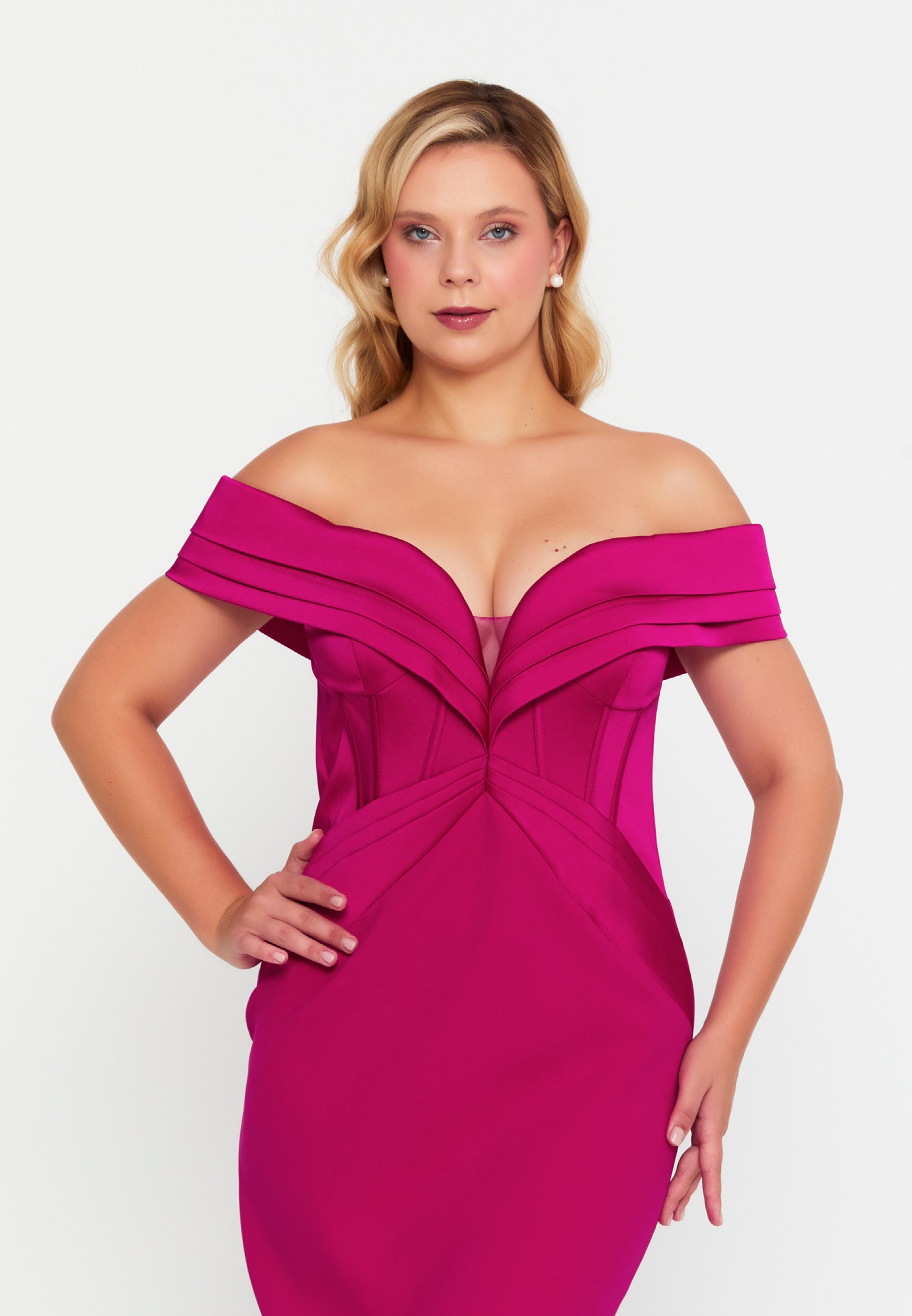 Off Shoulder Maxi Viscose Column Plus Size Evening Dress aal8016-1 Features