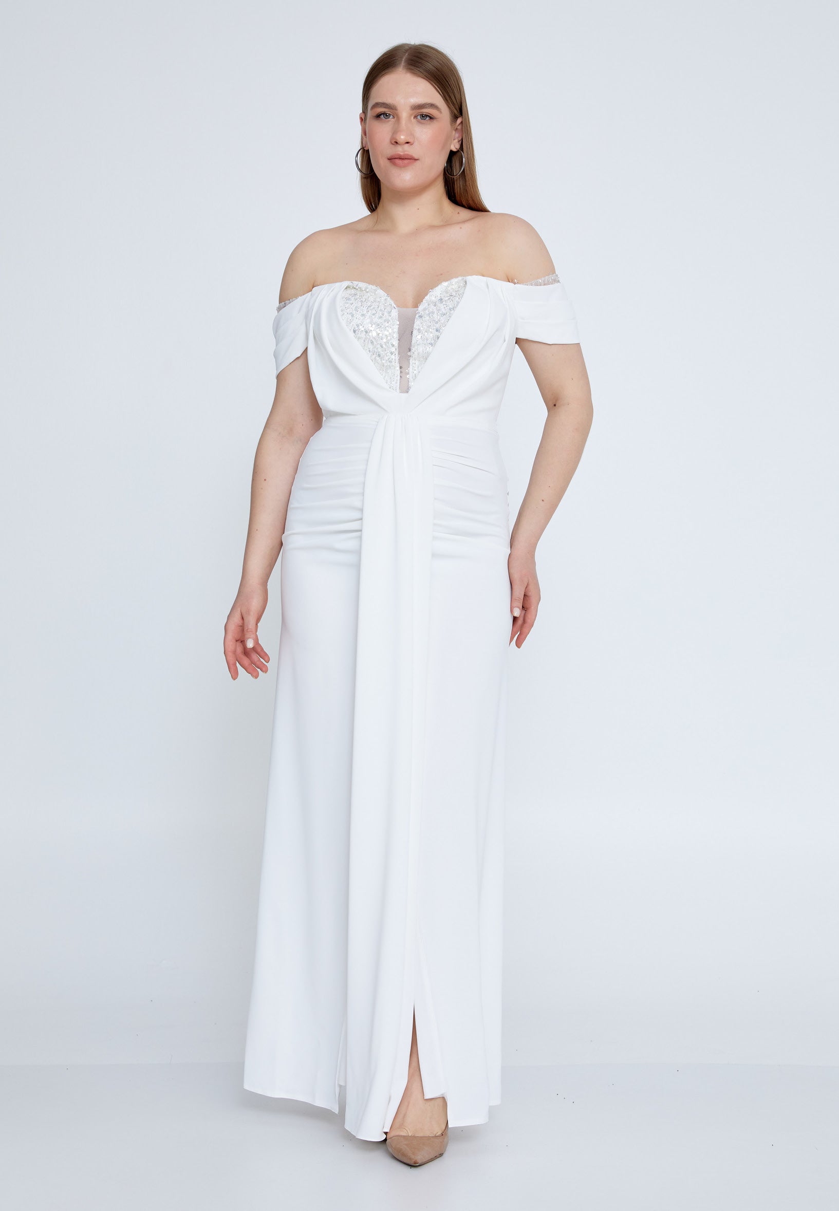 Off Shoulder Maxi Viscose Column Plus Size Wedding Guest Dress shwsw0019-1
