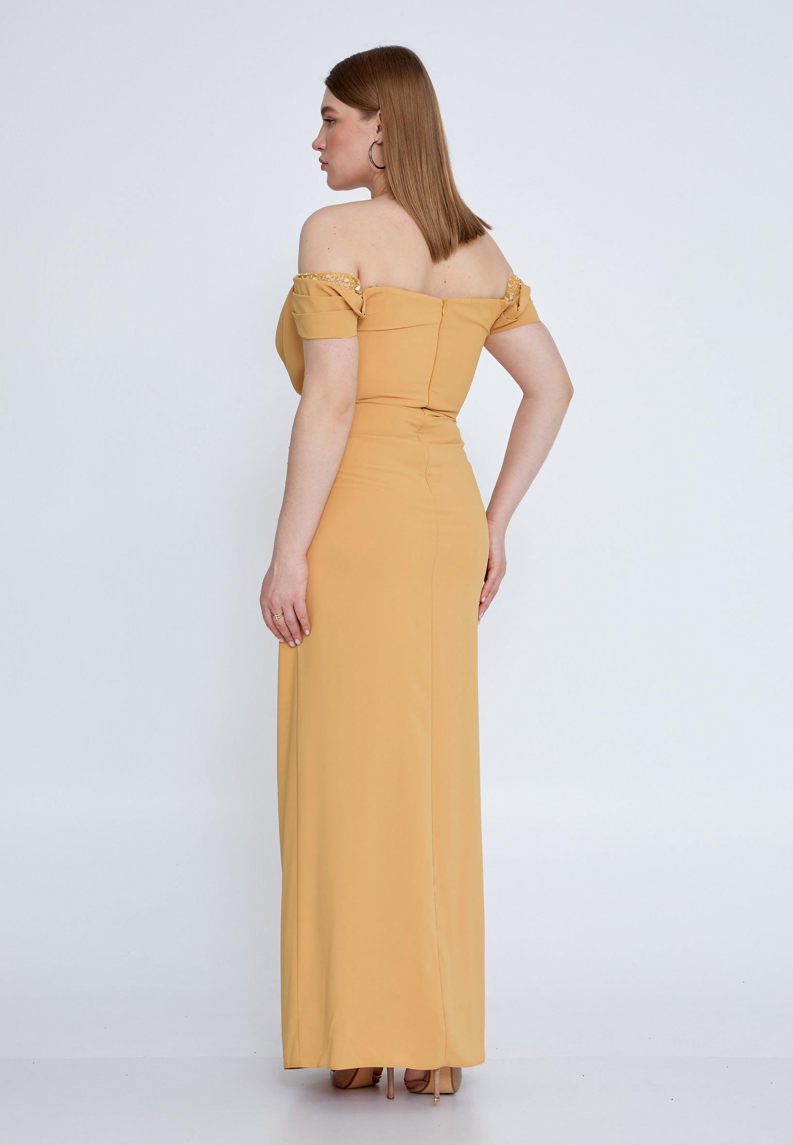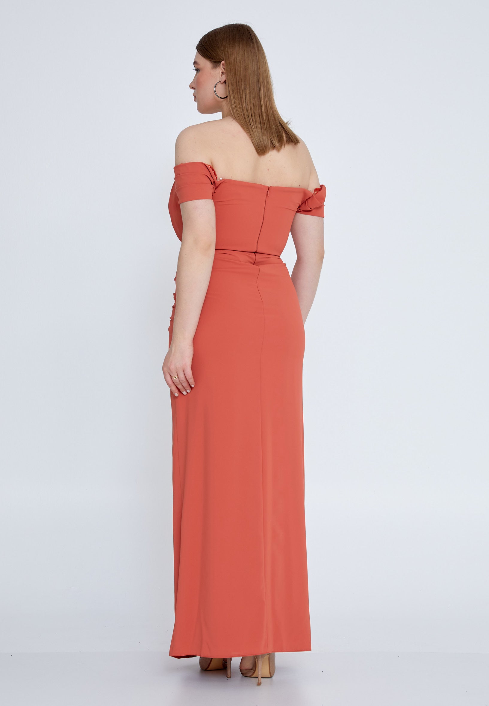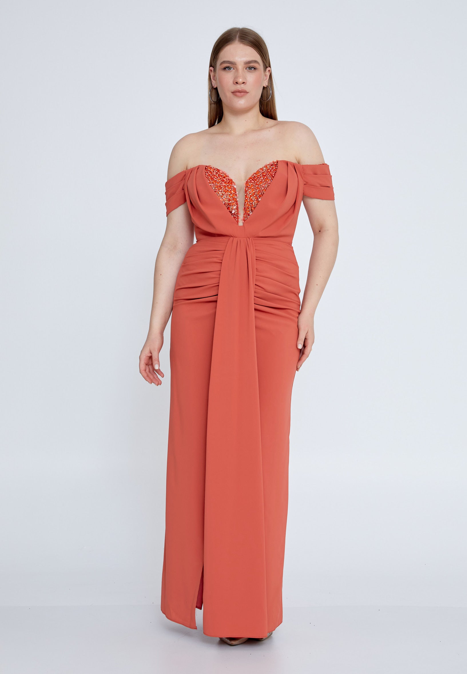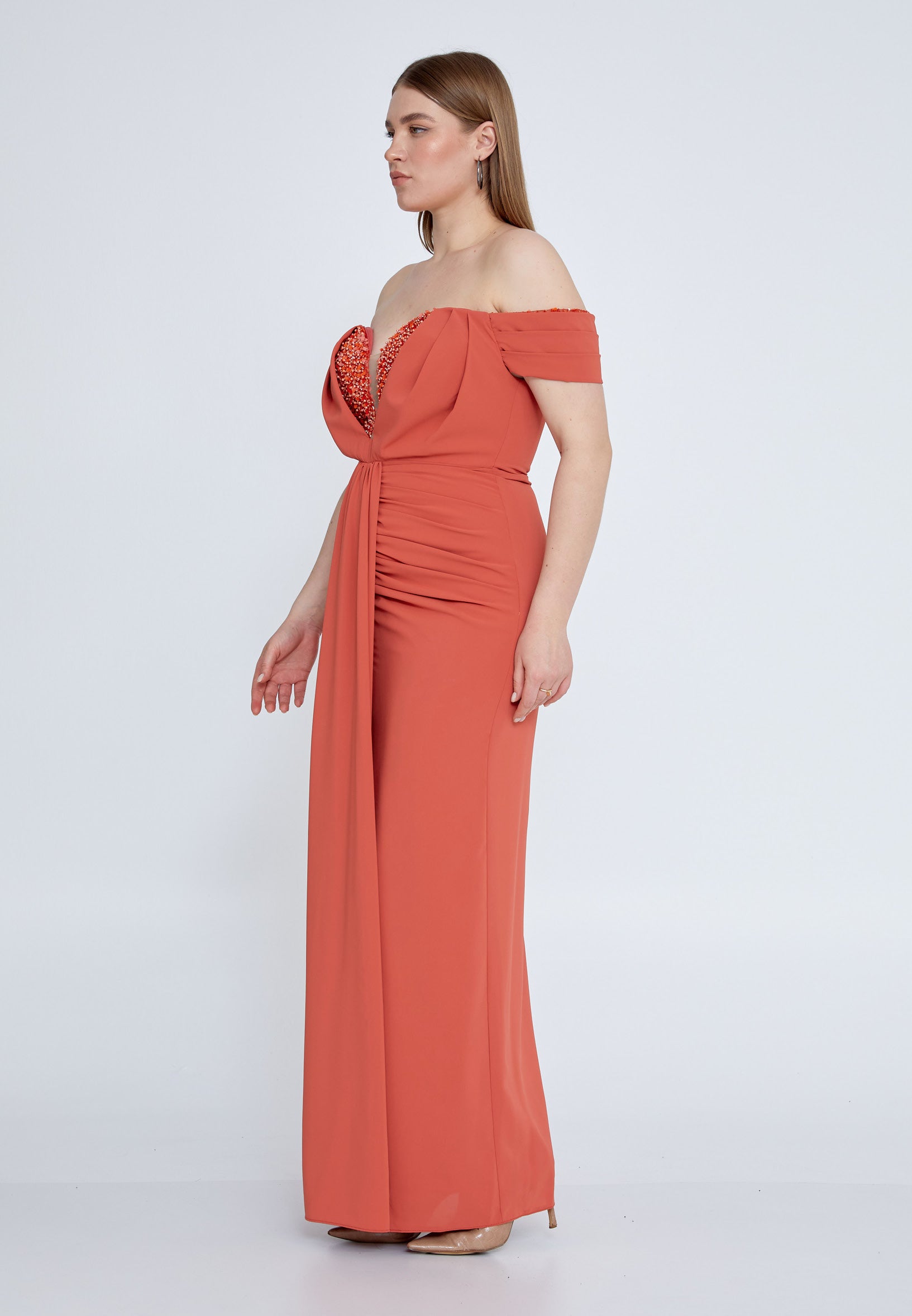 Off Shoulder Maxi Viscose Column Plus Size Wedding Guest Dress shwsw0019-1 Features
