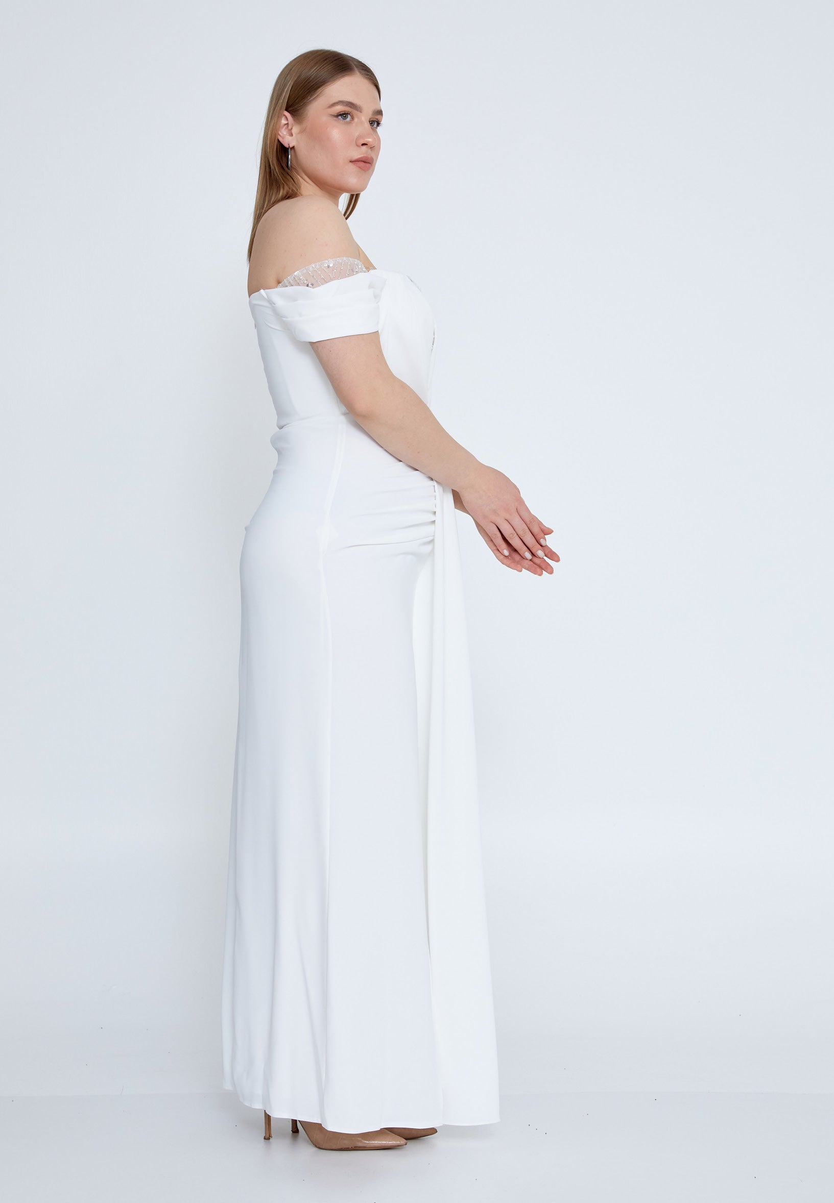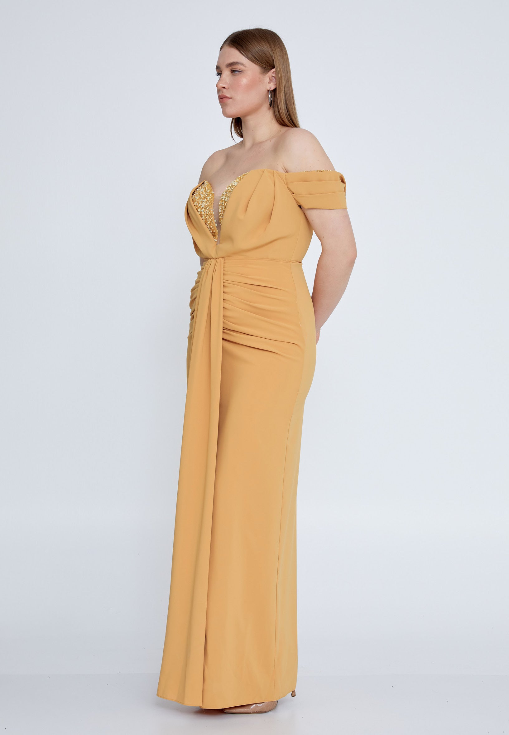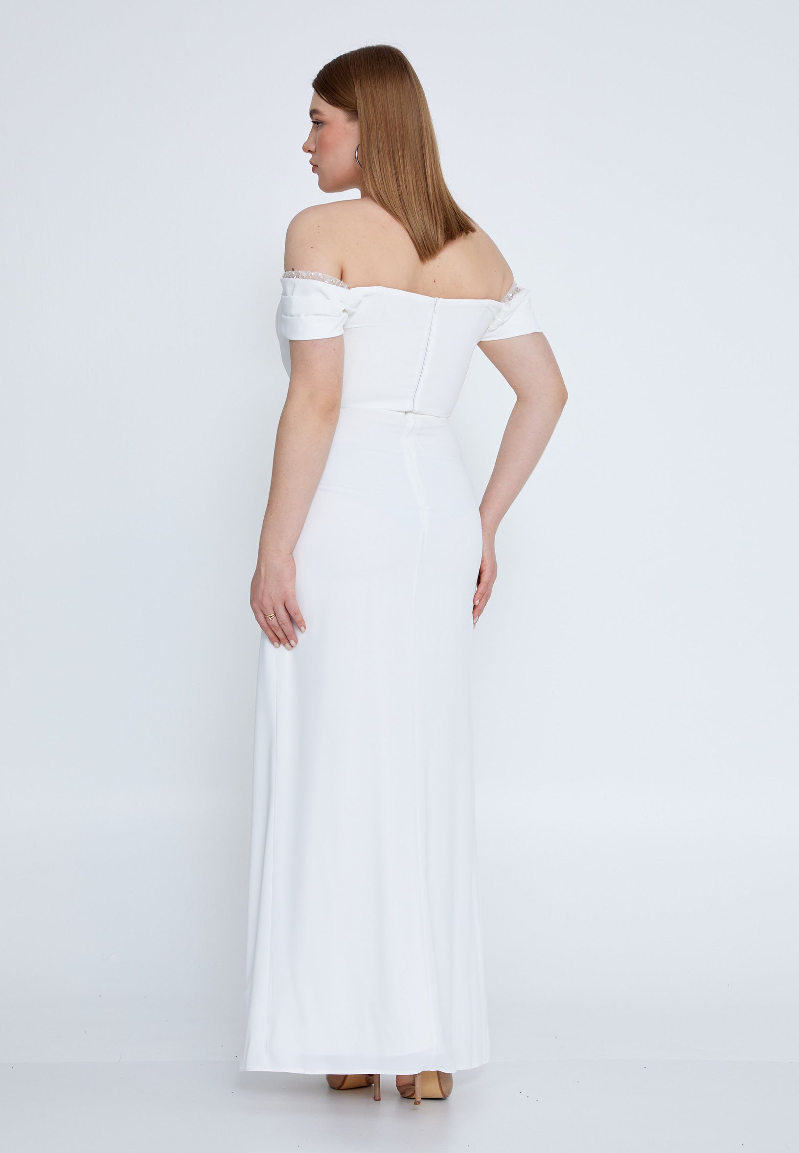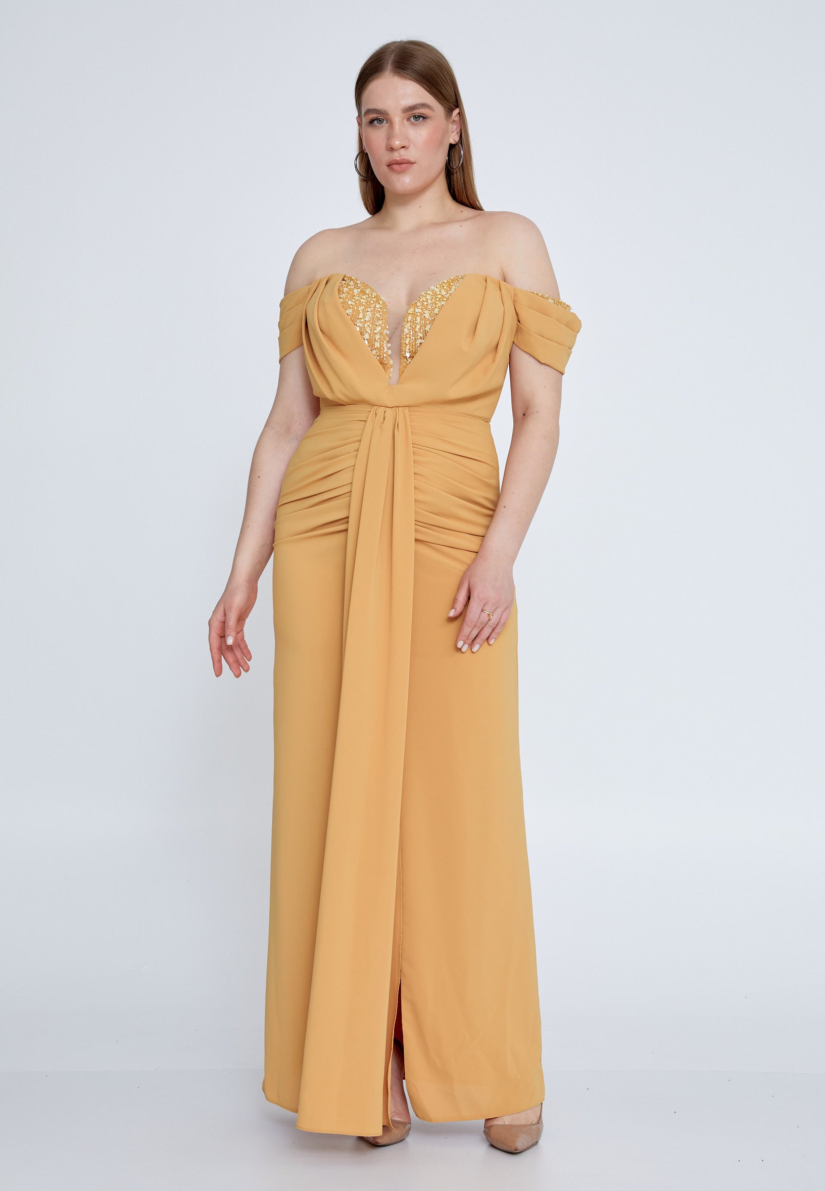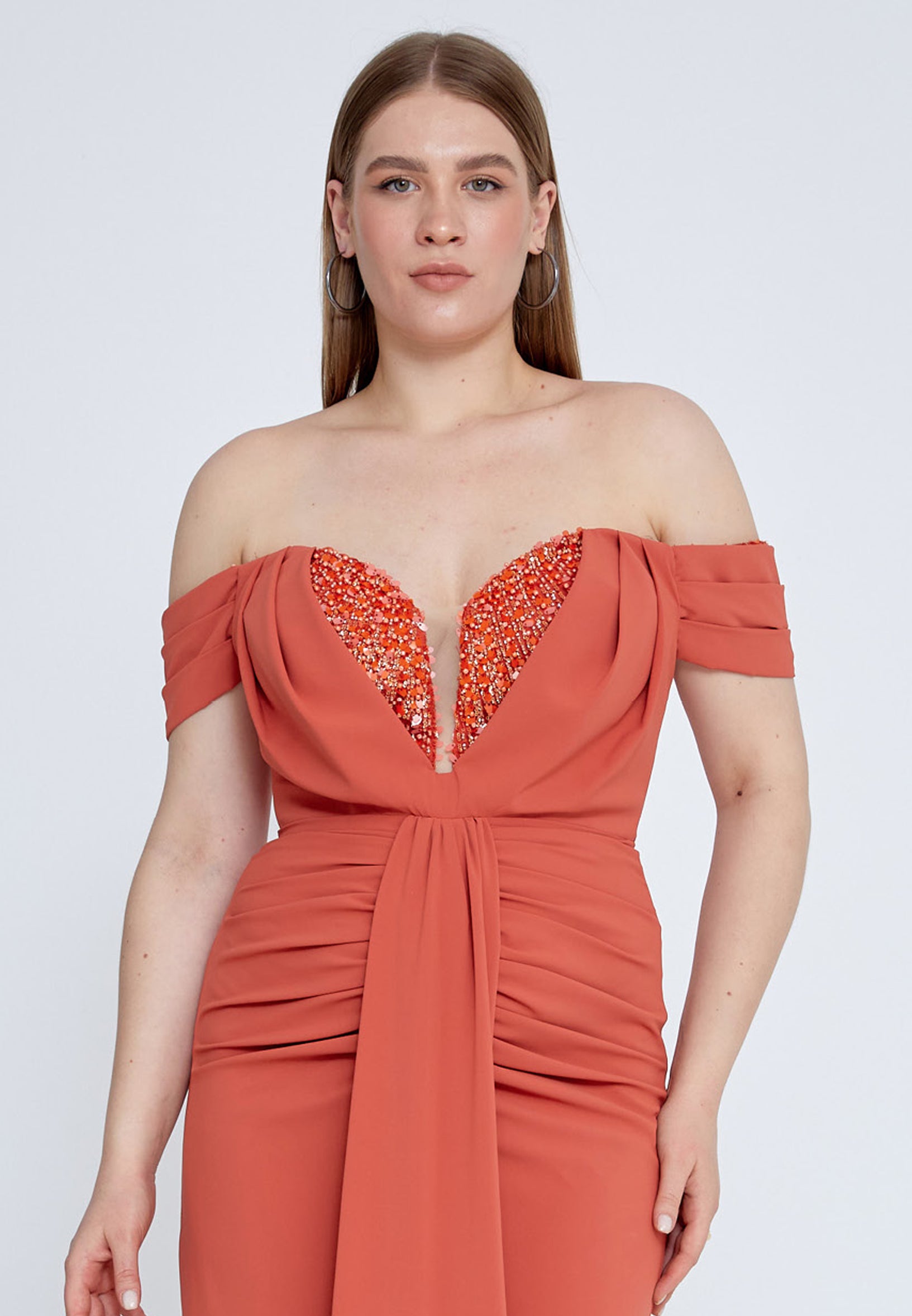 Off Shoulder Maxi Viscose Column Plus Size Wedding Guest Dress shwsw0019-1 Features