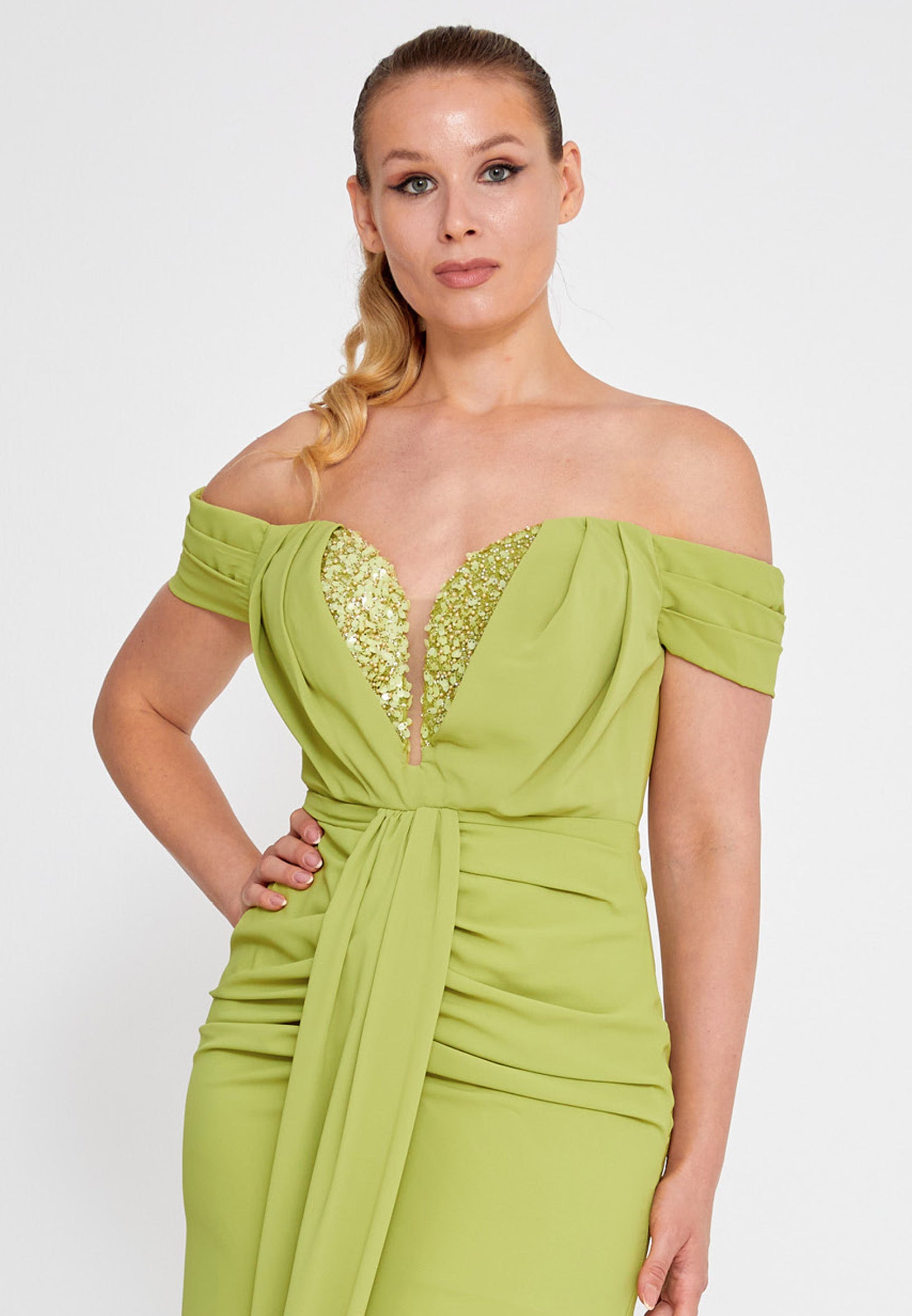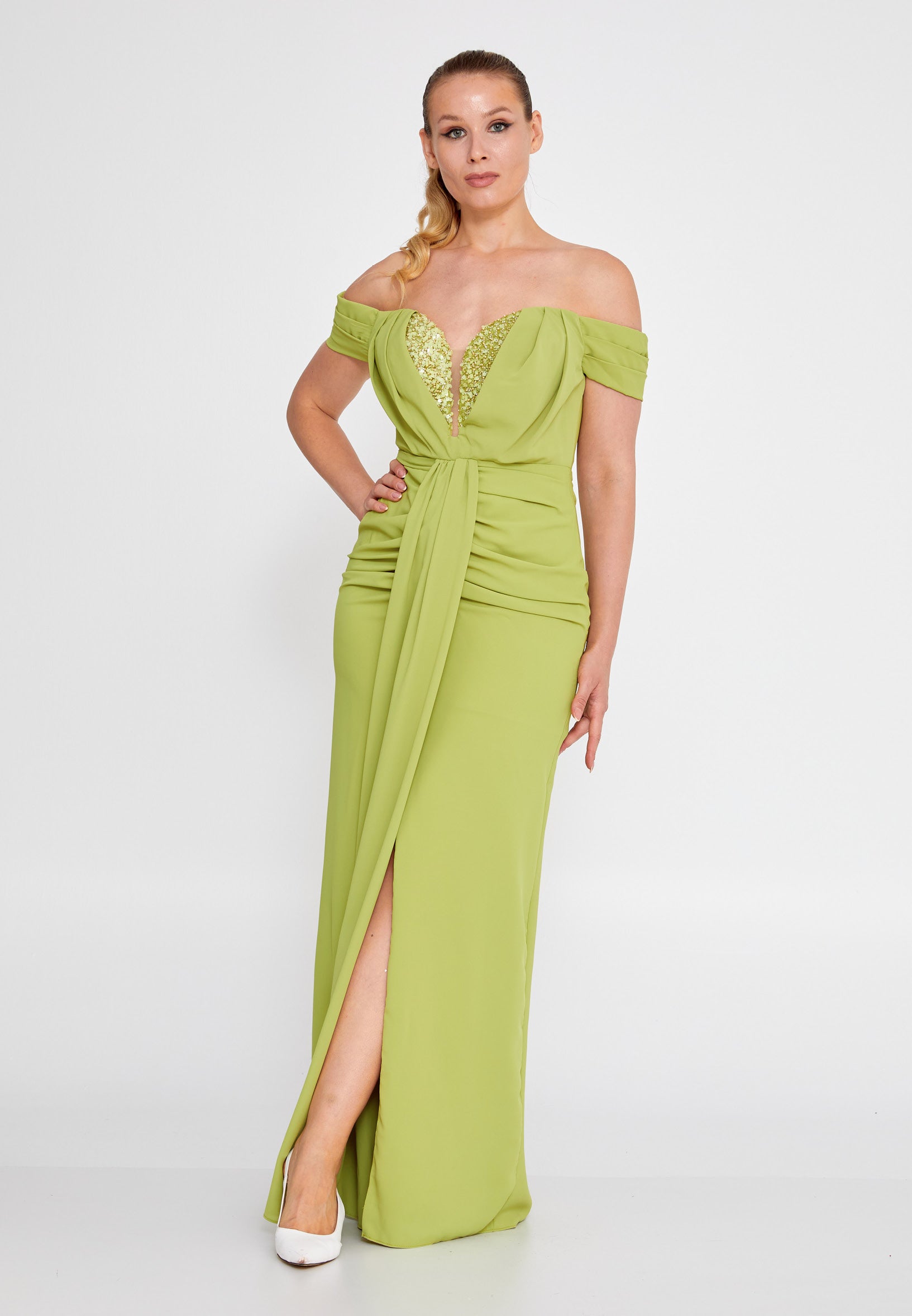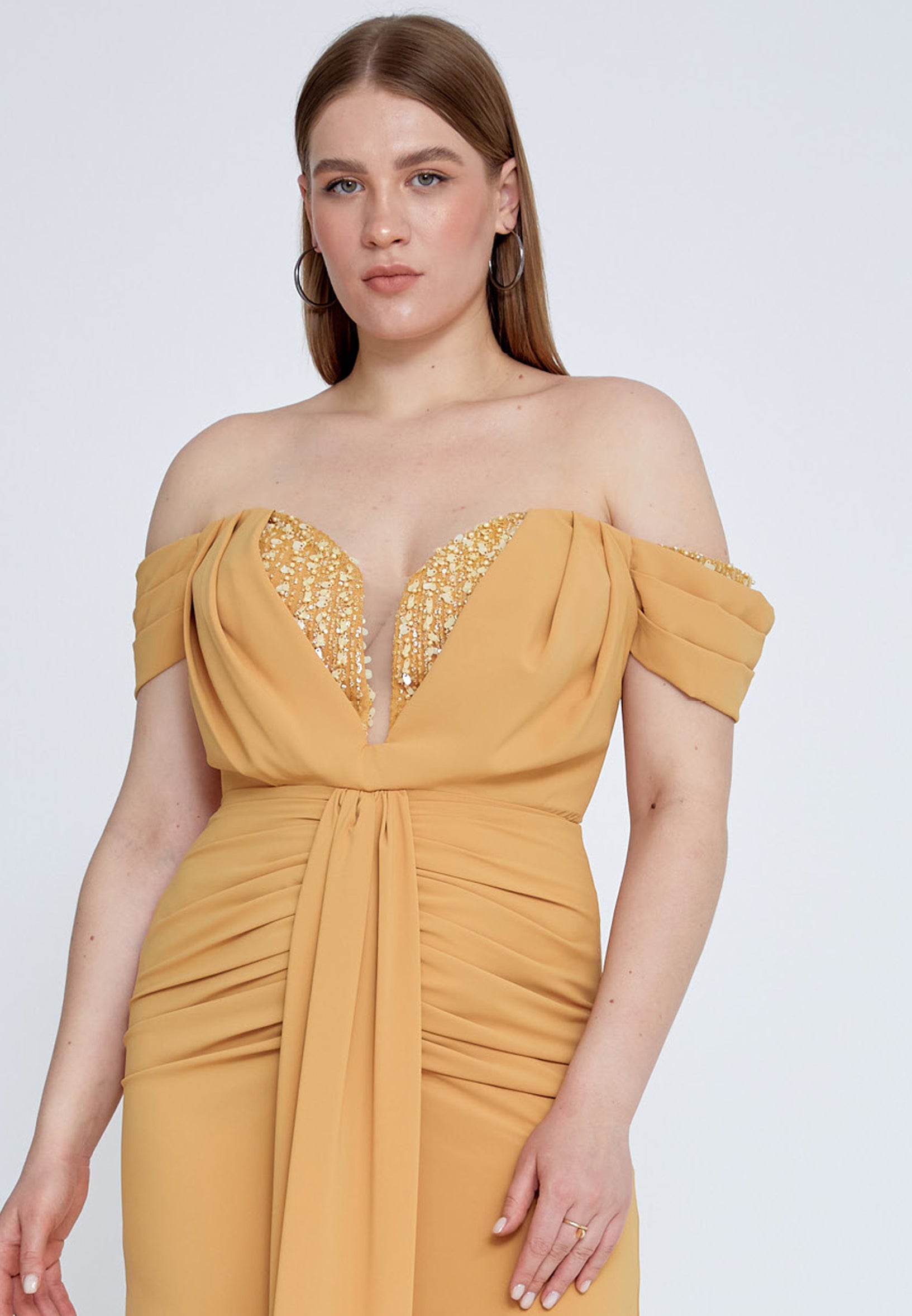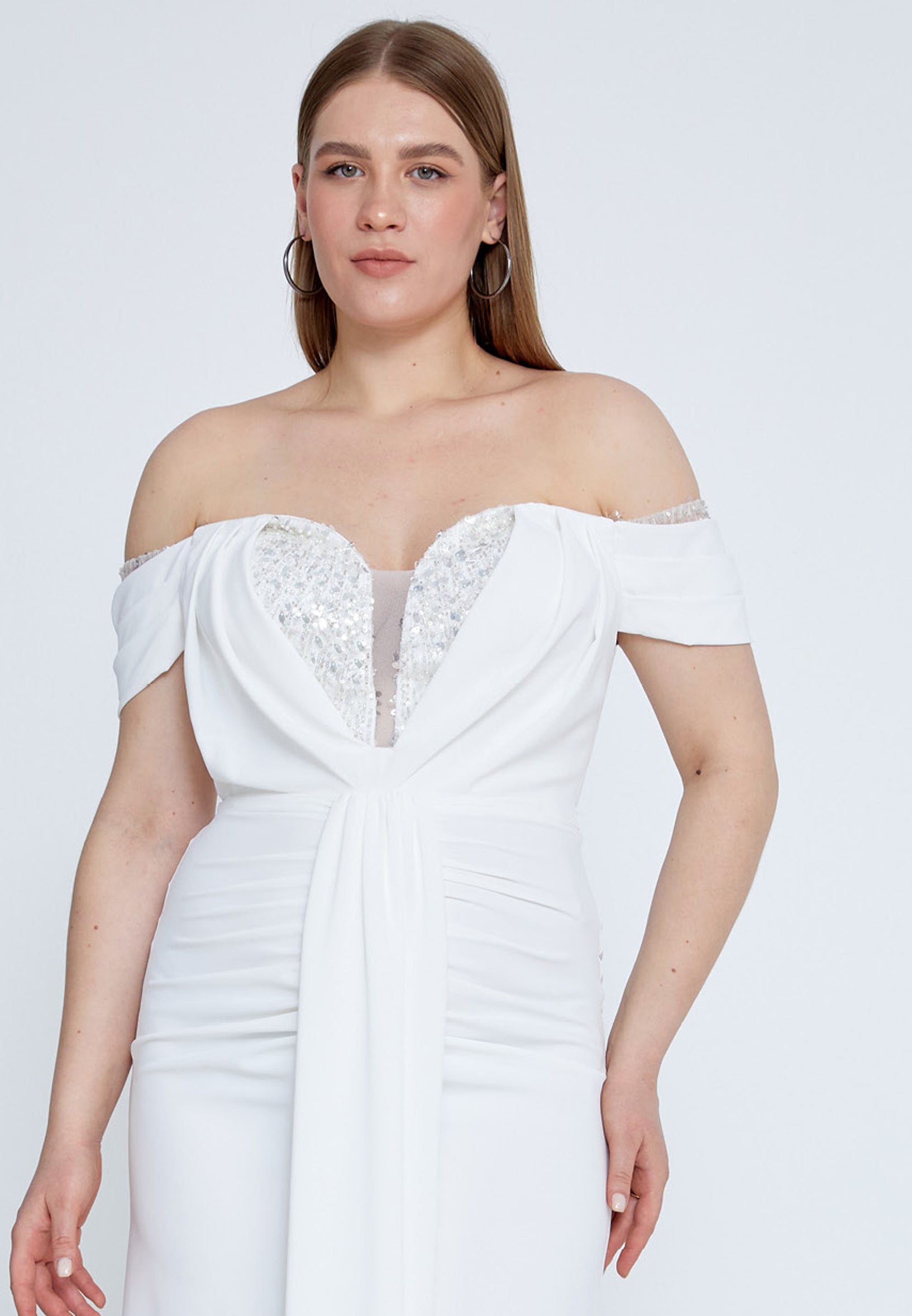 Off Shoulder Maxi Viscose Column Plus Size Wedding Guest Dress shwsw0019-1 Features