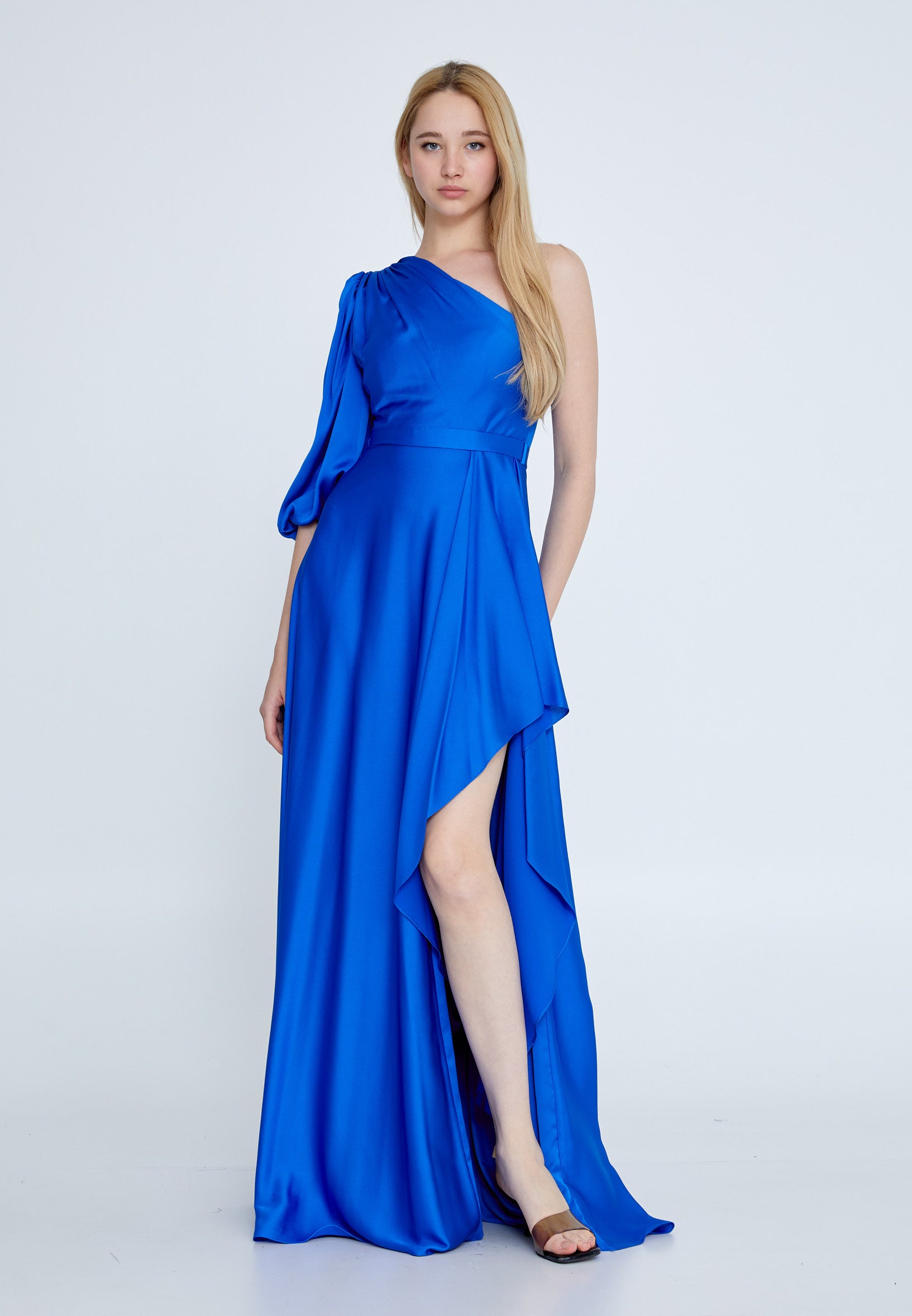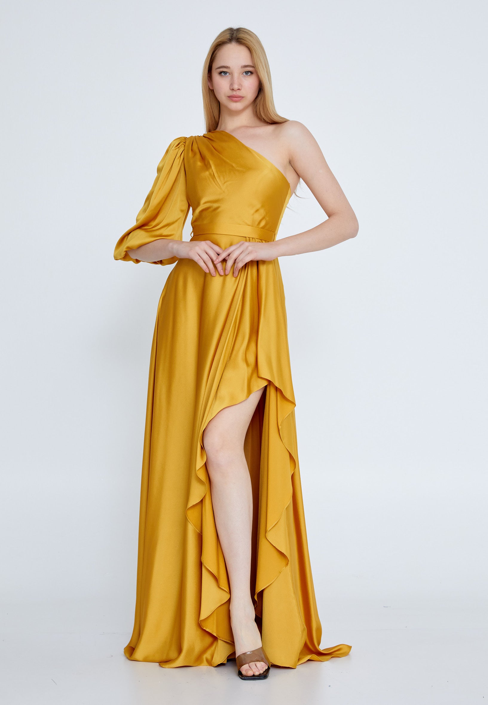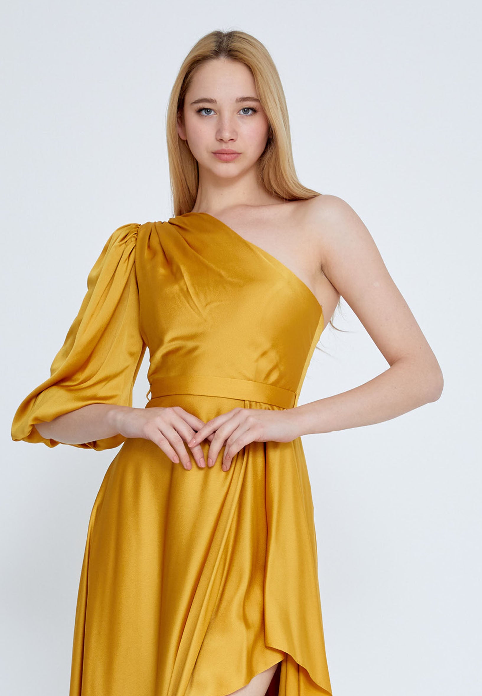 One Shoulder Maxi Polyester Column Regular Wedding Guest Dress max5867sat Features