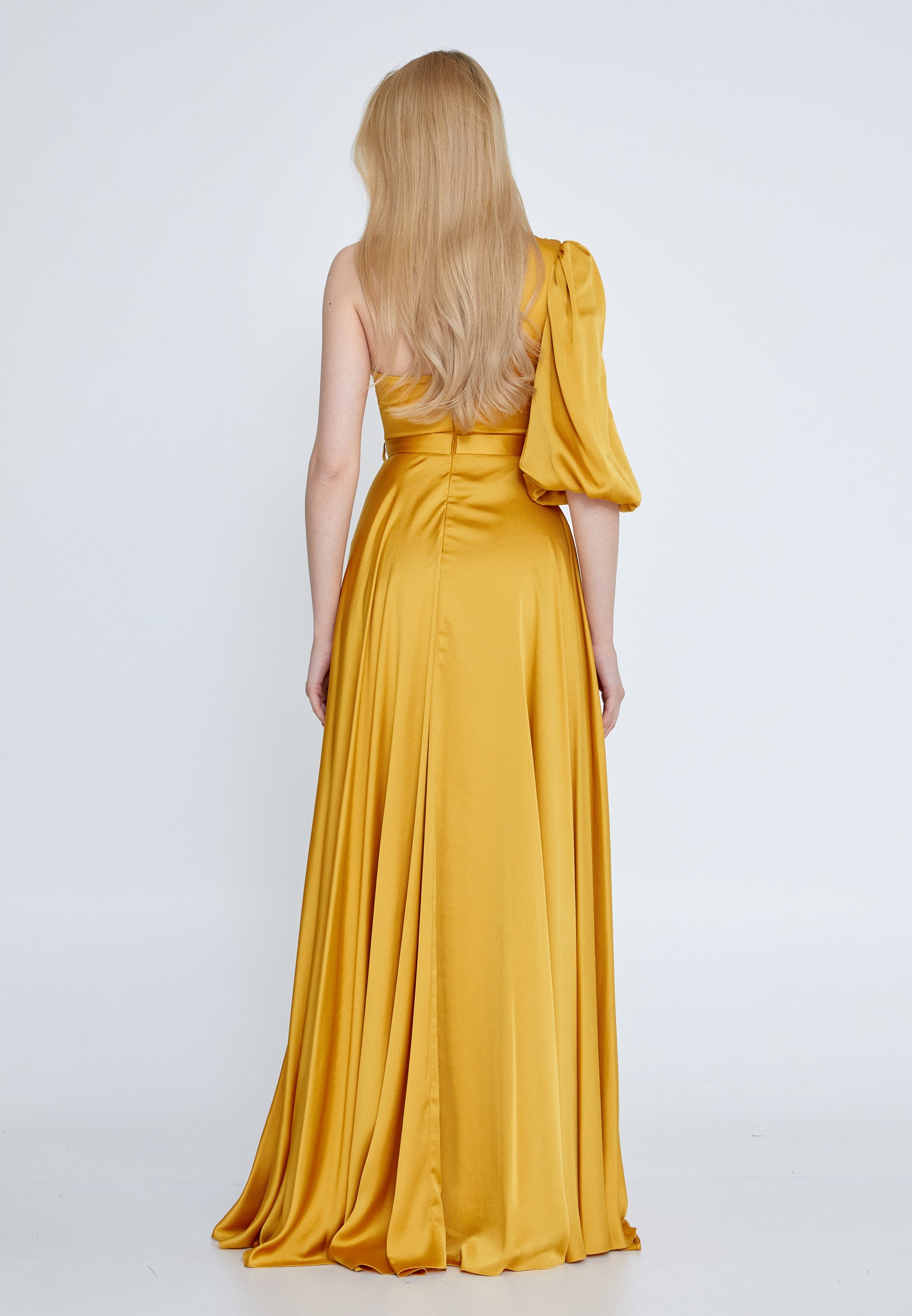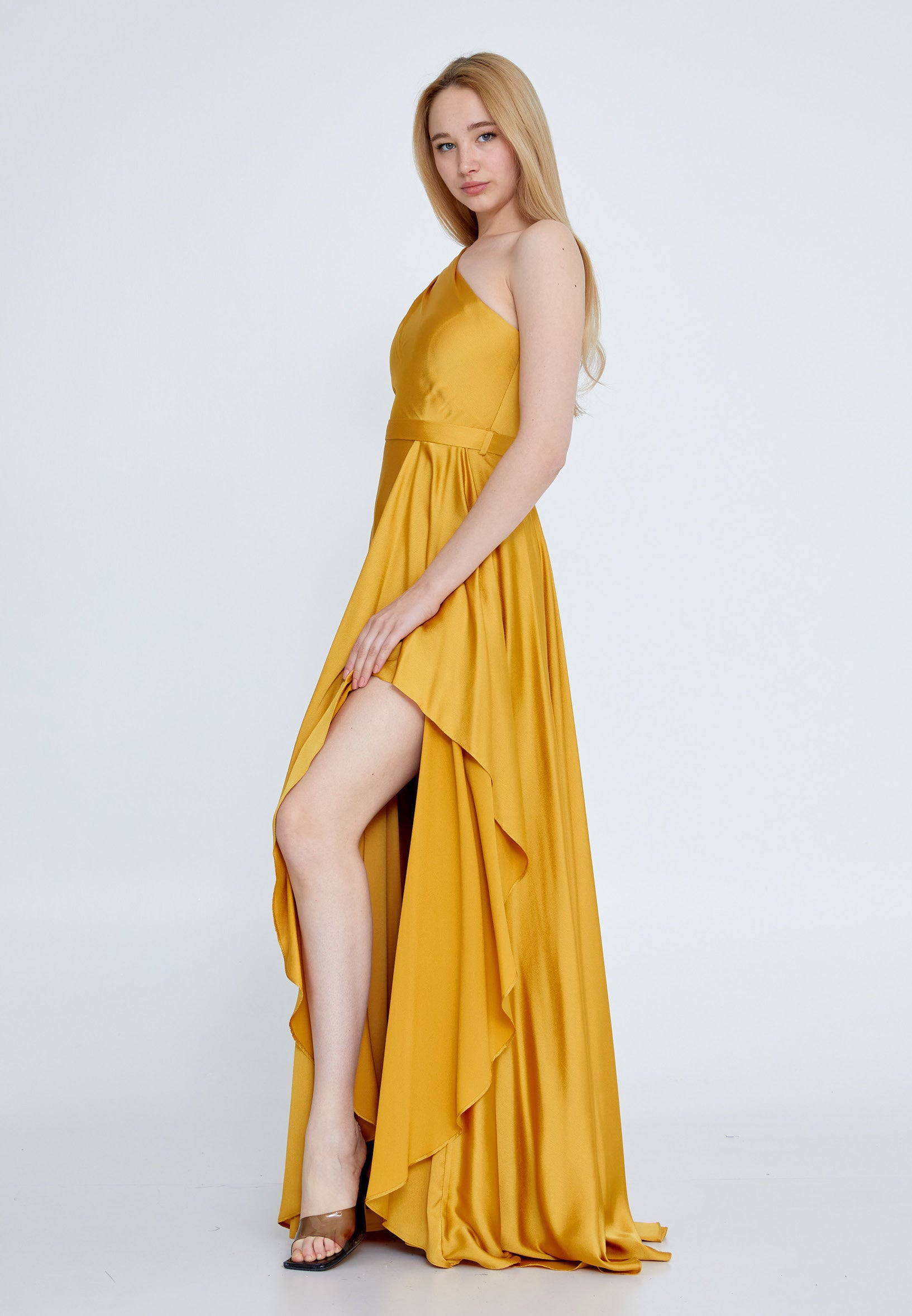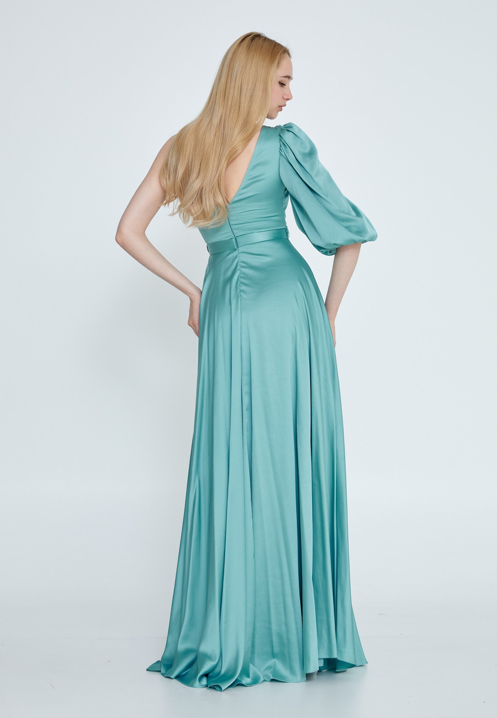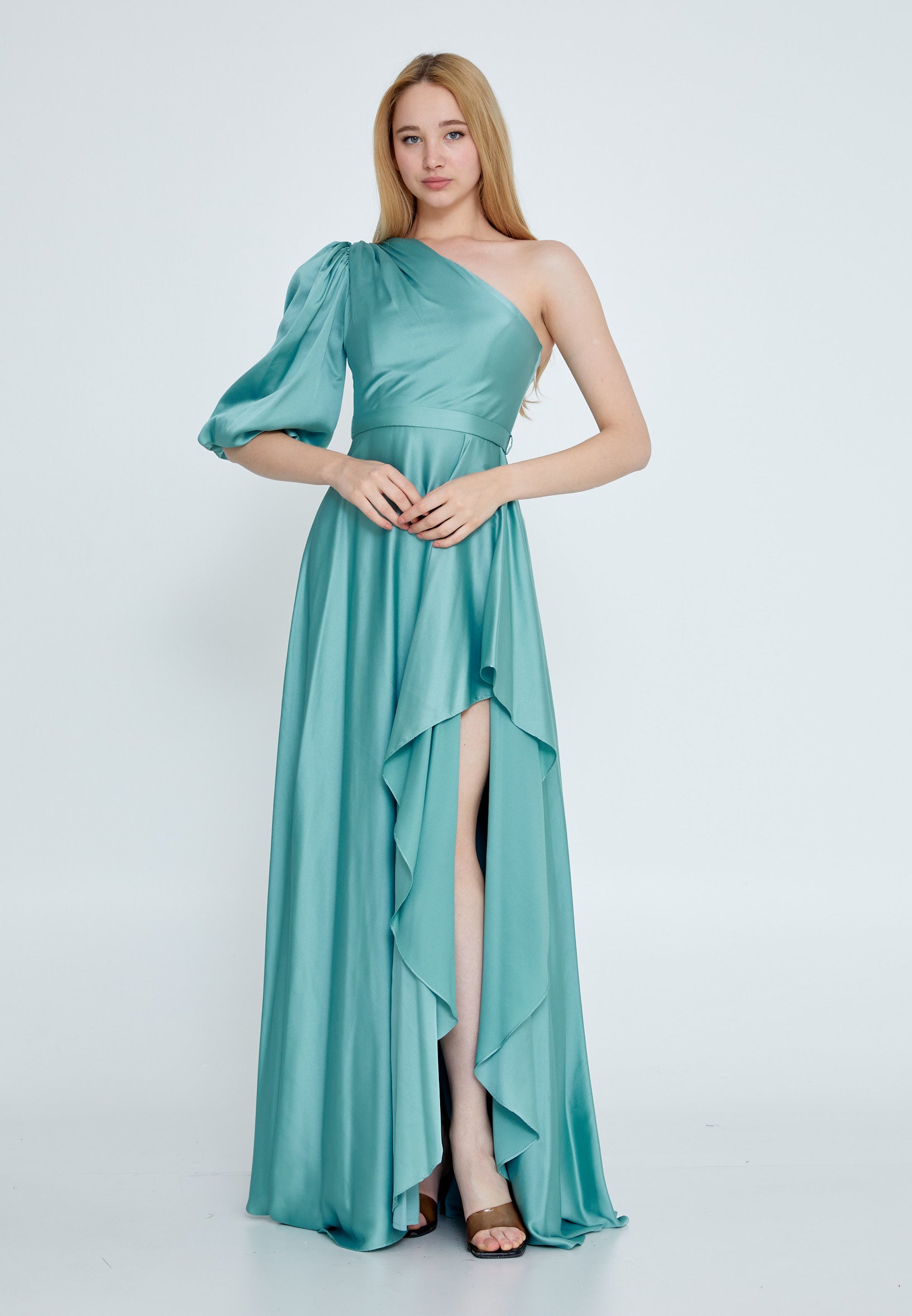 One Shoulder Maxi Polyester Column Regular Wedding Guest Dress max5867sat Features