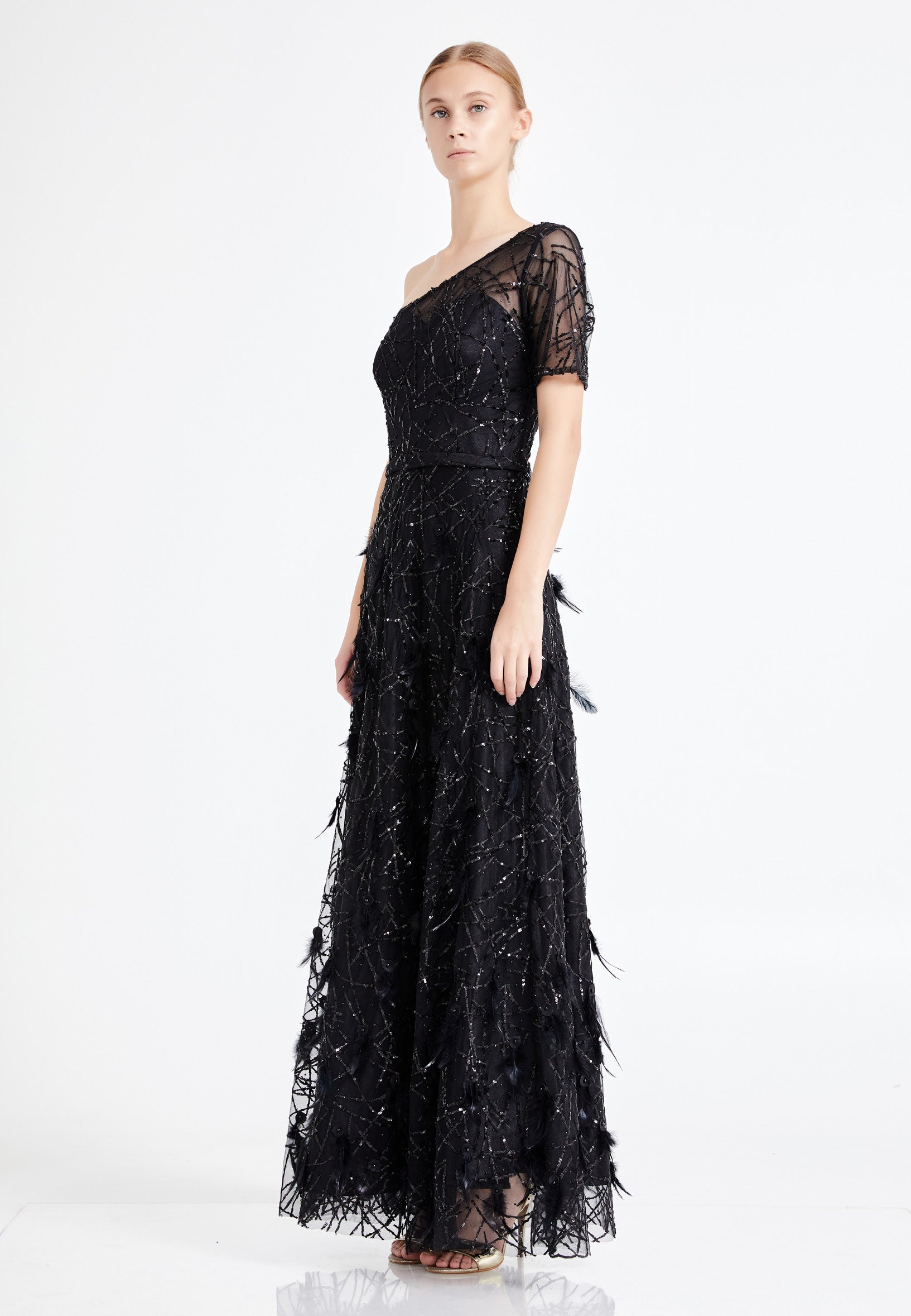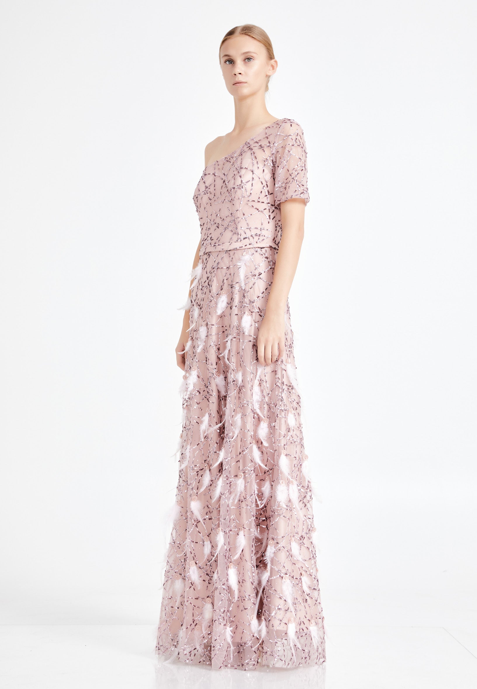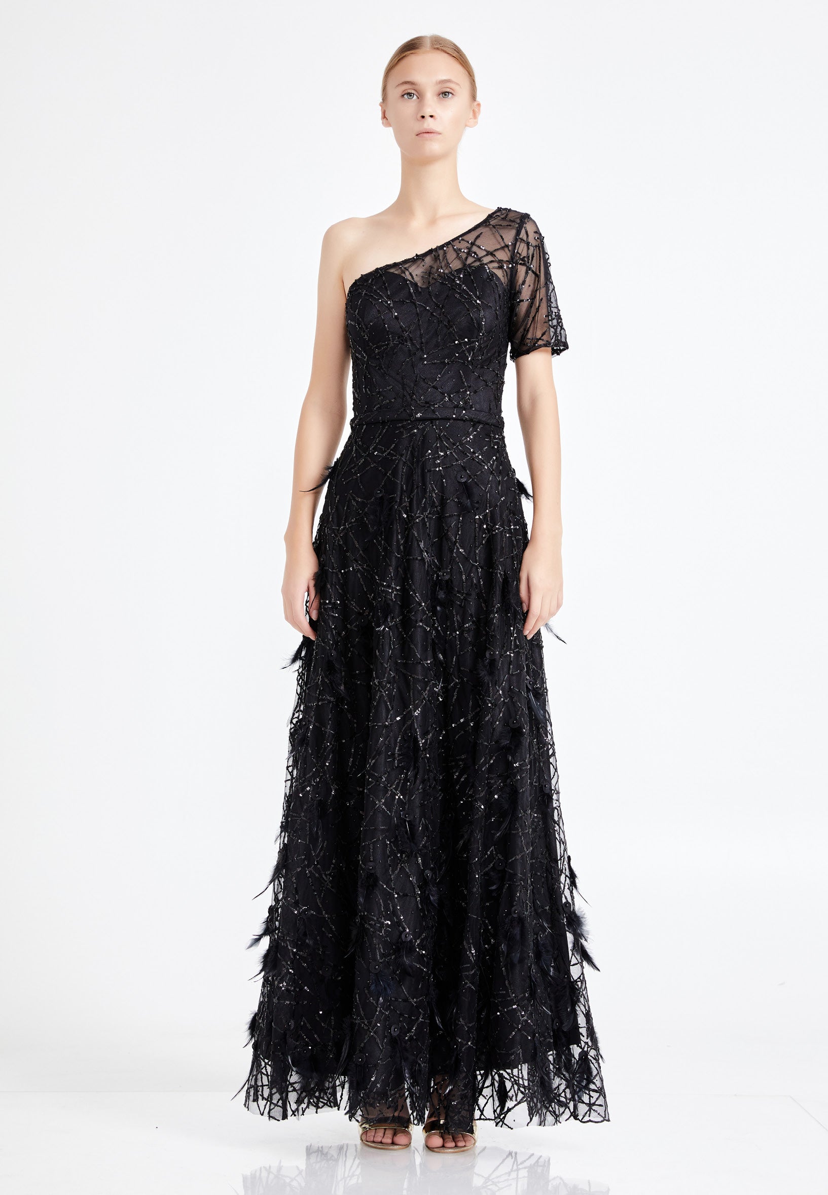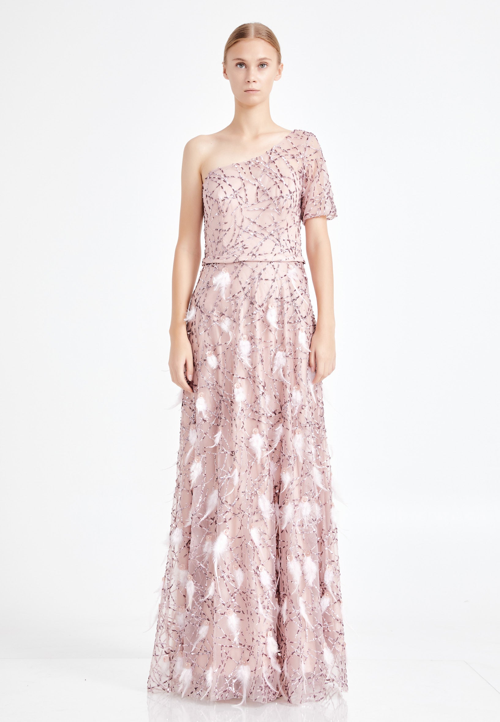 One Shoulder Maxi Sequin A - Line Regular Prom Dress rmn2698-1