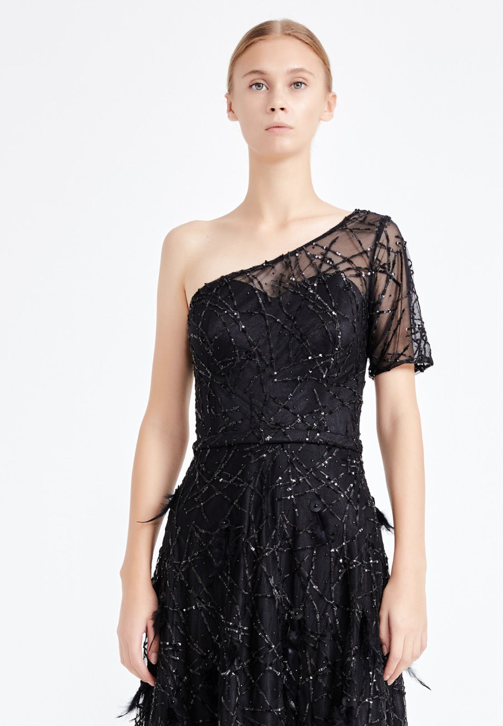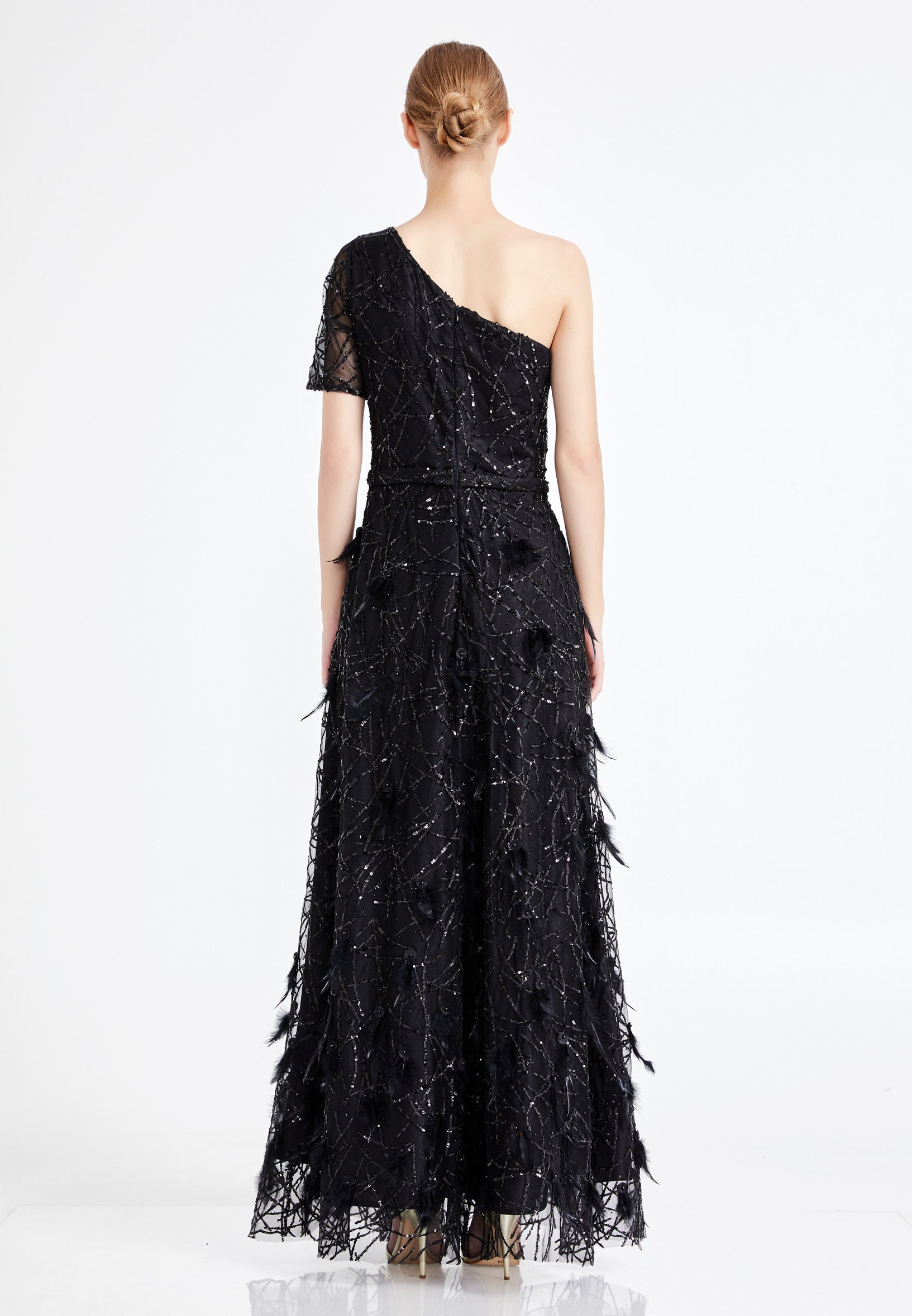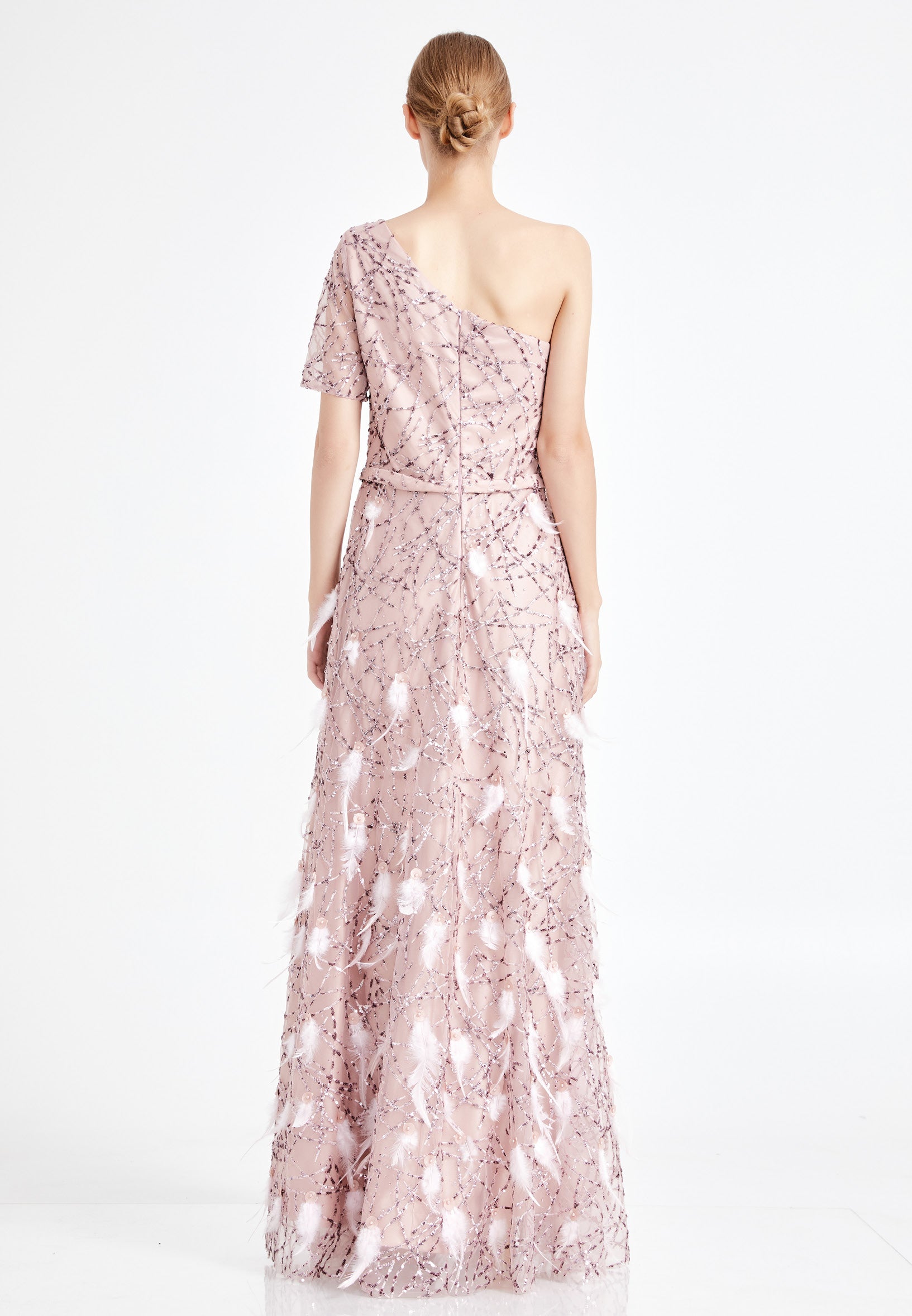 One Shoulder Maxi Sequin A - Line Regular Prom Dress rmn2698-1 Features
