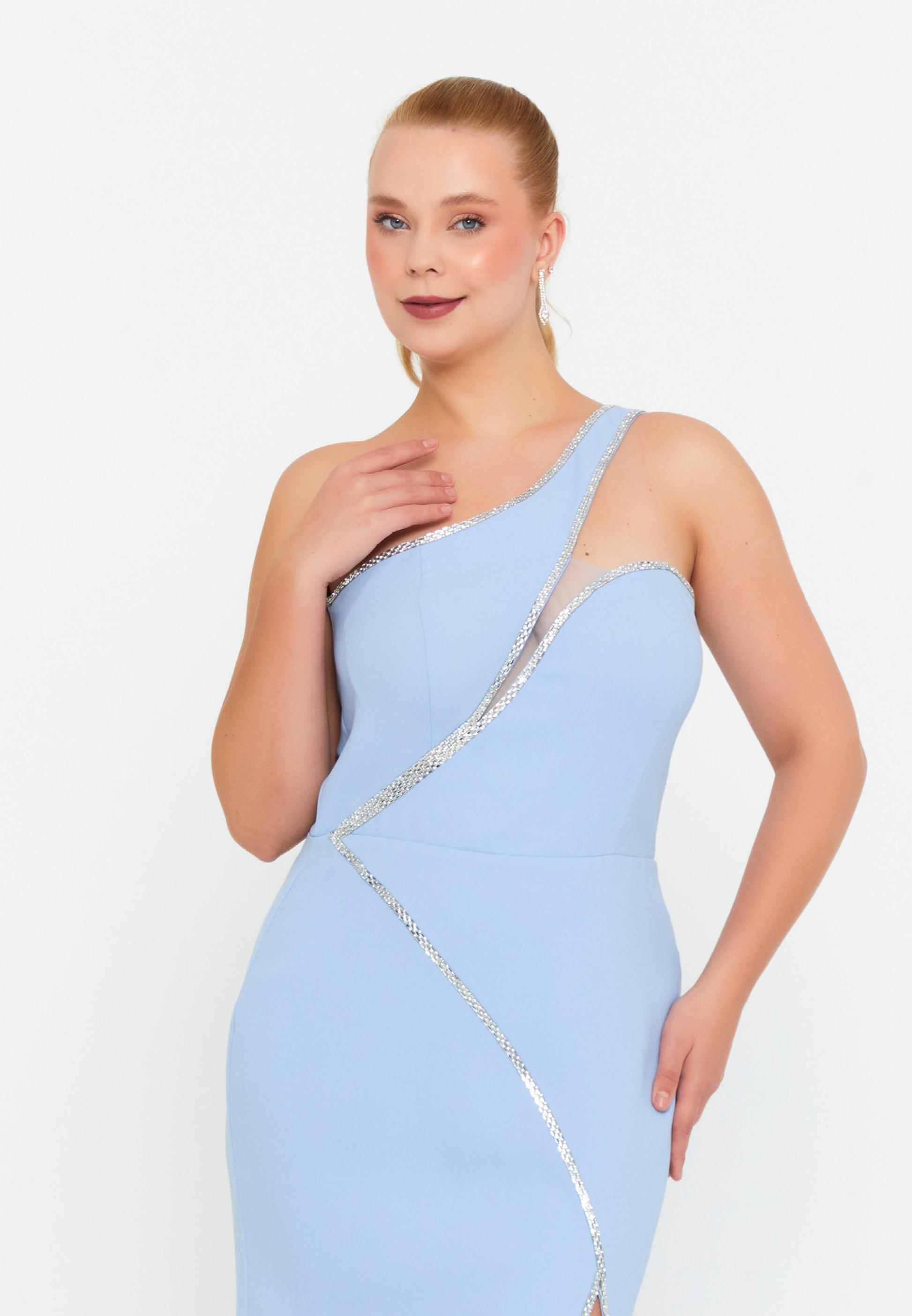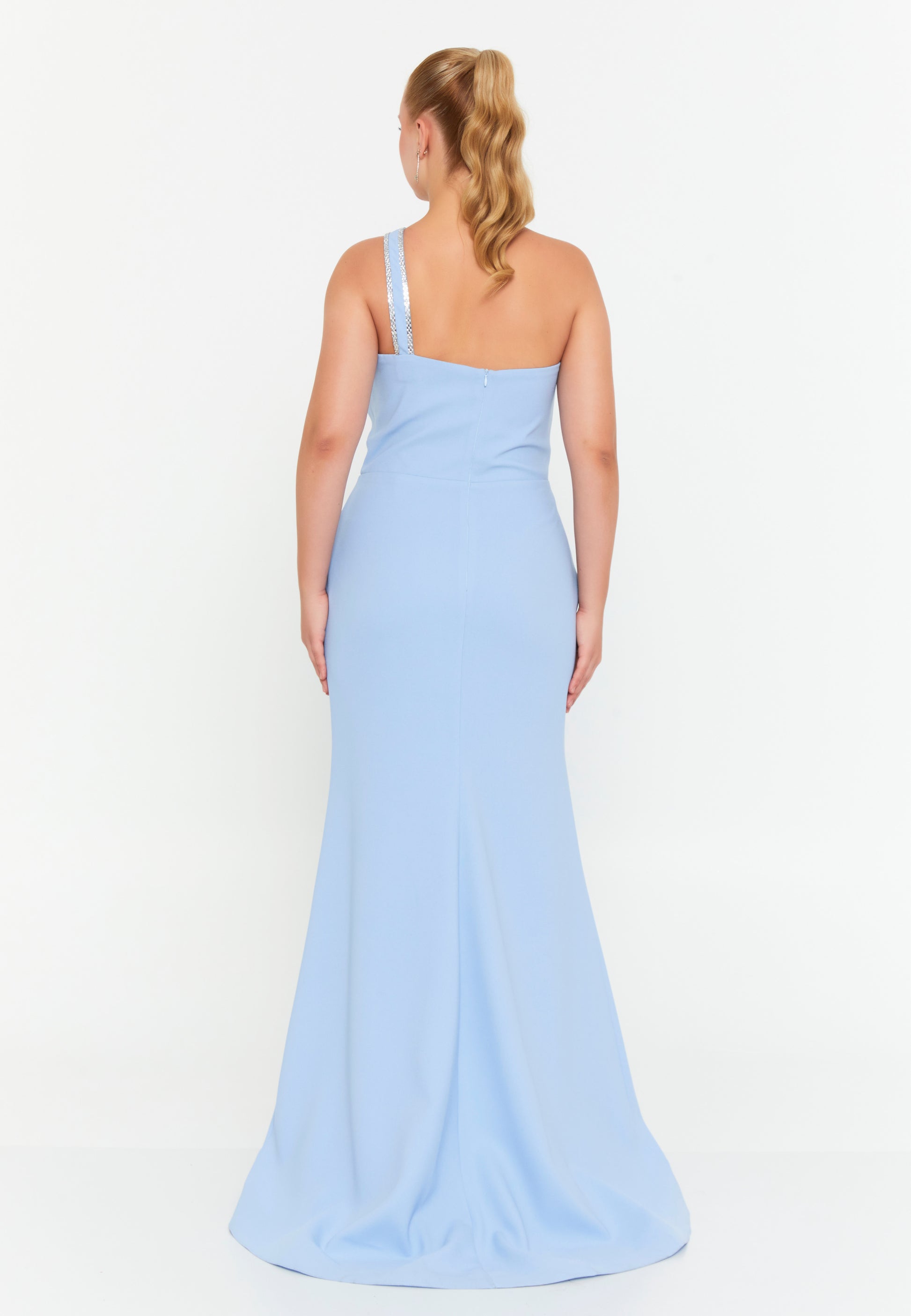 One Shoulder Maxi Viscose Mermaid Plus Size Wedding Guest Dress aal8008-b