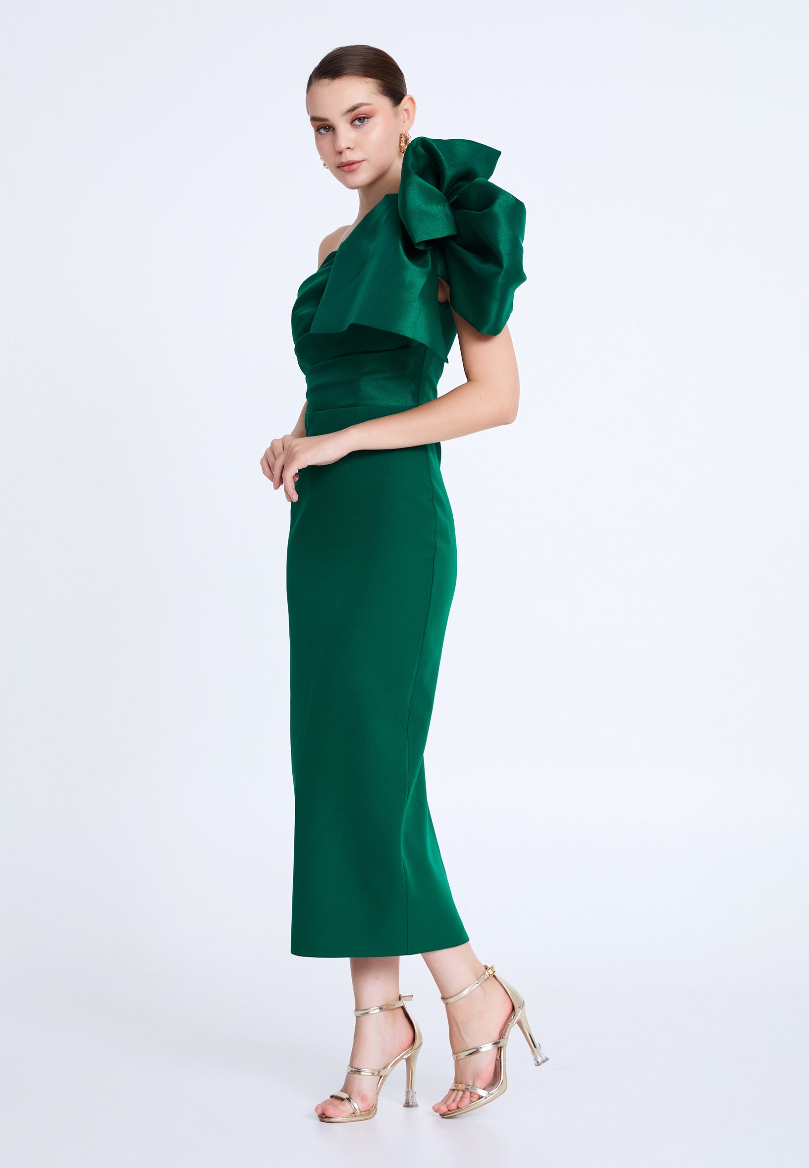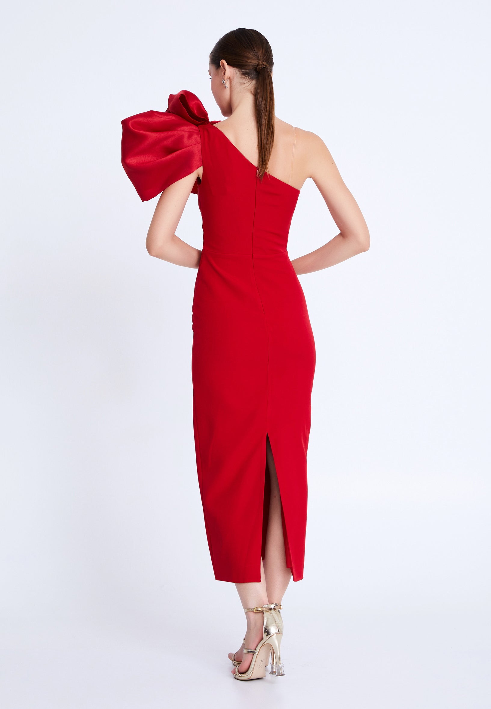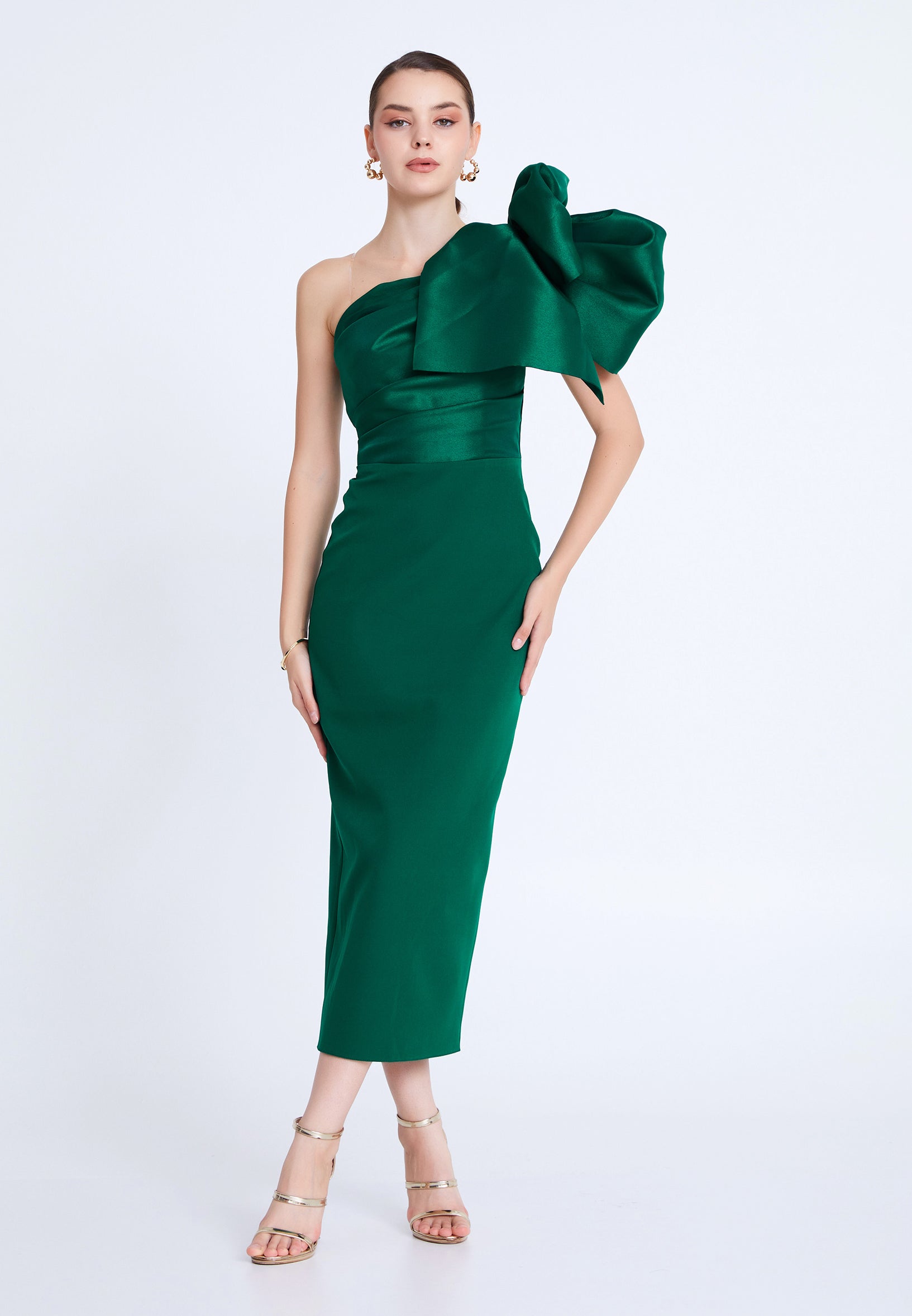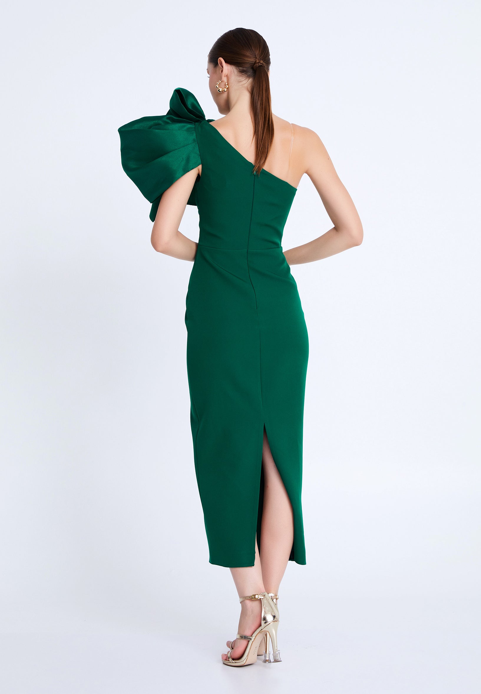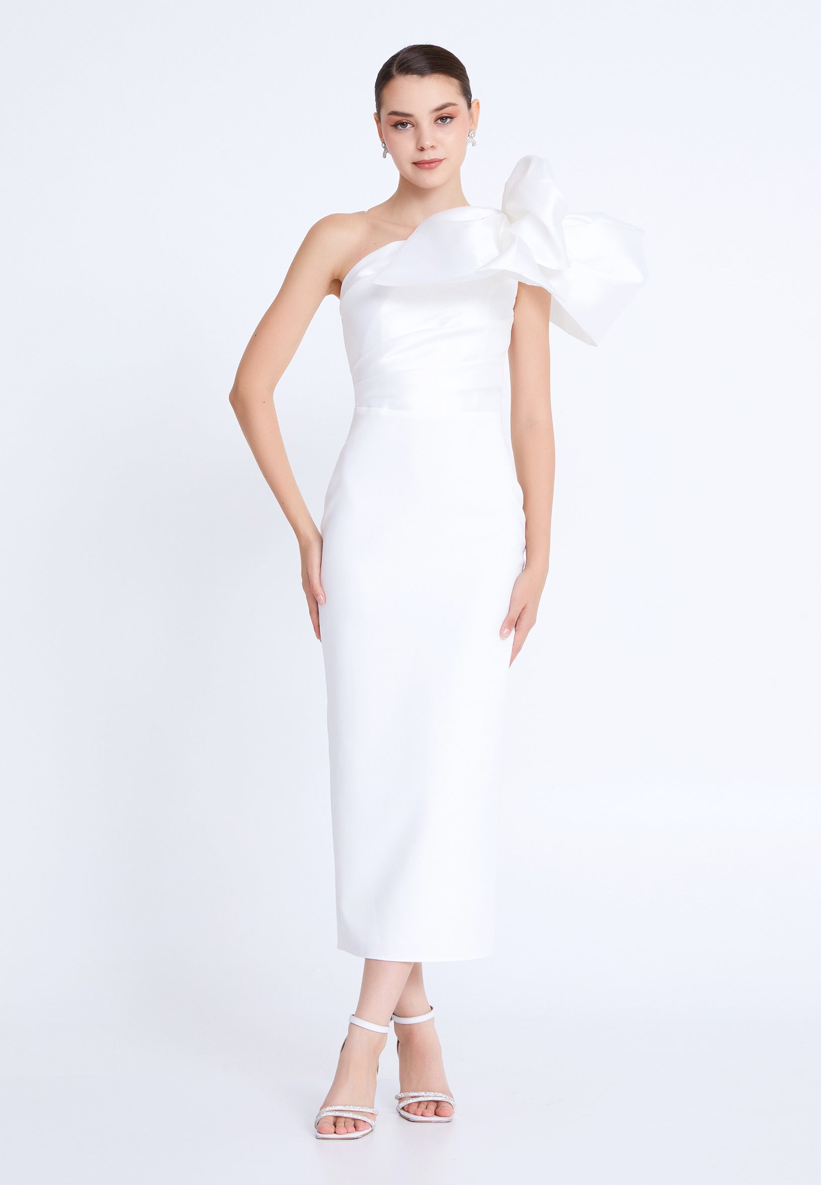 One Shoulder Midi Viscose Column Regular Evening Dress hot8423