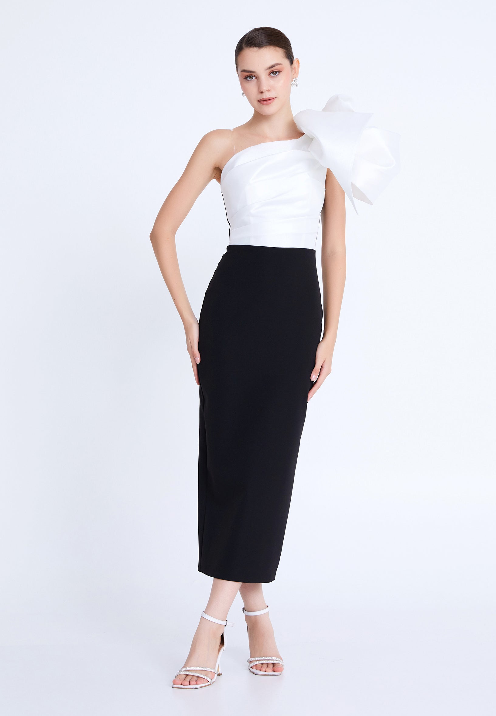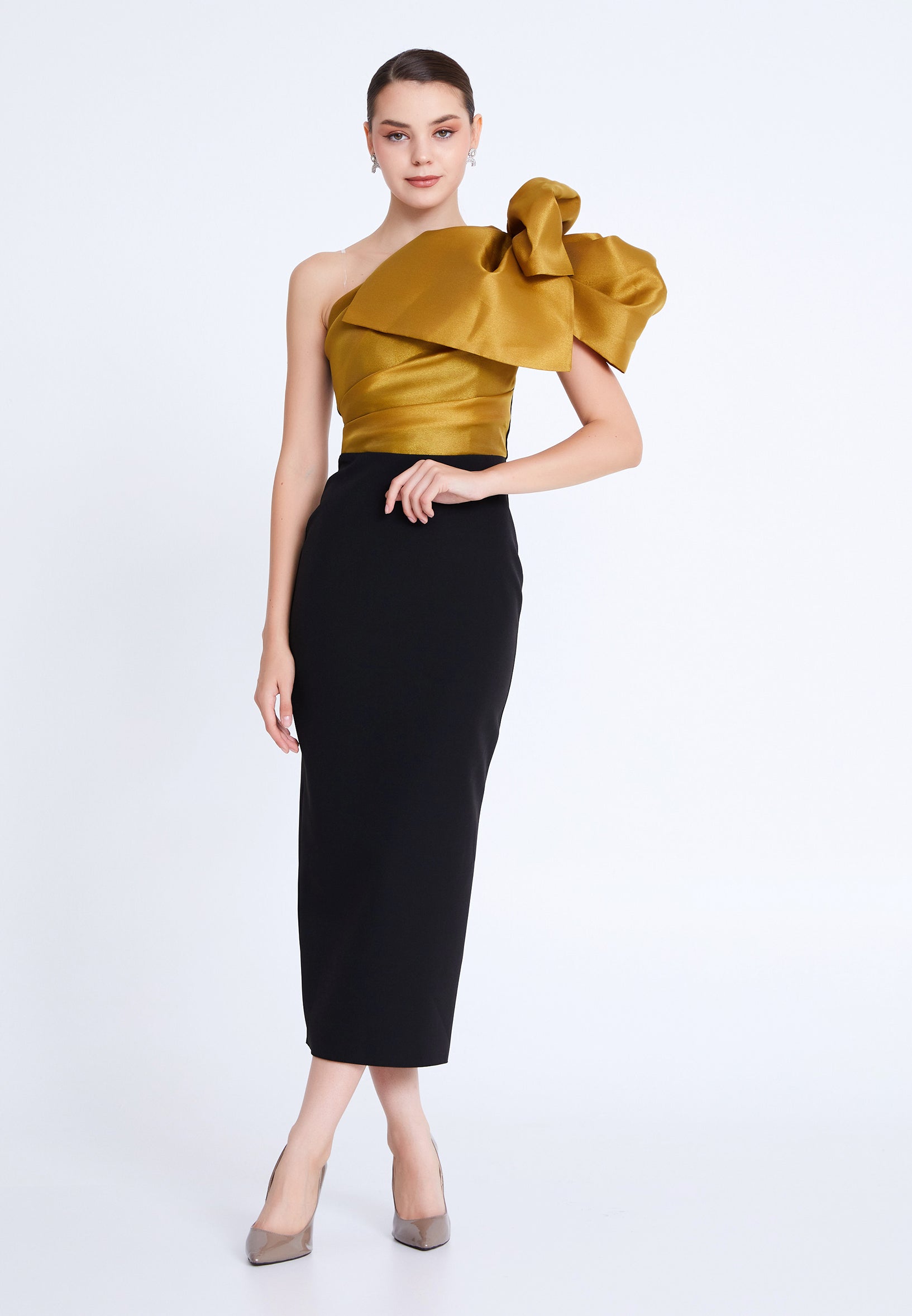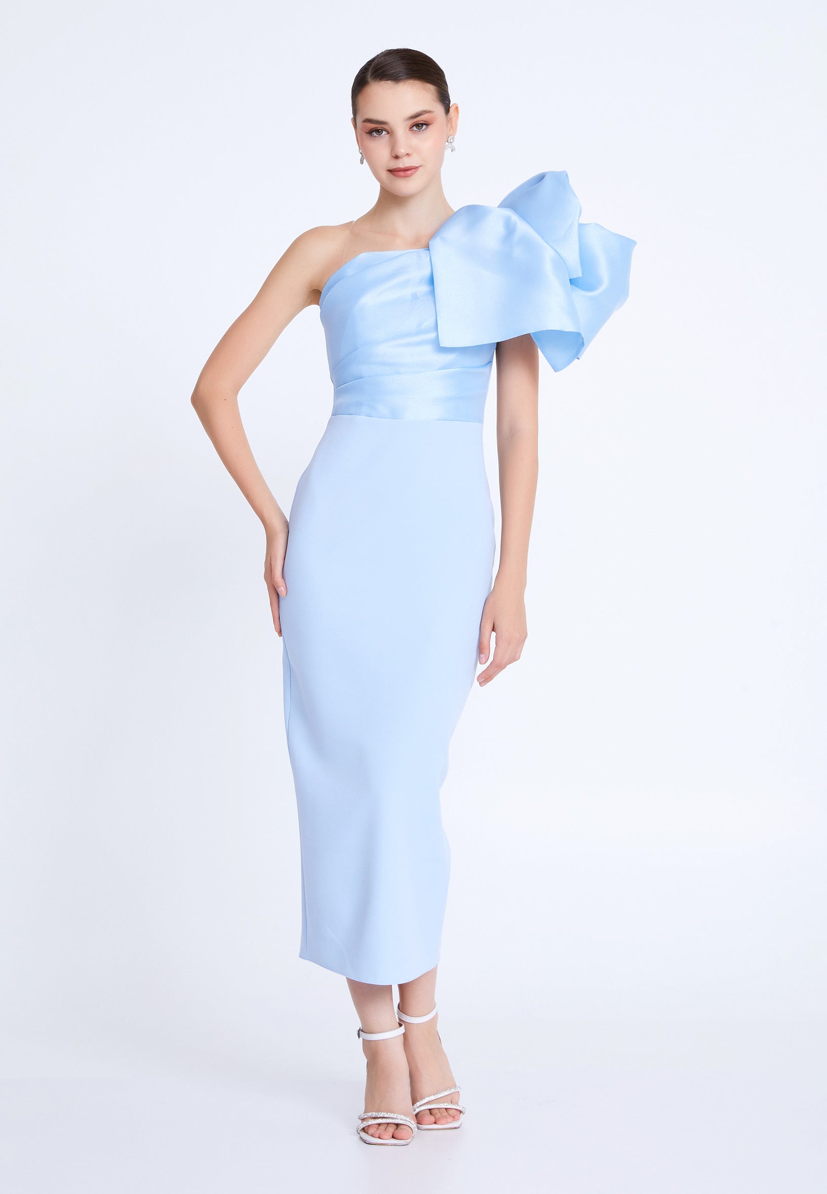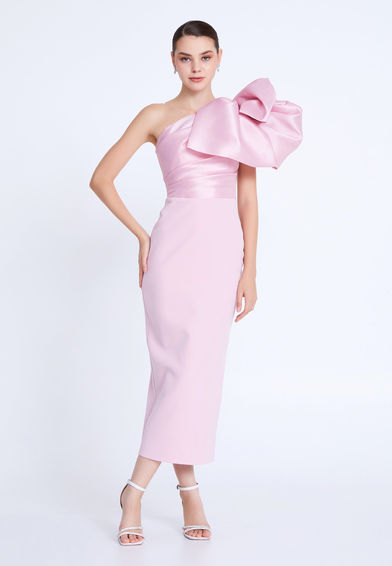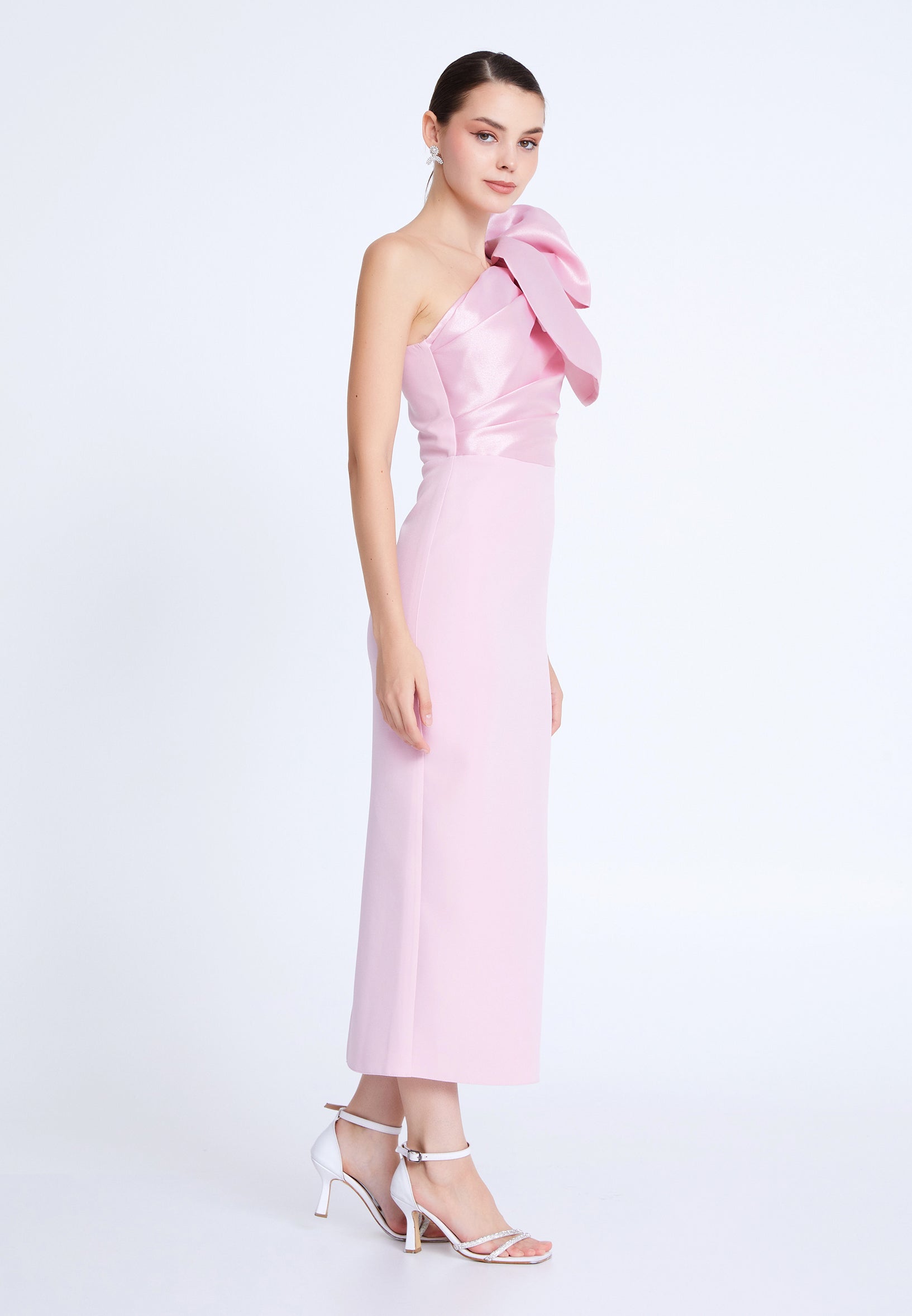 One Shoulder Midi Viscose Column Regular Evening Dress hot8423 Features