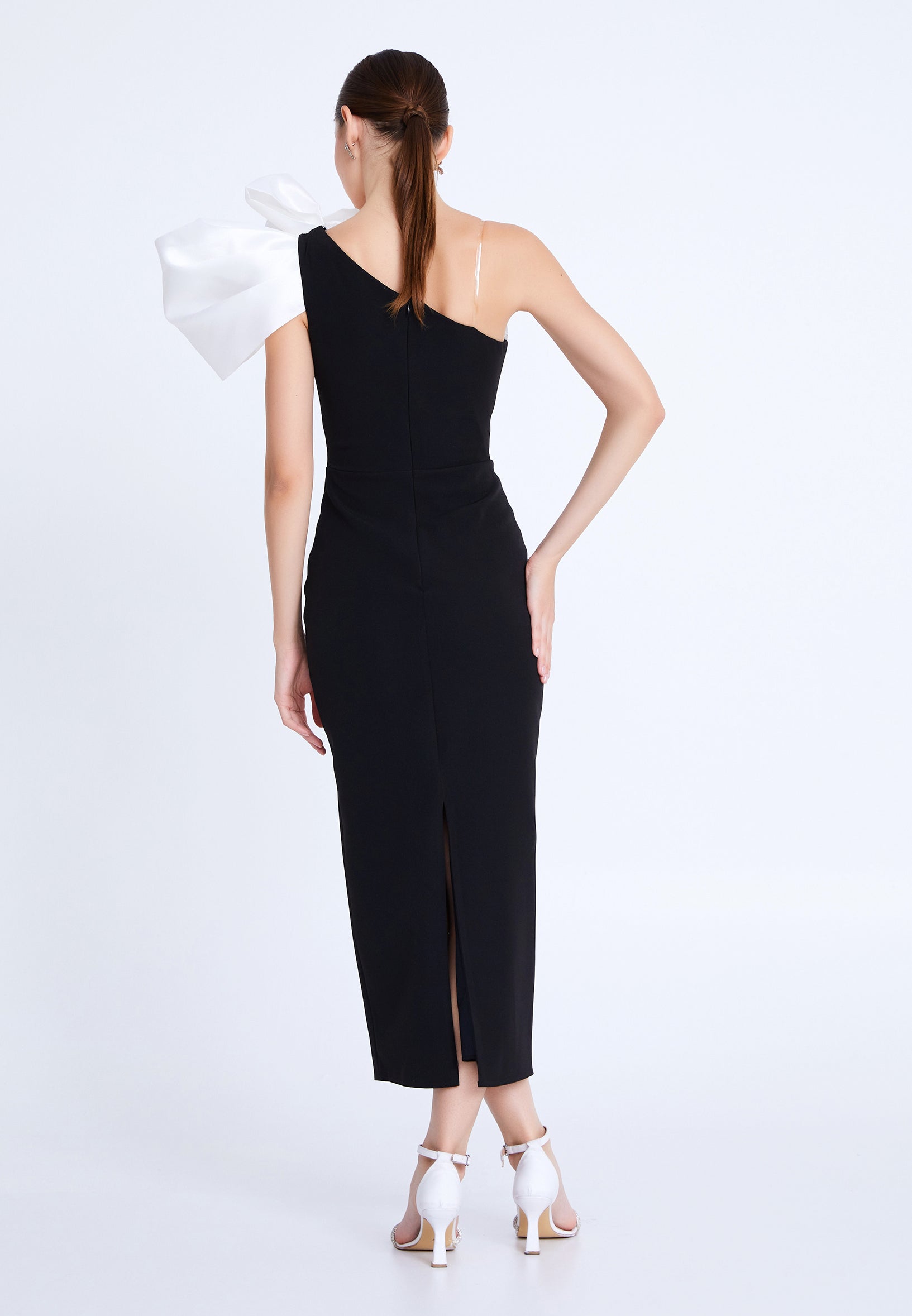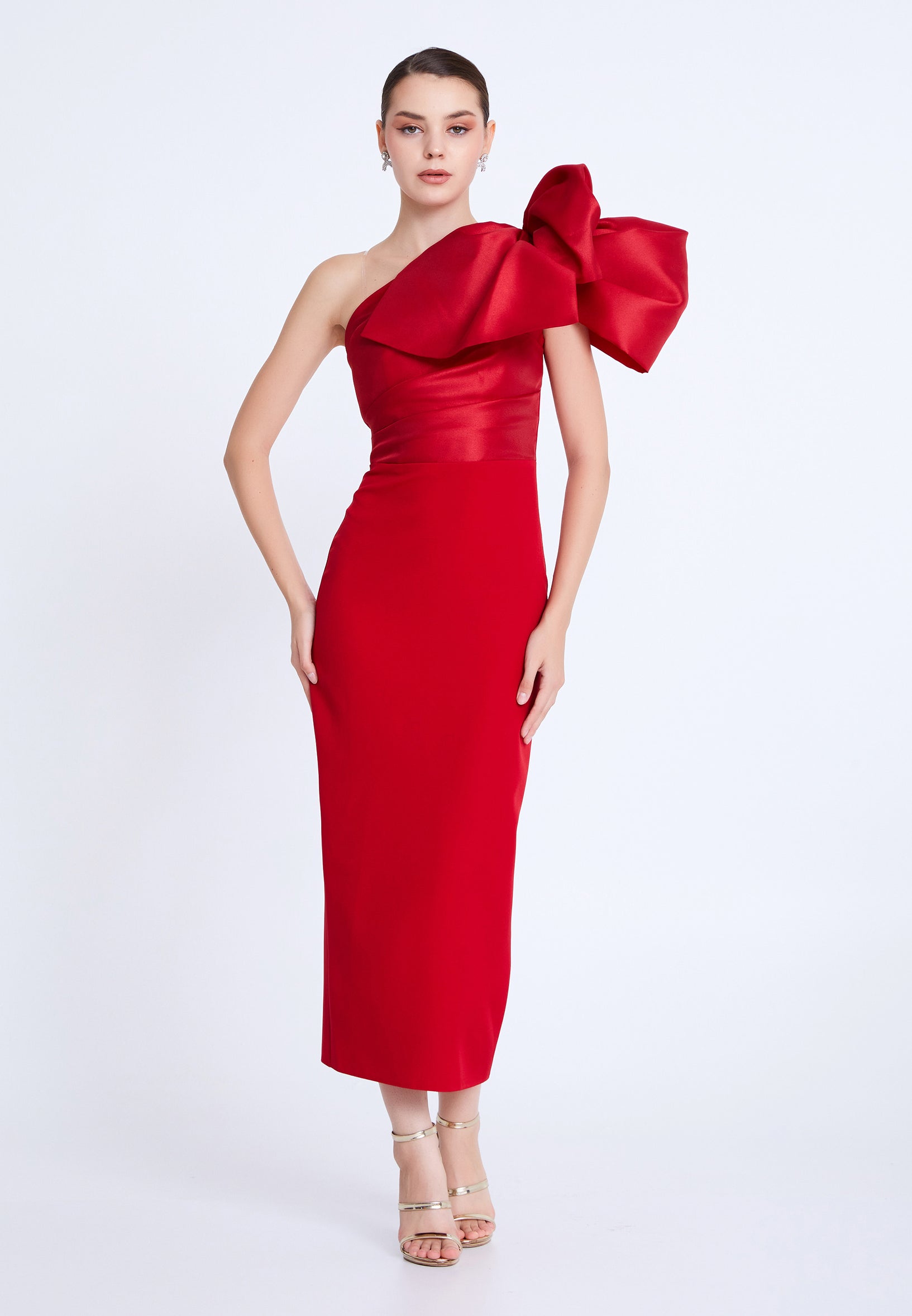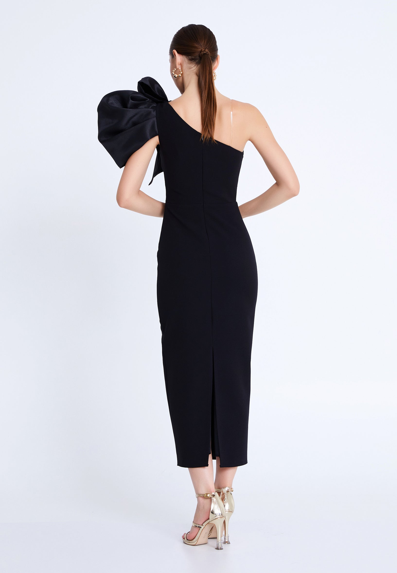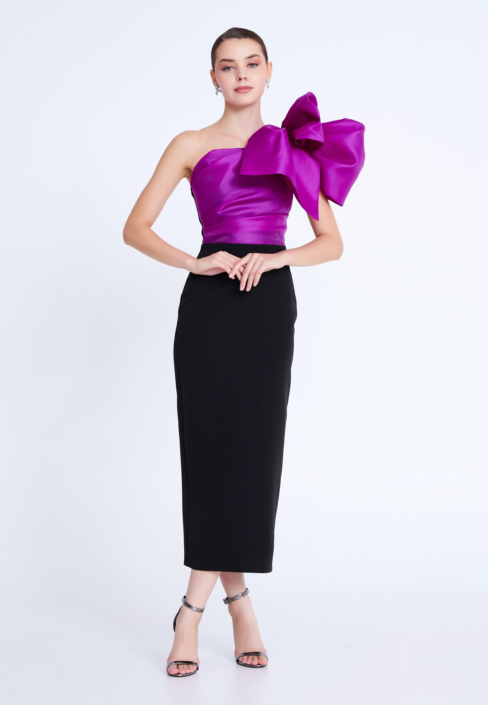 One Shoulder Midi Viscose Column Regular Evening Dress hot8423 Features